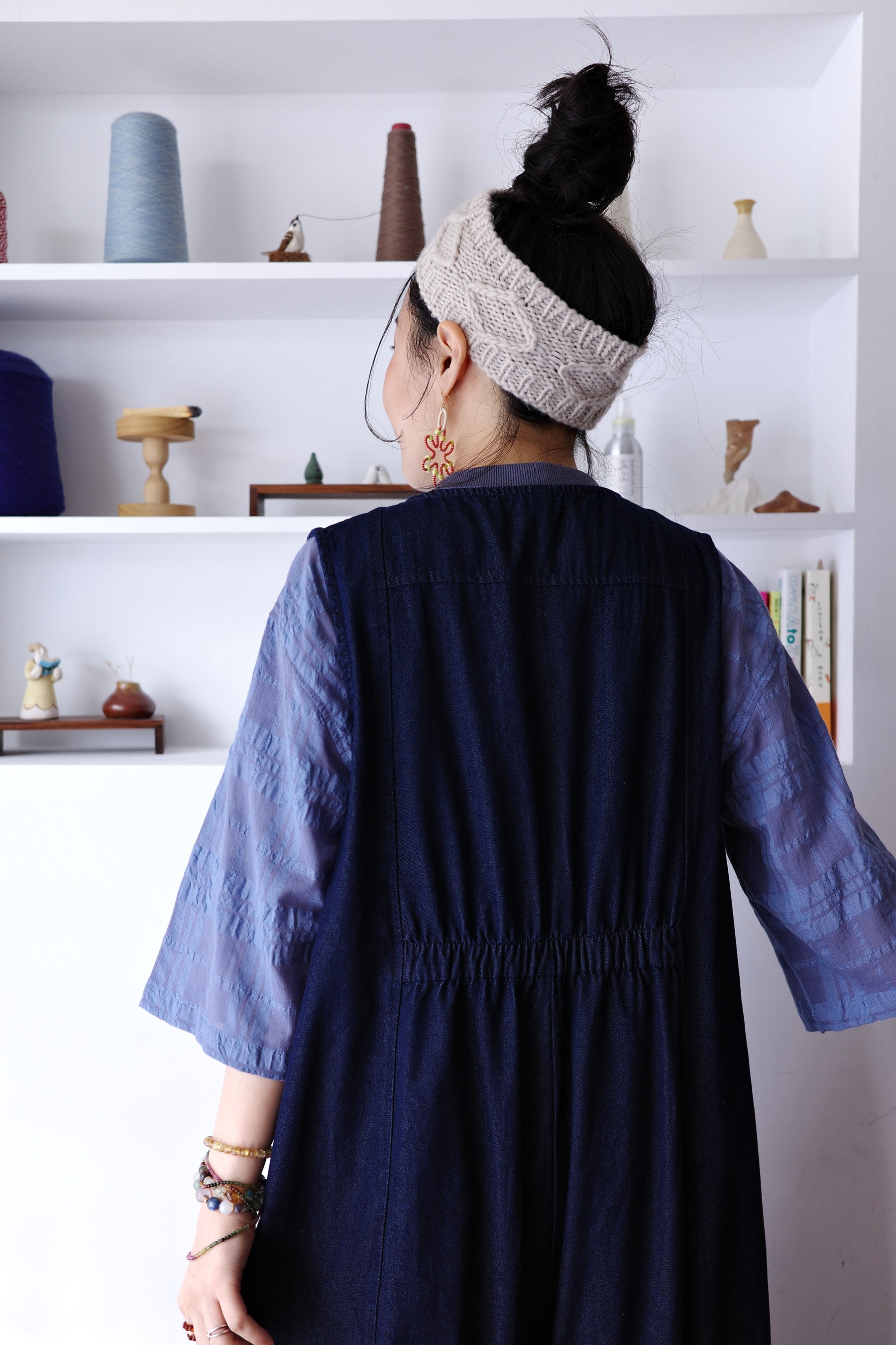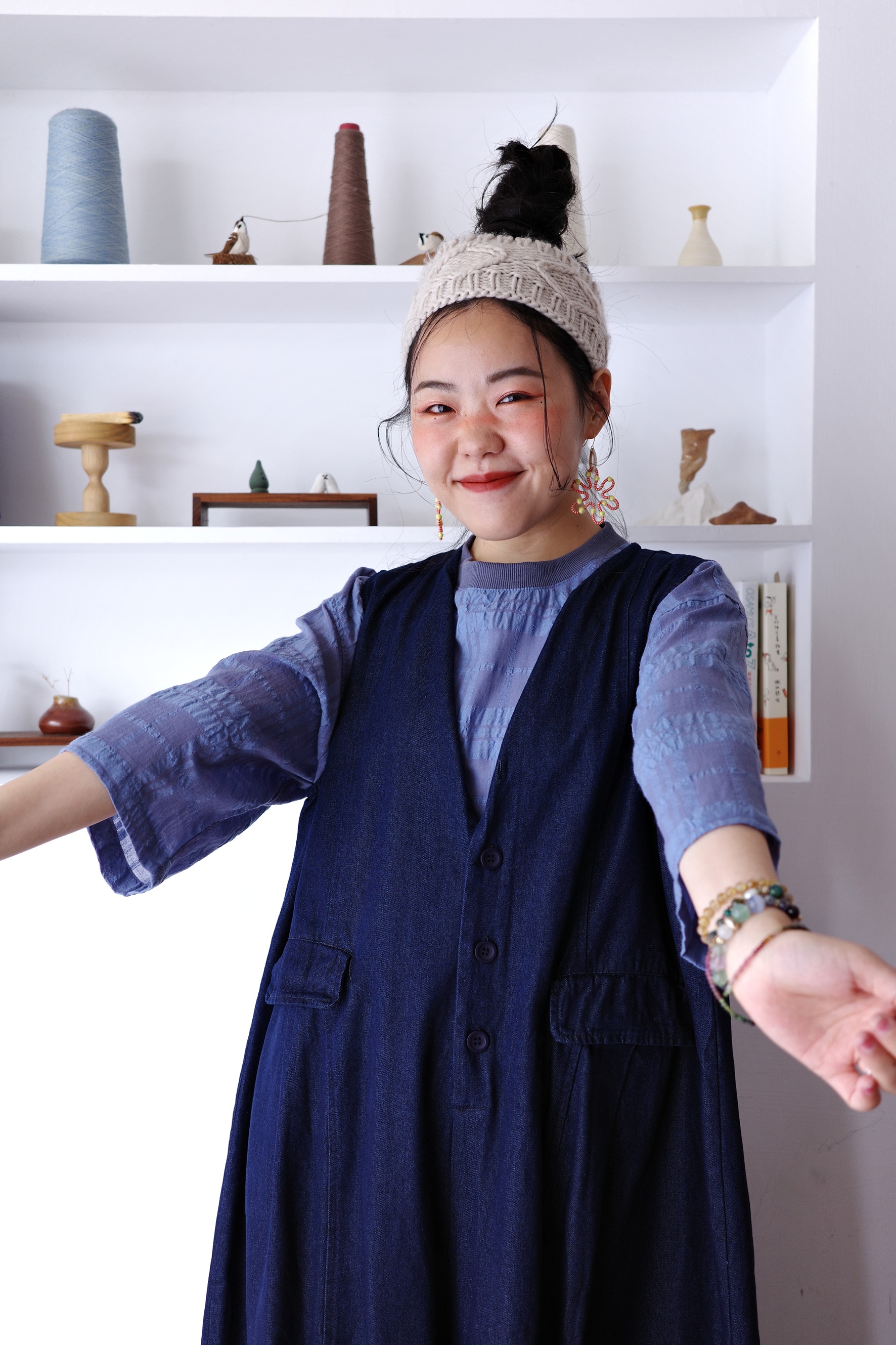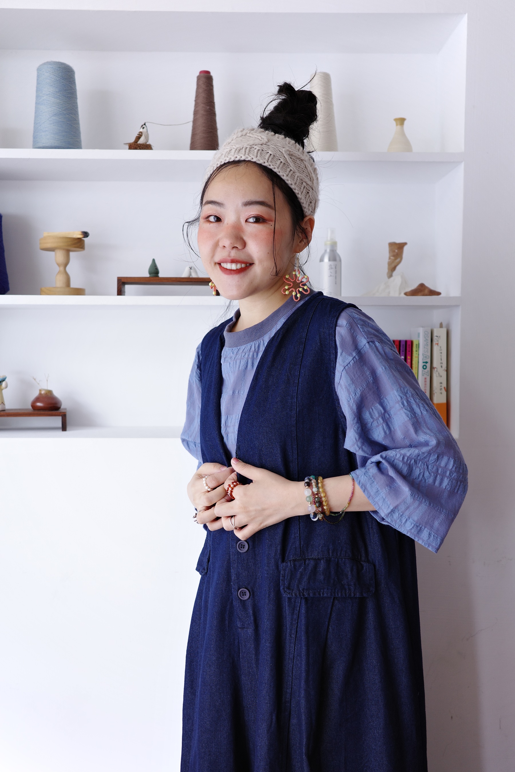 乍看是一件簡單無聊的素色上衣, 細看發現布料是利用緹花織法帶出格紋,