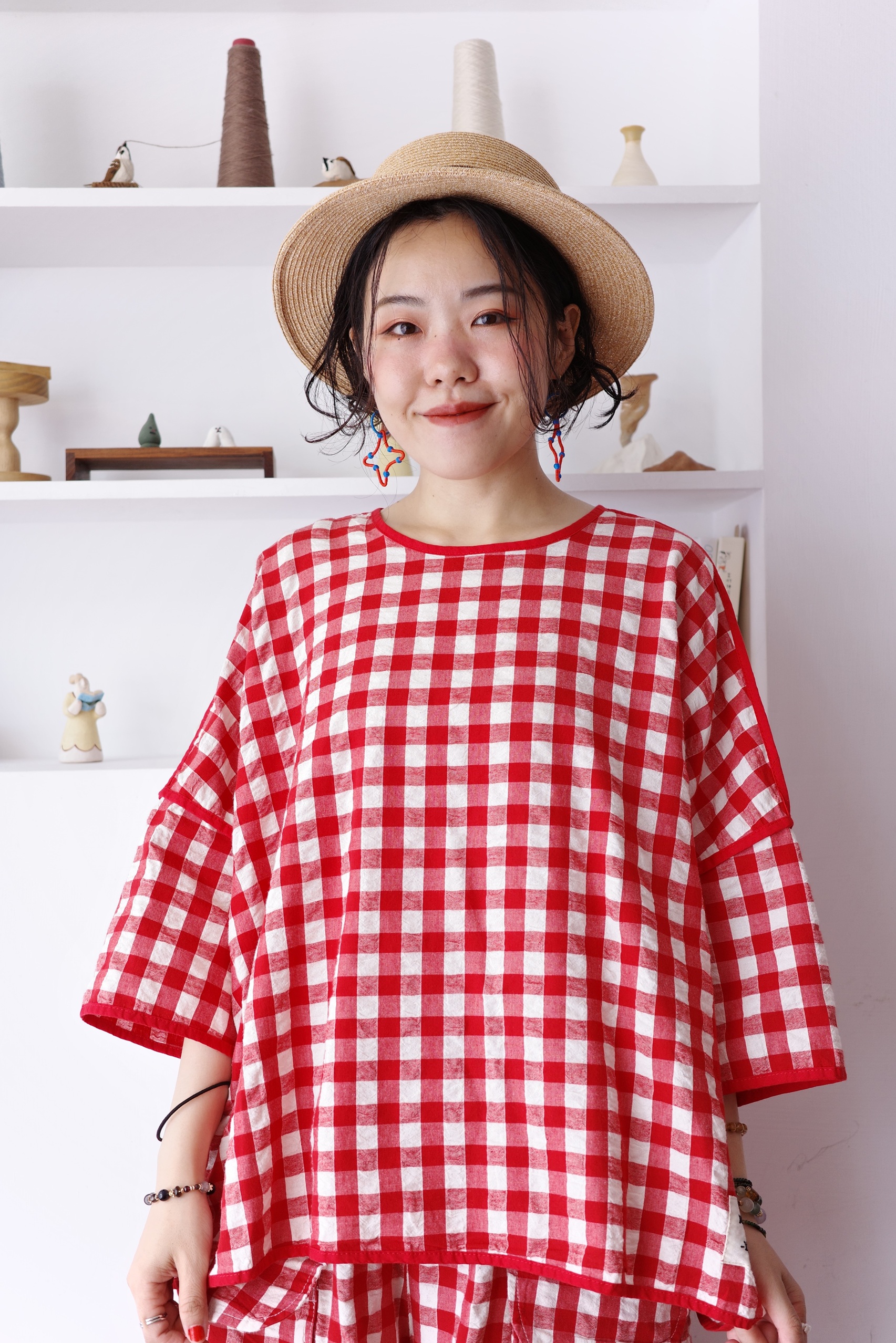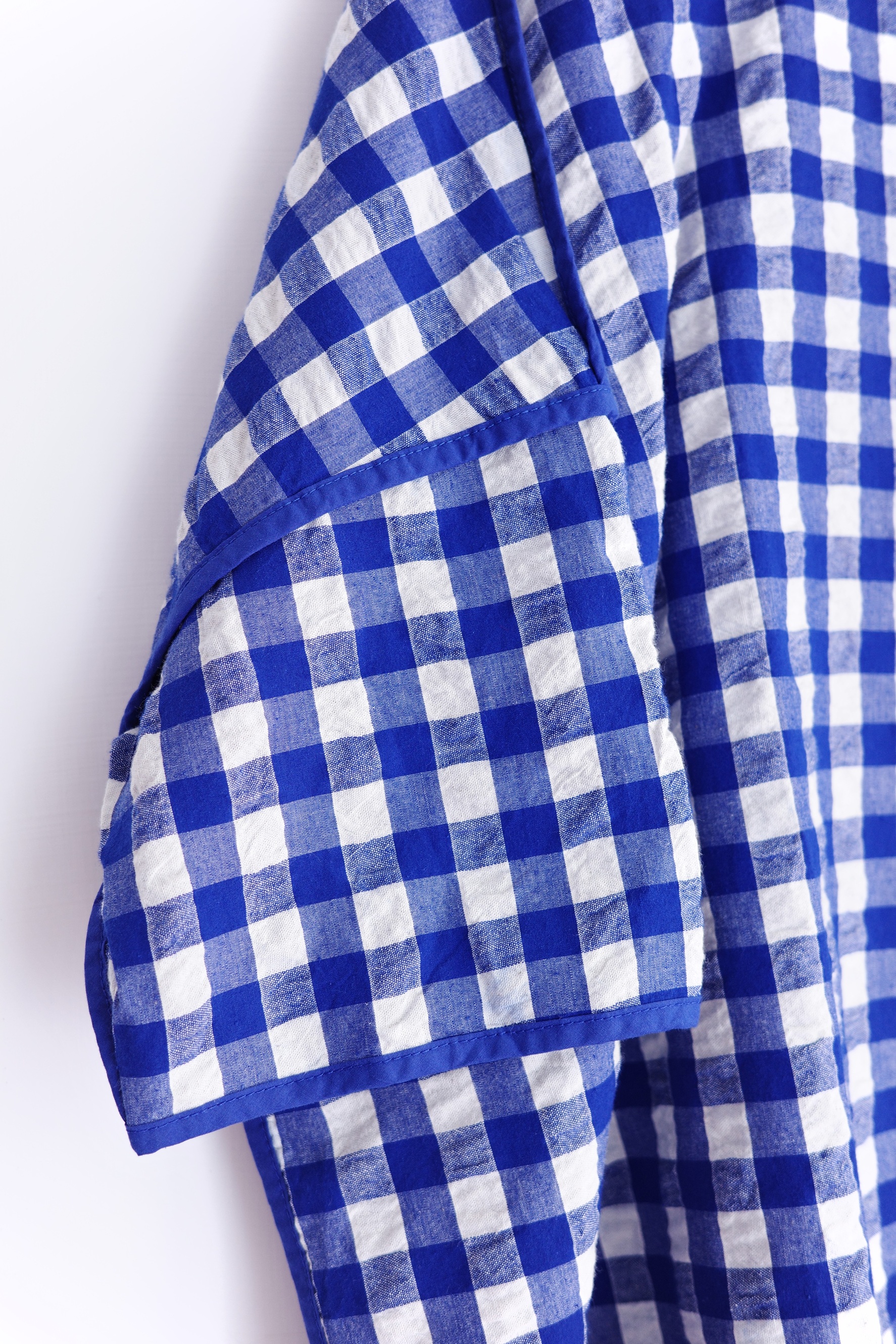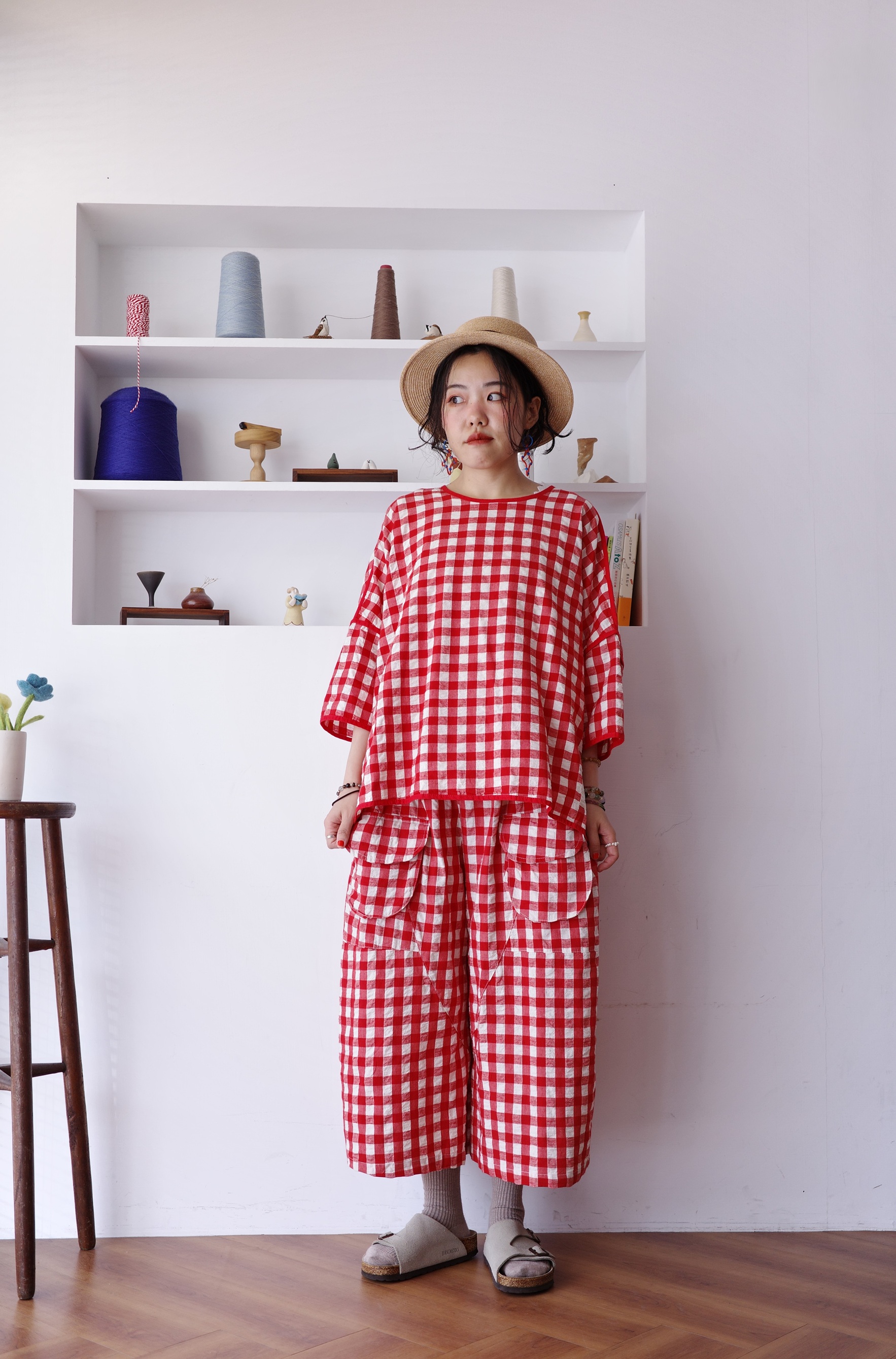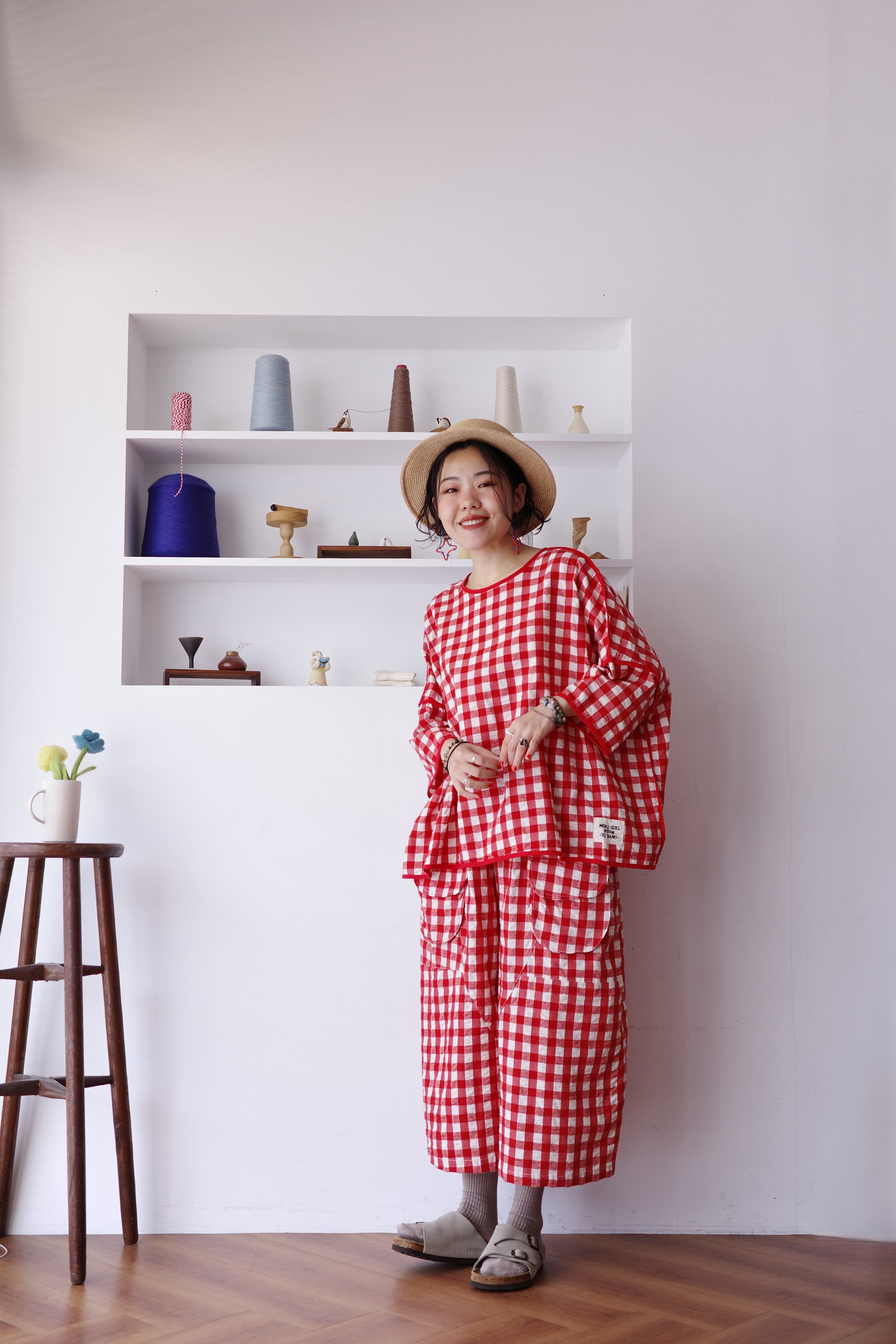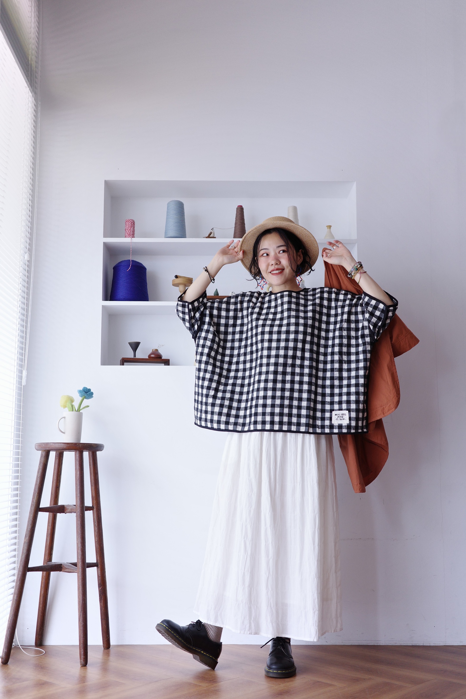 布料是透氣的泡泡棉,帶有自然紋理不需整燙,飽和色調的方格紋經典可愛。