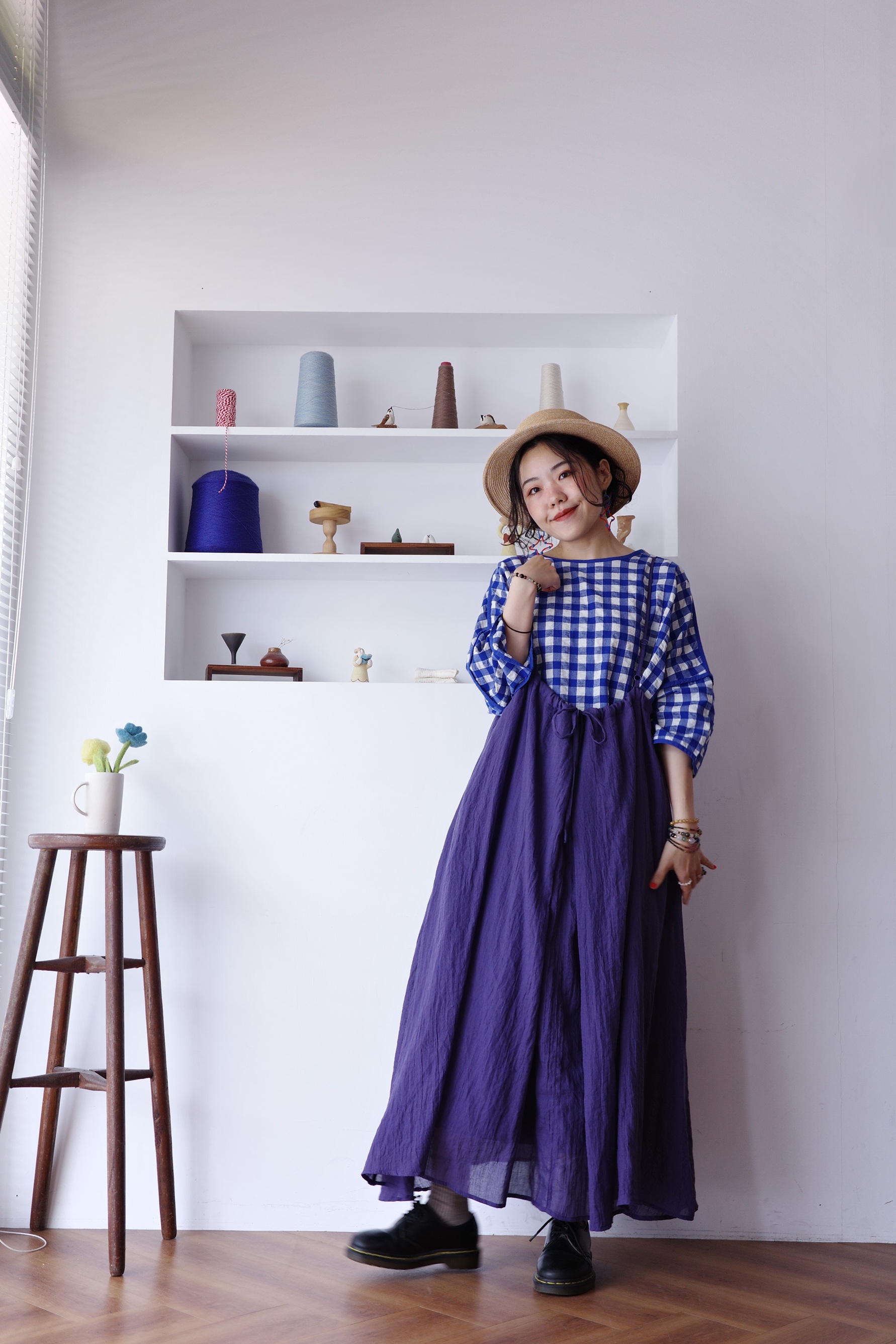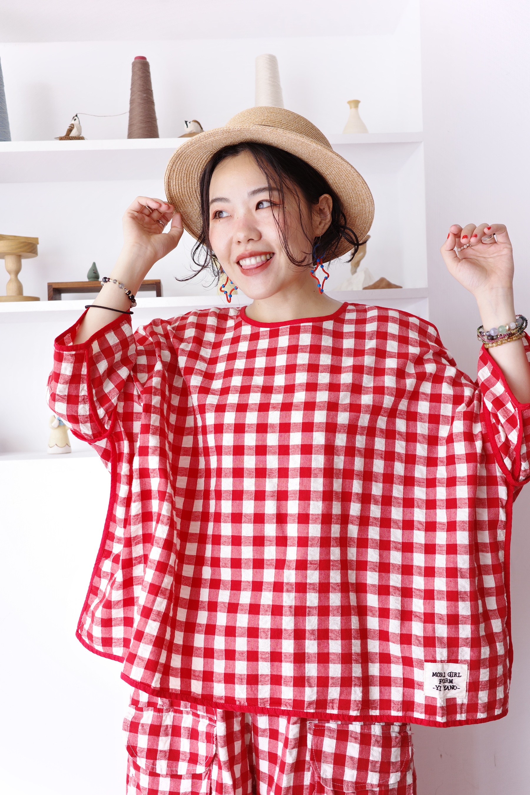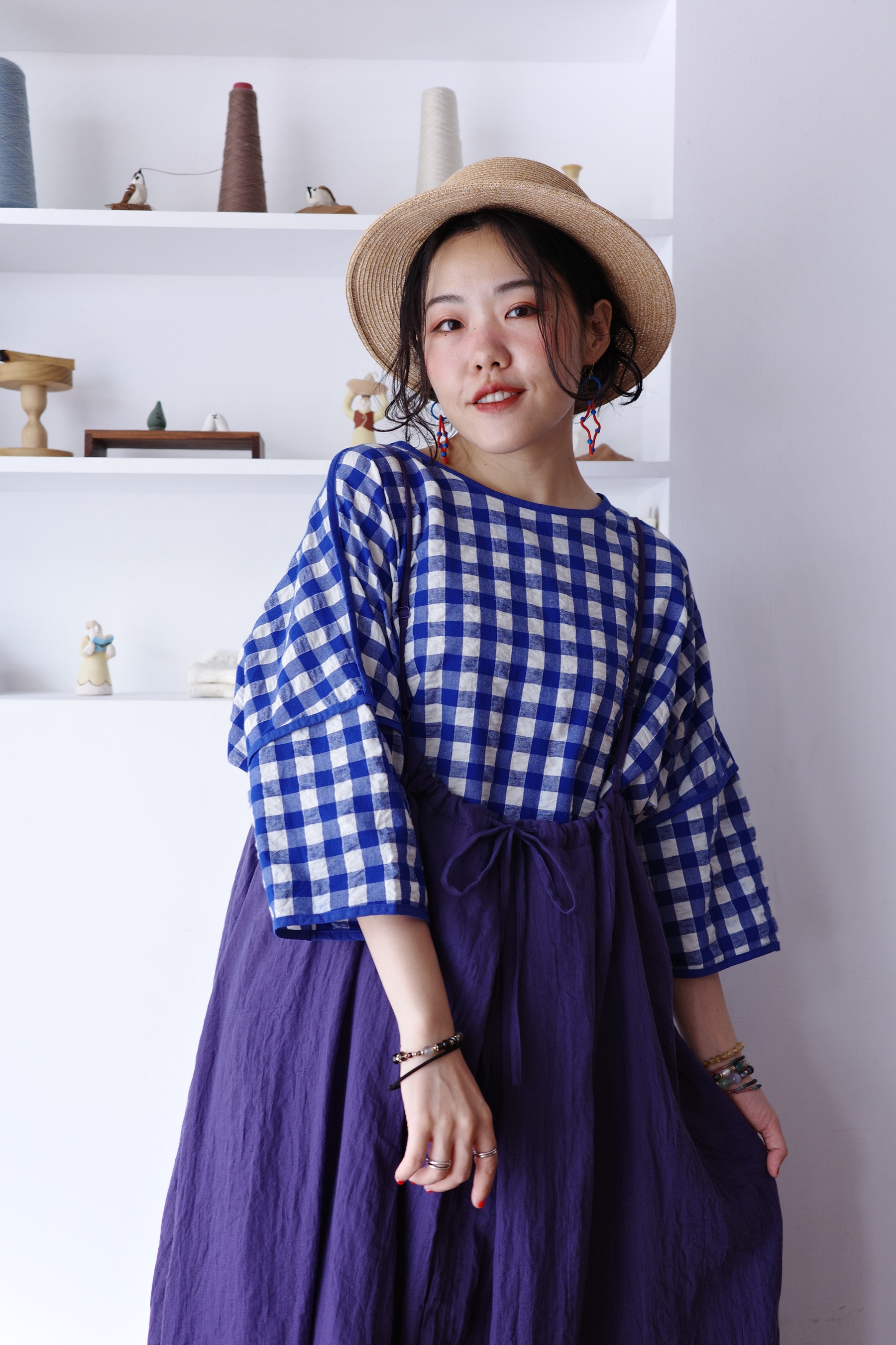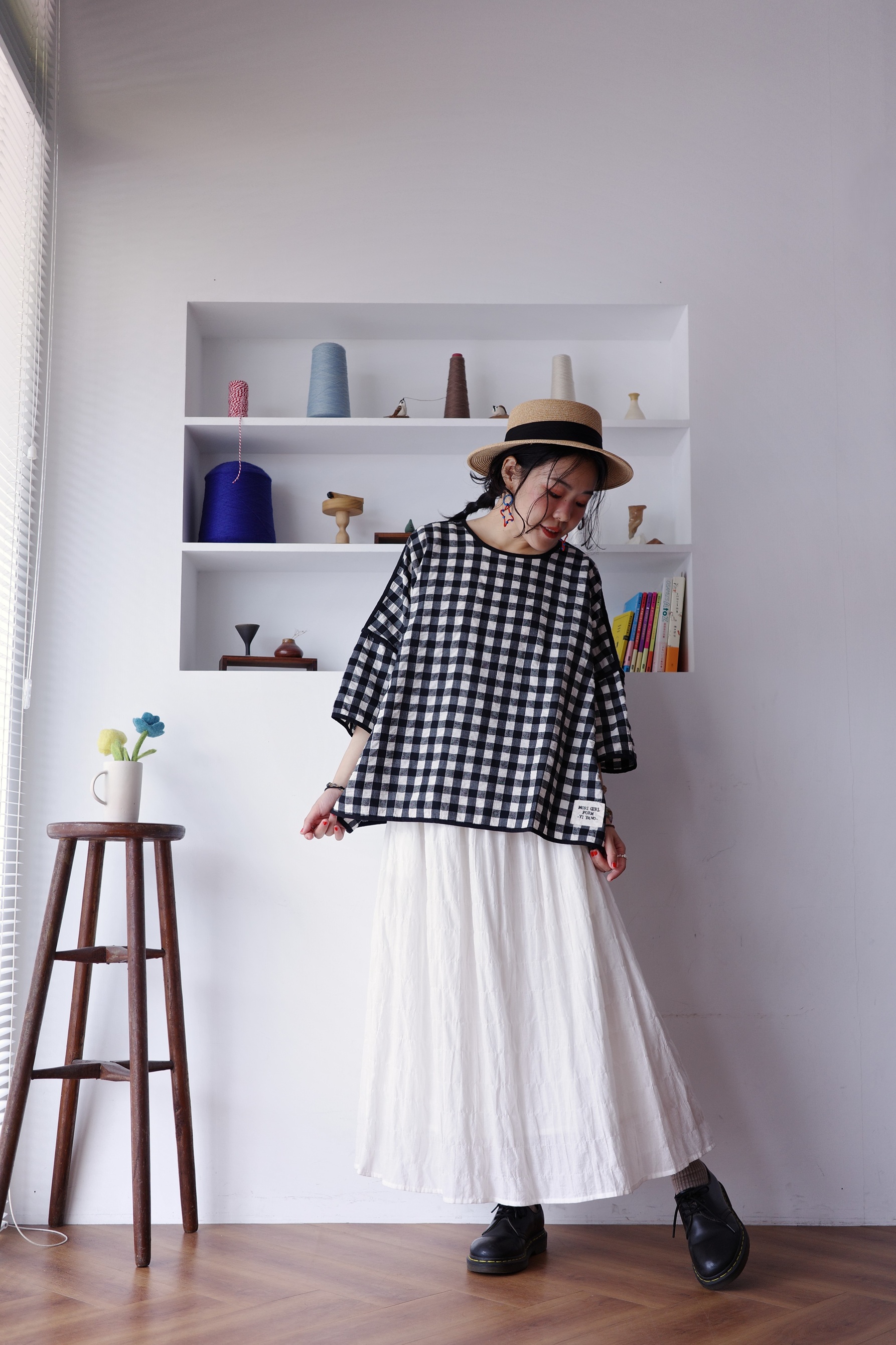 布料是透氣的泡泡棉,帶有自然紋理不需整燙,飽和色調的方格紋經典可愛。