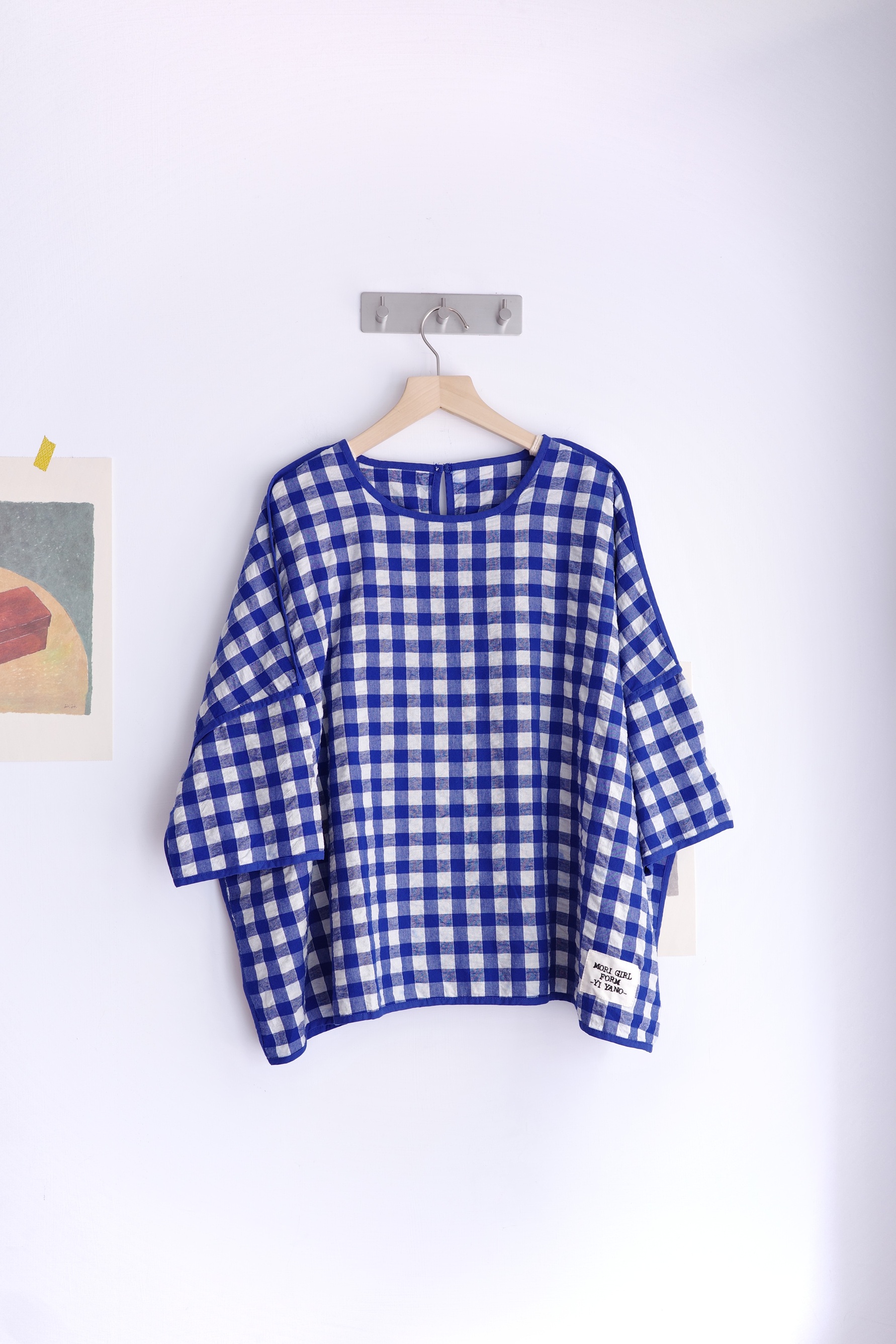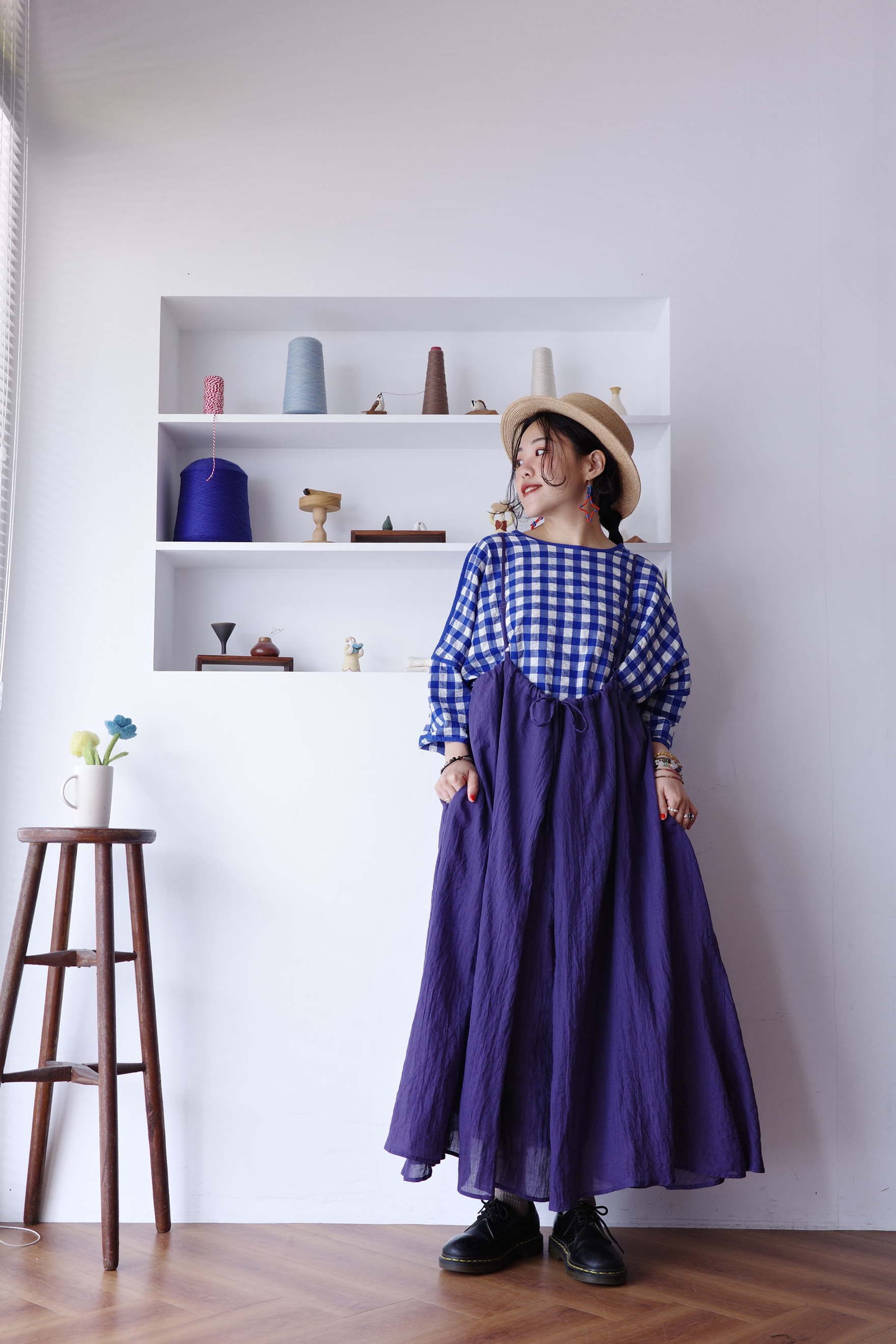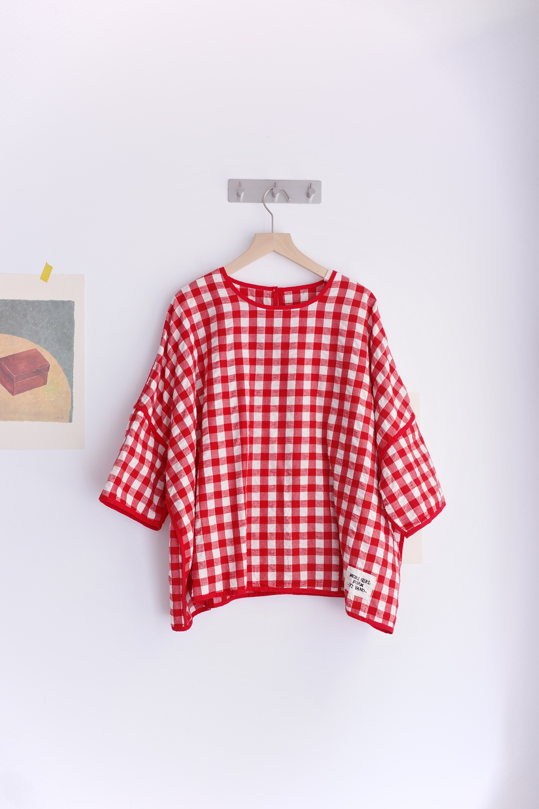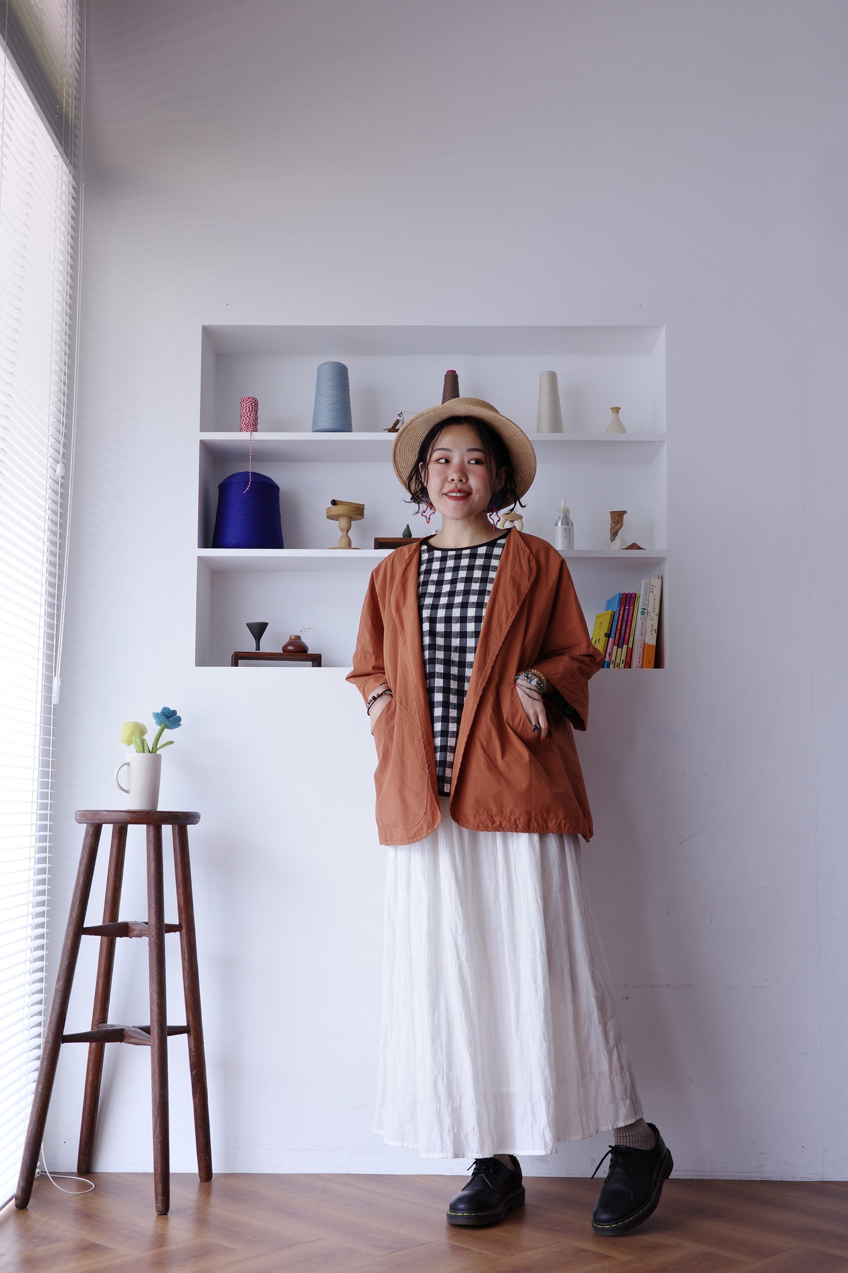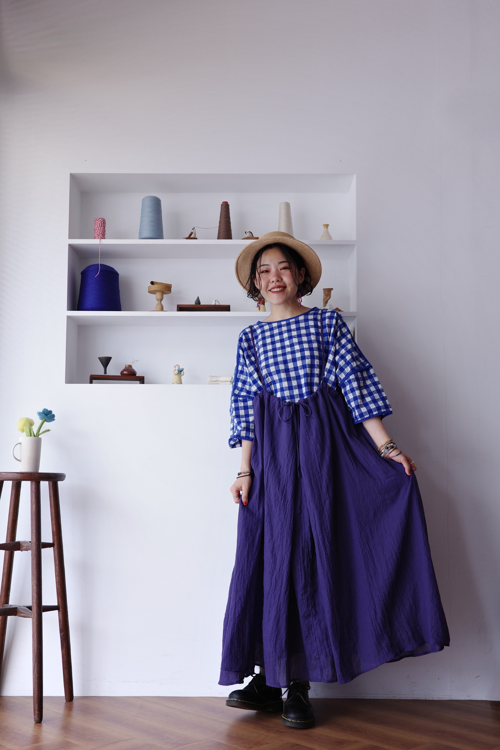 布料是透氣的泡泡棉,帶有自然紋理不需整燙,飽和色調的方格紋經典可愛。