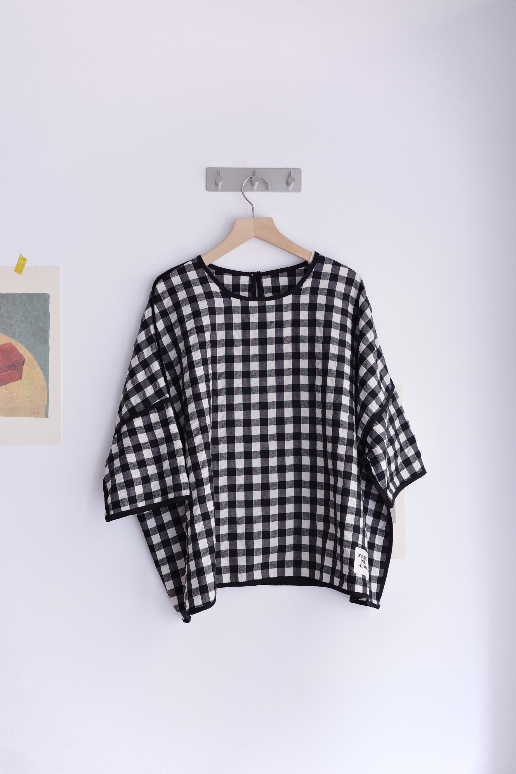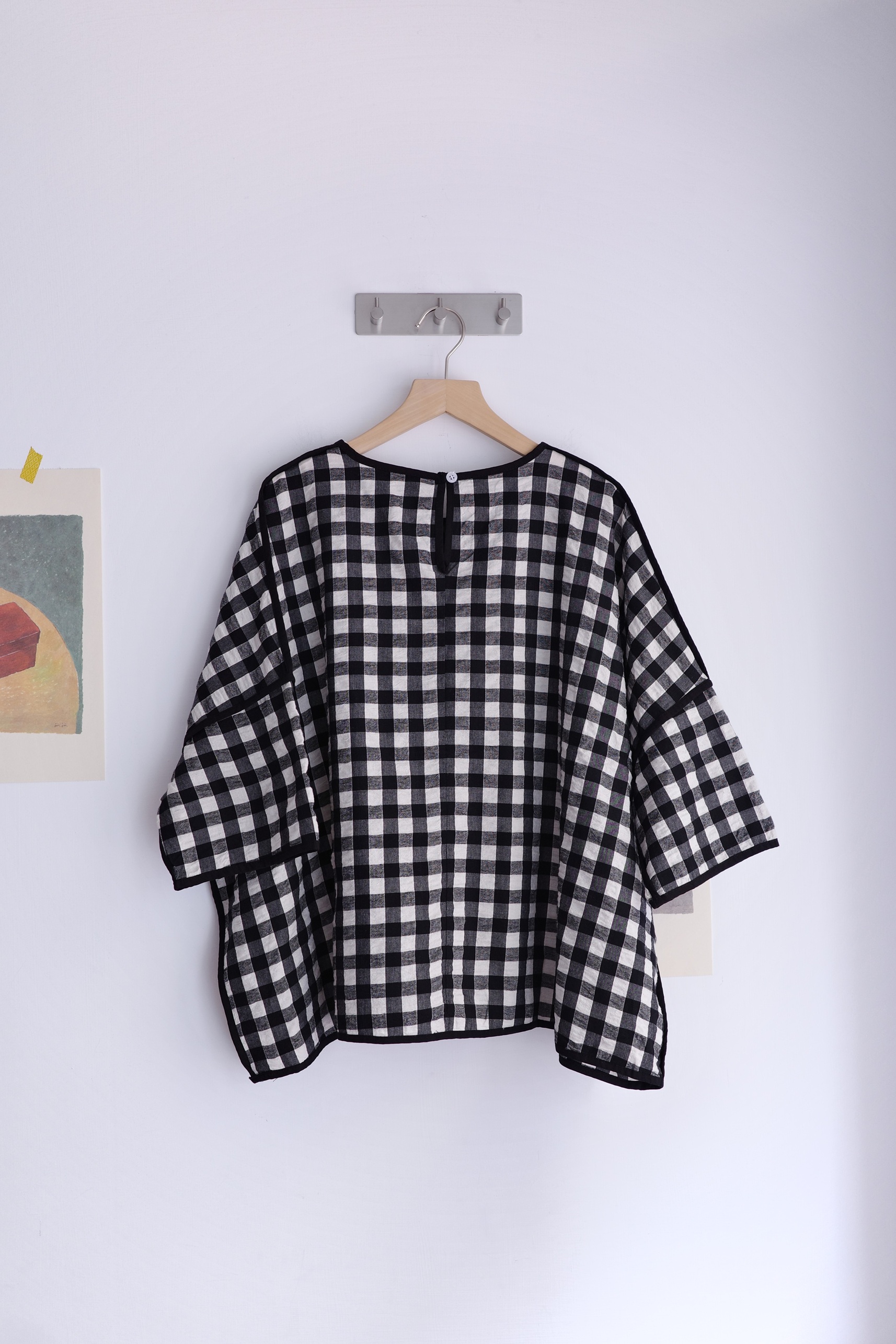 凹凸泡泡棉滾邊鬆身格紋上衣