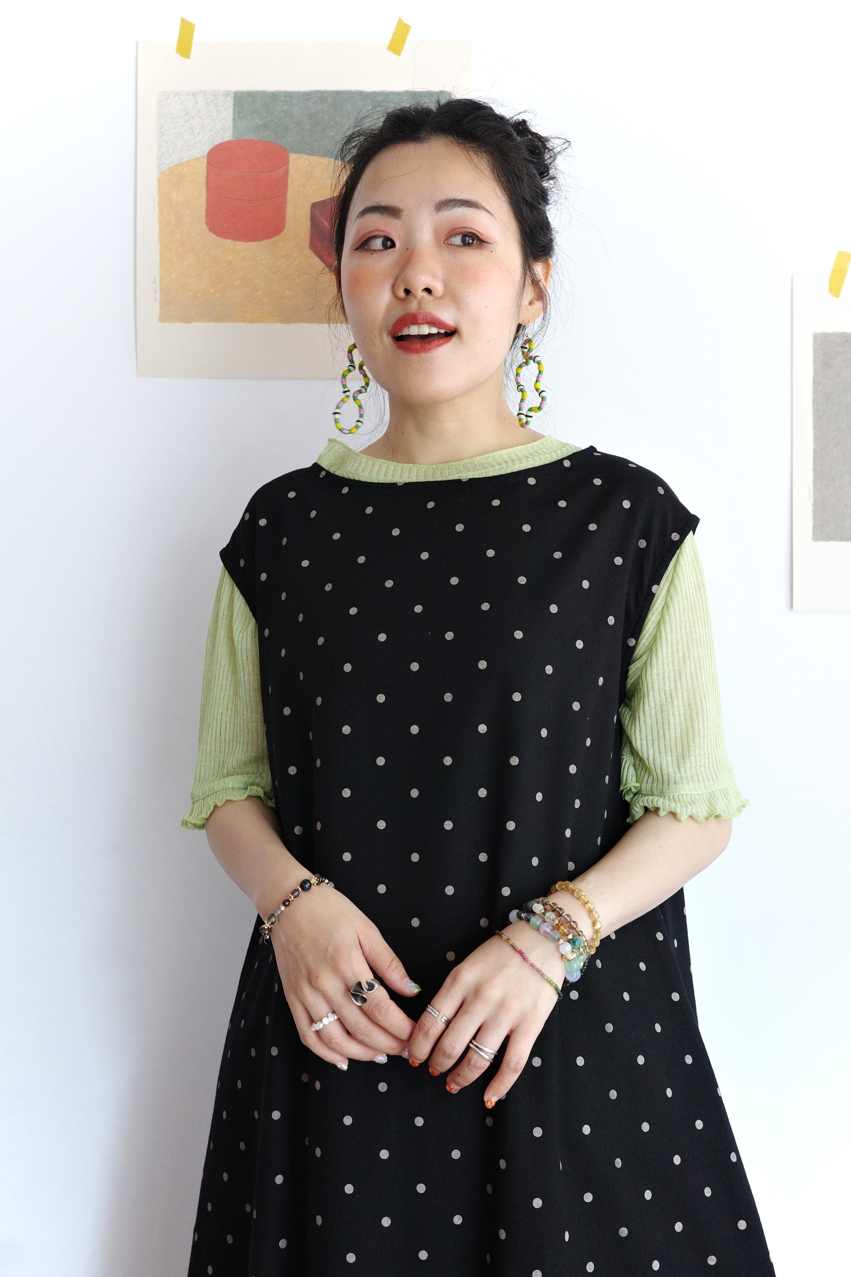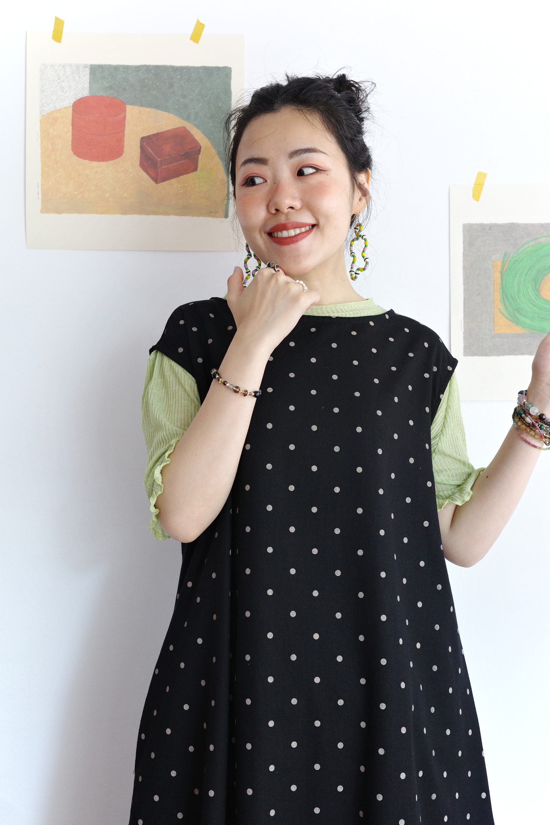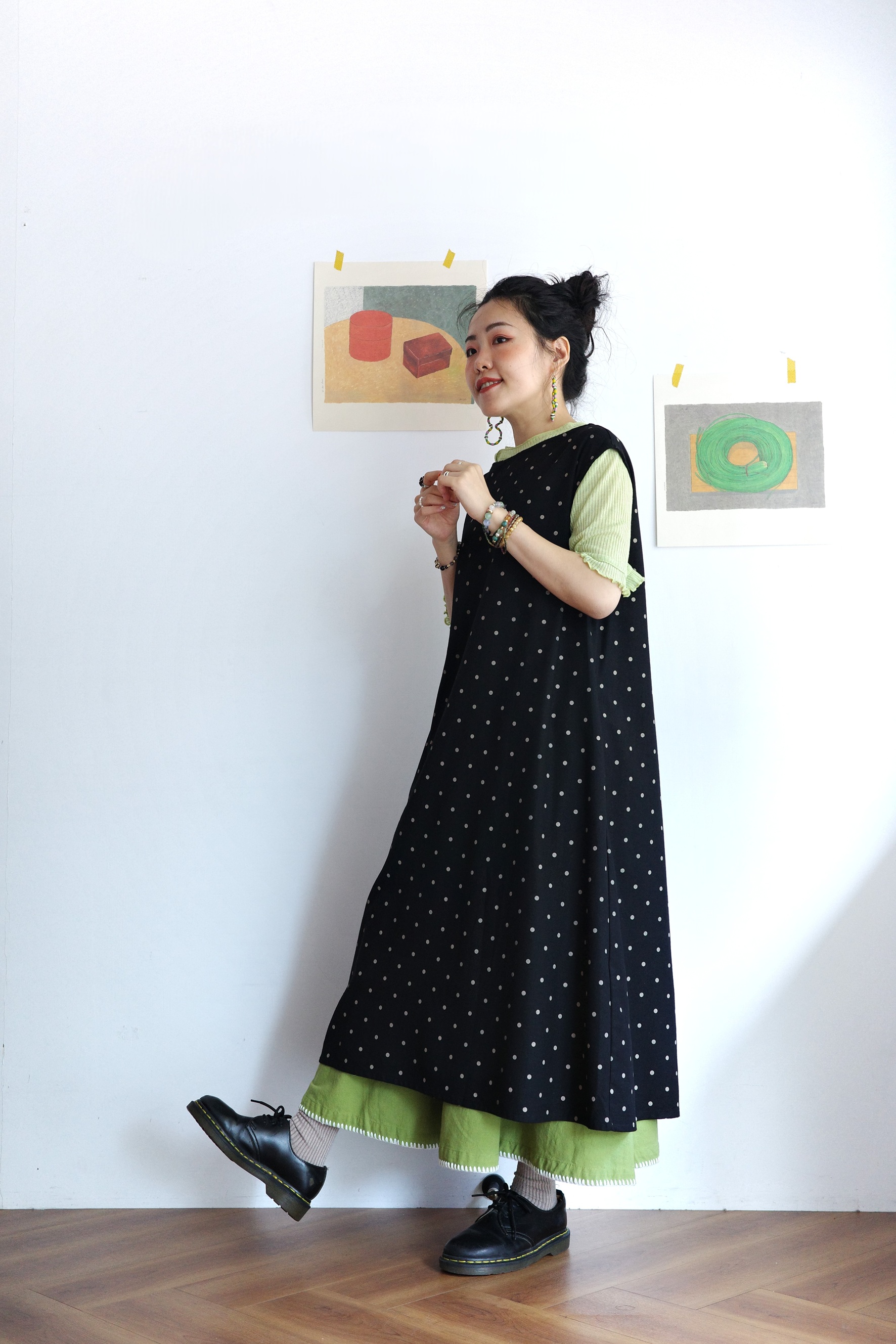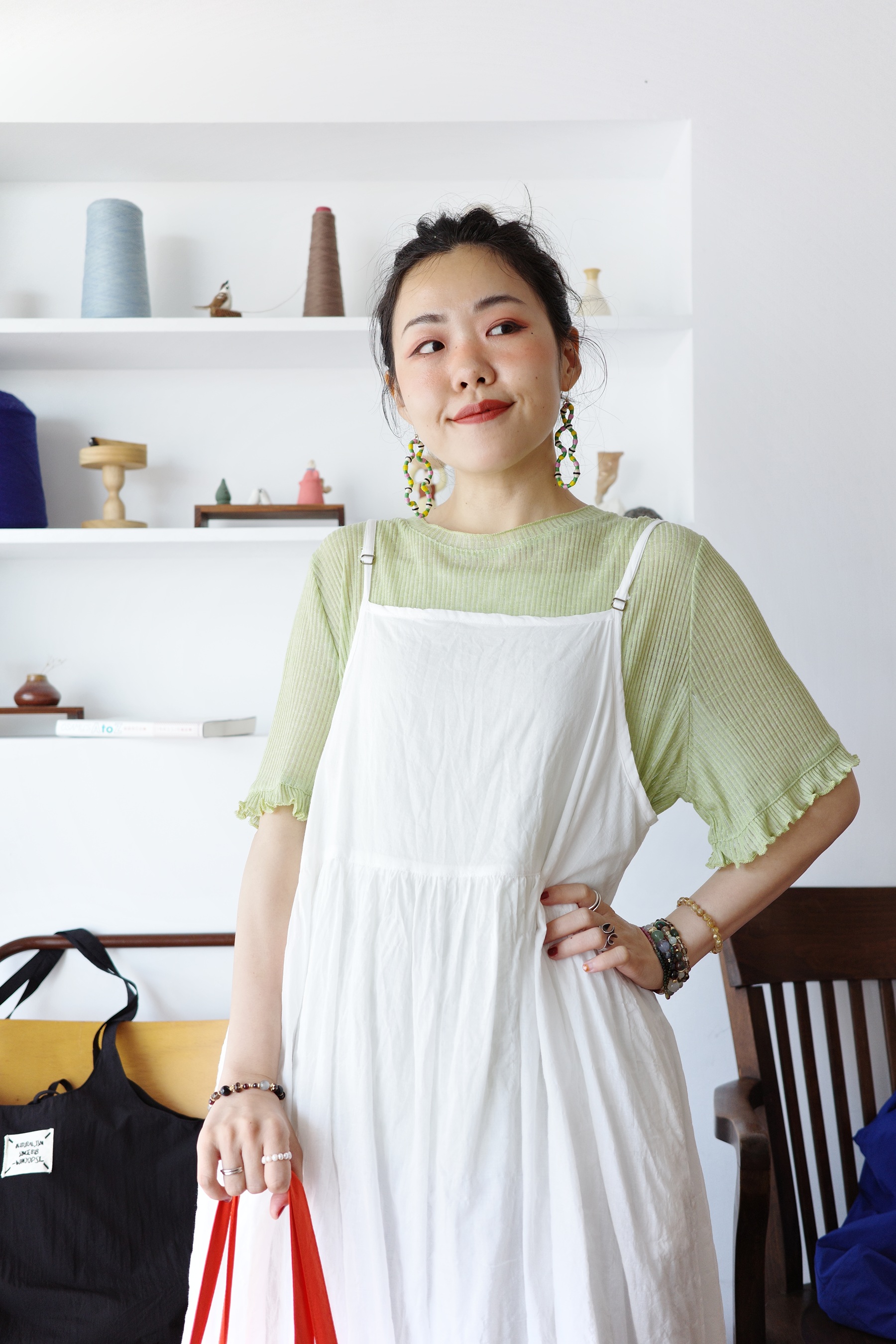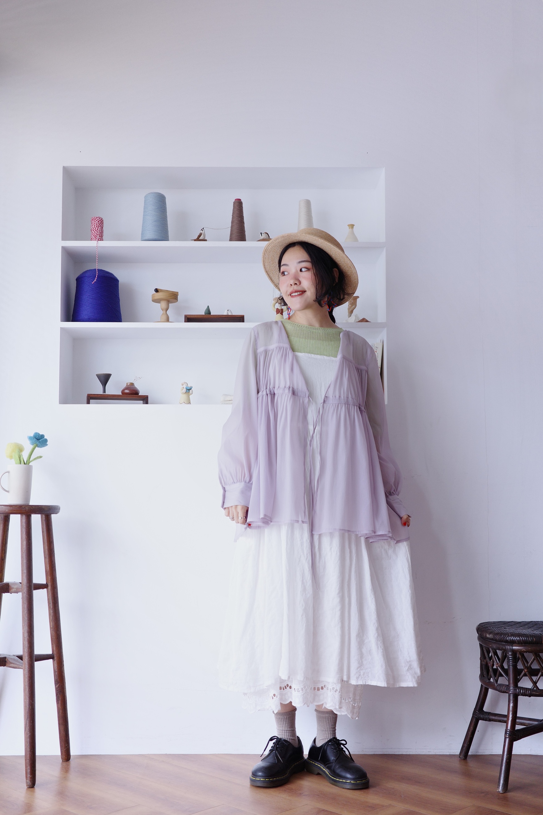 布料有些微彈性,微透膚感,鬆身隨性的慵懶氛圍。