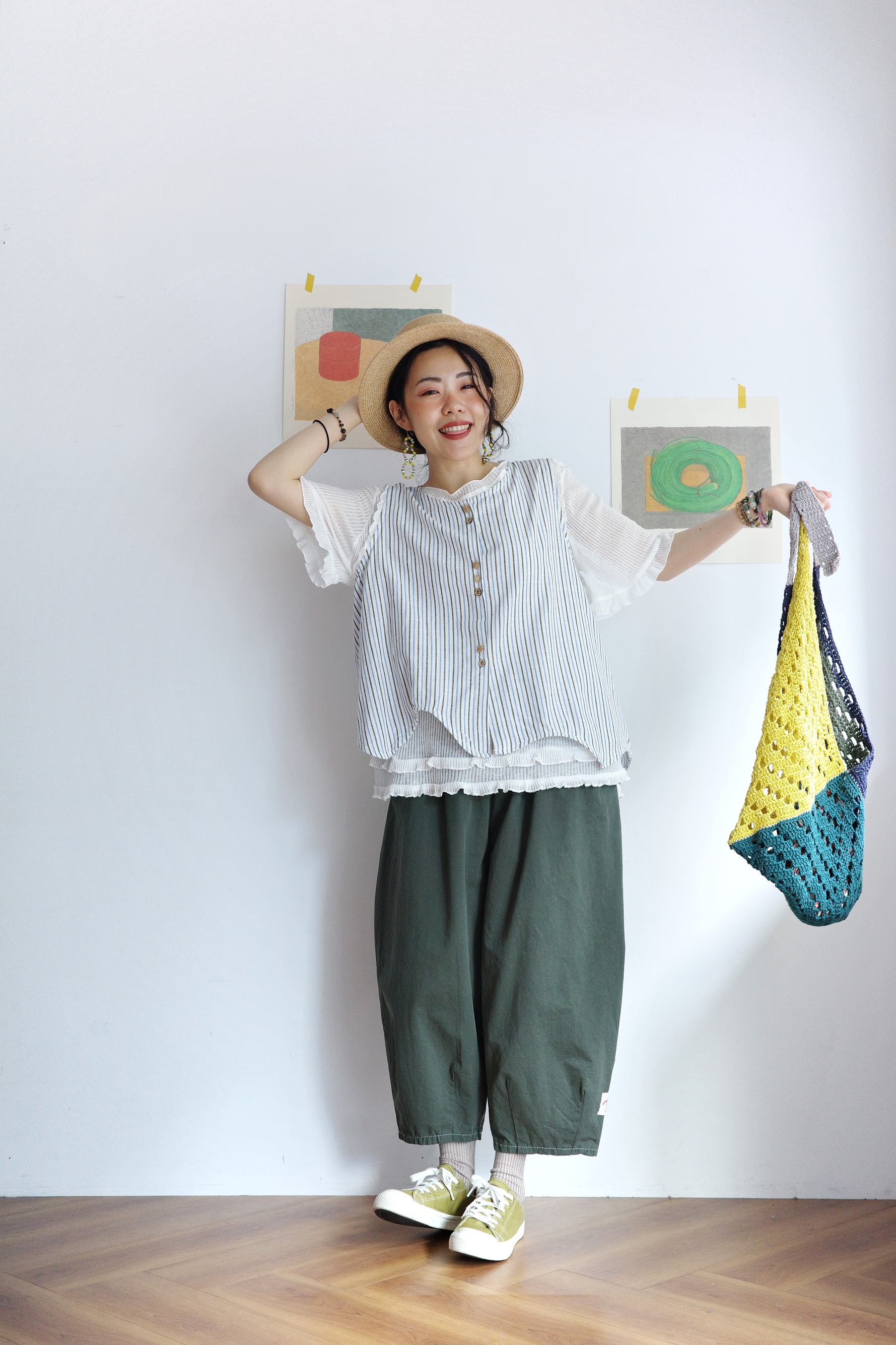 坑條織紋加上木耳滾邊小細節收邊,低調又可愛。