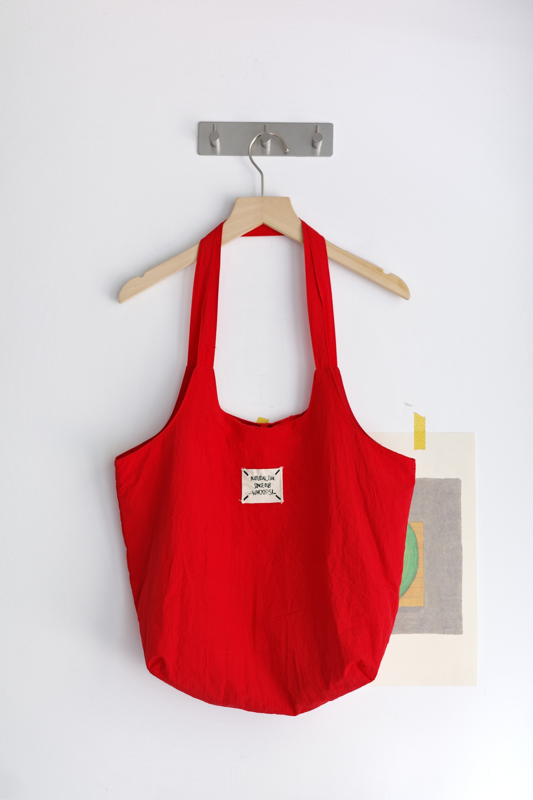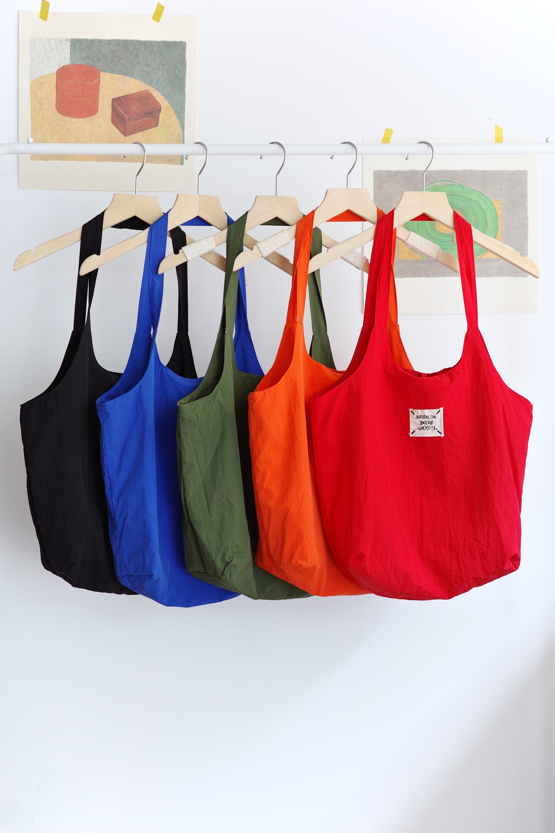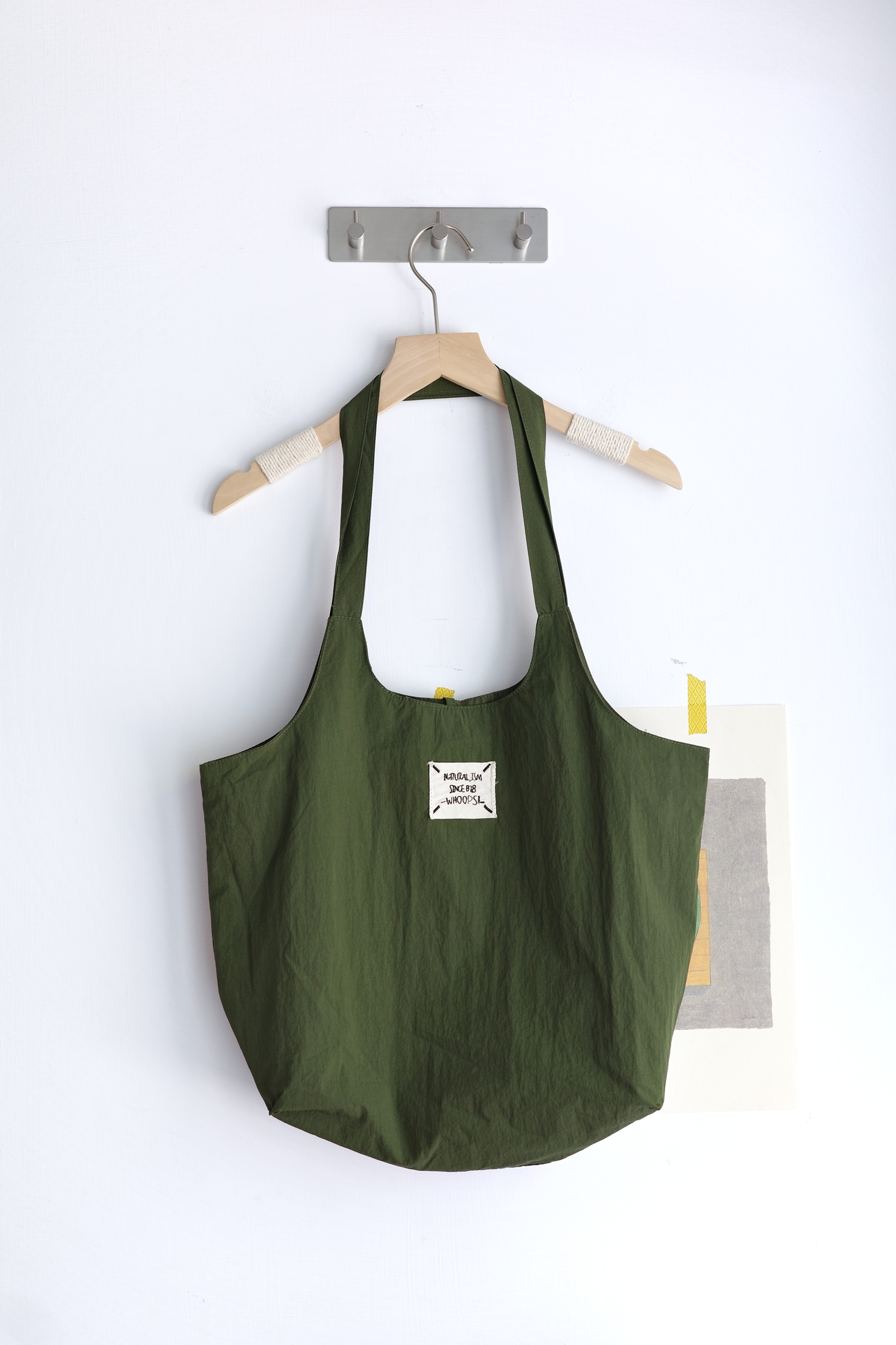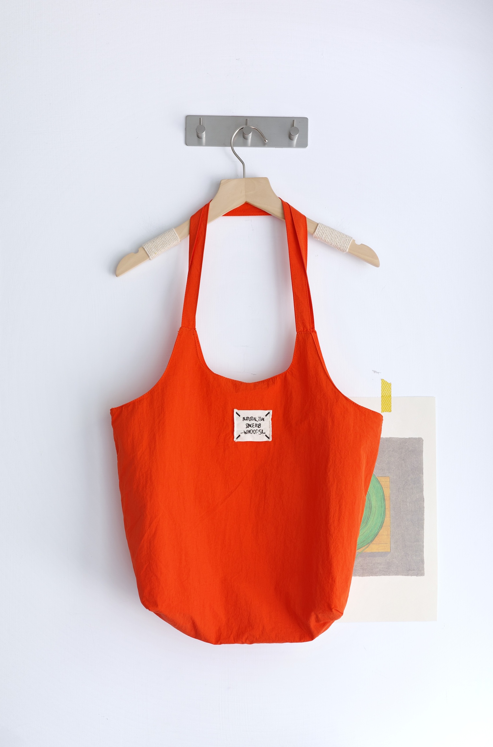 小布標繫帶尼龍托特包