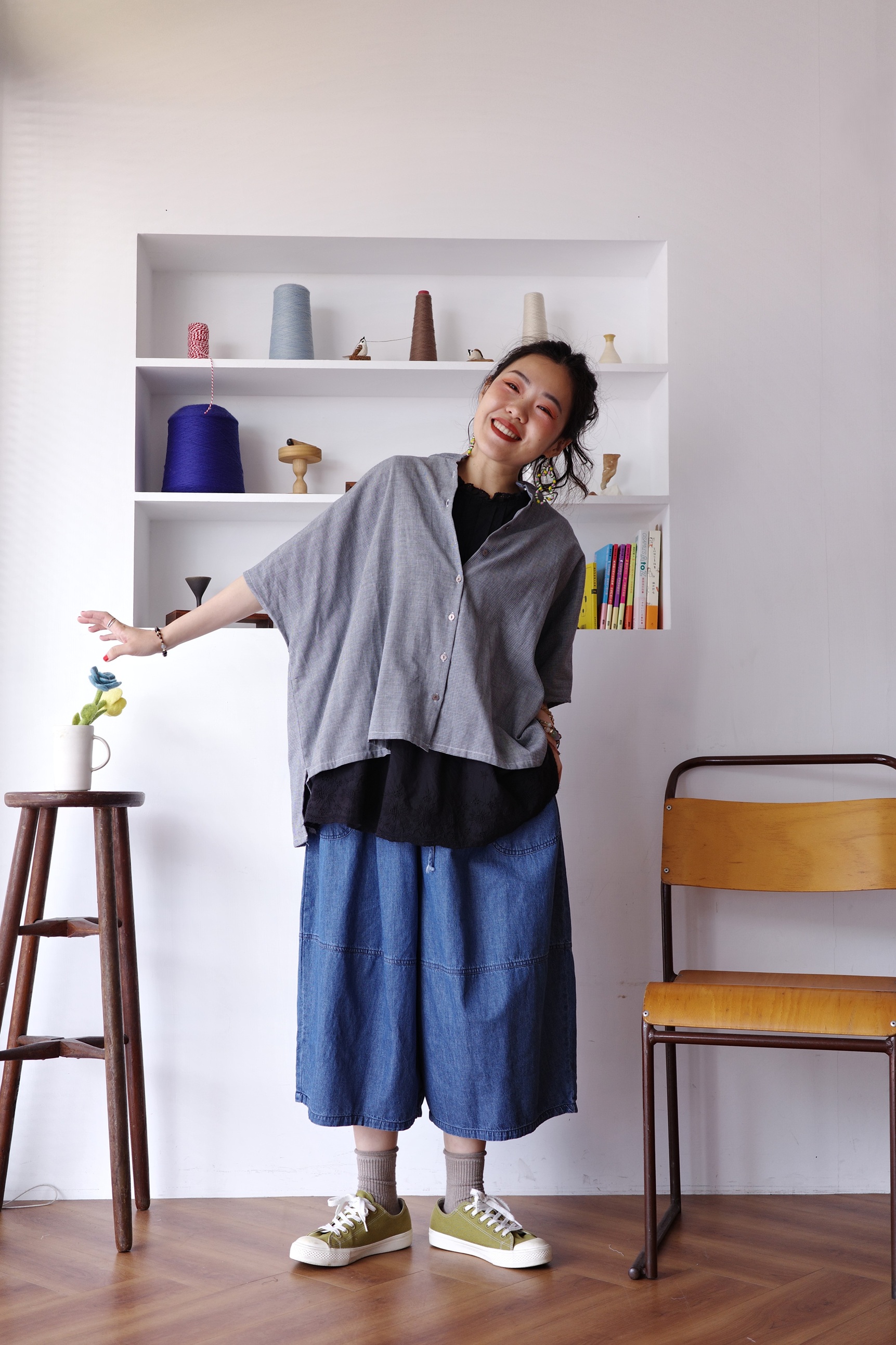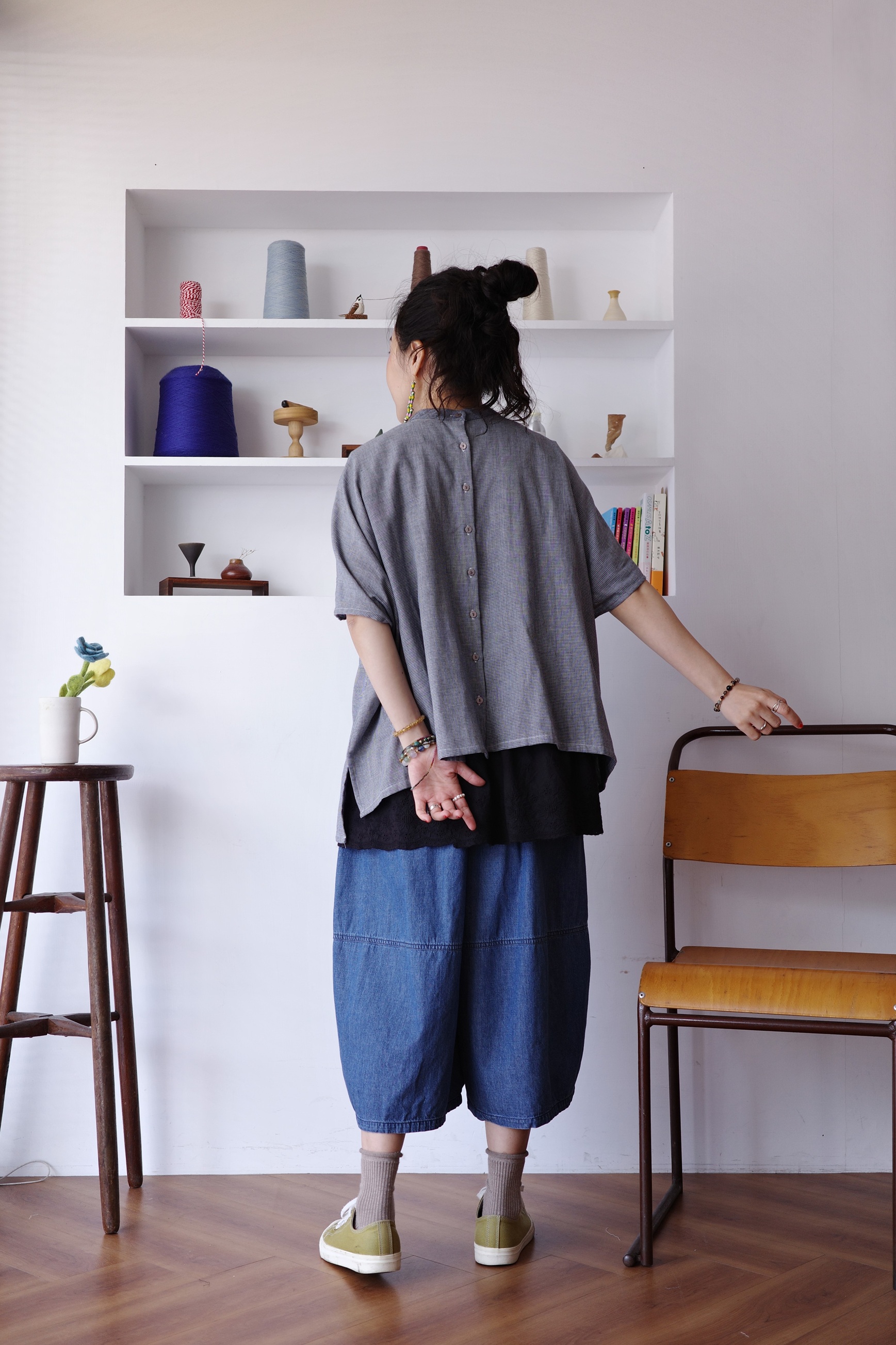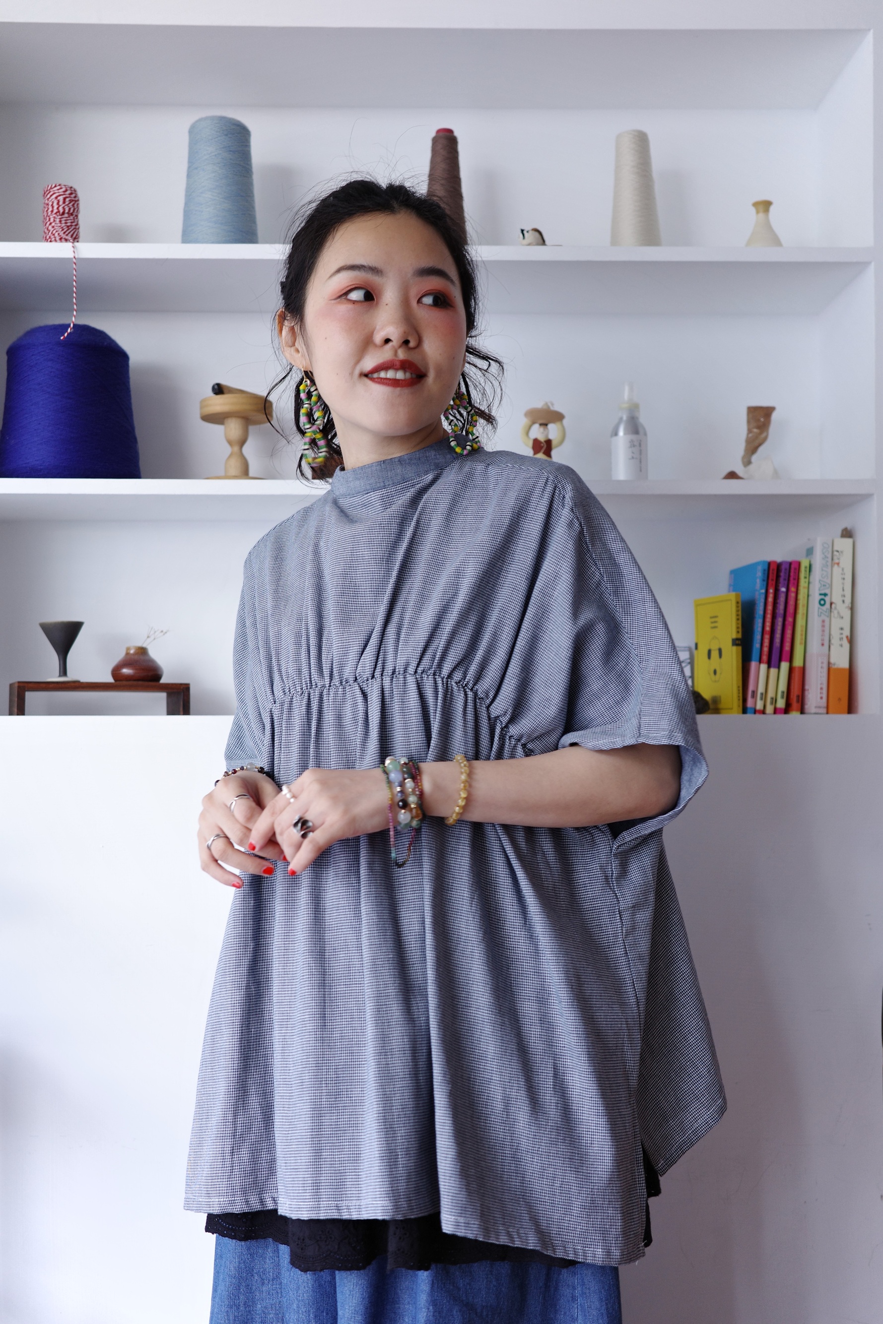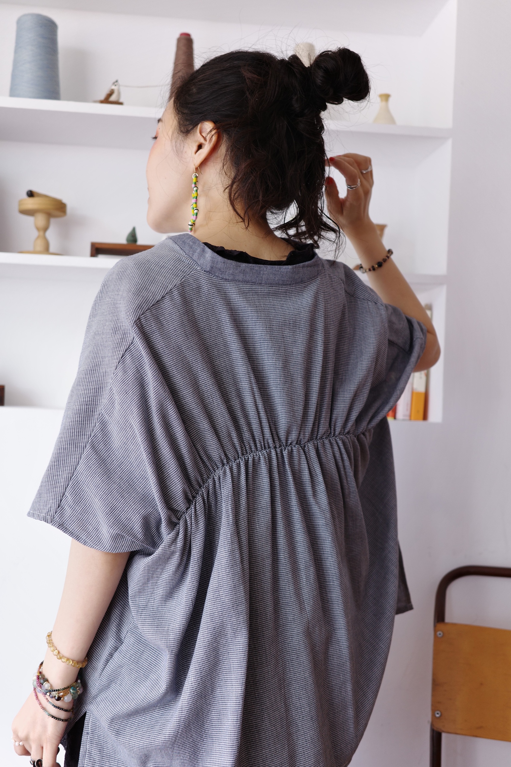 如果沒有抽皺的的話就是一款簡單中性的鬆身基本款襯衫,