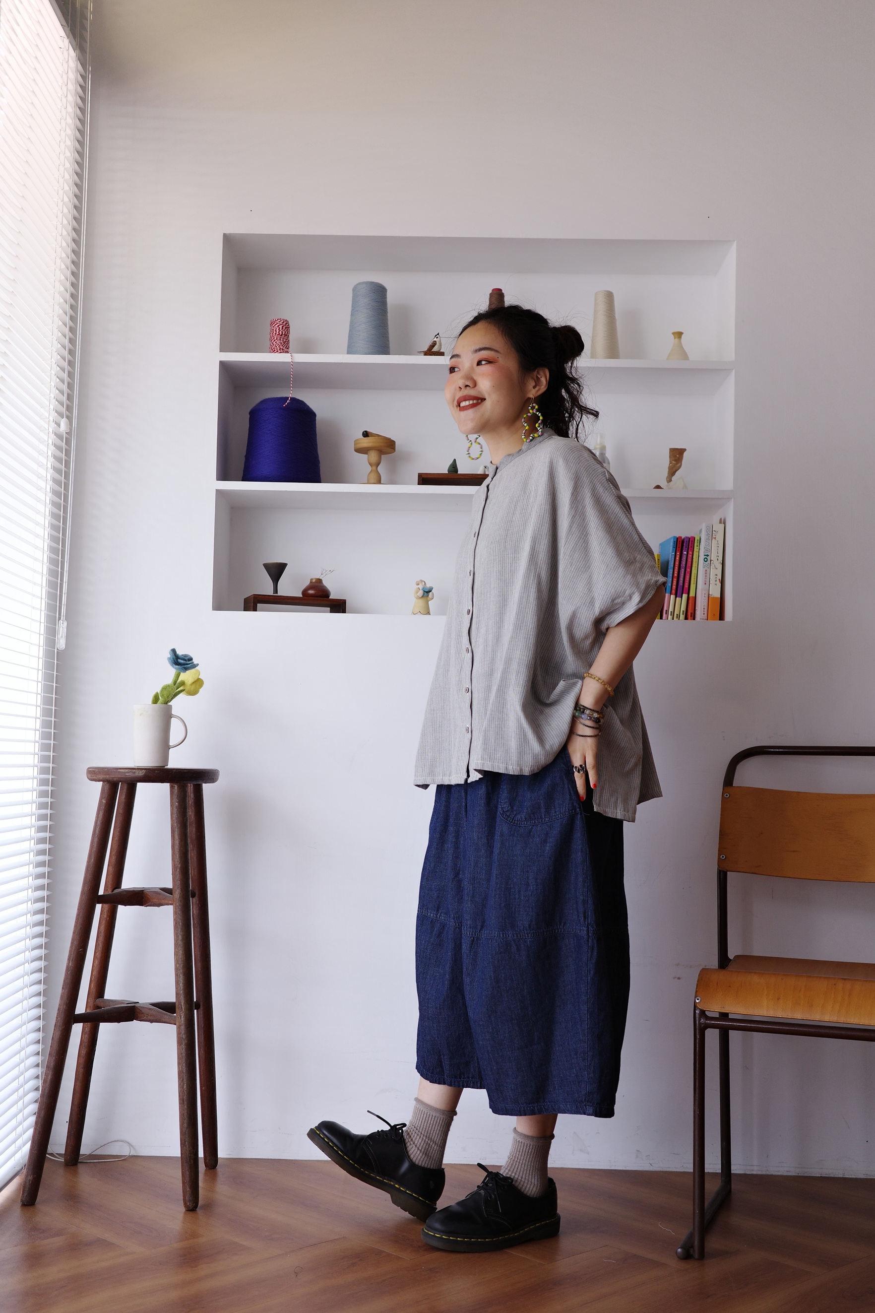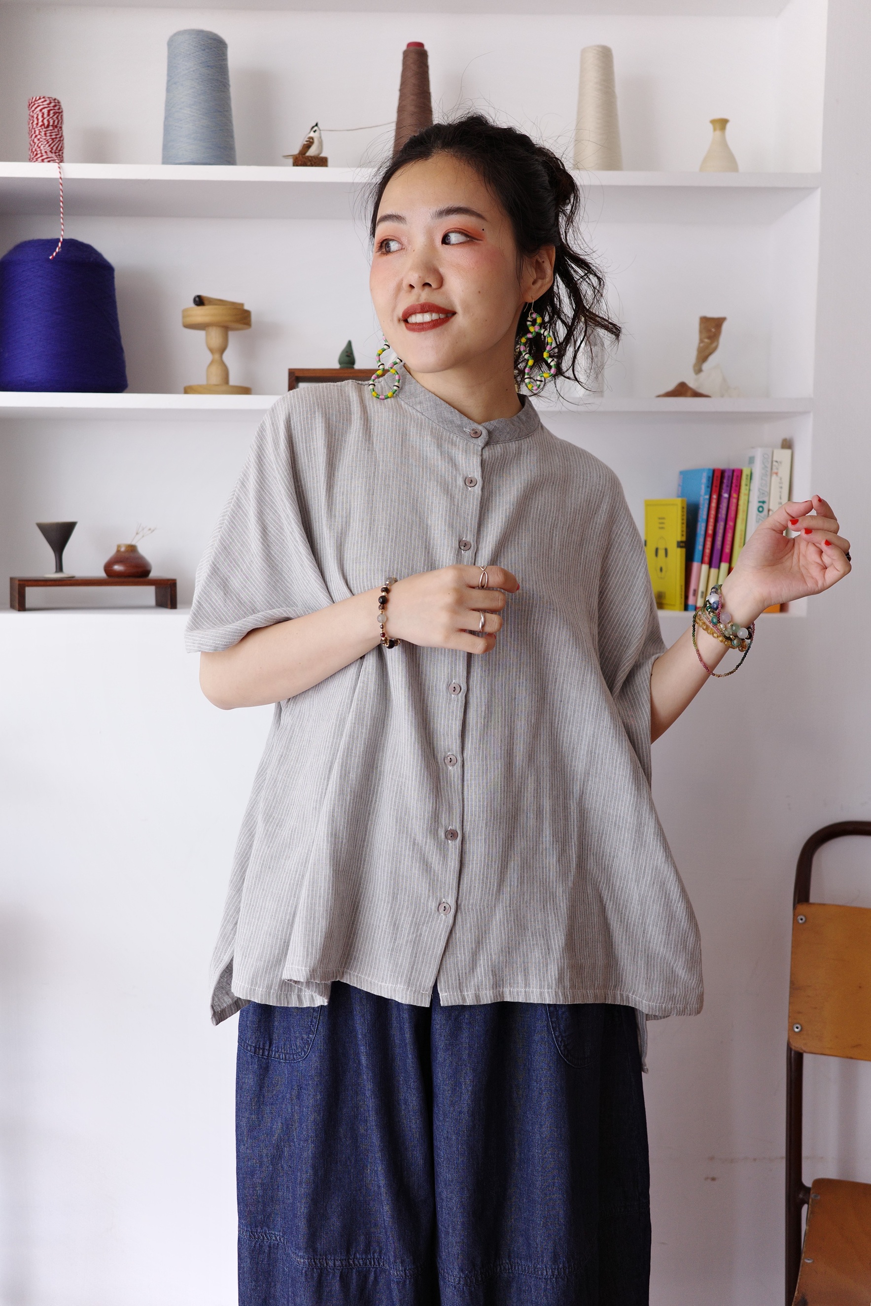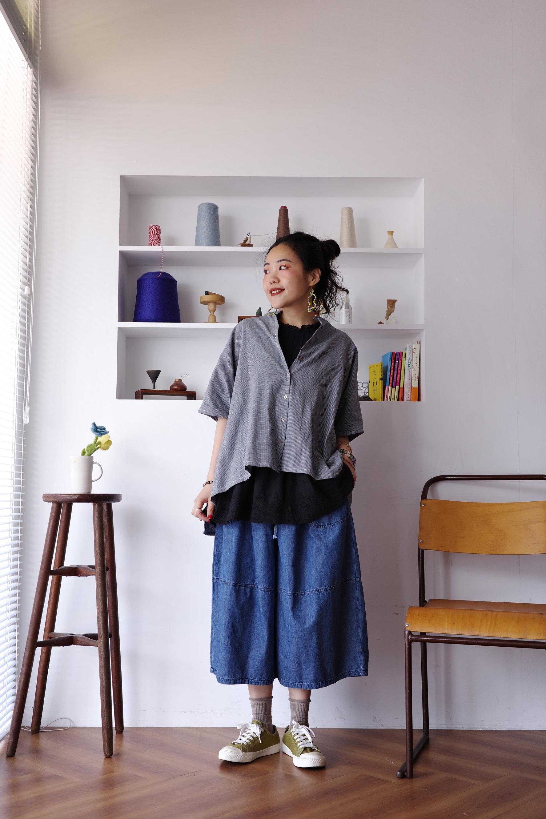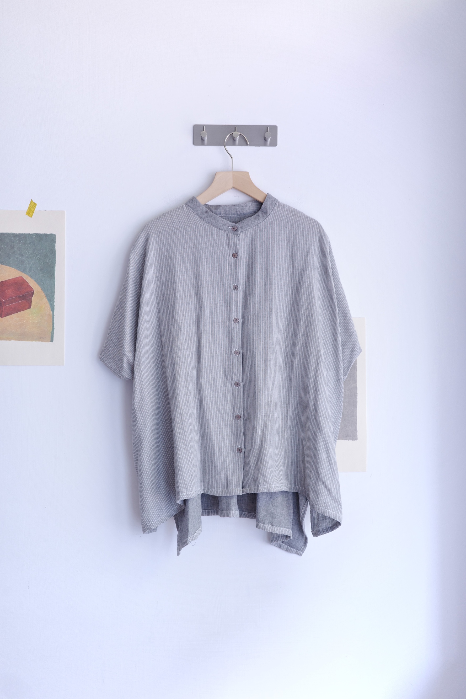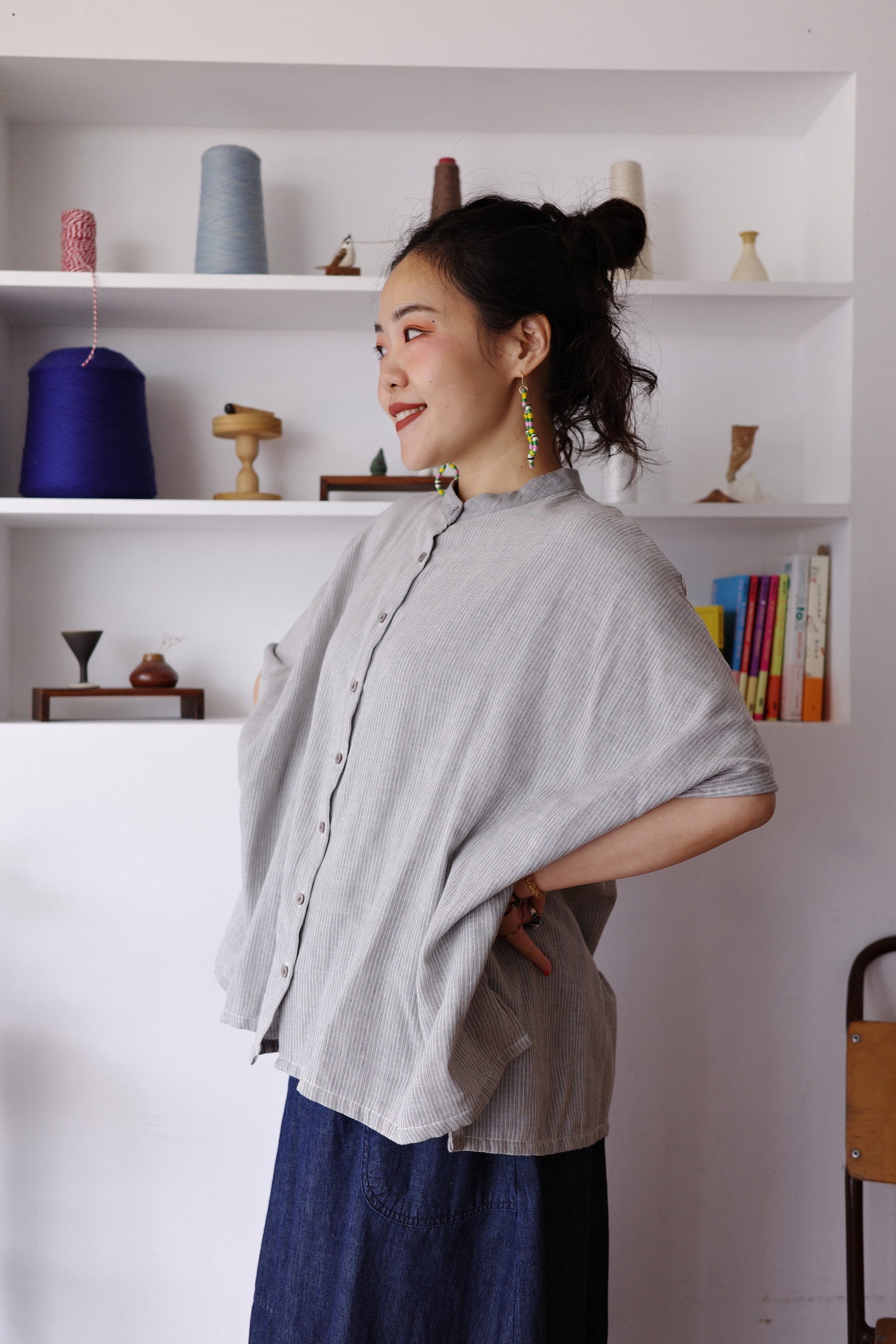 如果沒有抽皺的的話就是一款簡單中性的鬆身基本款襯衫,