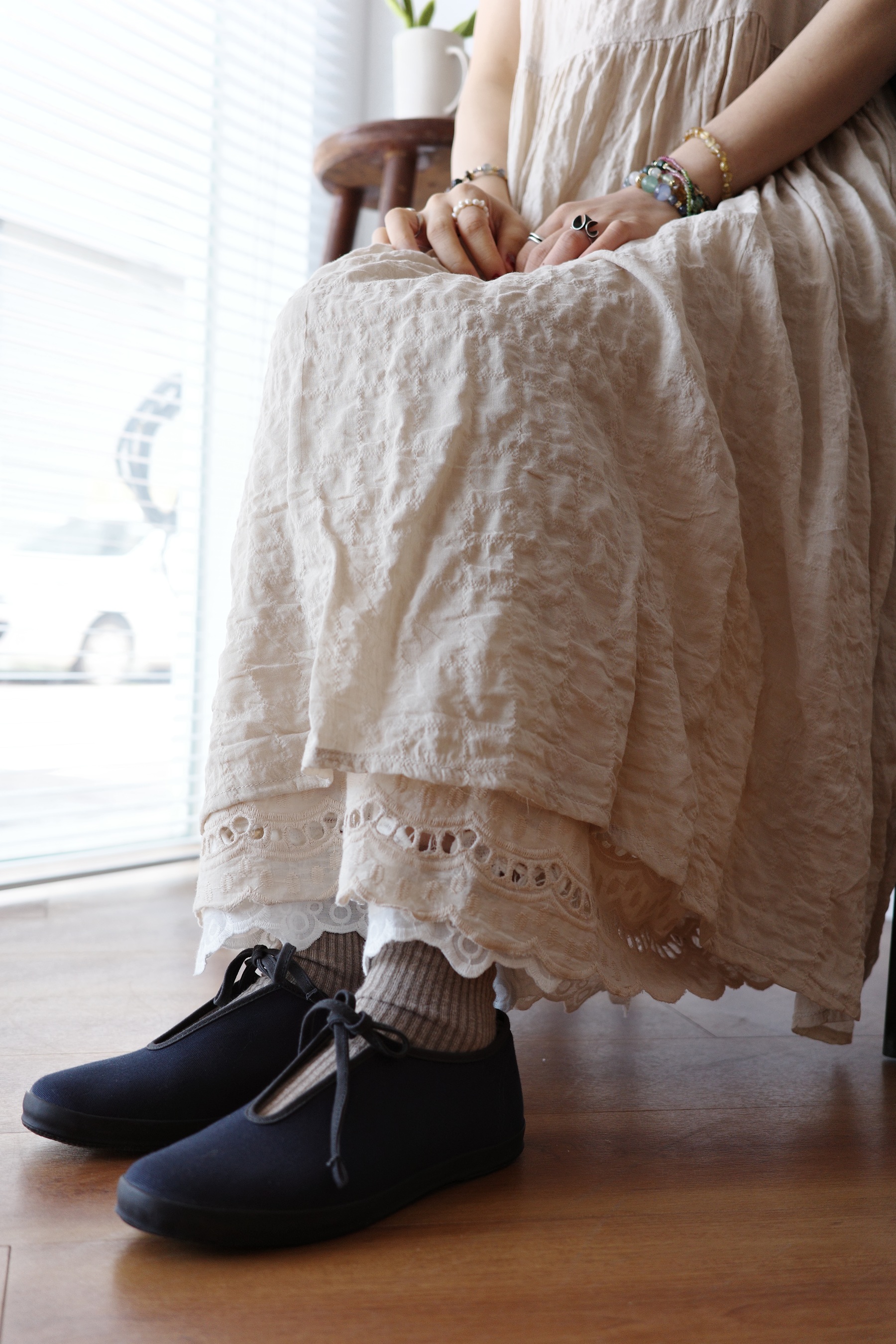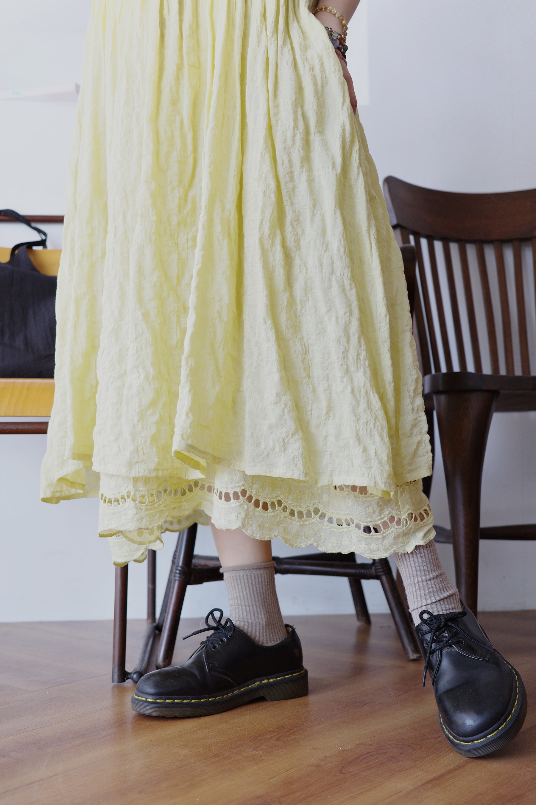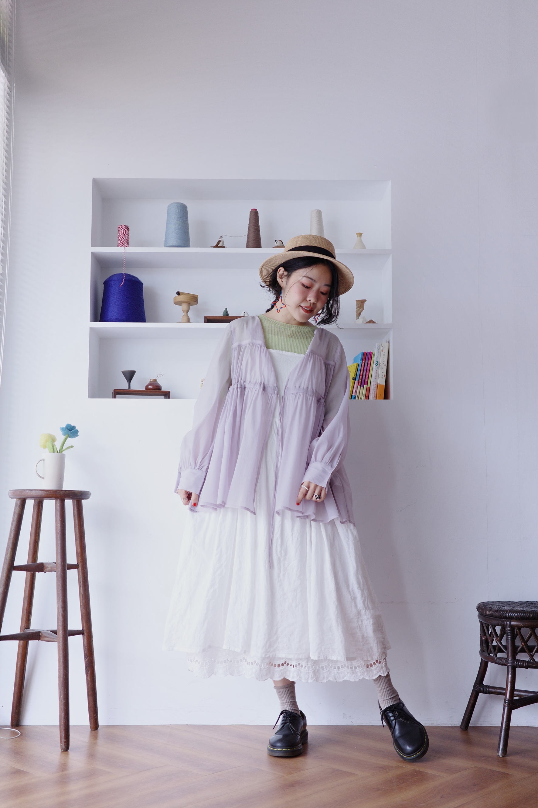 下擺鏤空波浪花邊設計是穿搭更精緻的關鍵。