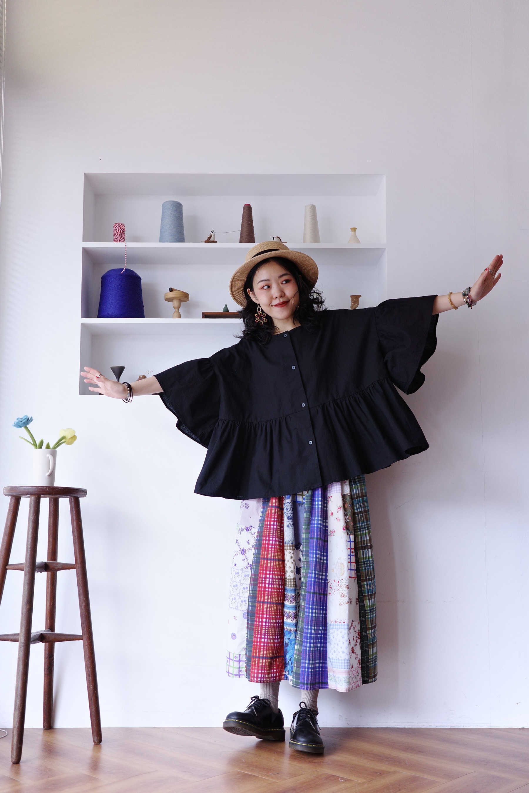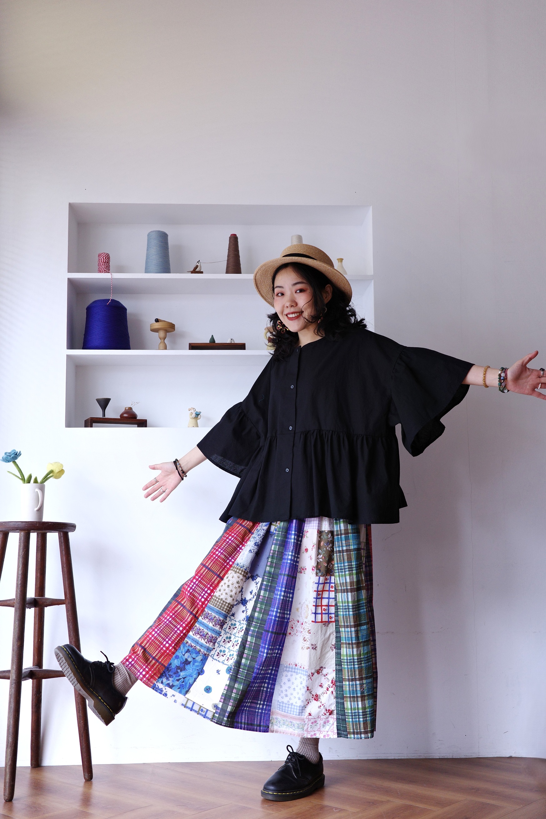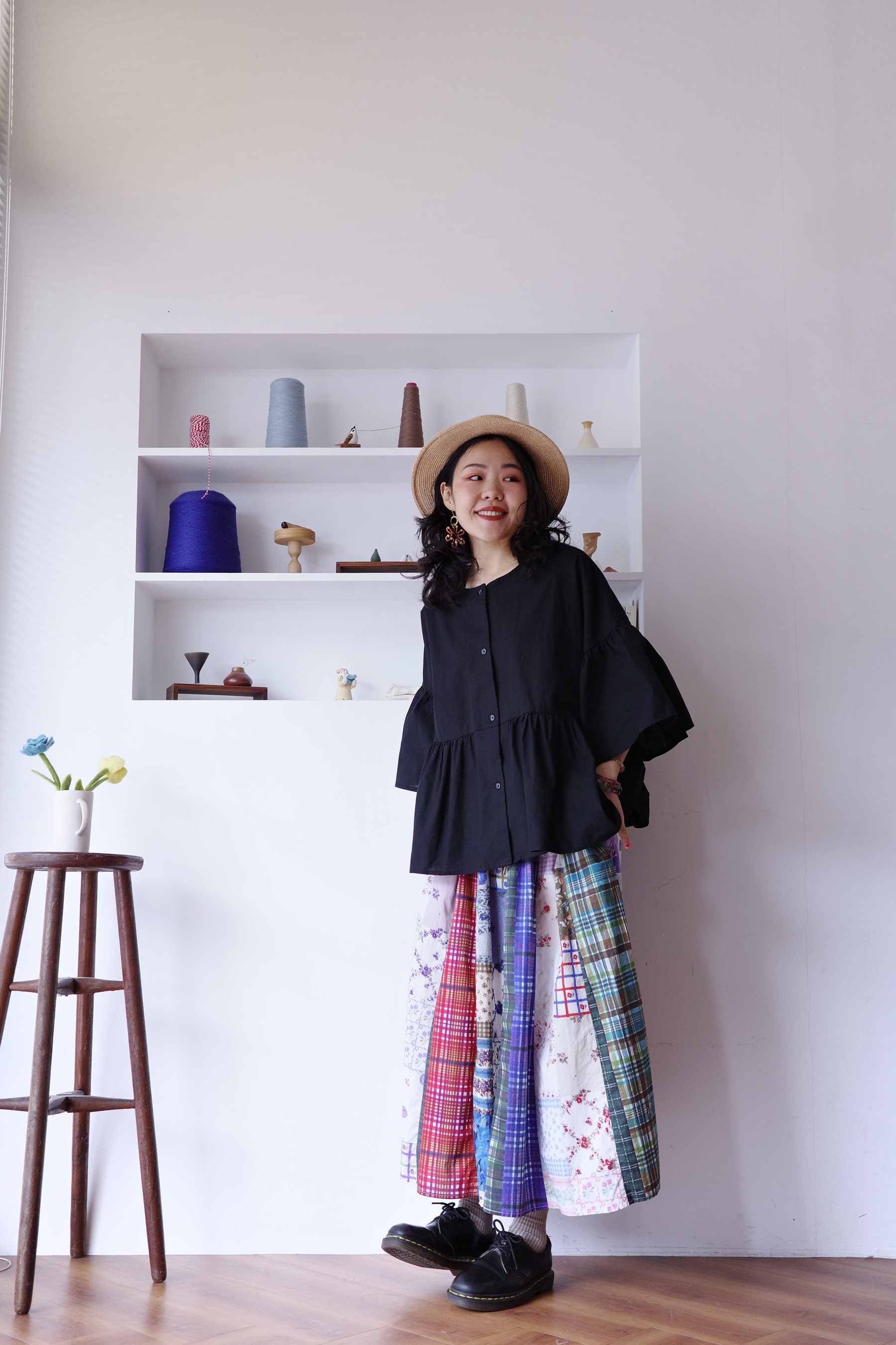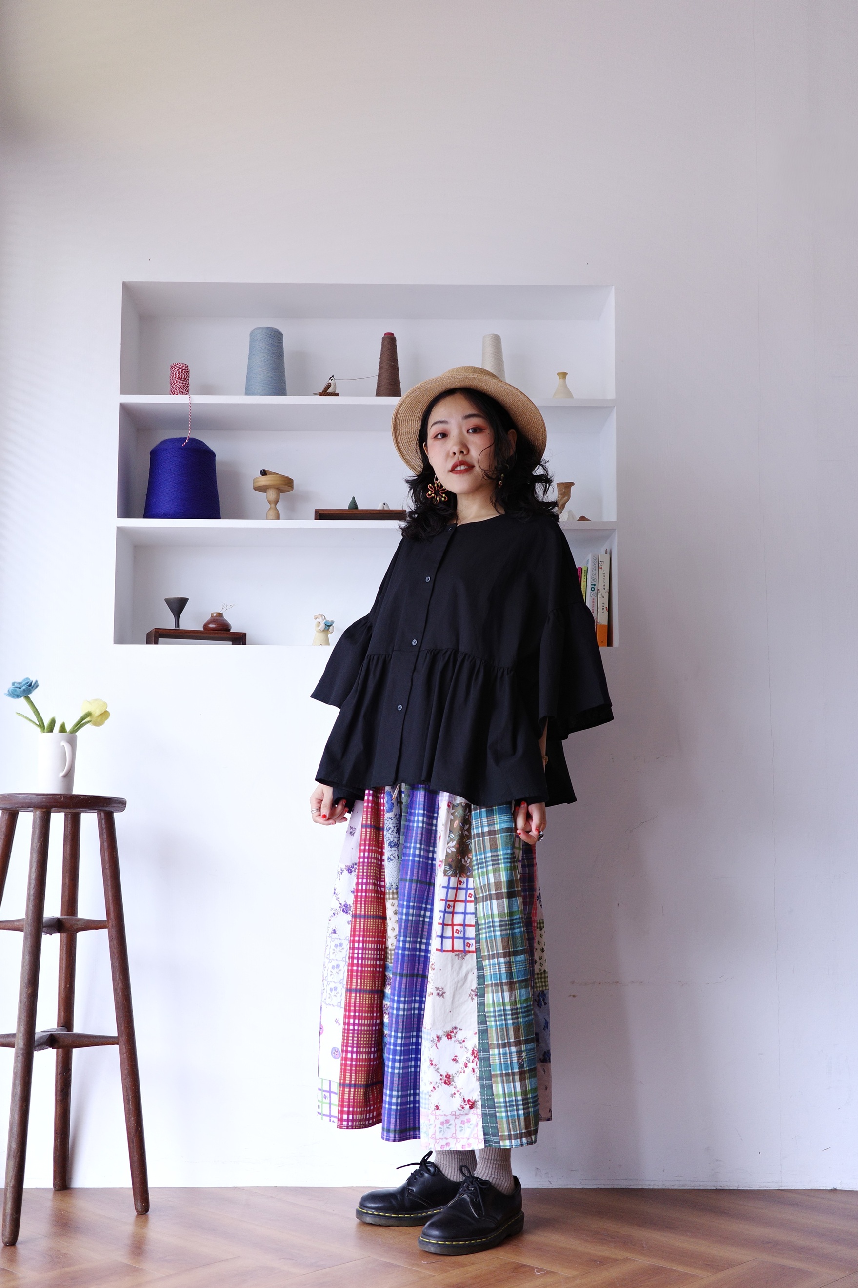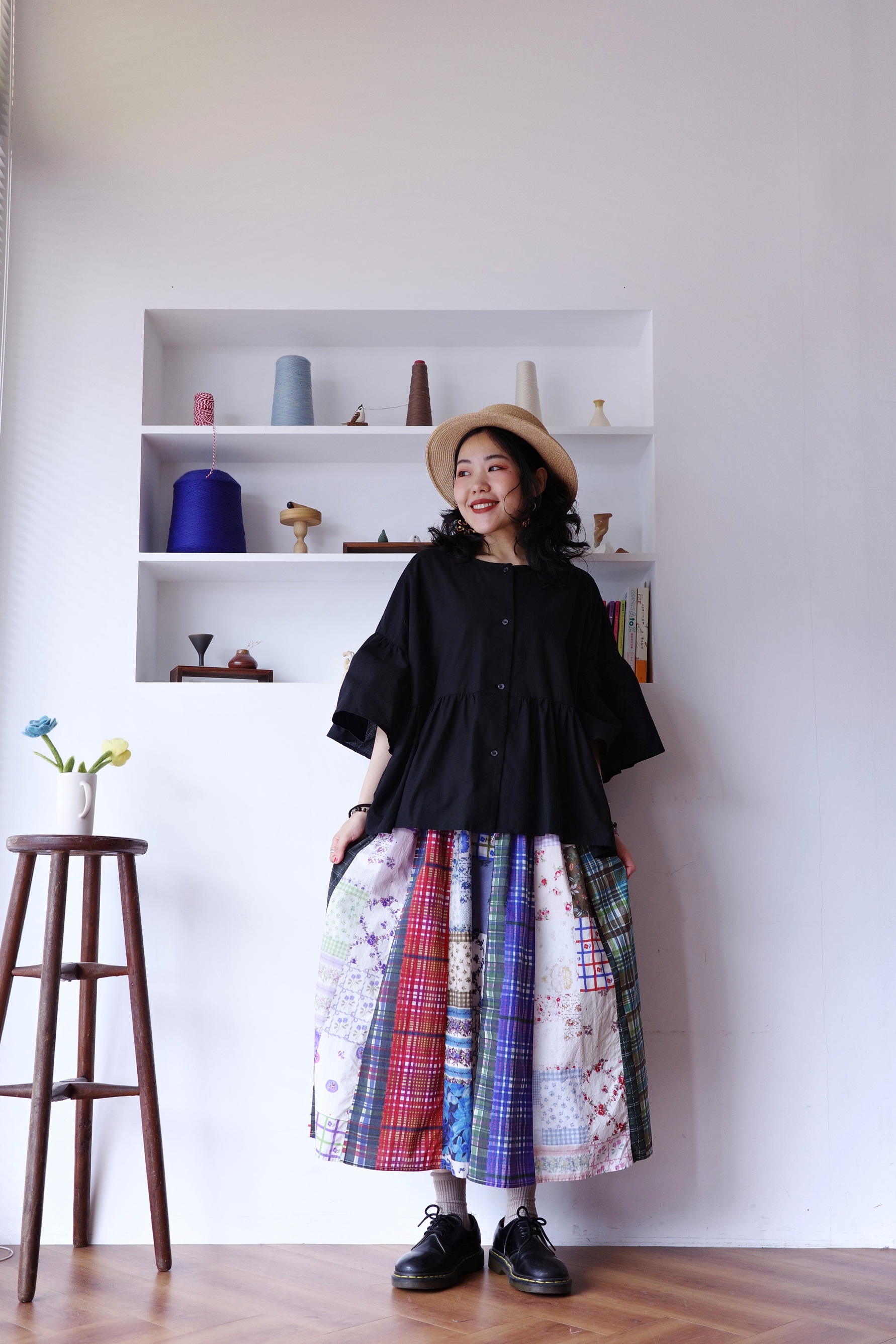 花花格紋拼布半身裙