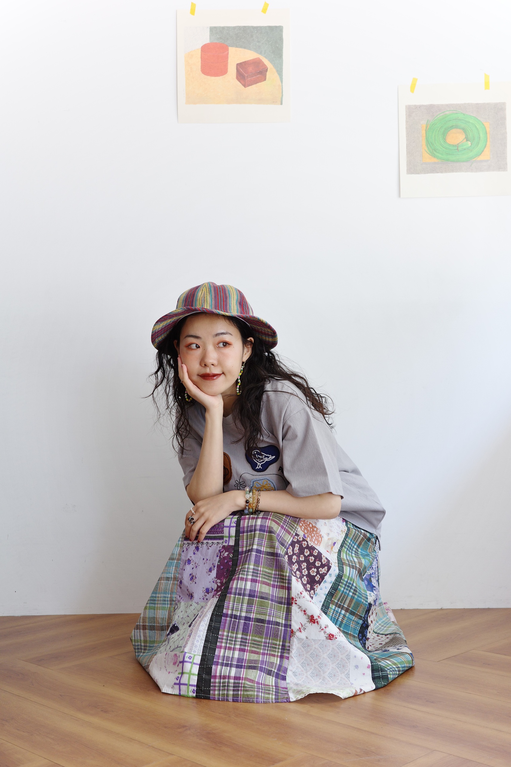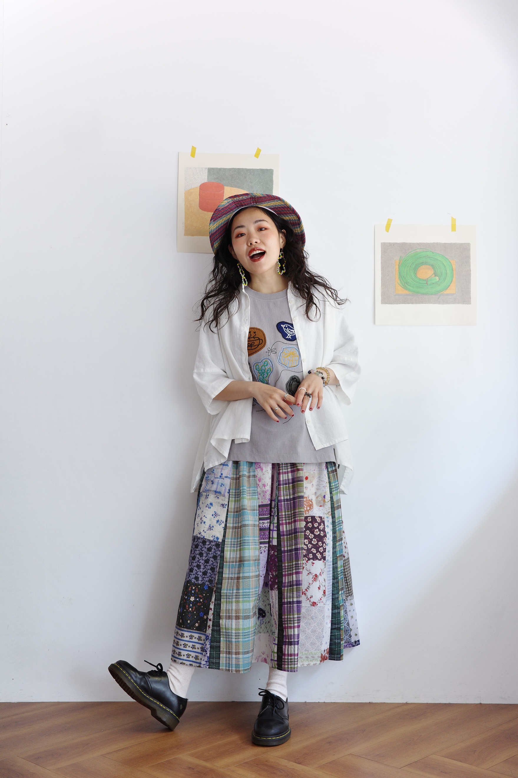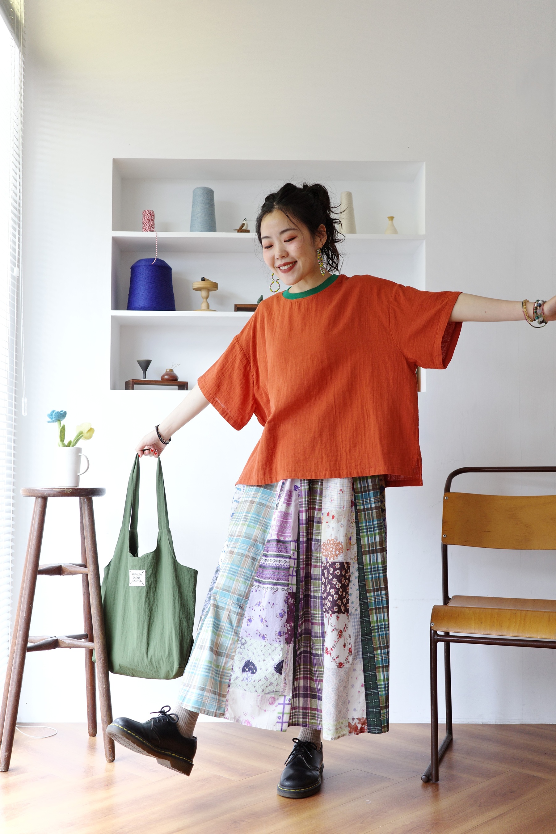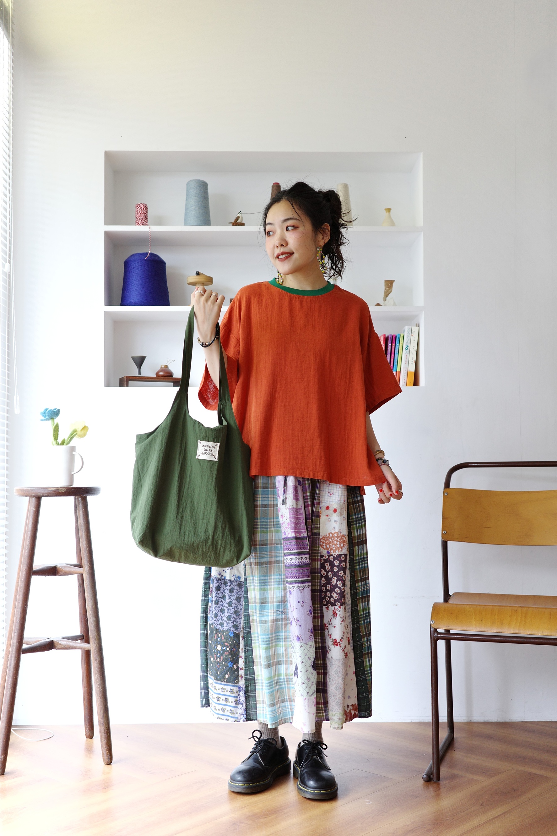 花色可愛的拼布裙,搭配簡單的T-shirt就可以出門