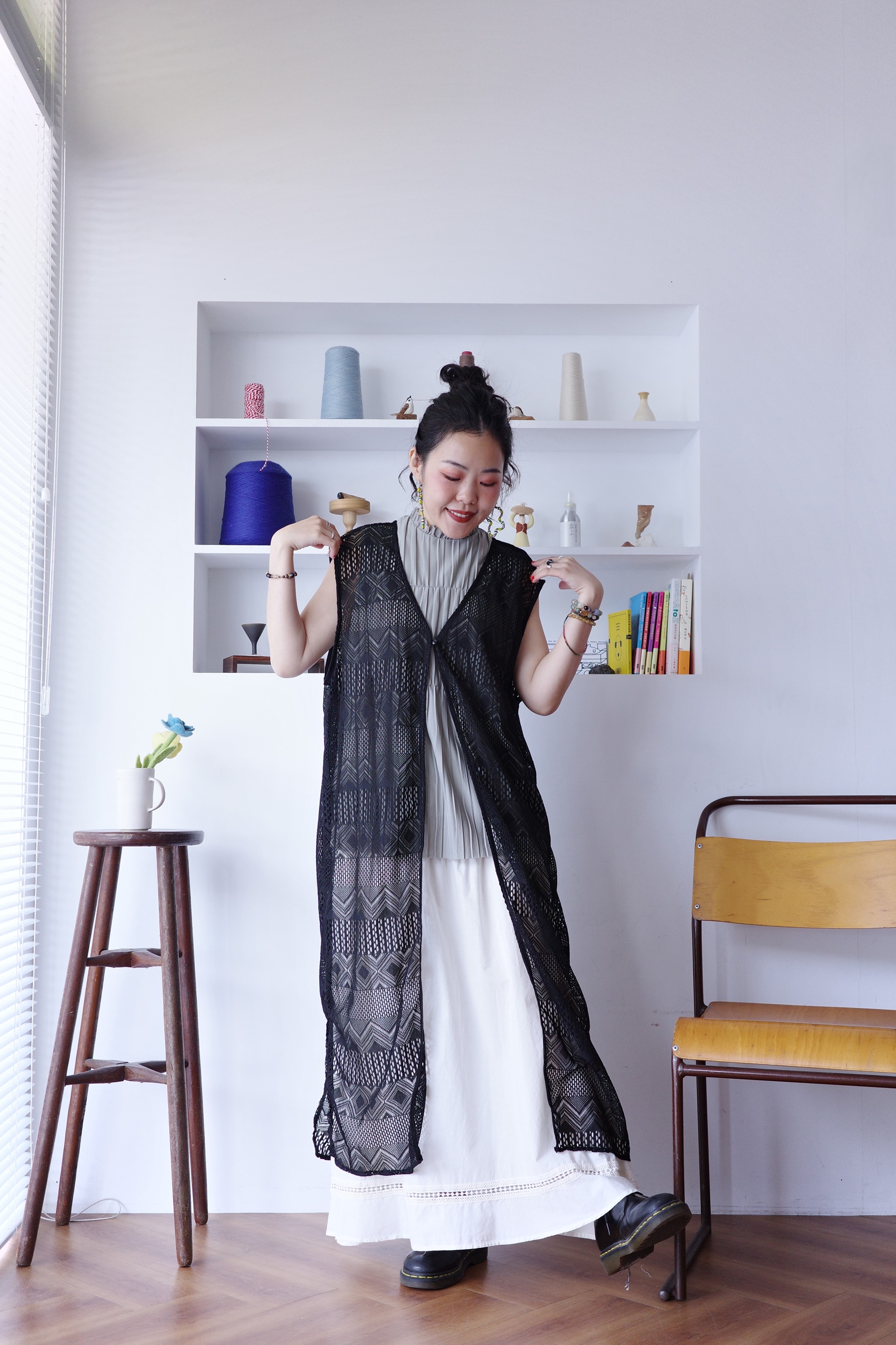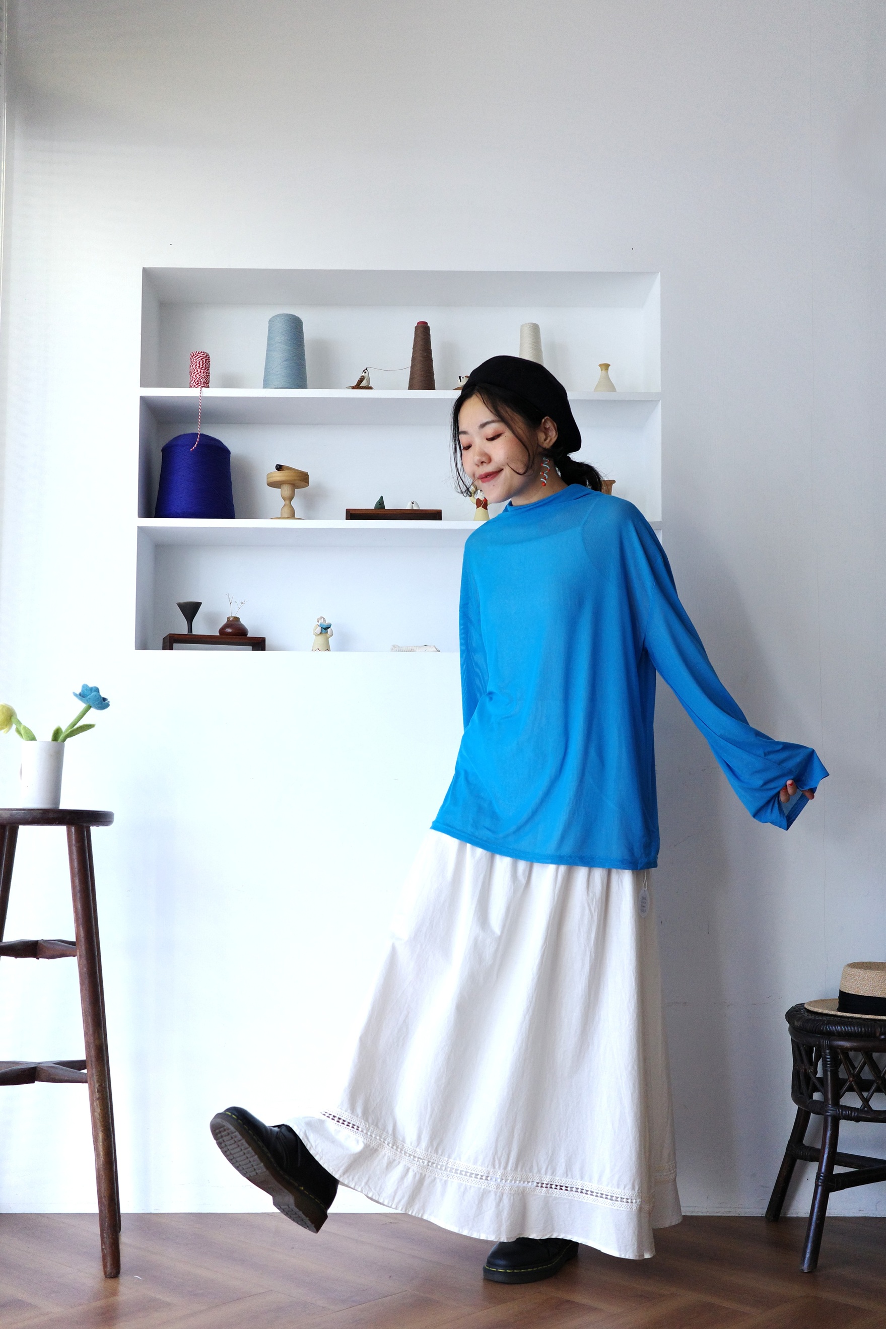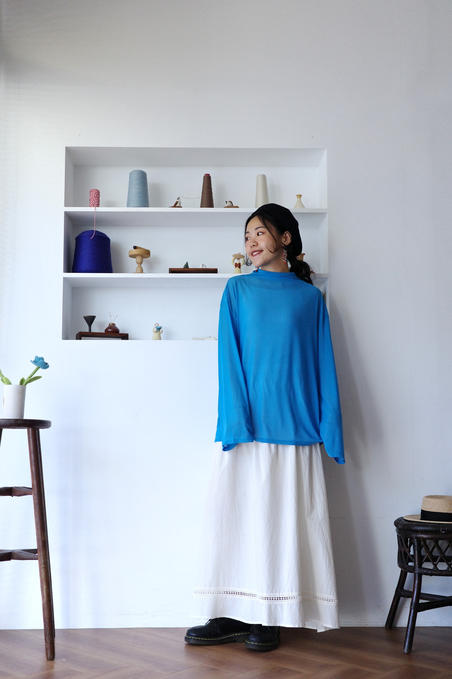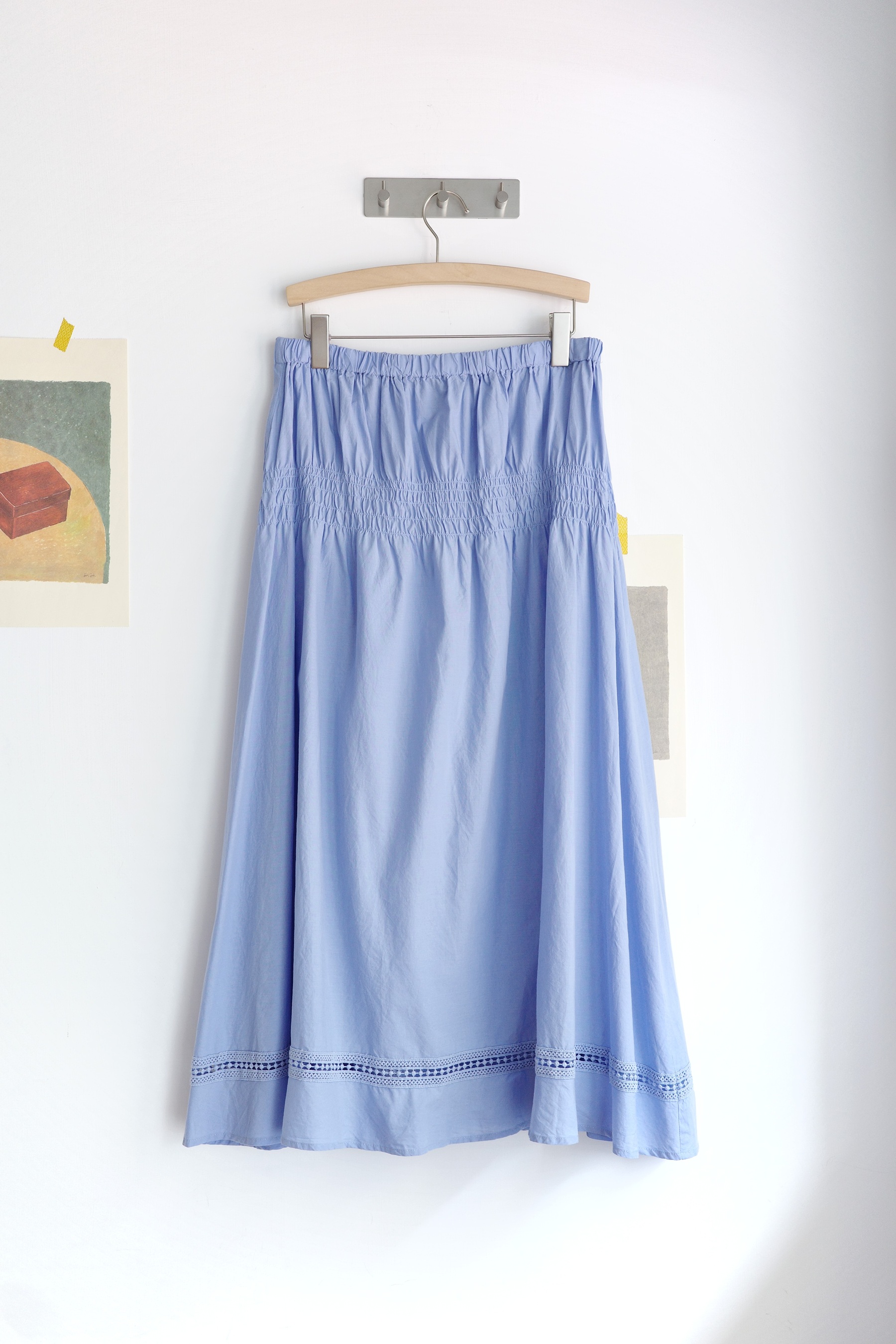 可以作為一般半身裙著用,裙擺鏤空織帶點綴, 還可以當作平口小洋裝,或是繫上內側的吊帶變細肩吊帶洋裝!!