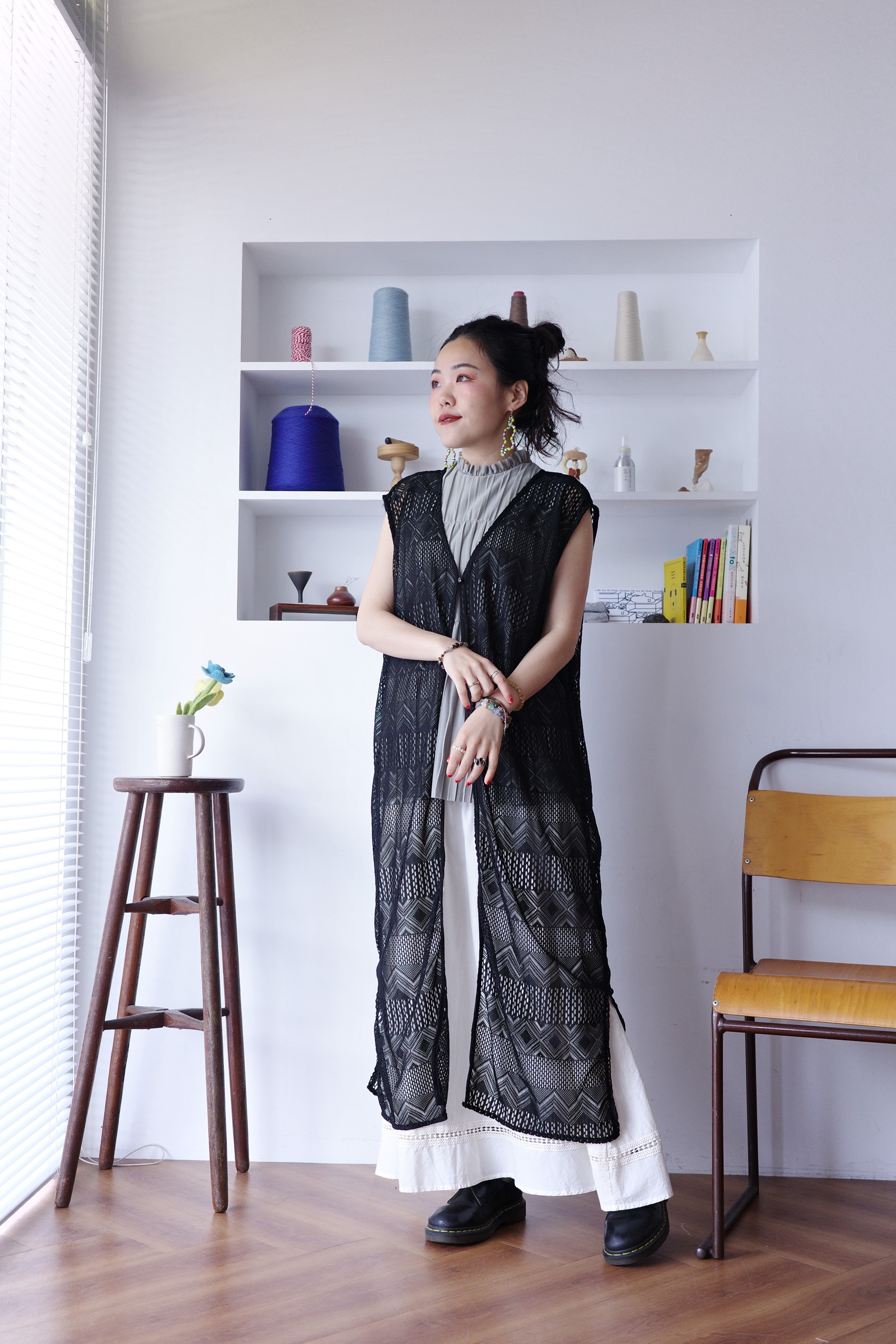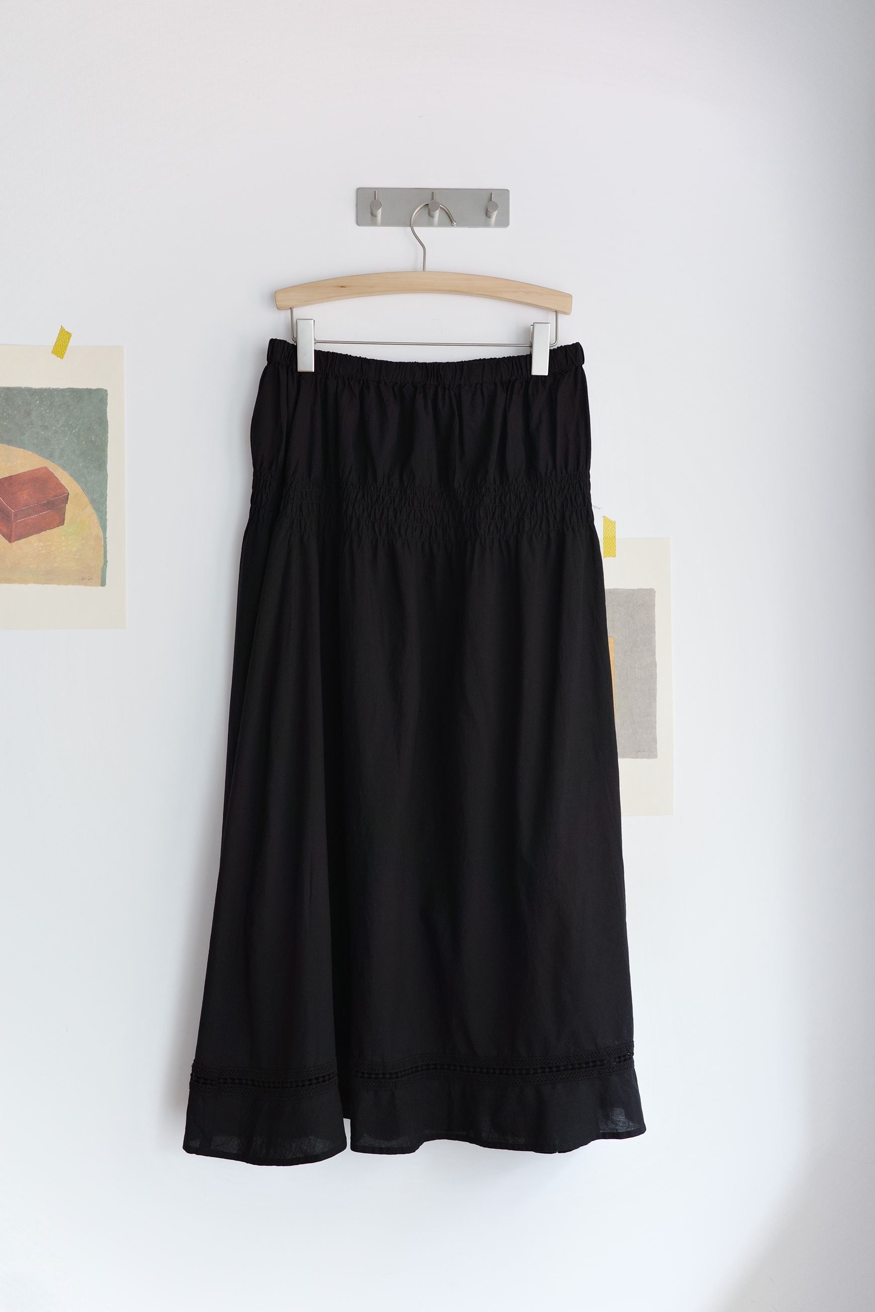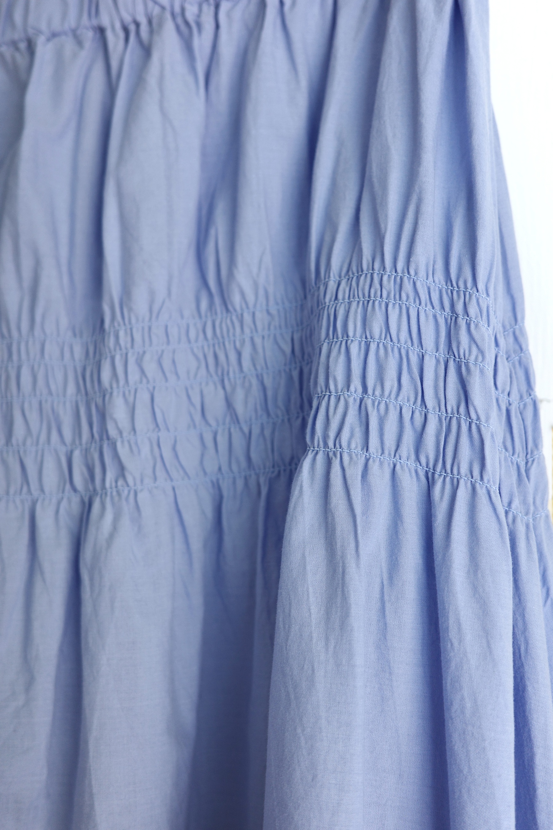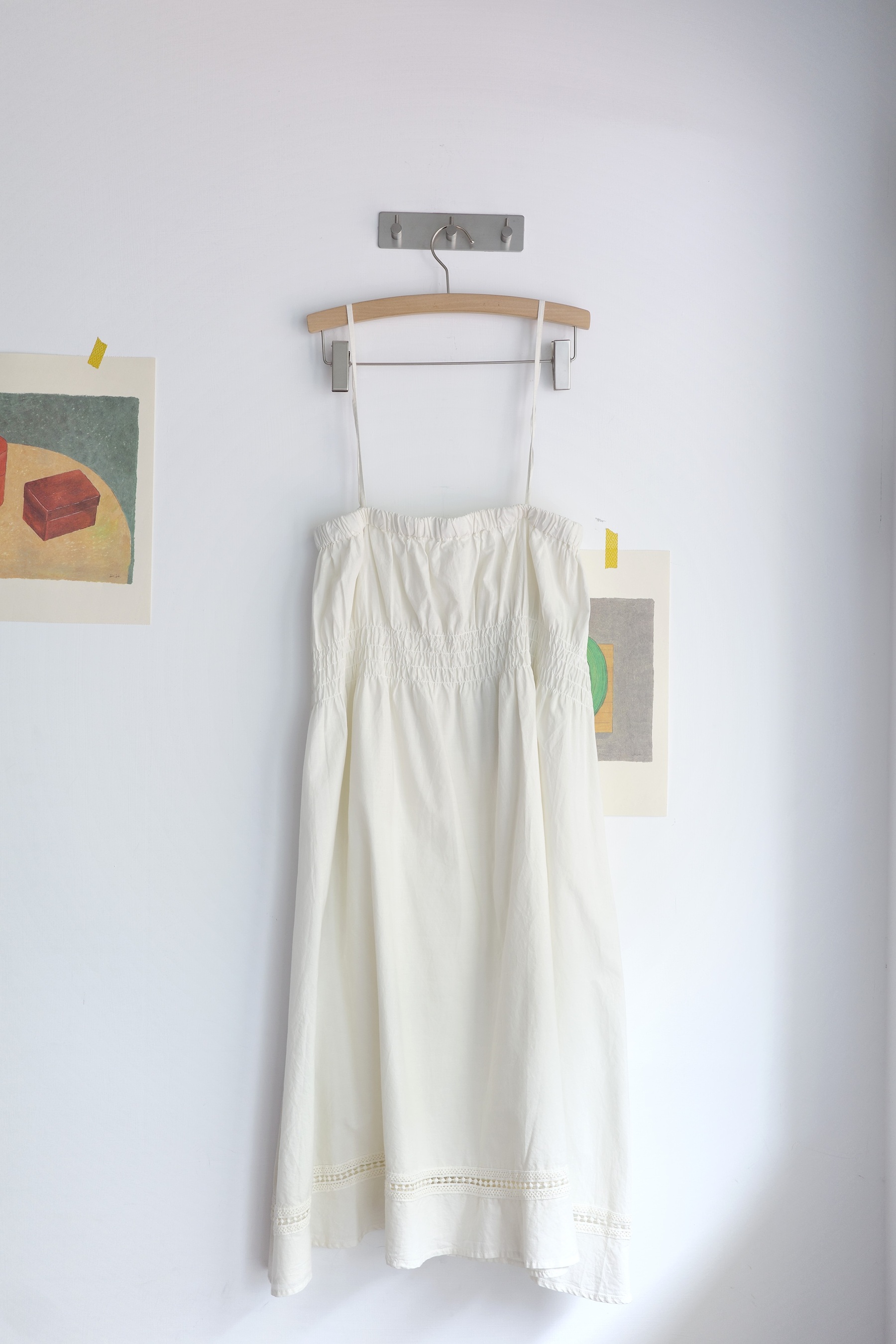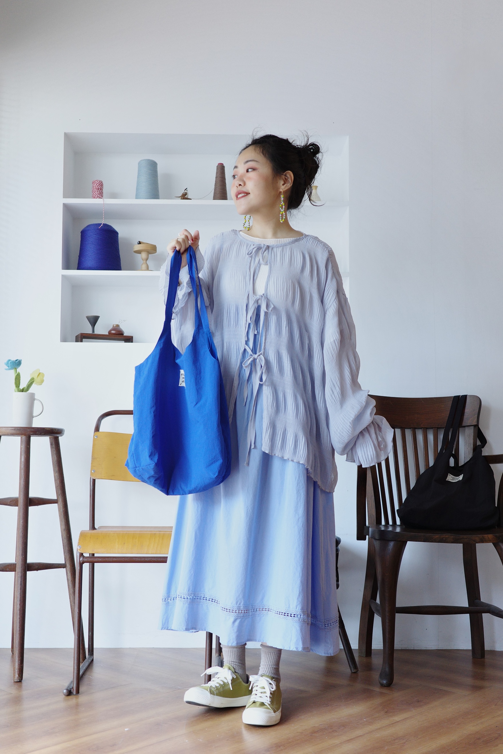 可以作為一般半身裙著用,裙擺鏤空織帶點綴, 還可以當作平口小洋裝,或是繫上內側的吊帶變細肩吊帶洋裝!!