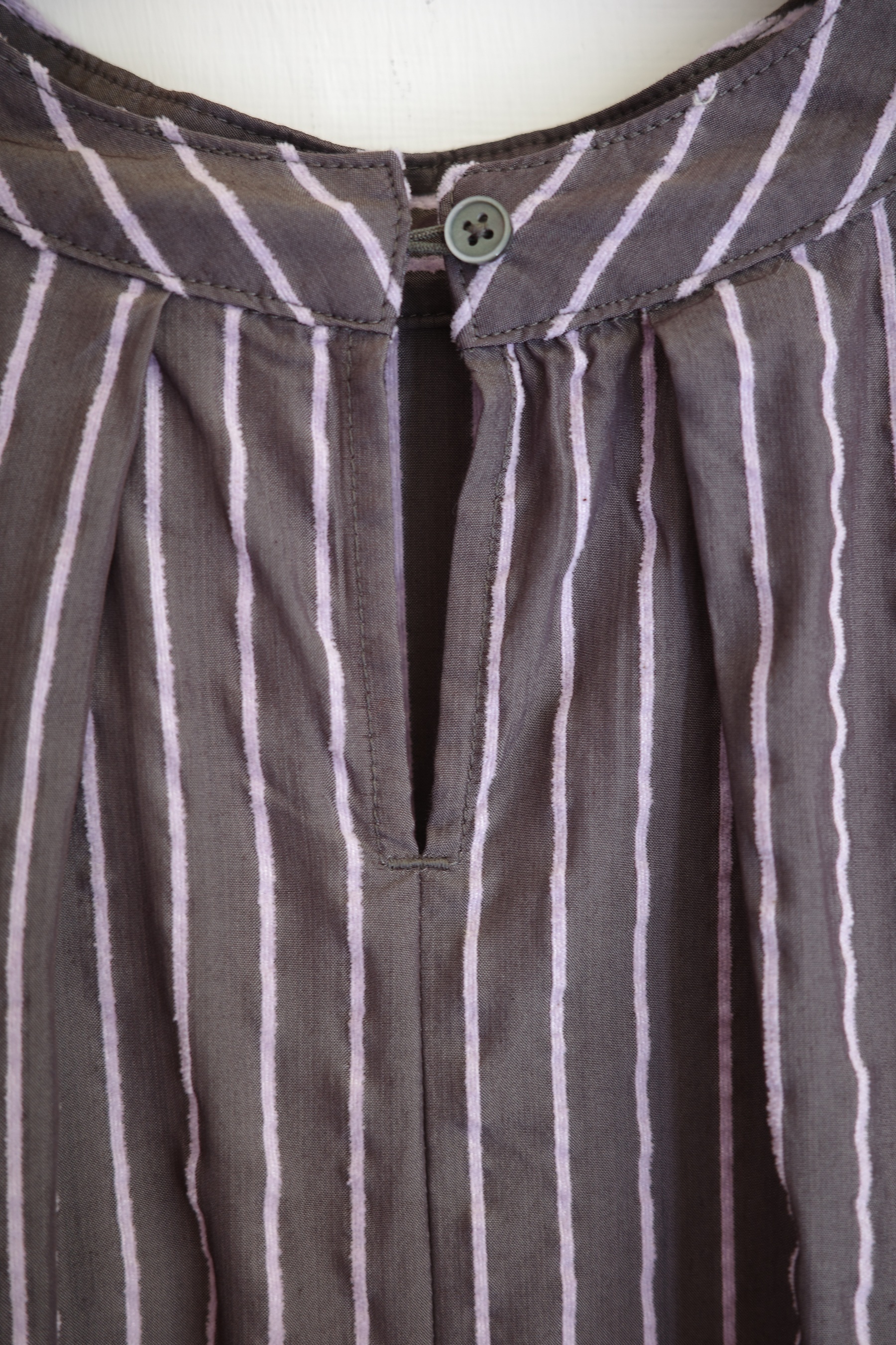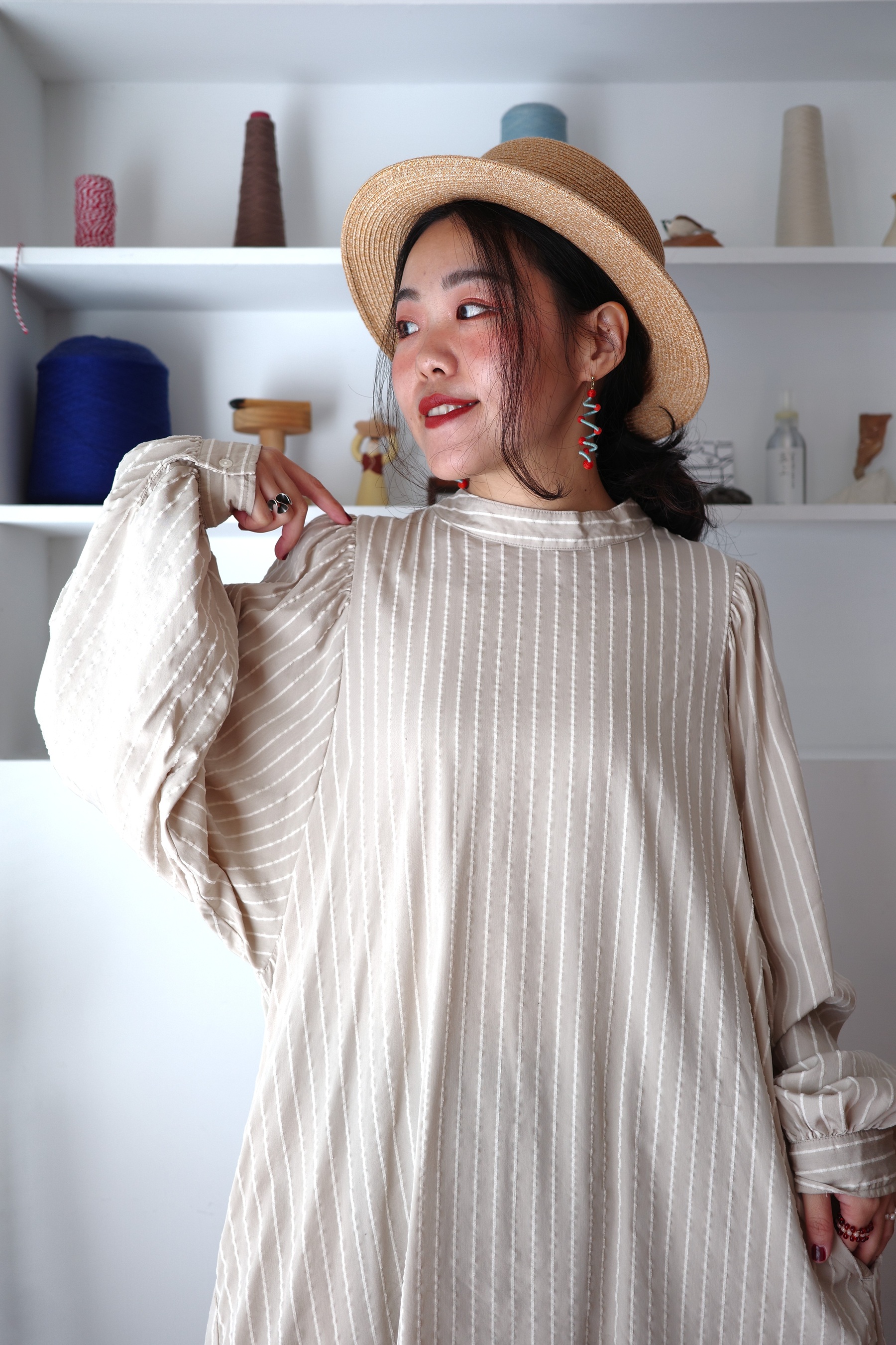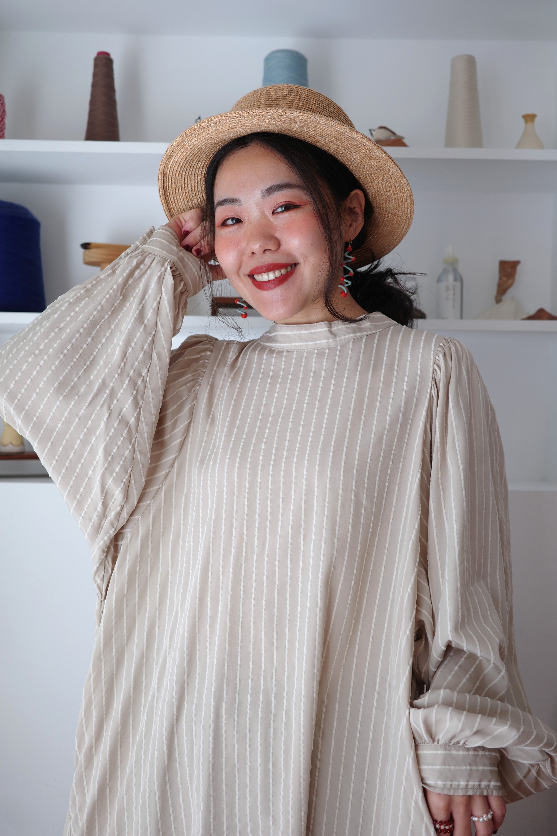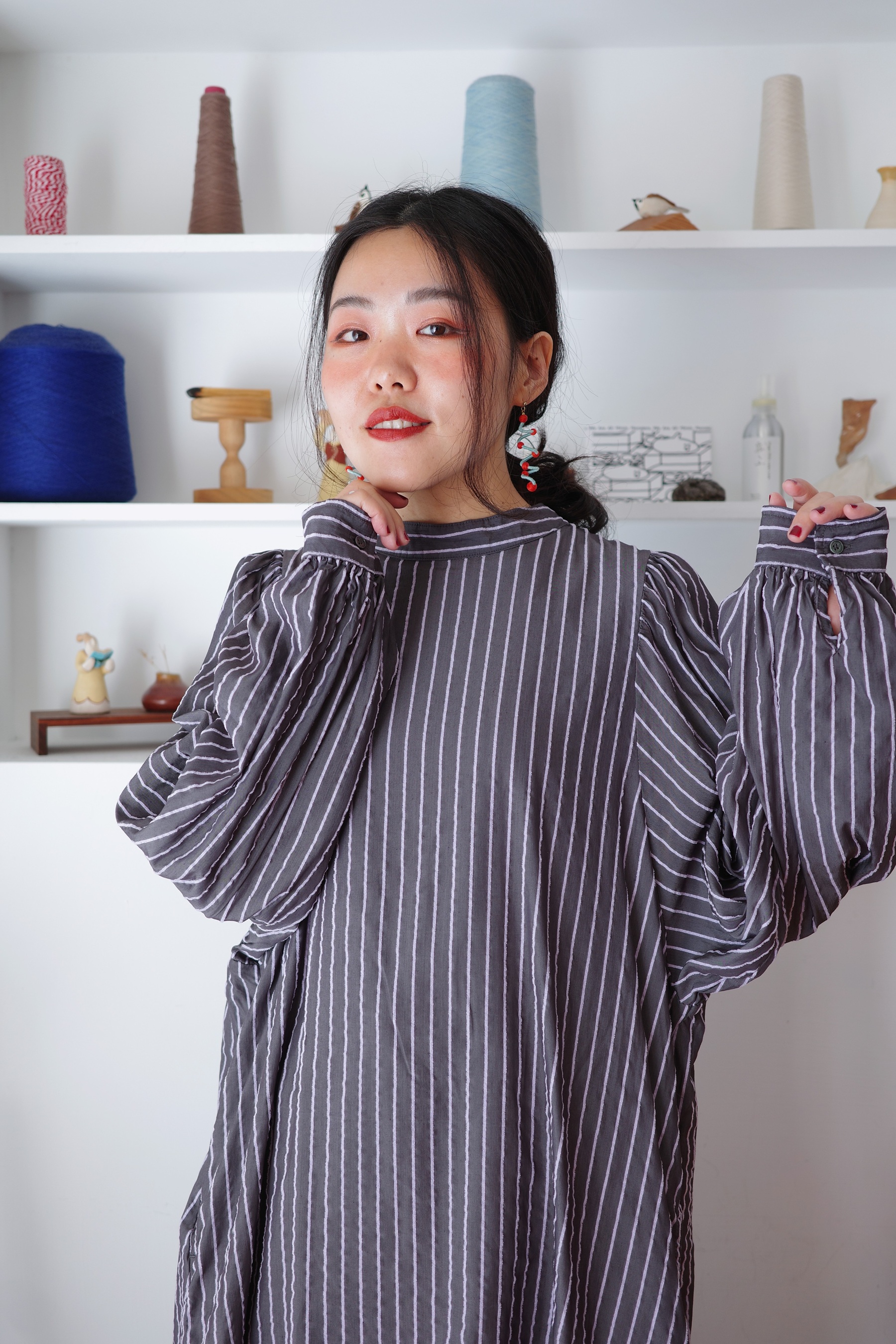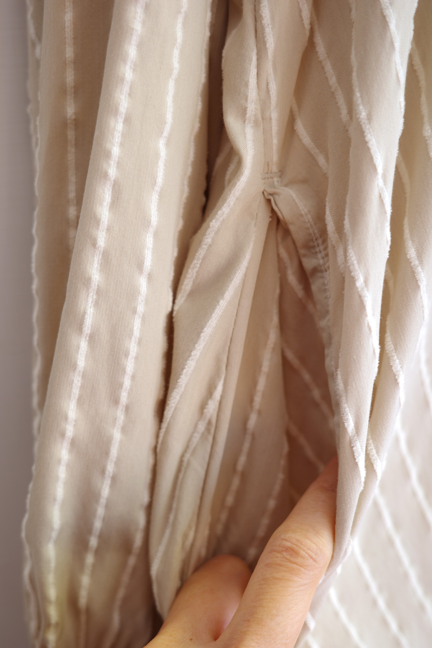 布料直紋緹花,嫘縈混紡的材質非常親膚舒適。