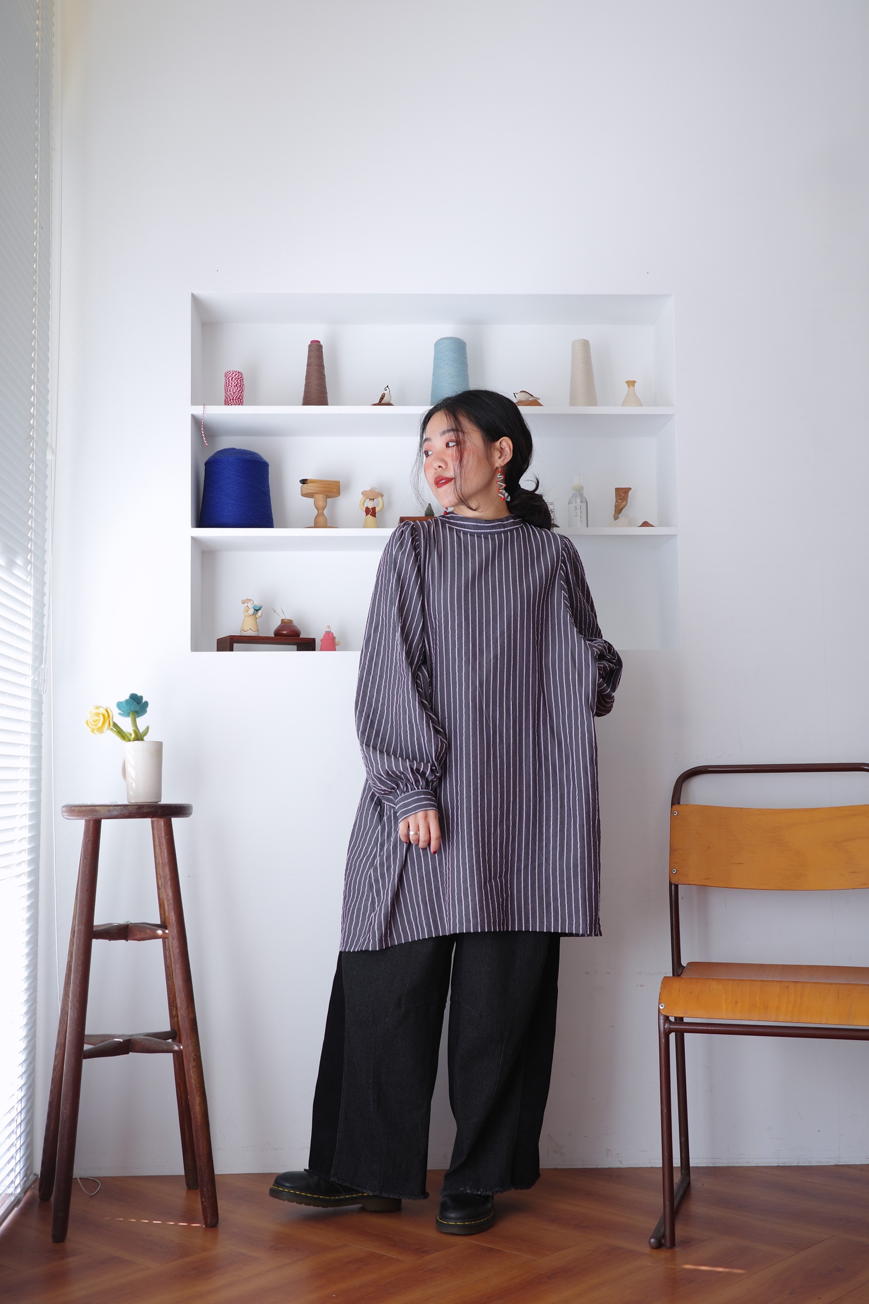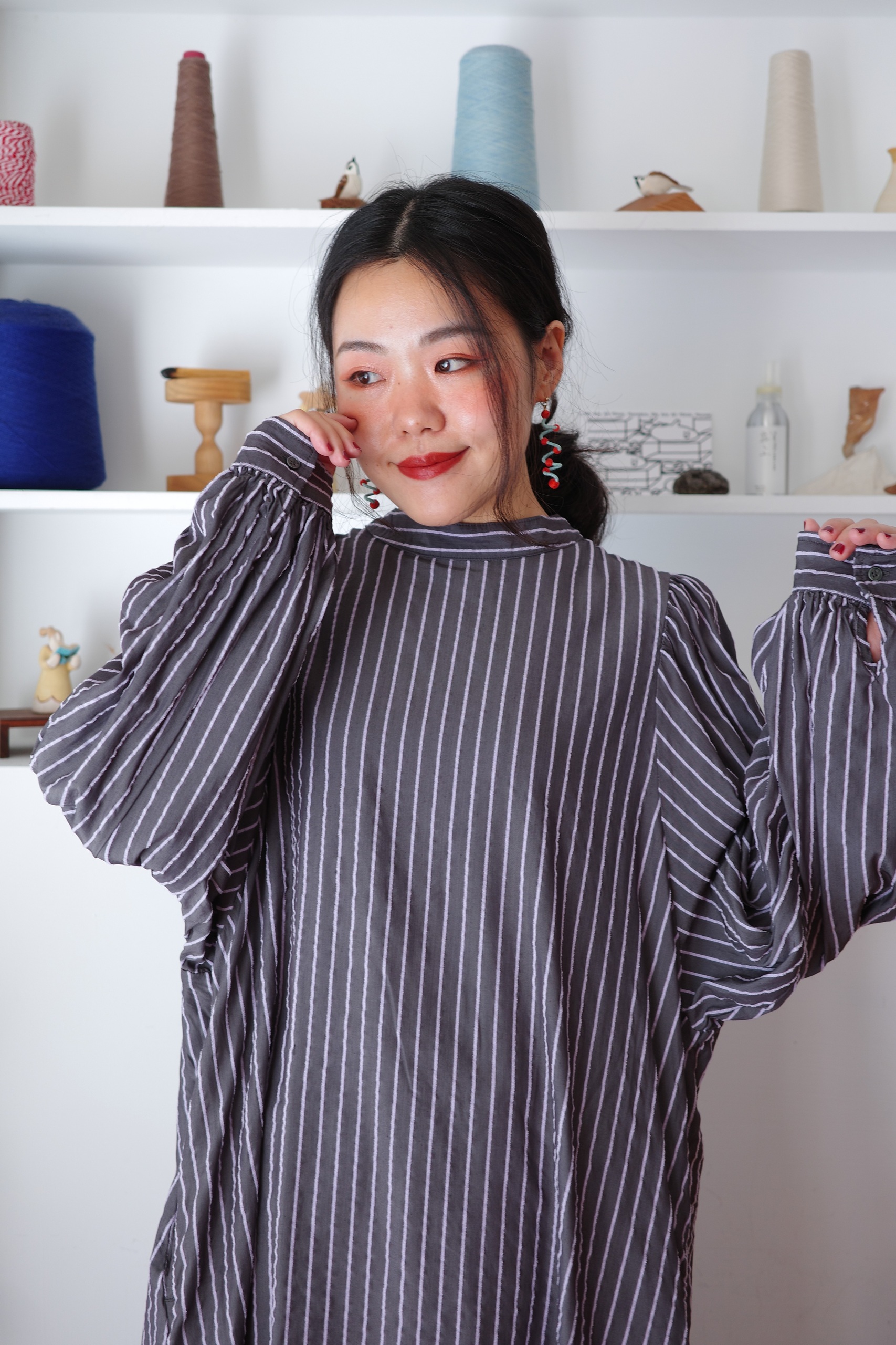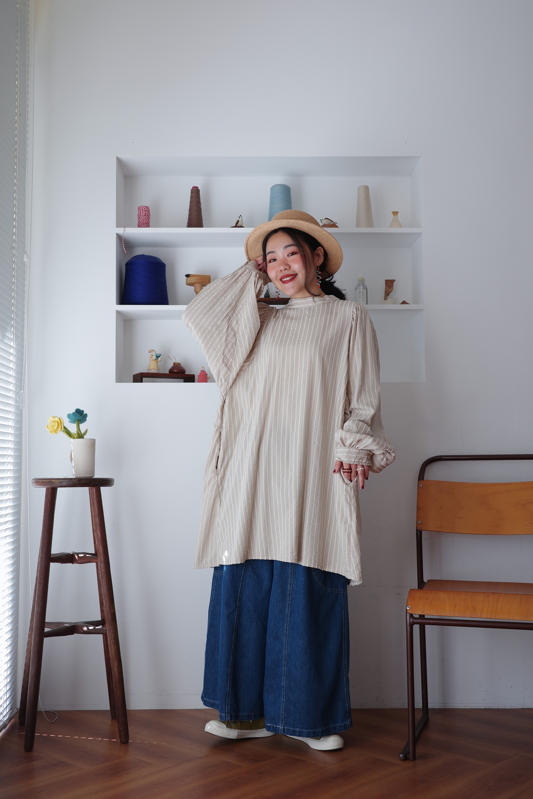 𓏭份量感優雅抓摺袖直紋緹花上衣