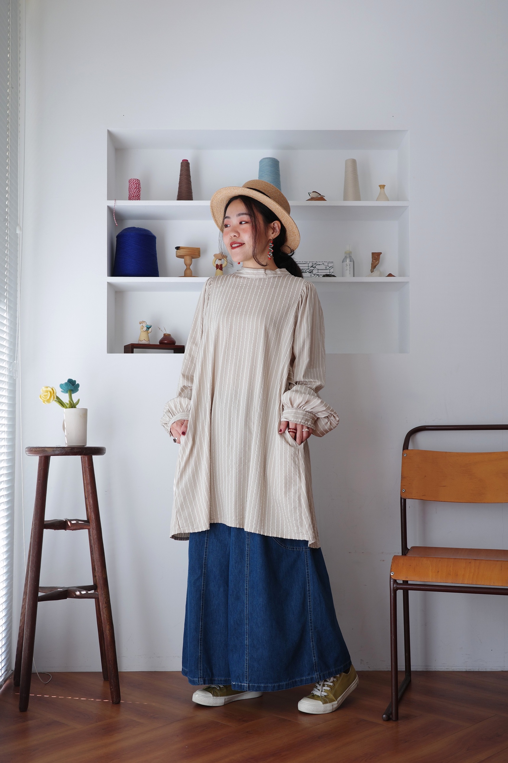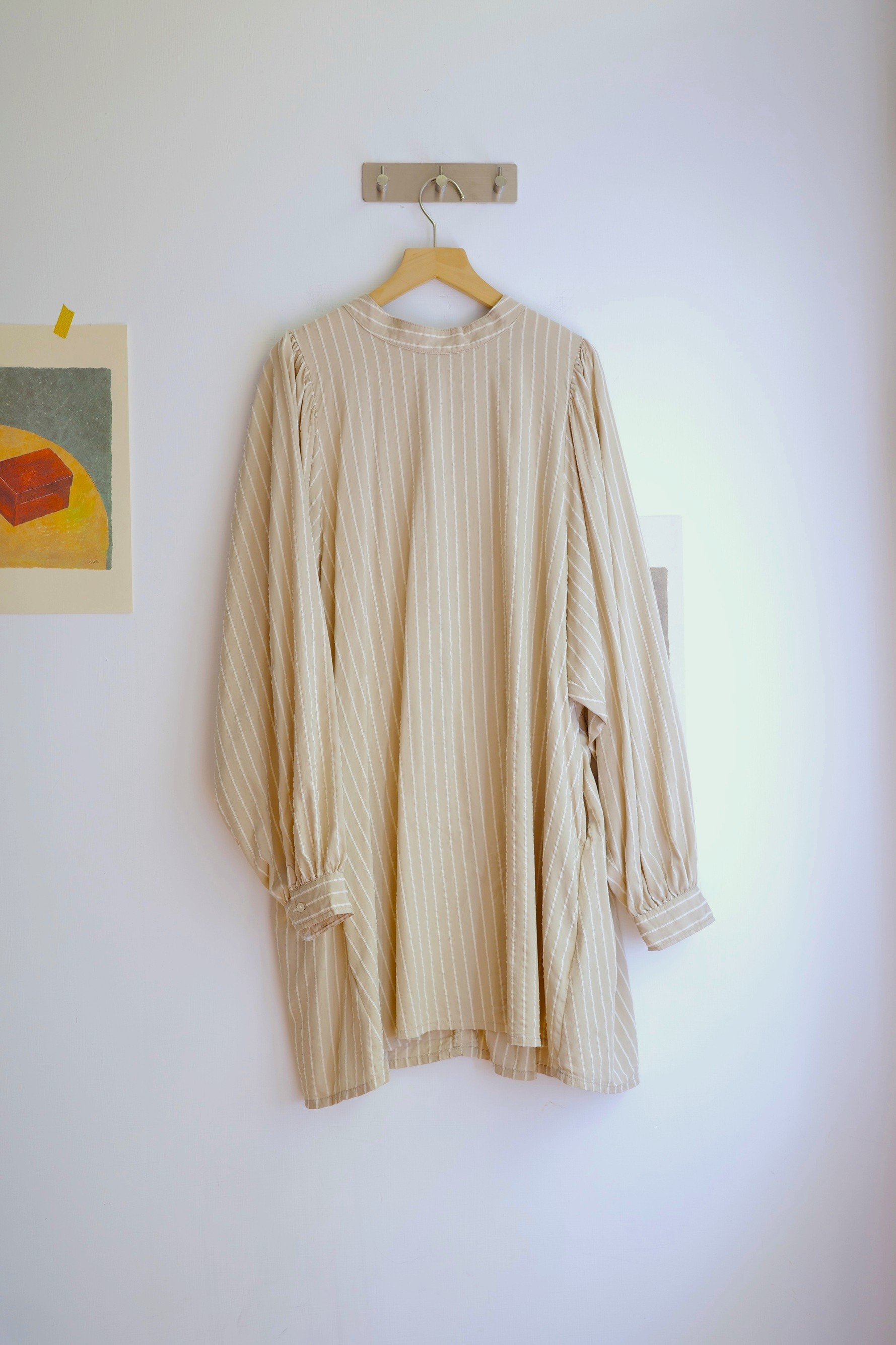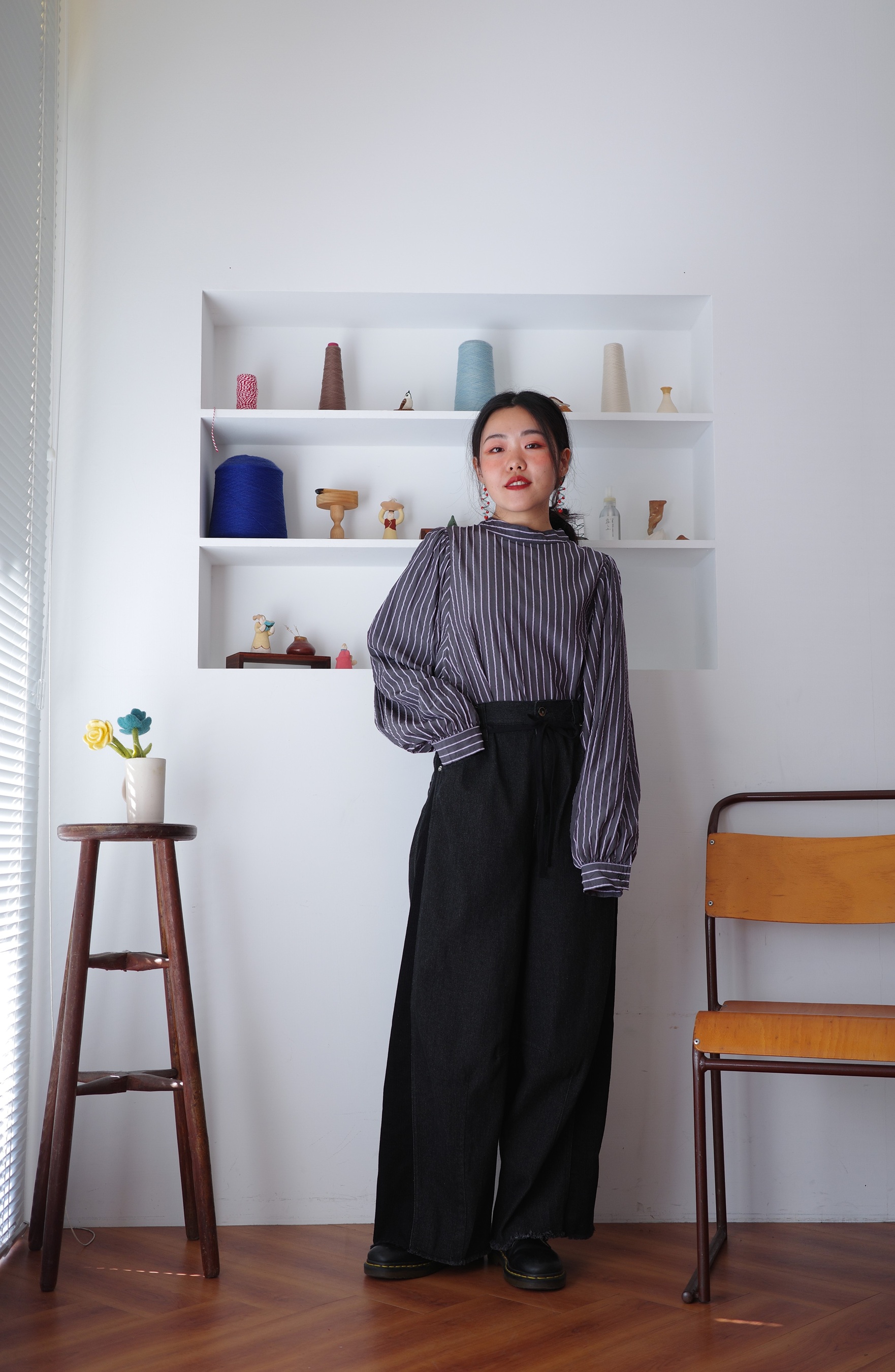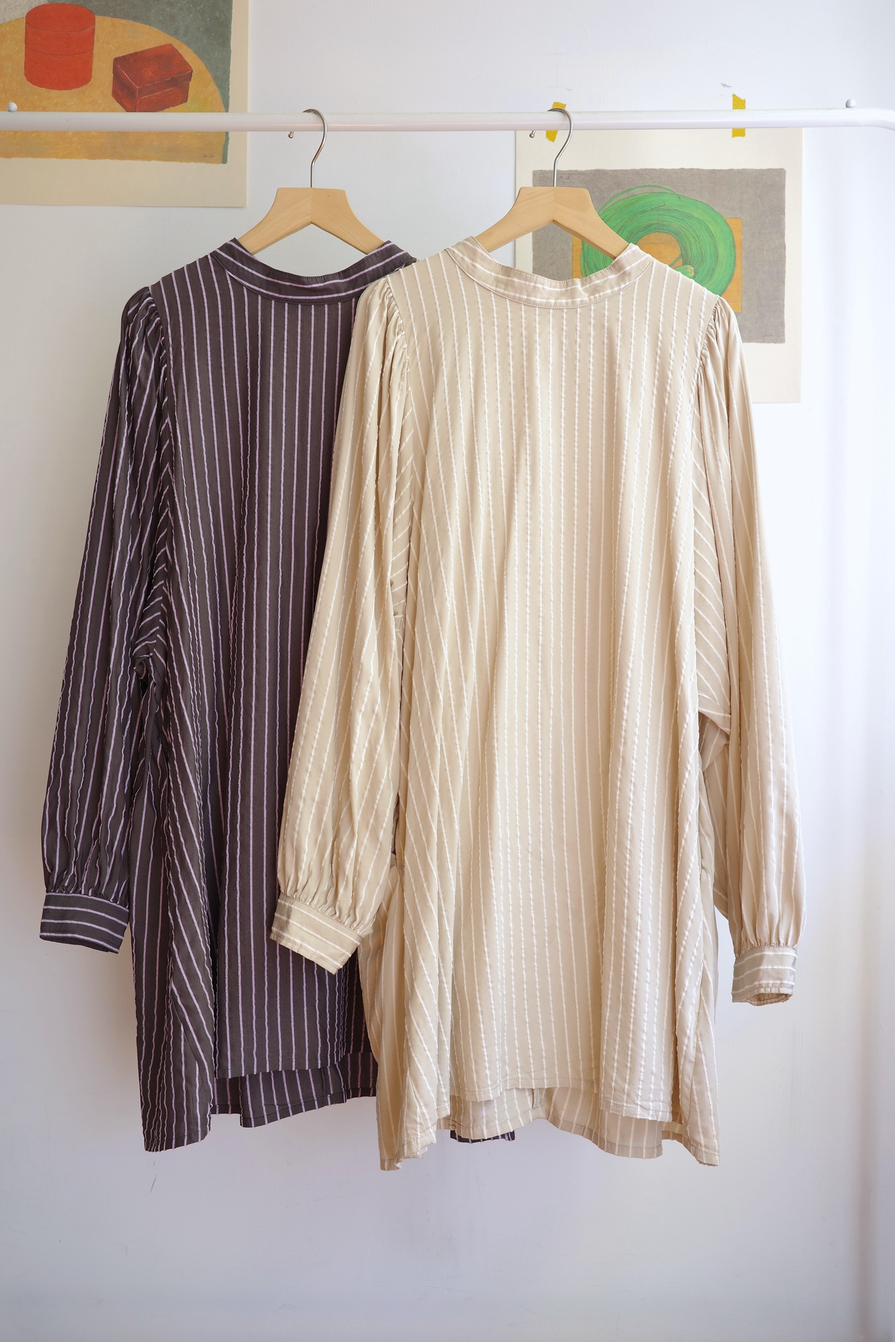 𓏭份量感優雅抓摺袖直紋緹花上衣