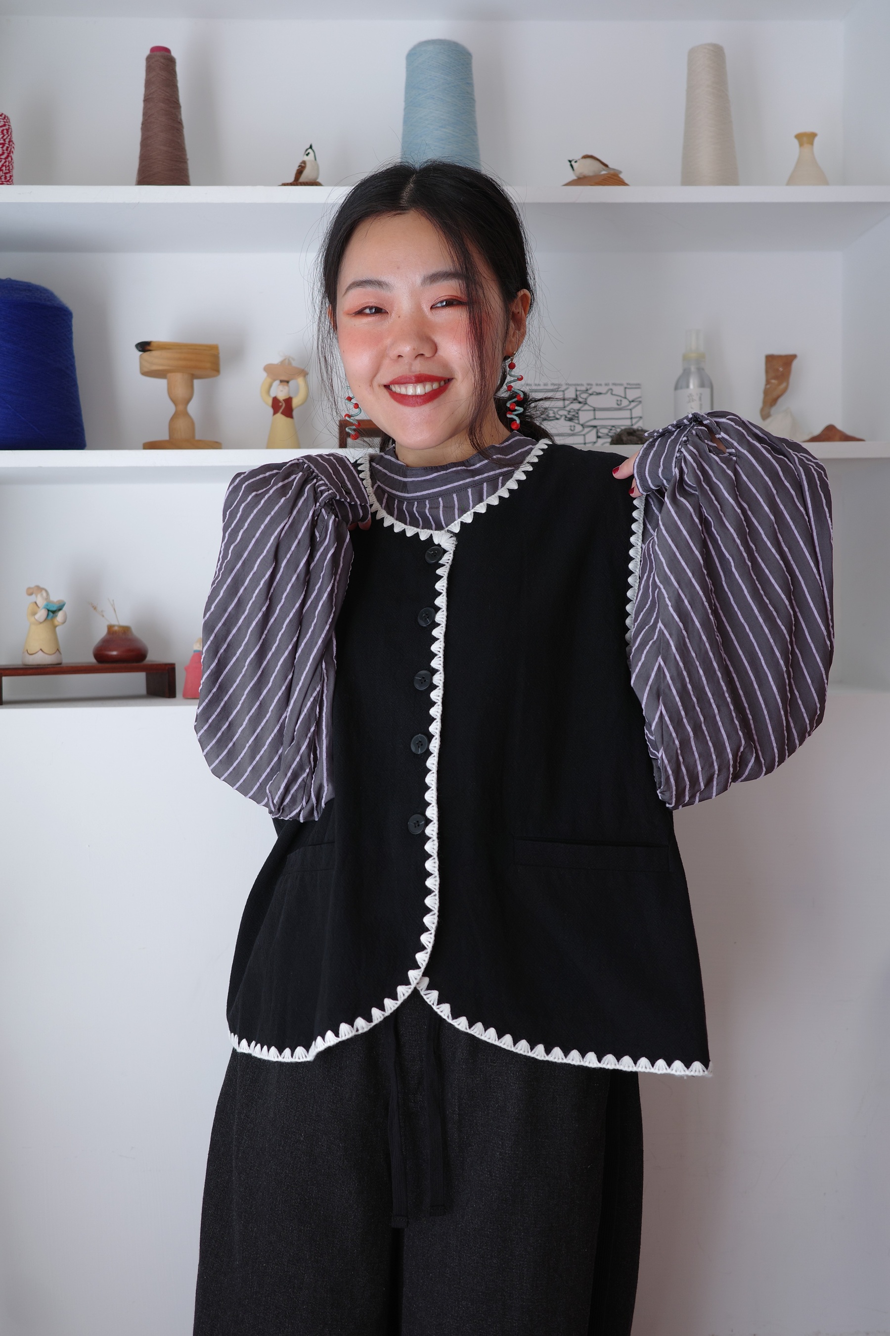 非常喜歡份量感的袖子抓摺,可以修飾肩膀及手臂線條!