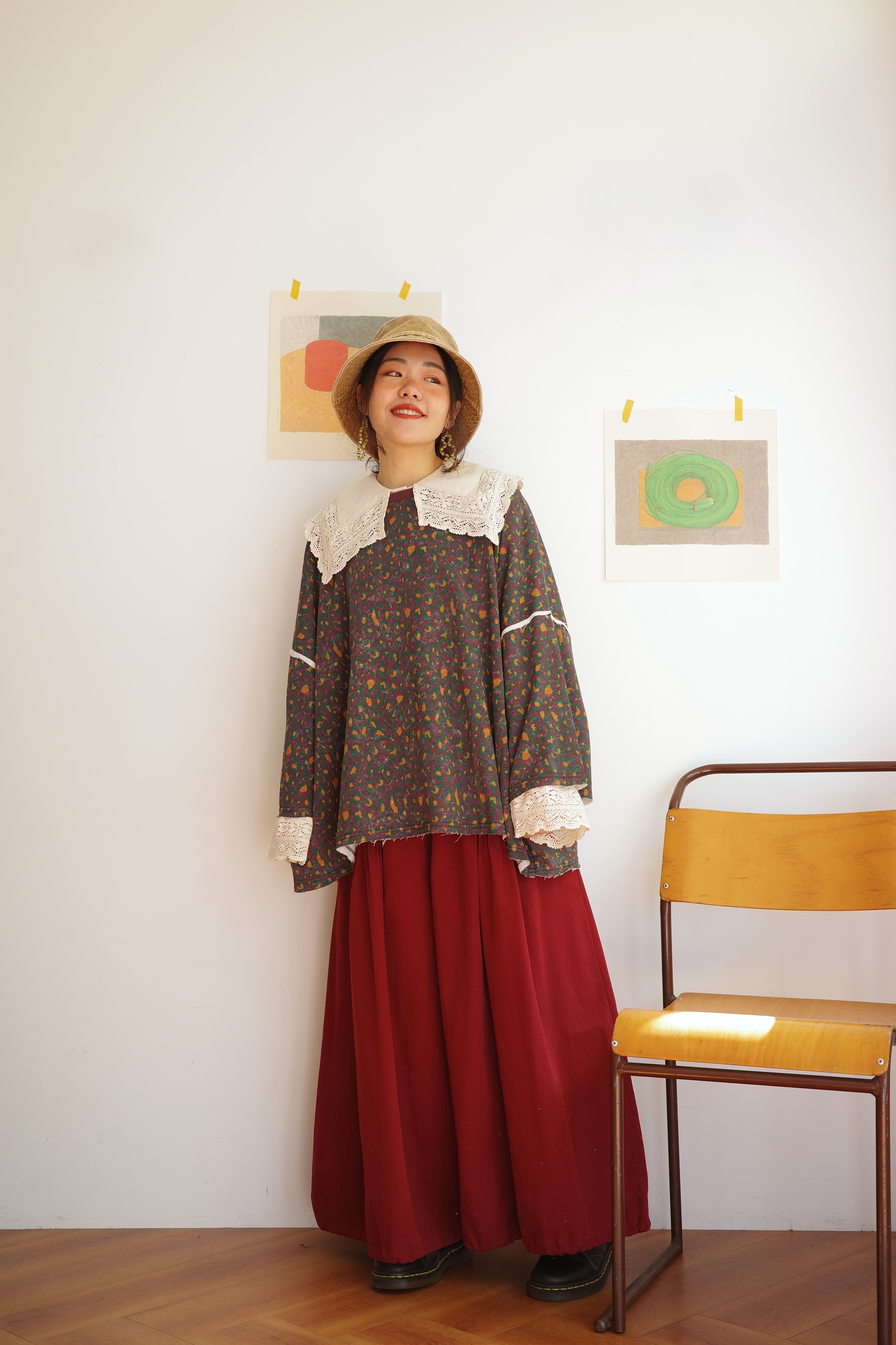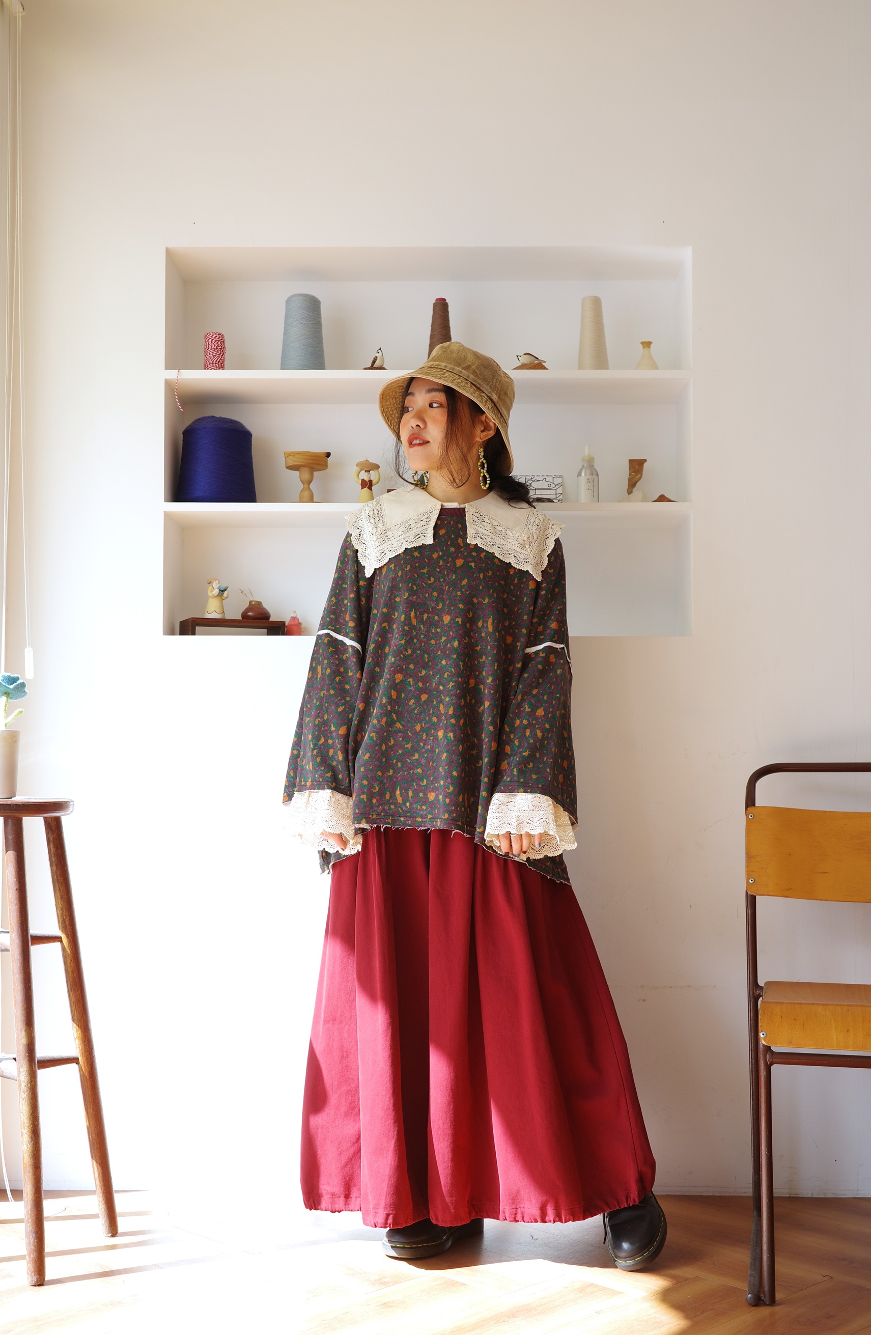 復古的領子巧妙的修飾臉部線條,彈性袖口方便日常活動,