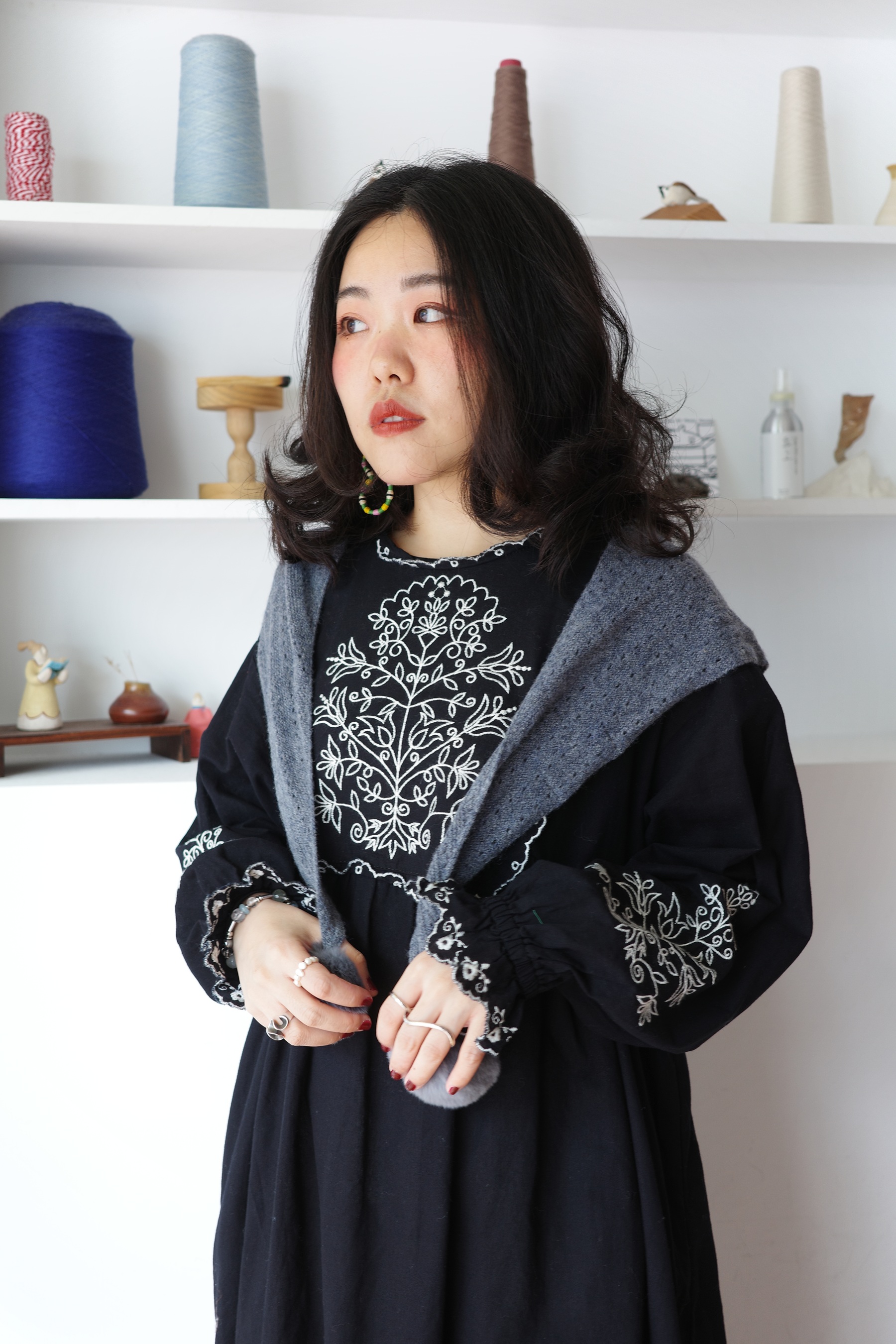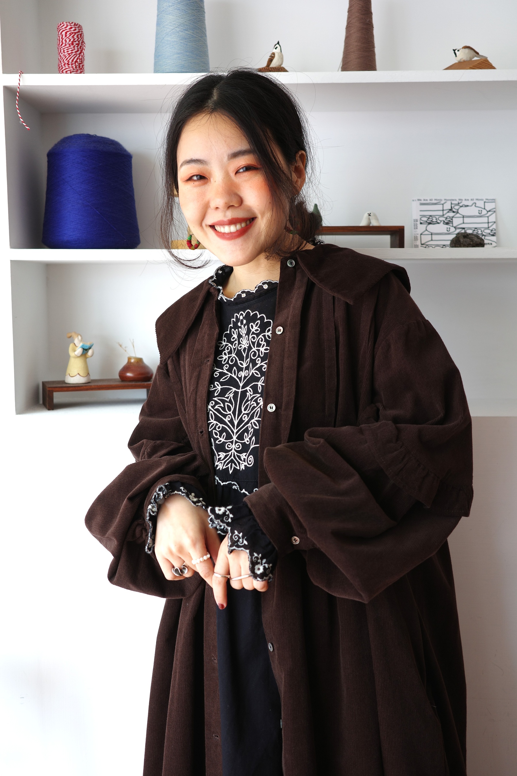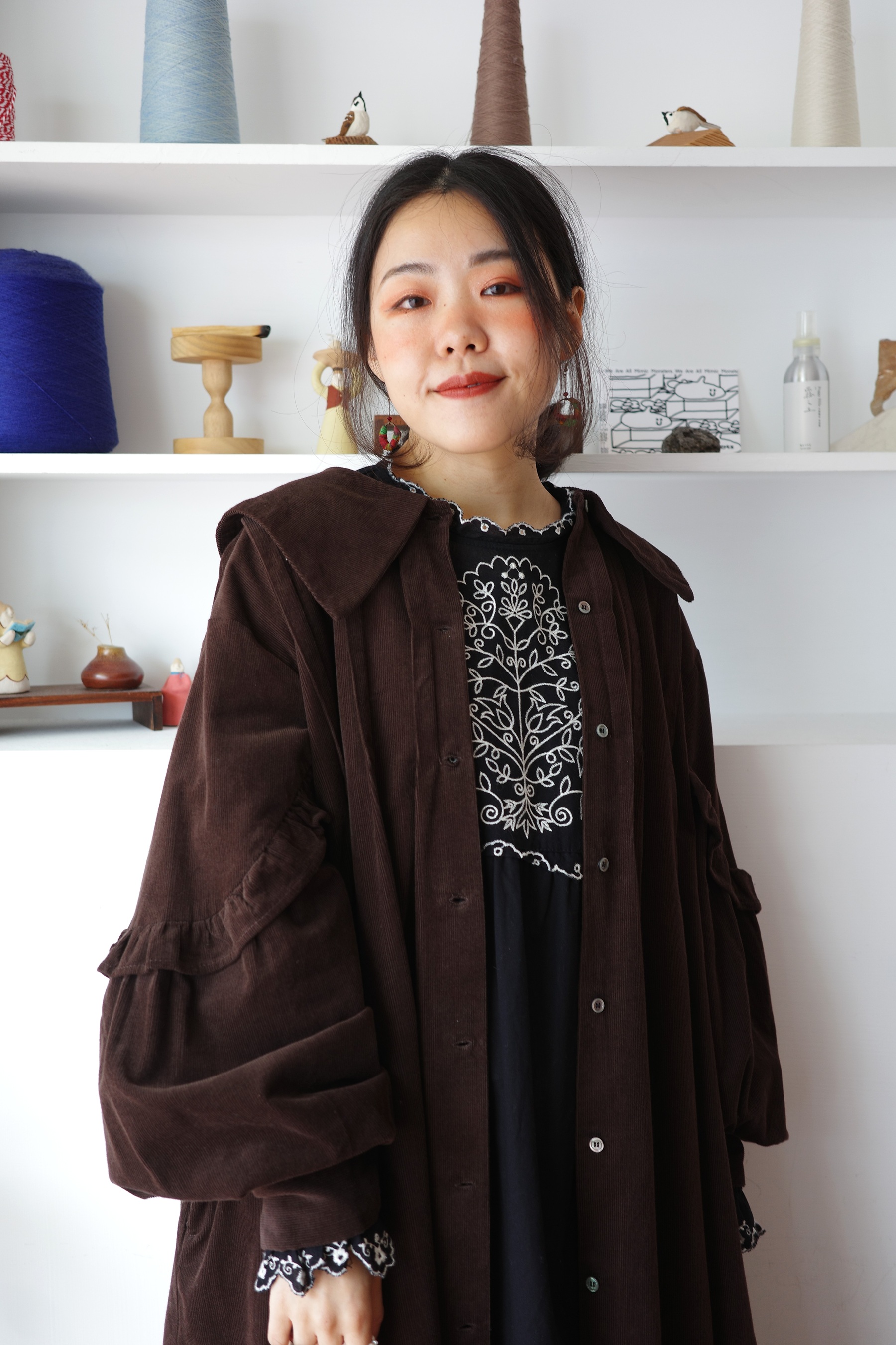 精緻優雅的花邊刺繡,波浪花邊領口可以自由選擇要立起或是反折下壓,