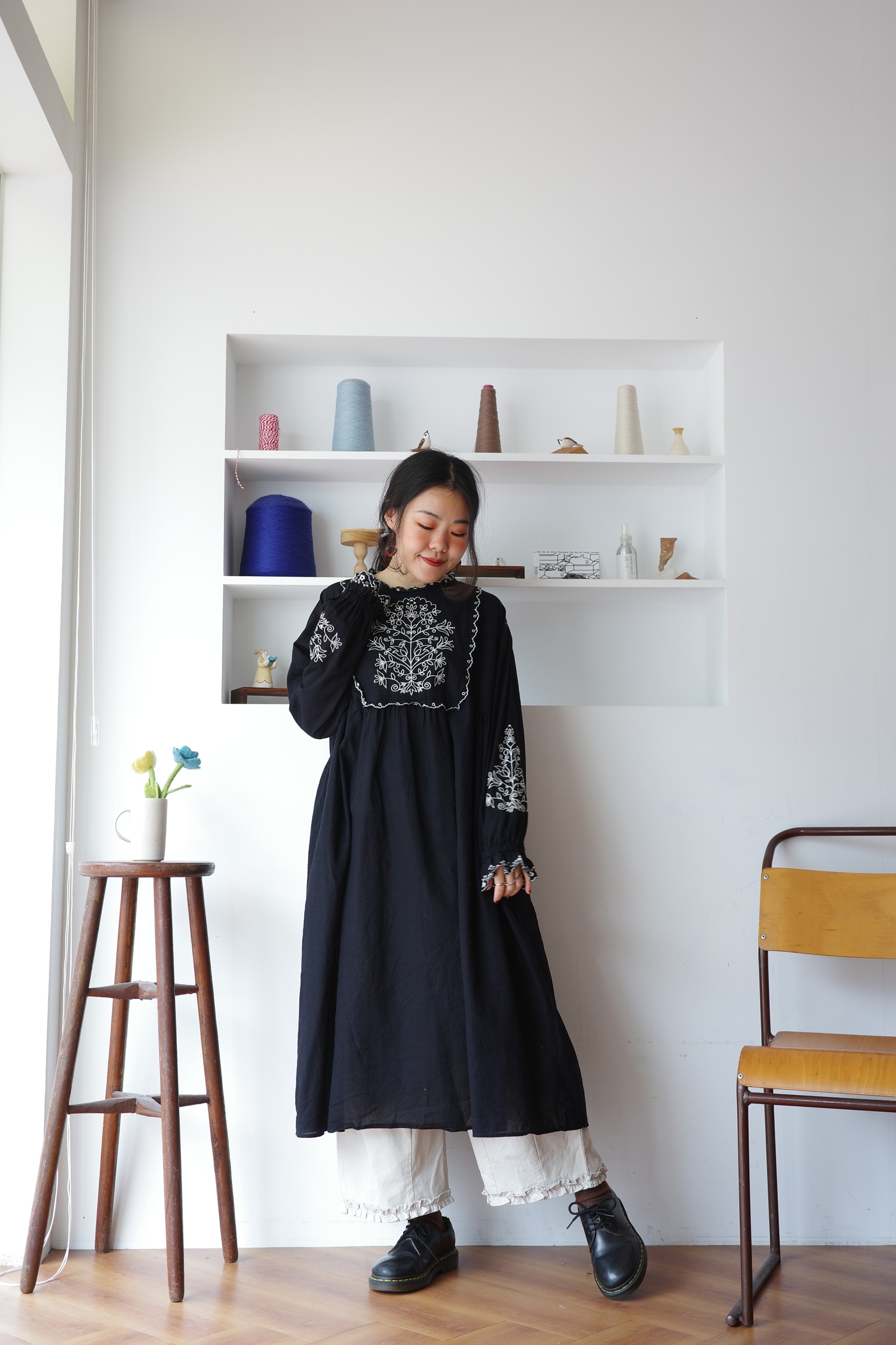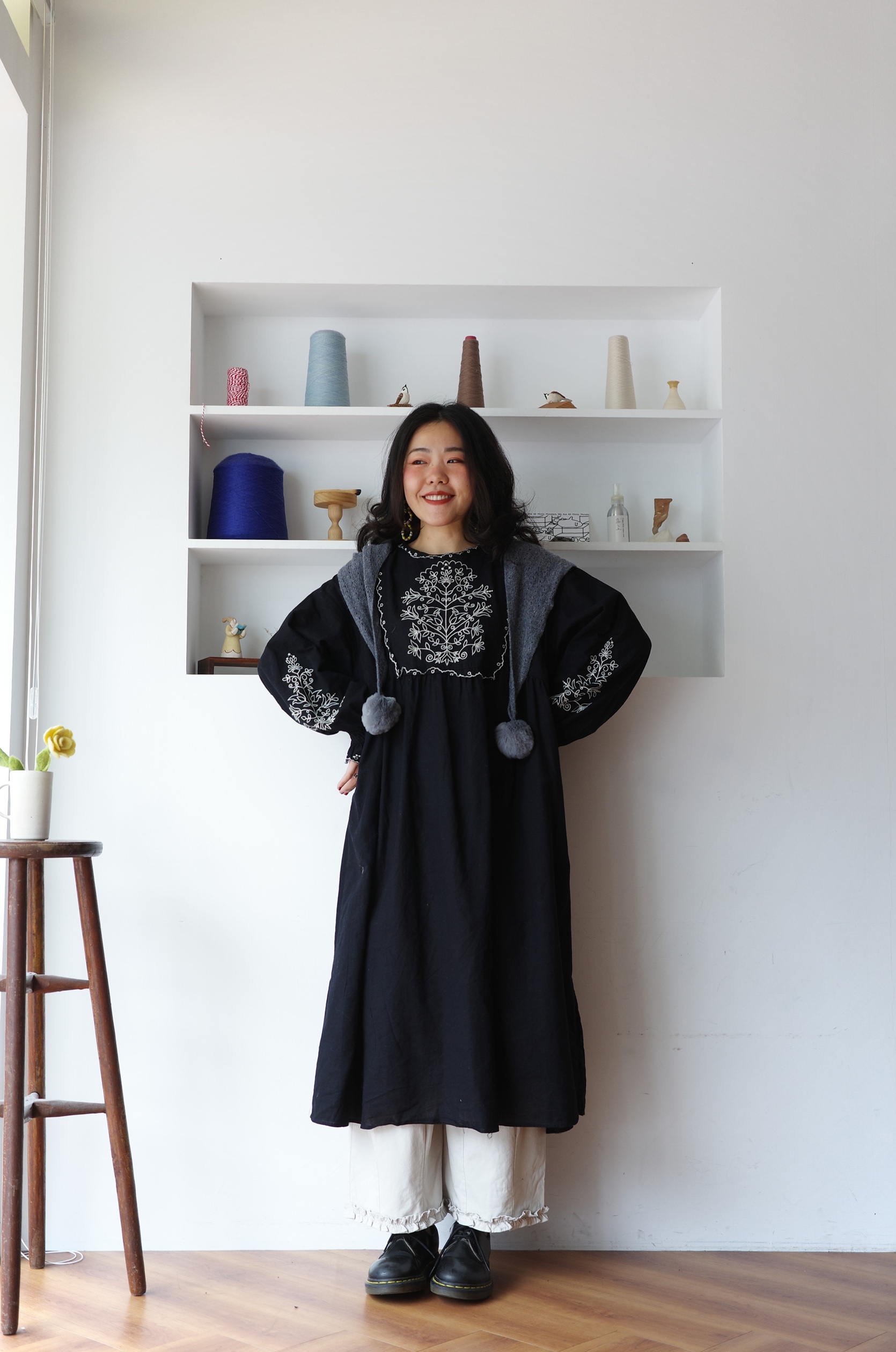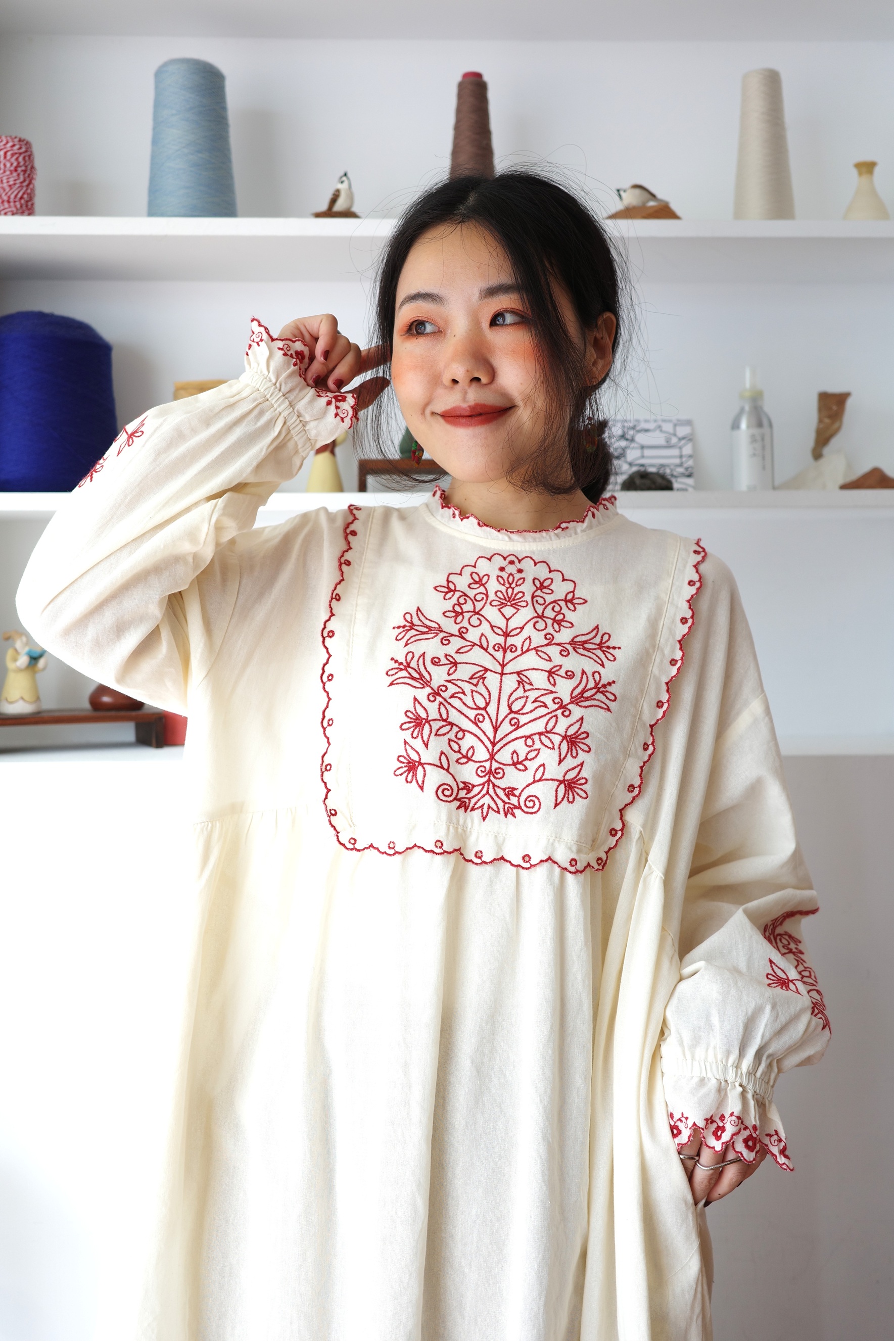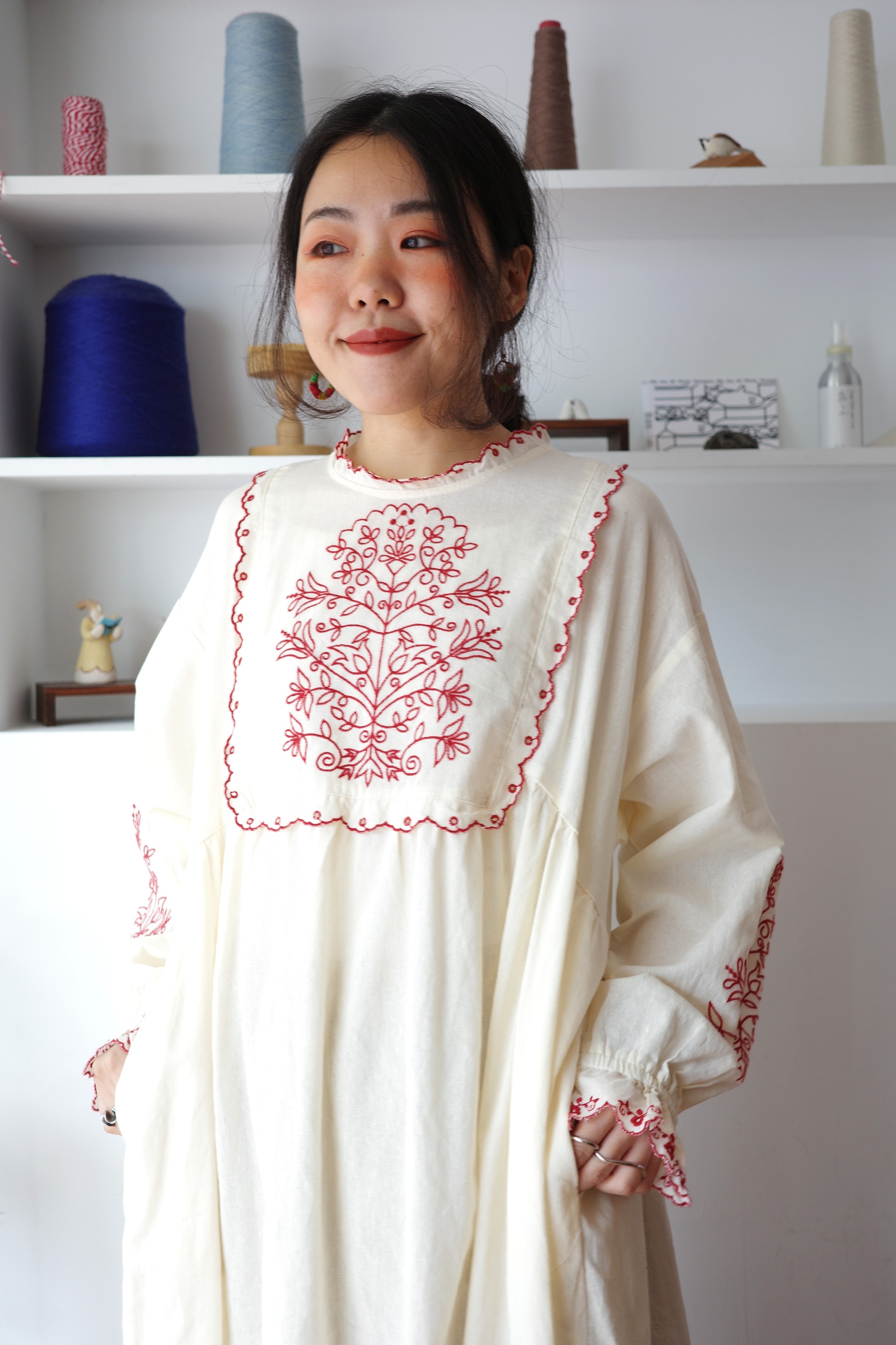 精緻優雅的花邊刺繡,波浪花邊領口可以自由選擇要立起或是反折下壓,