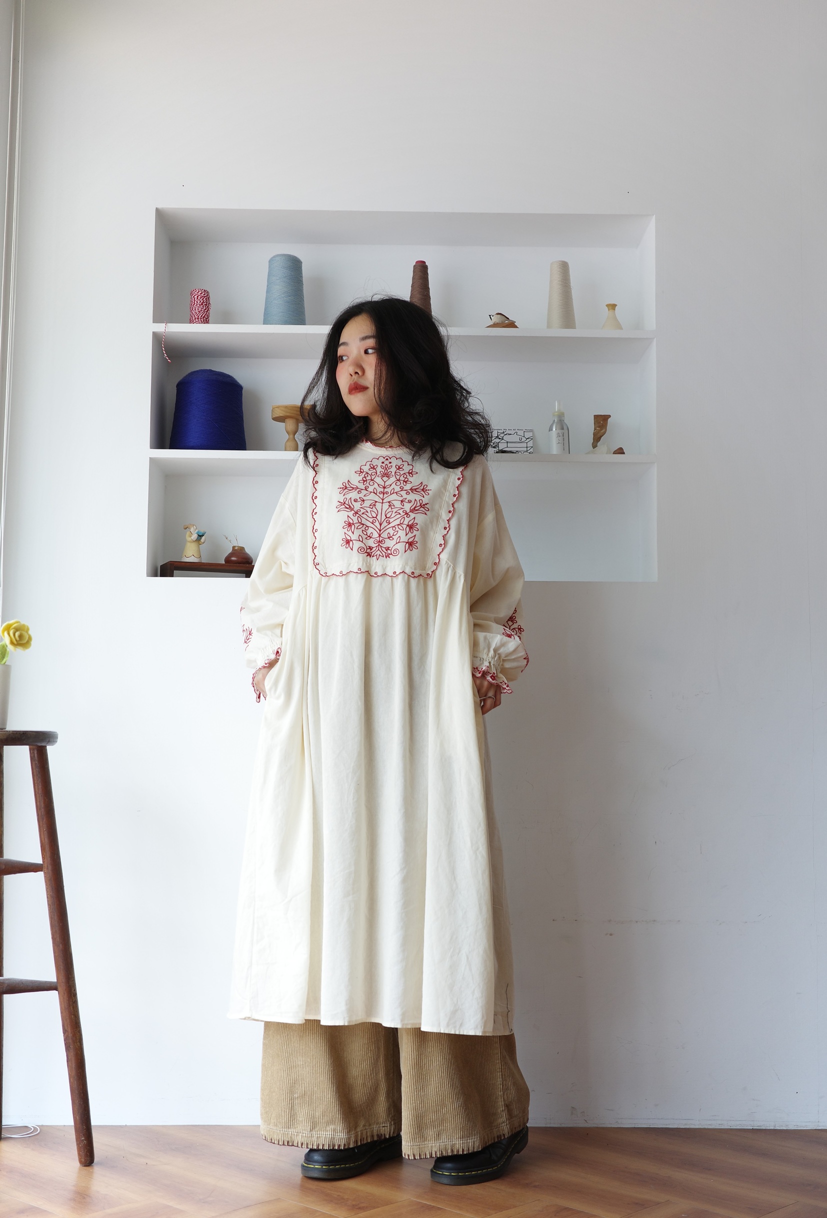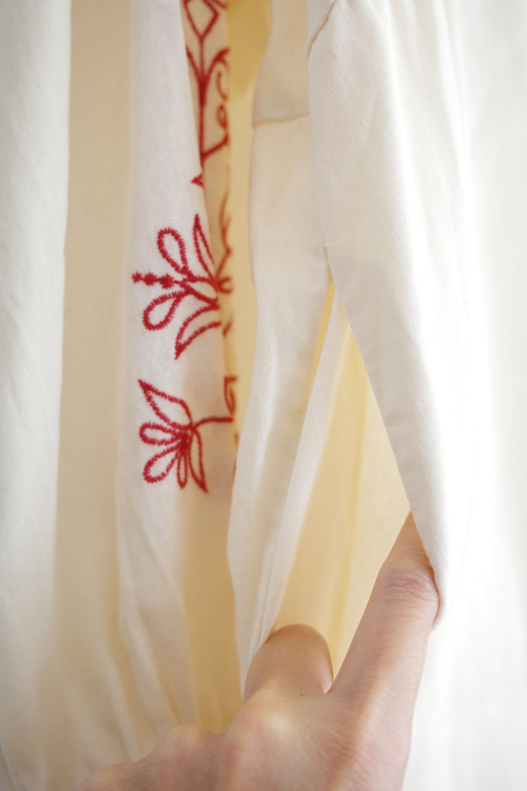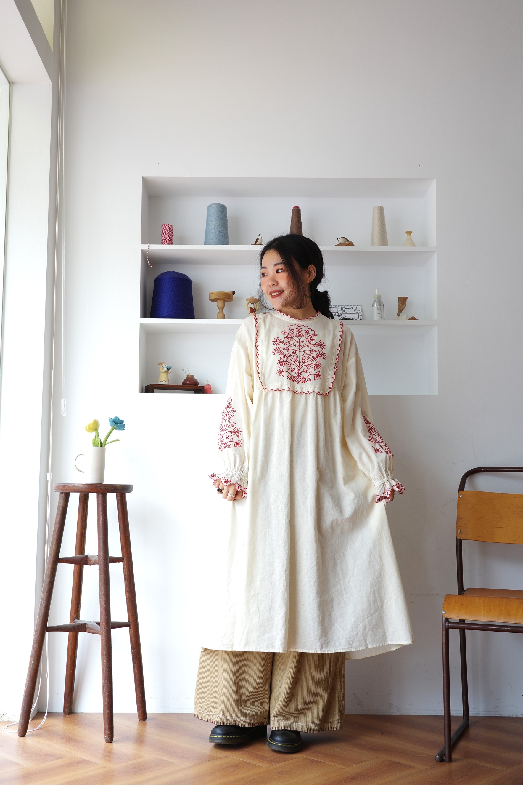 兩側有口袋,奶油色很仙但是單穿會透,建議要搭配襯裙或褲子呦!
