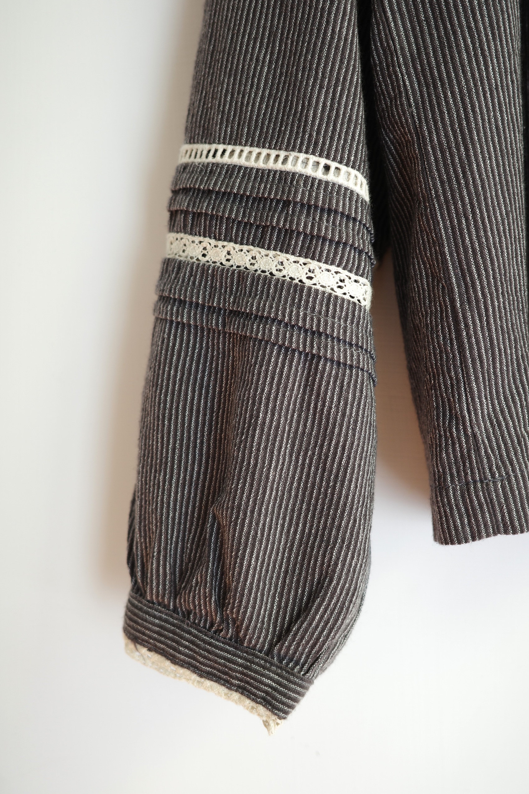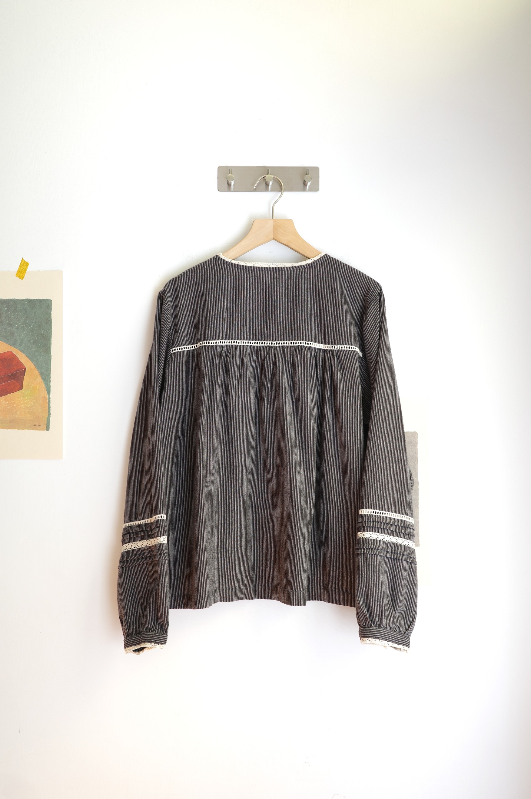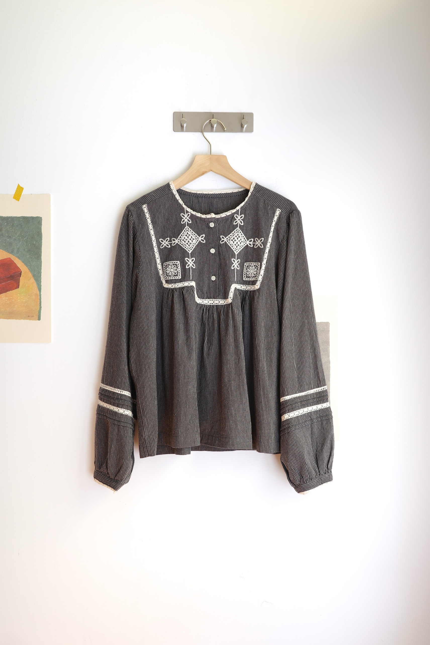 𓏭圖騰刺繡鏤空織帶直紋上衣