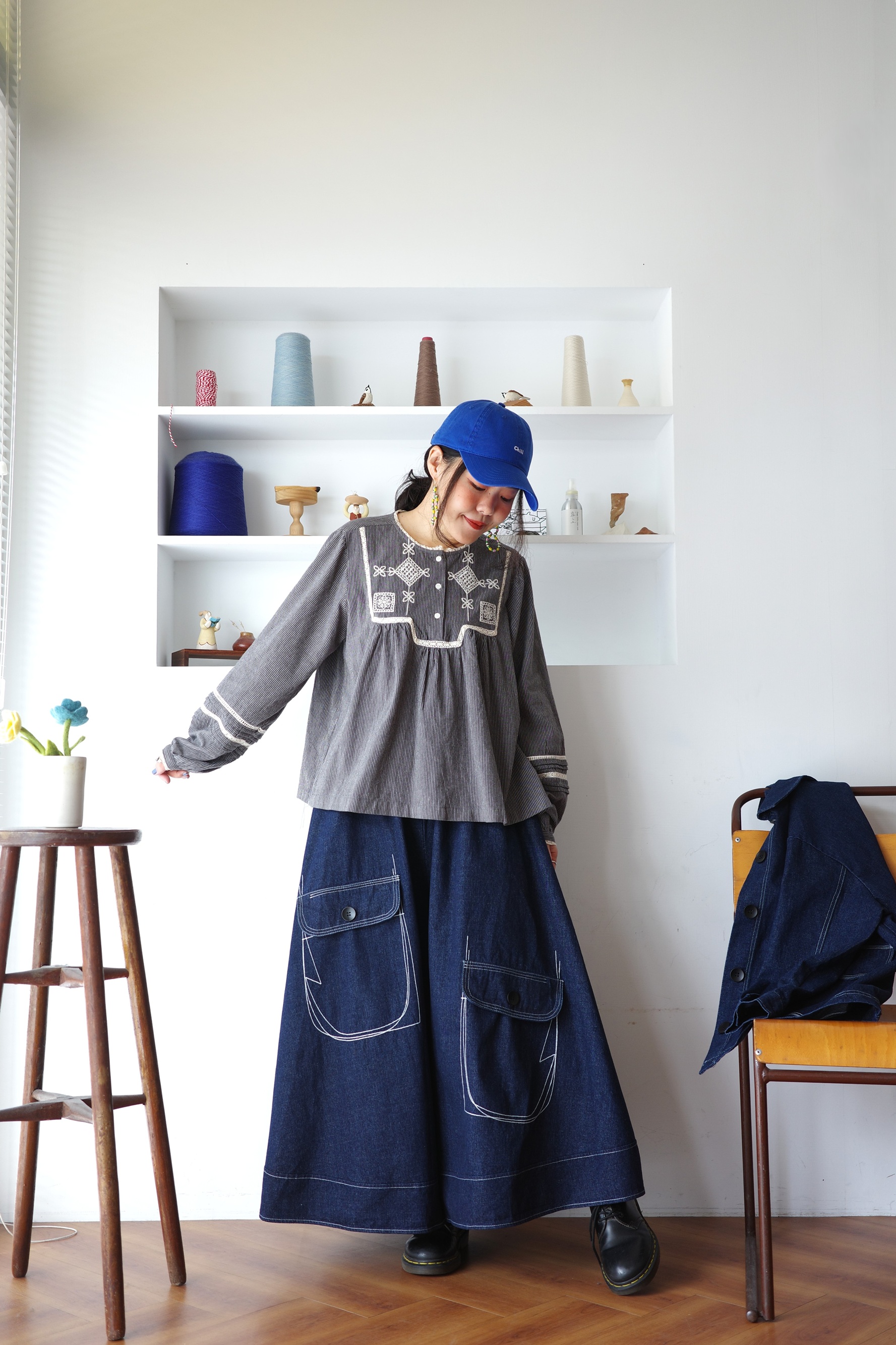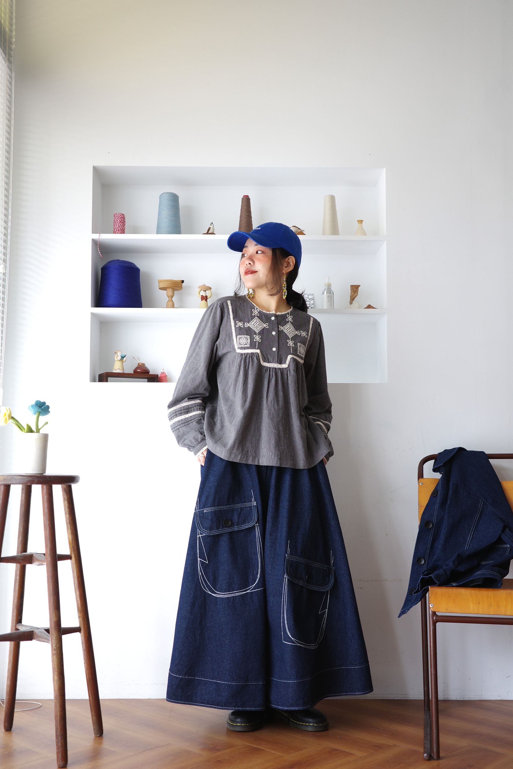 胸前圖騰刺繡點綴,是一款簡單搭配牛仔褲也非常好看的上衣