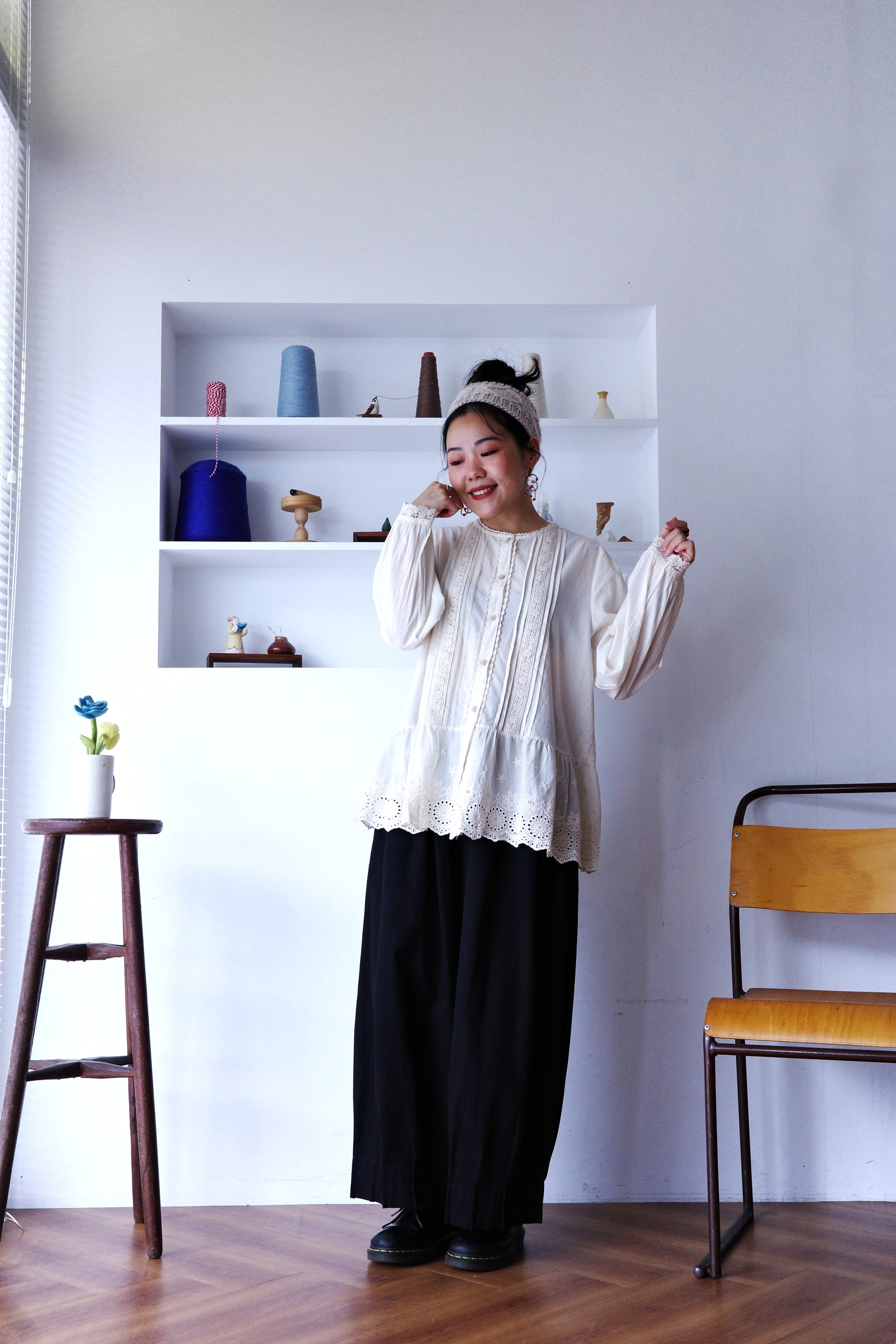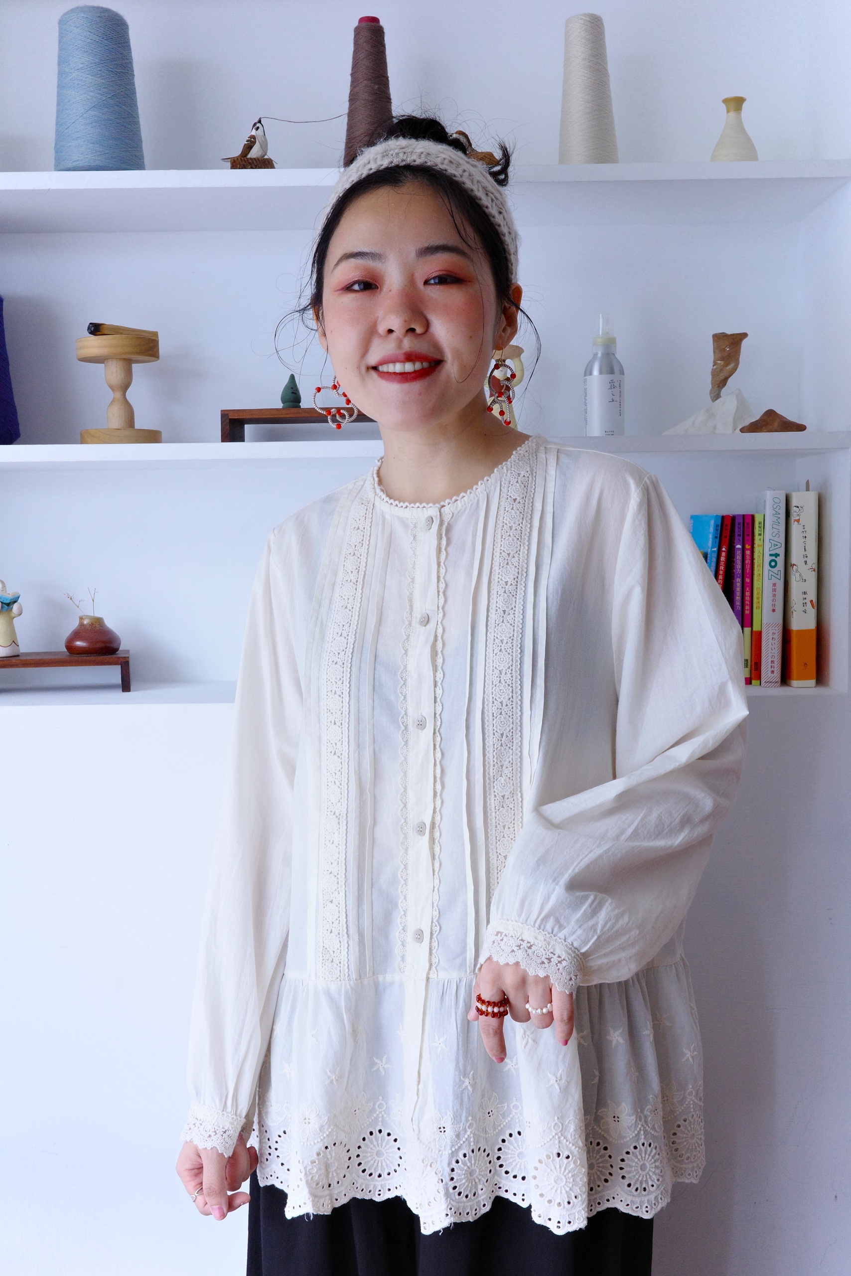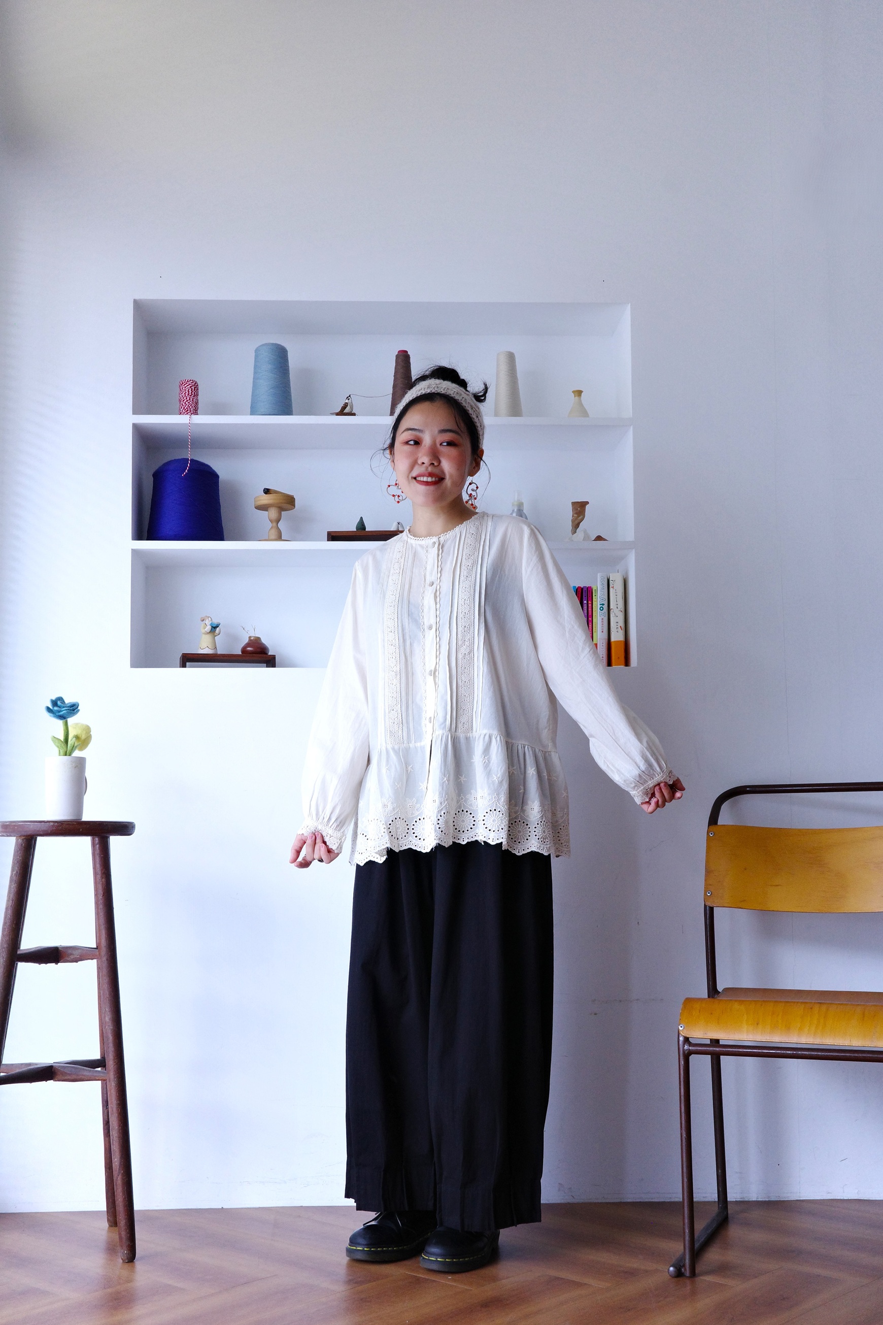 全開釦設計,可以當作小罩衫著用,拼接的波浪蕾絲下擺也可以修飾髖部線條,