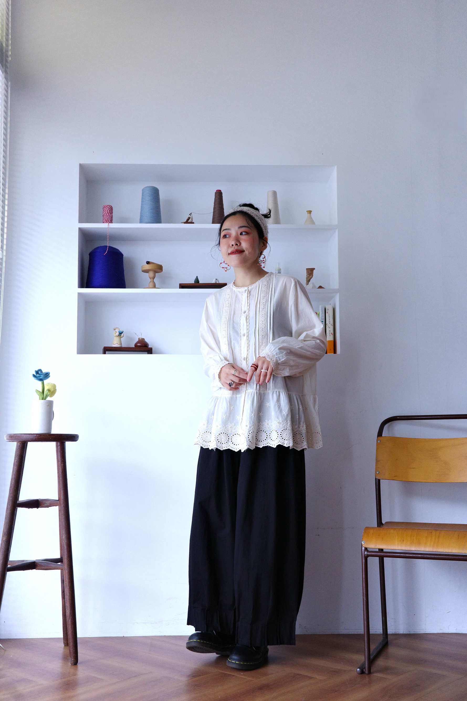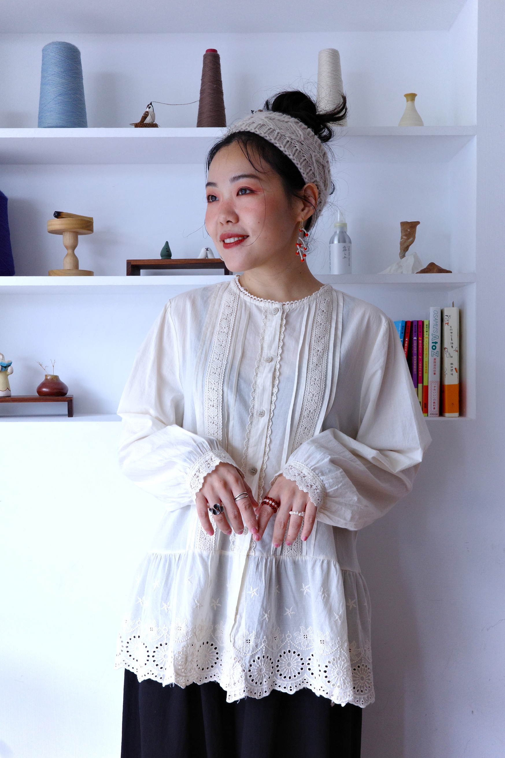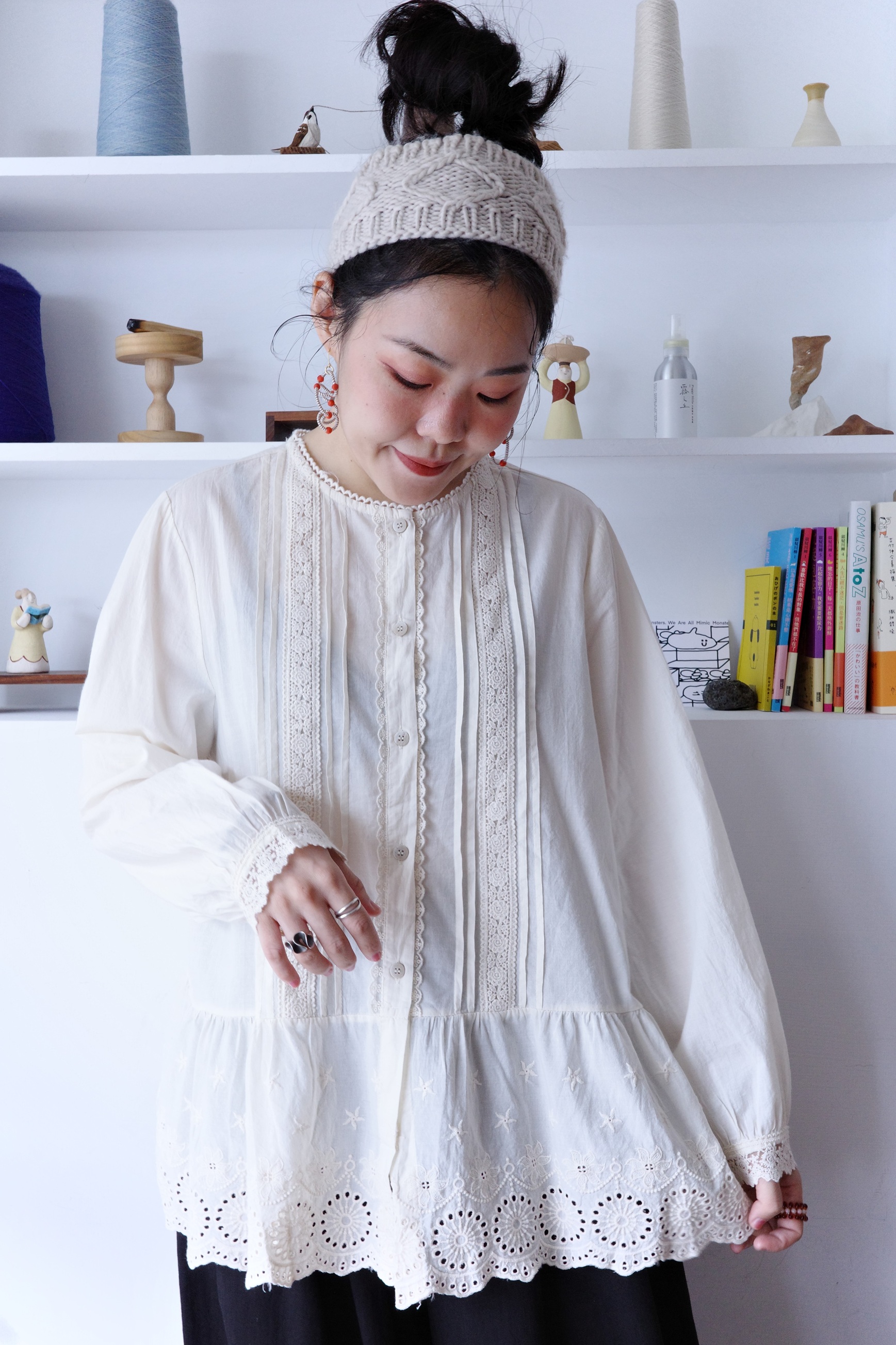 全開釦設計,可以當作小罩衫著用,拼接的波浪蕾絲下擺也可以修飾髖部線條,