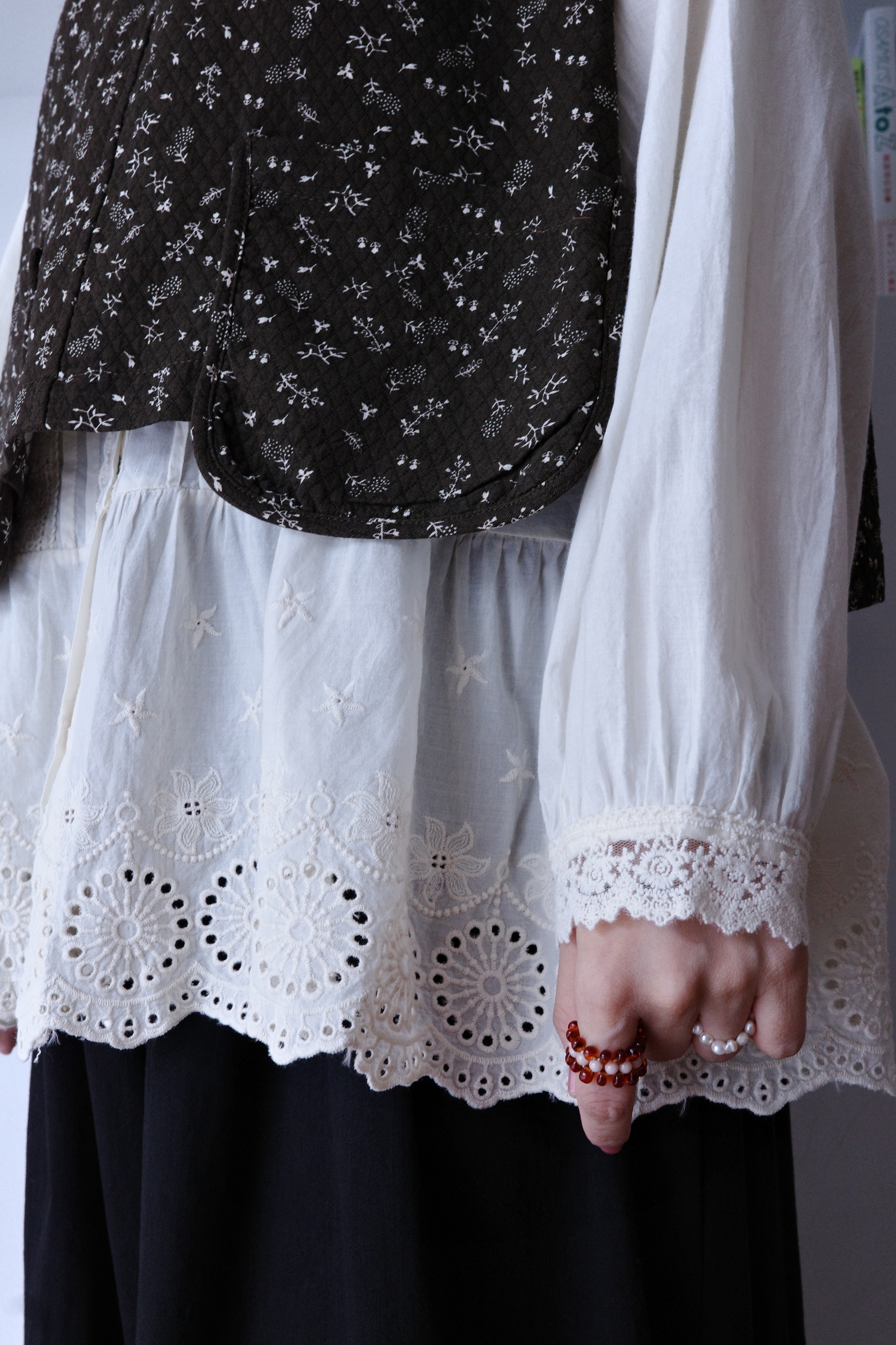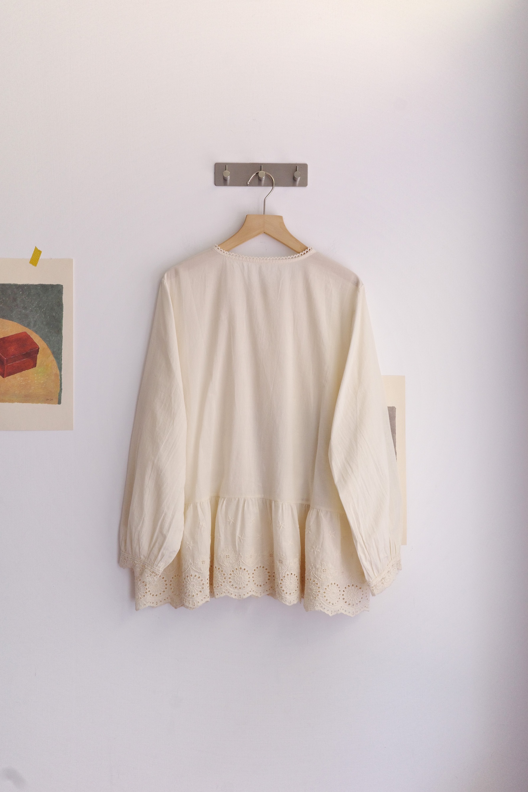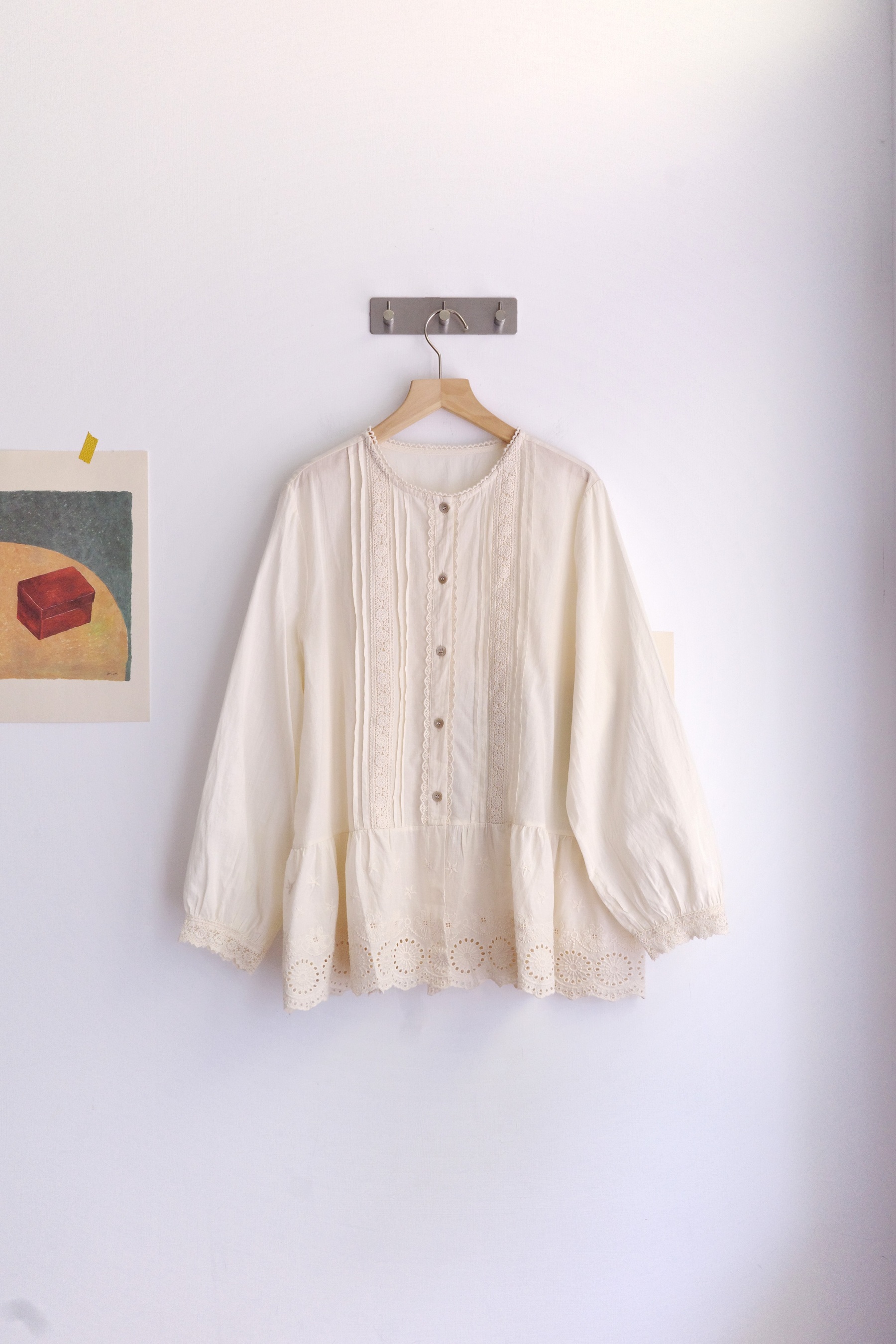 𓏭壓摺蕾絲織波浪下擺開襟上衣