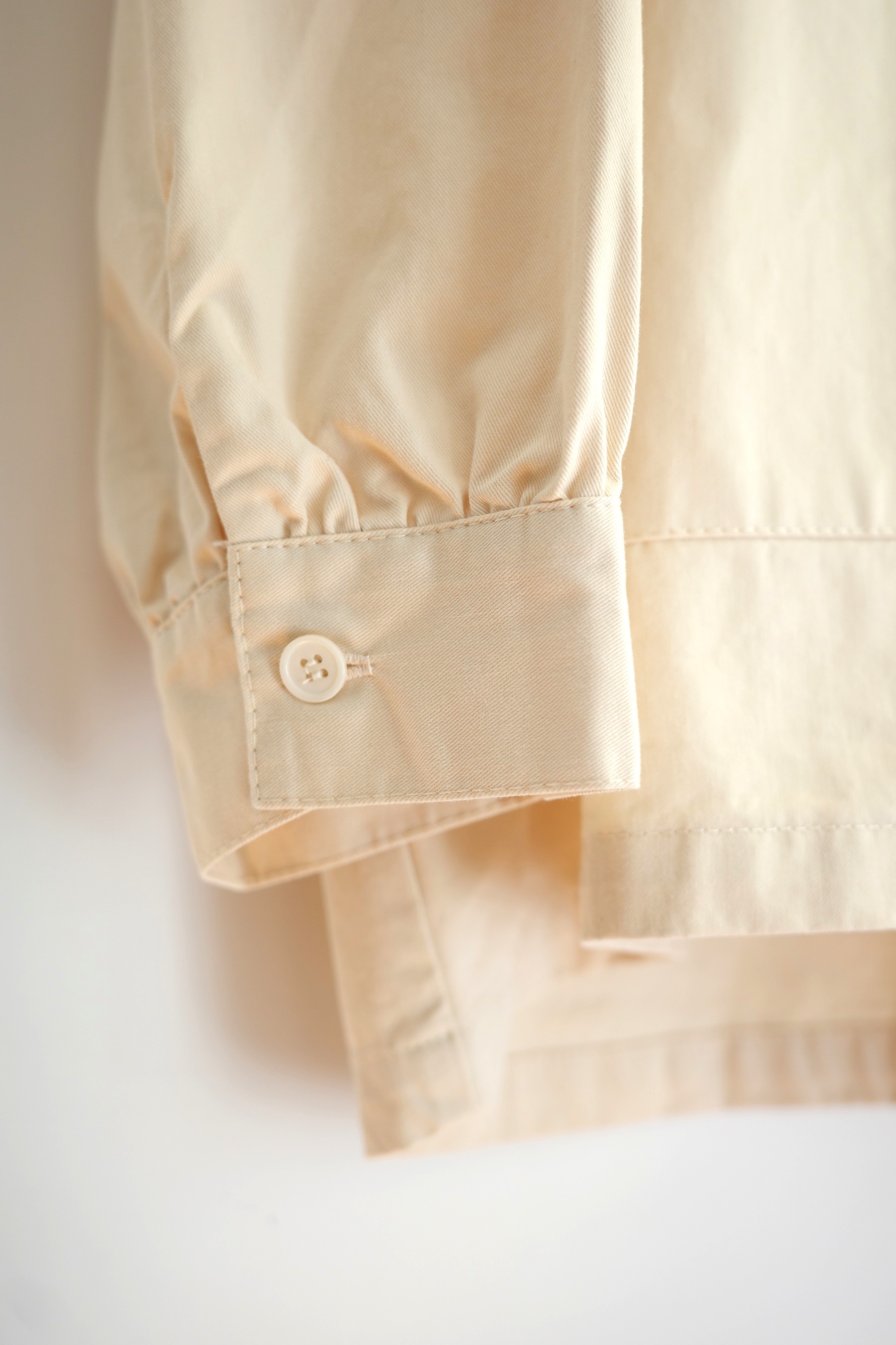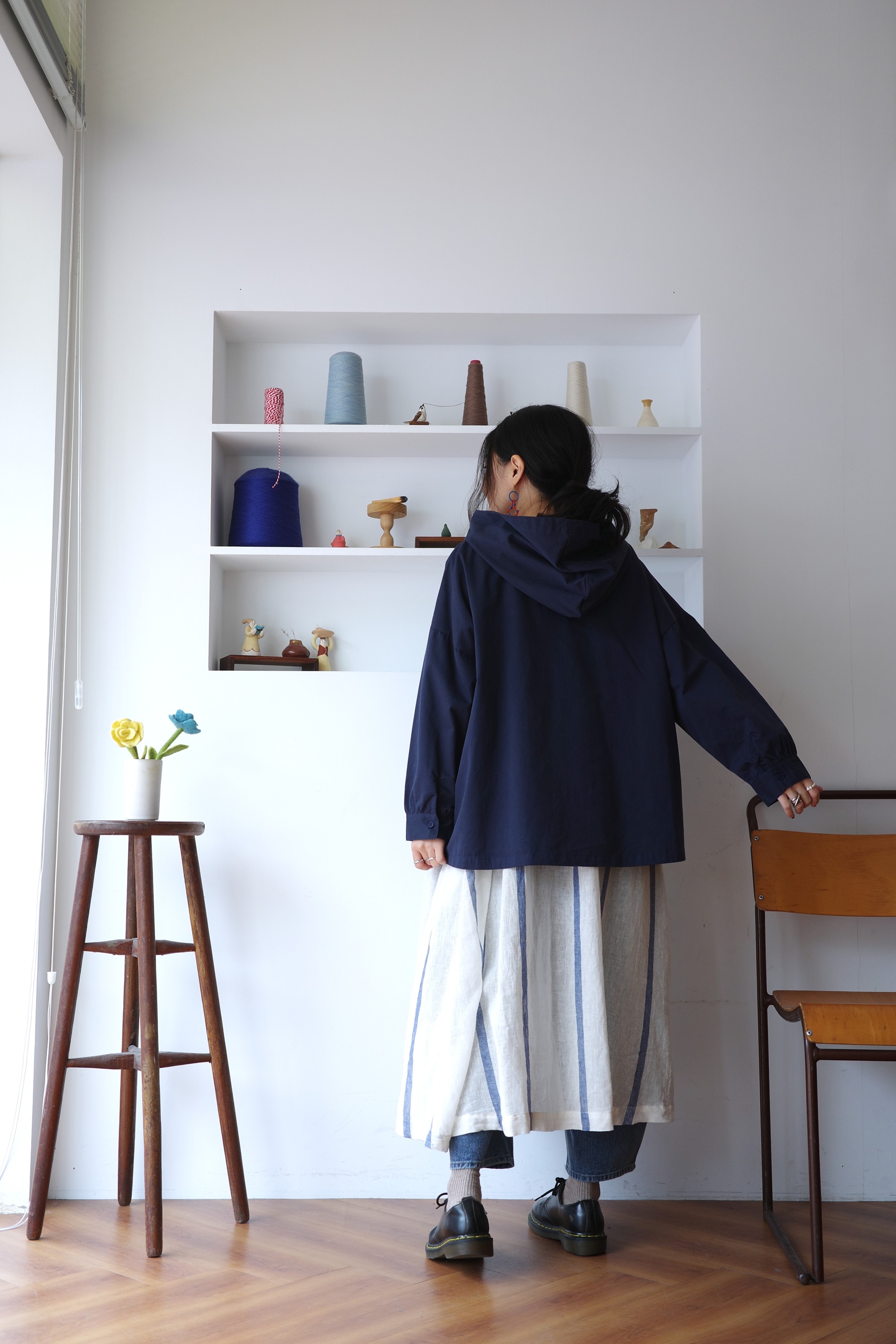 鬆身短寬版型,袖口開釦,布料有挺度。
