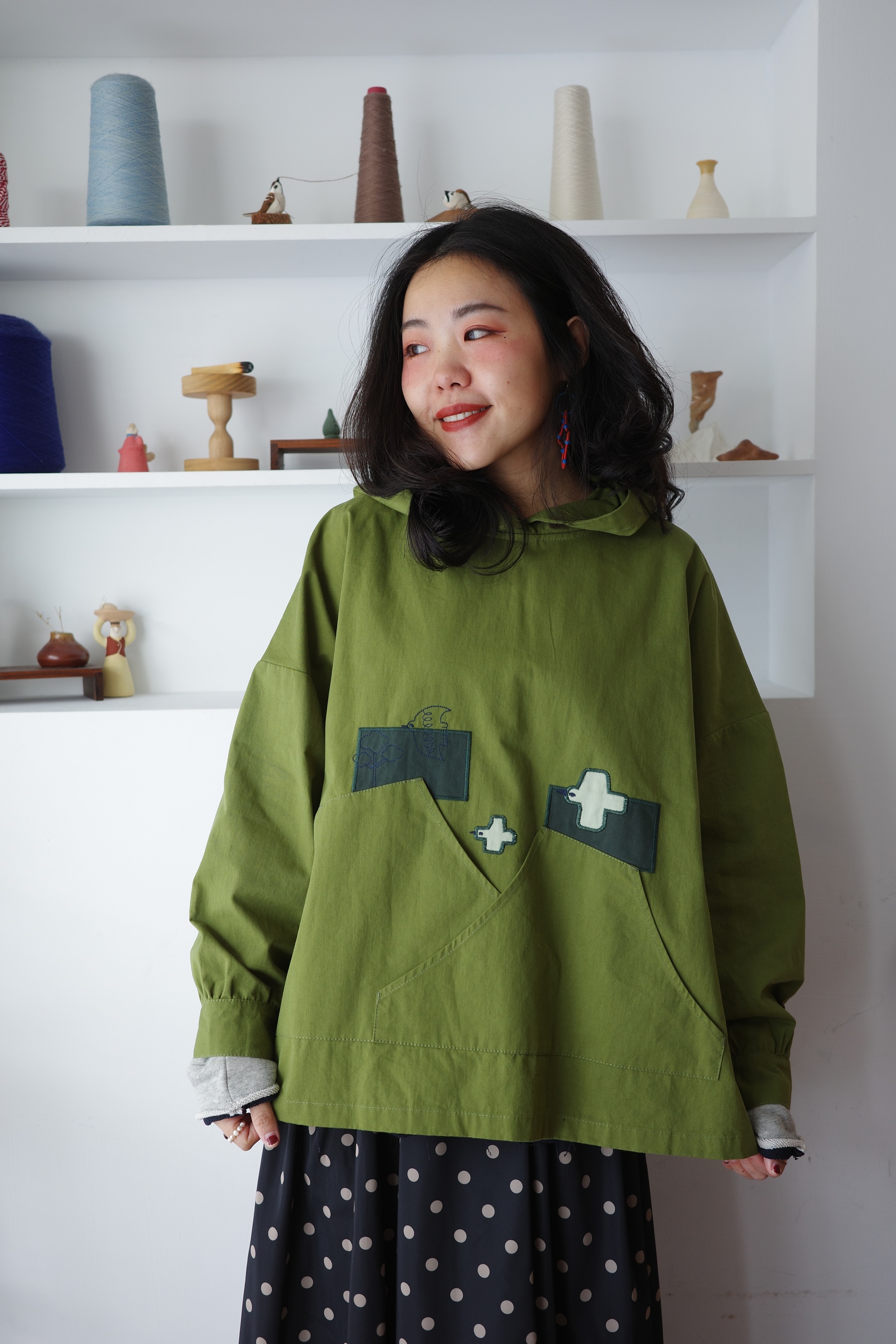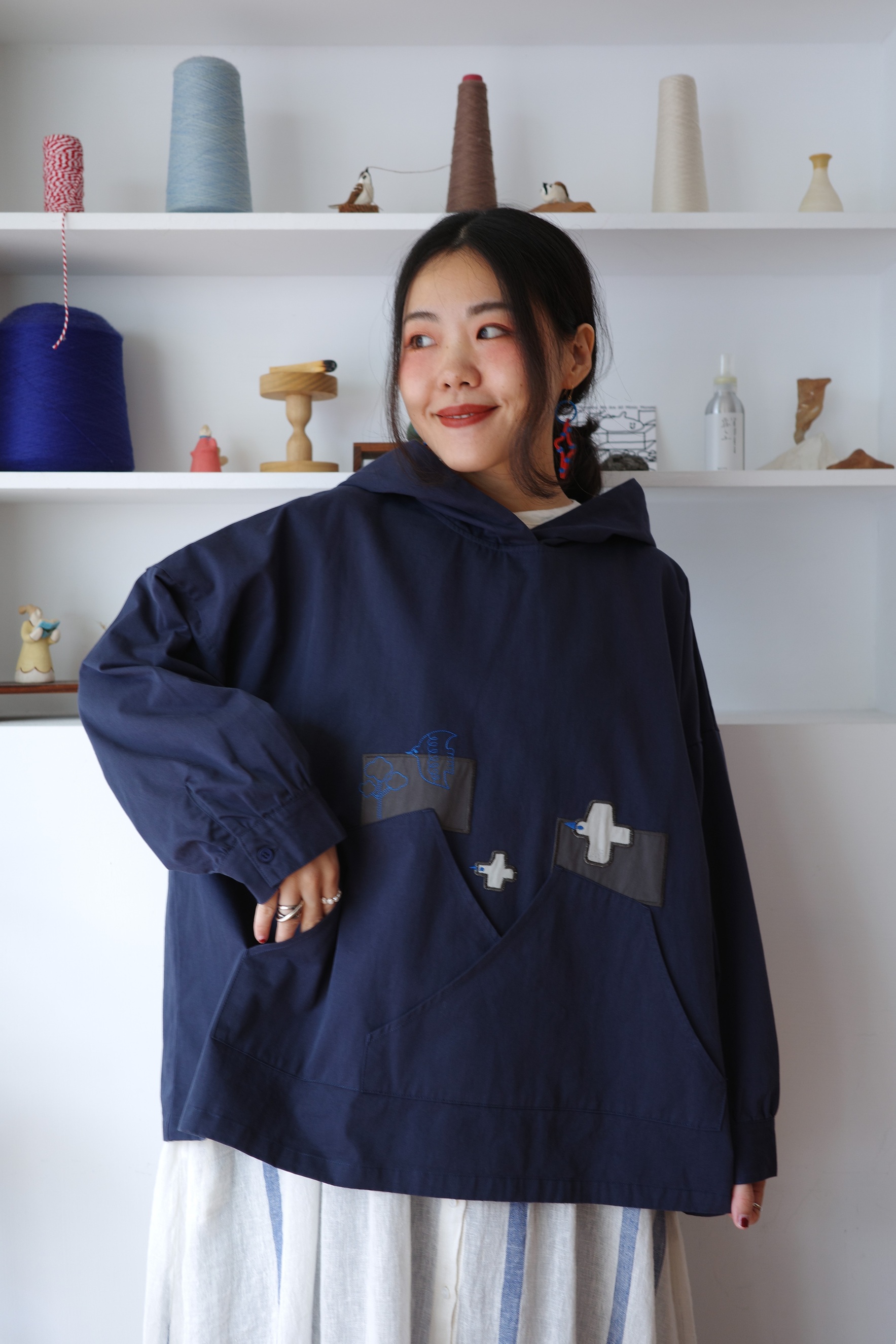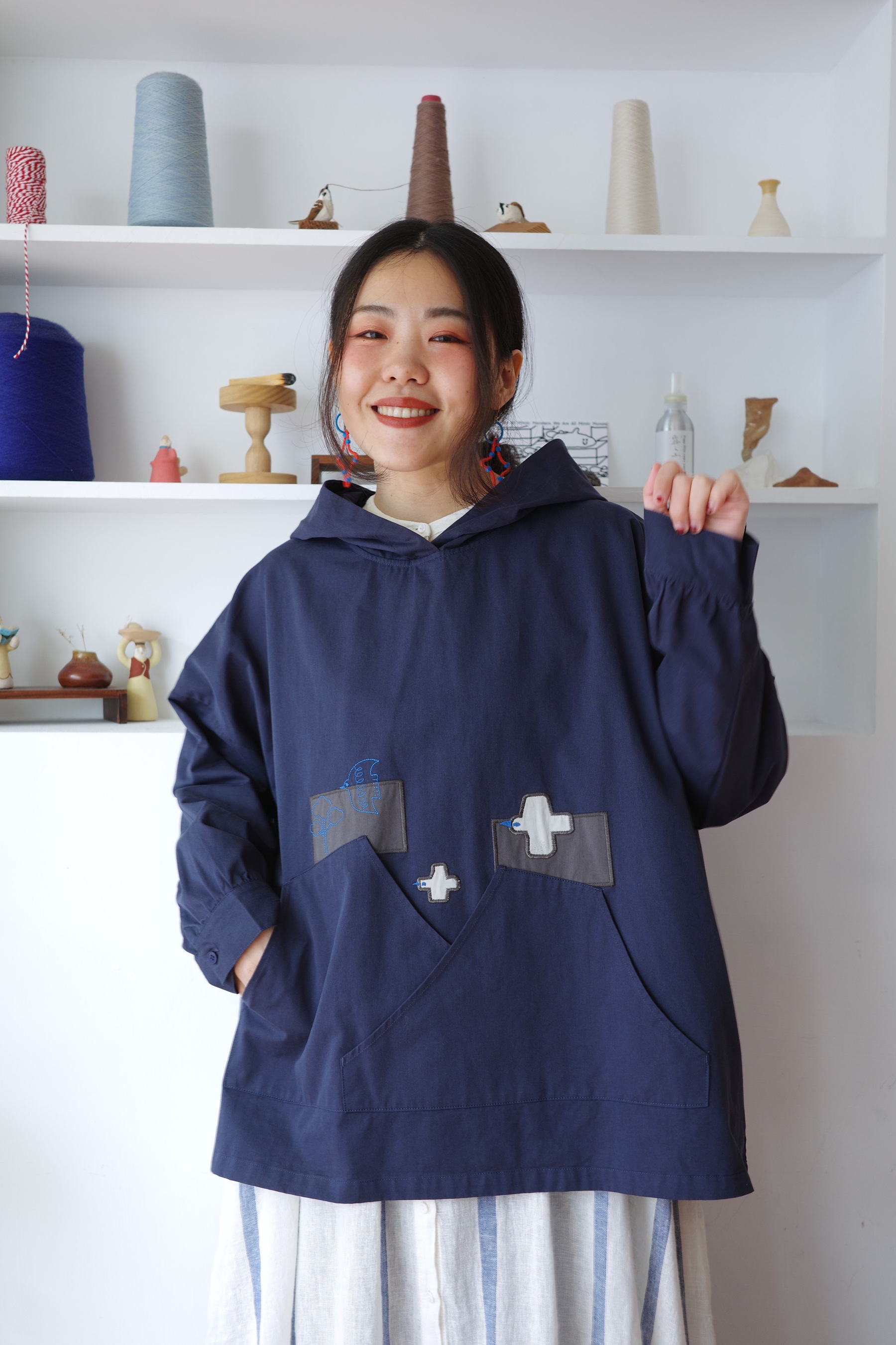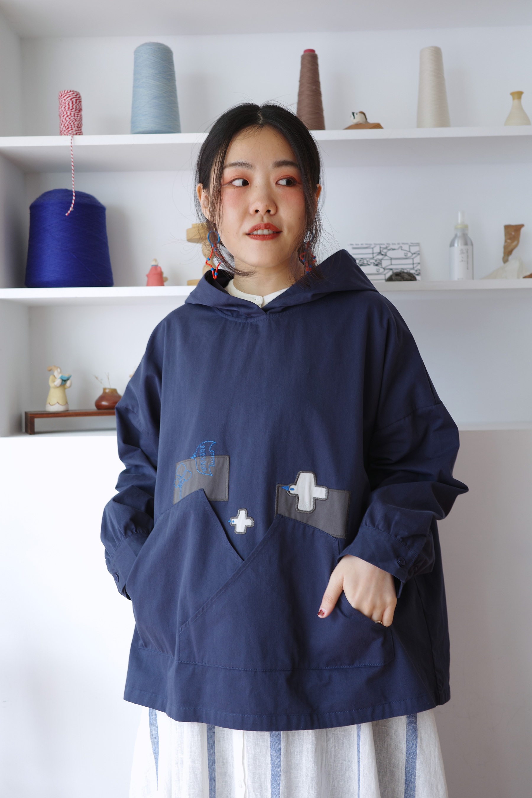 𓏭小山口袋飛鳥刺繡連帽套上衣