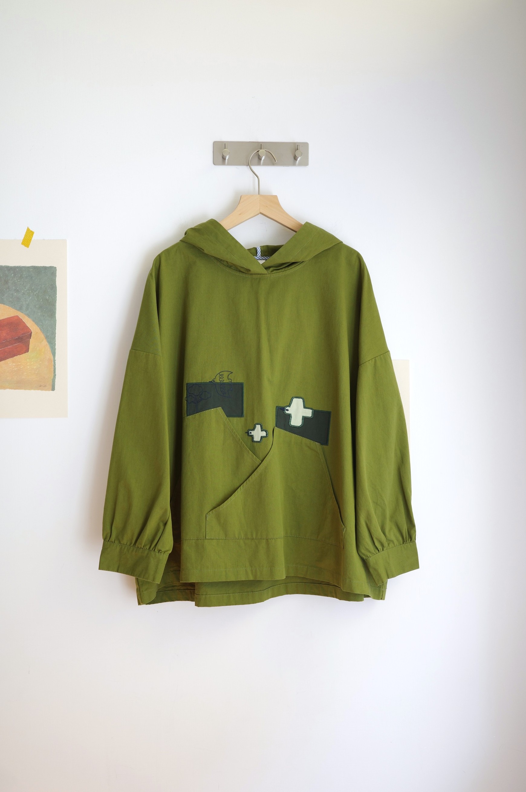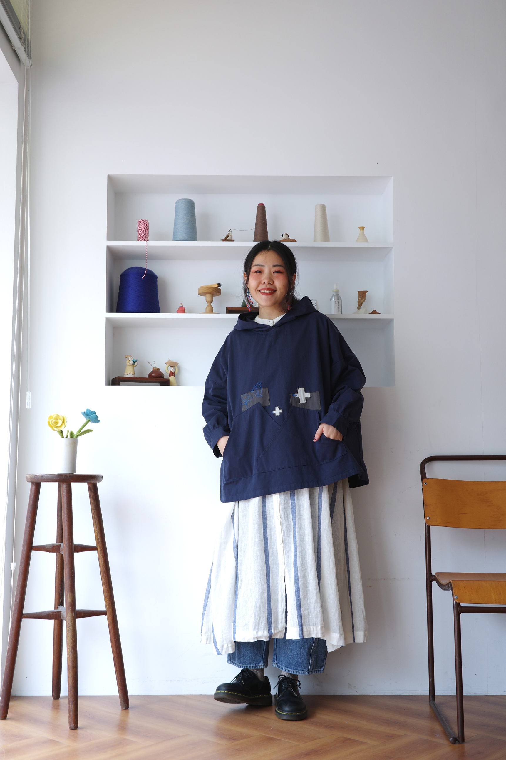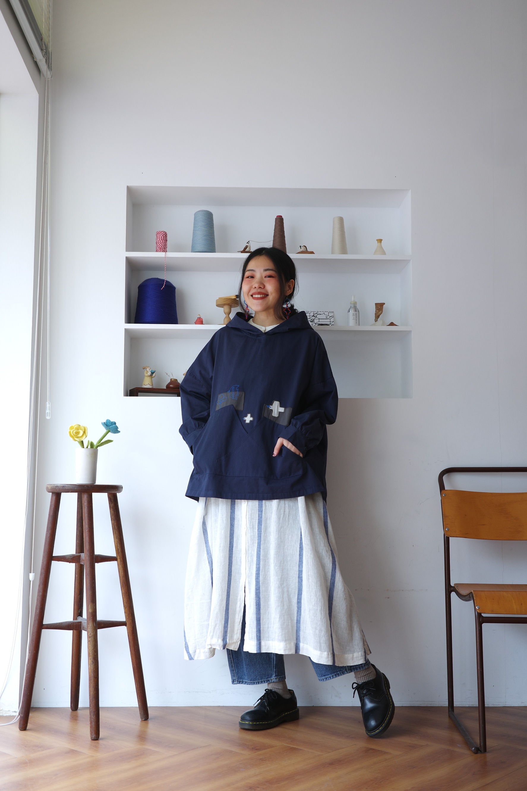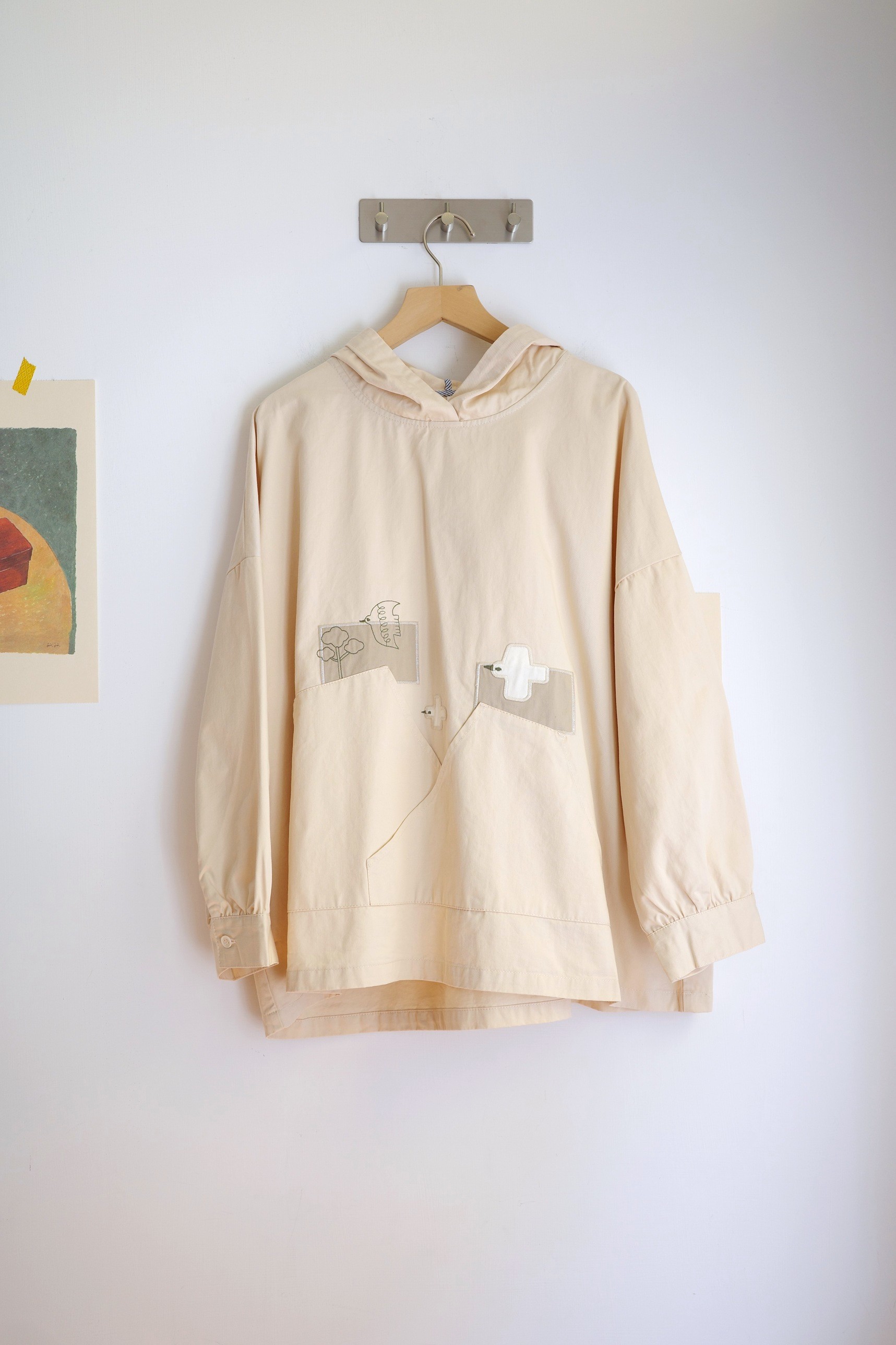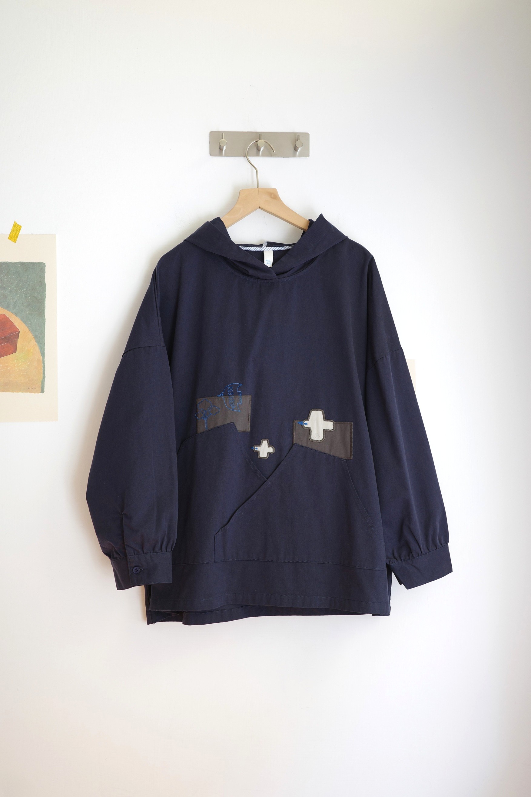 𓏭小山口袋飛鳥刺繡連帽套上衣