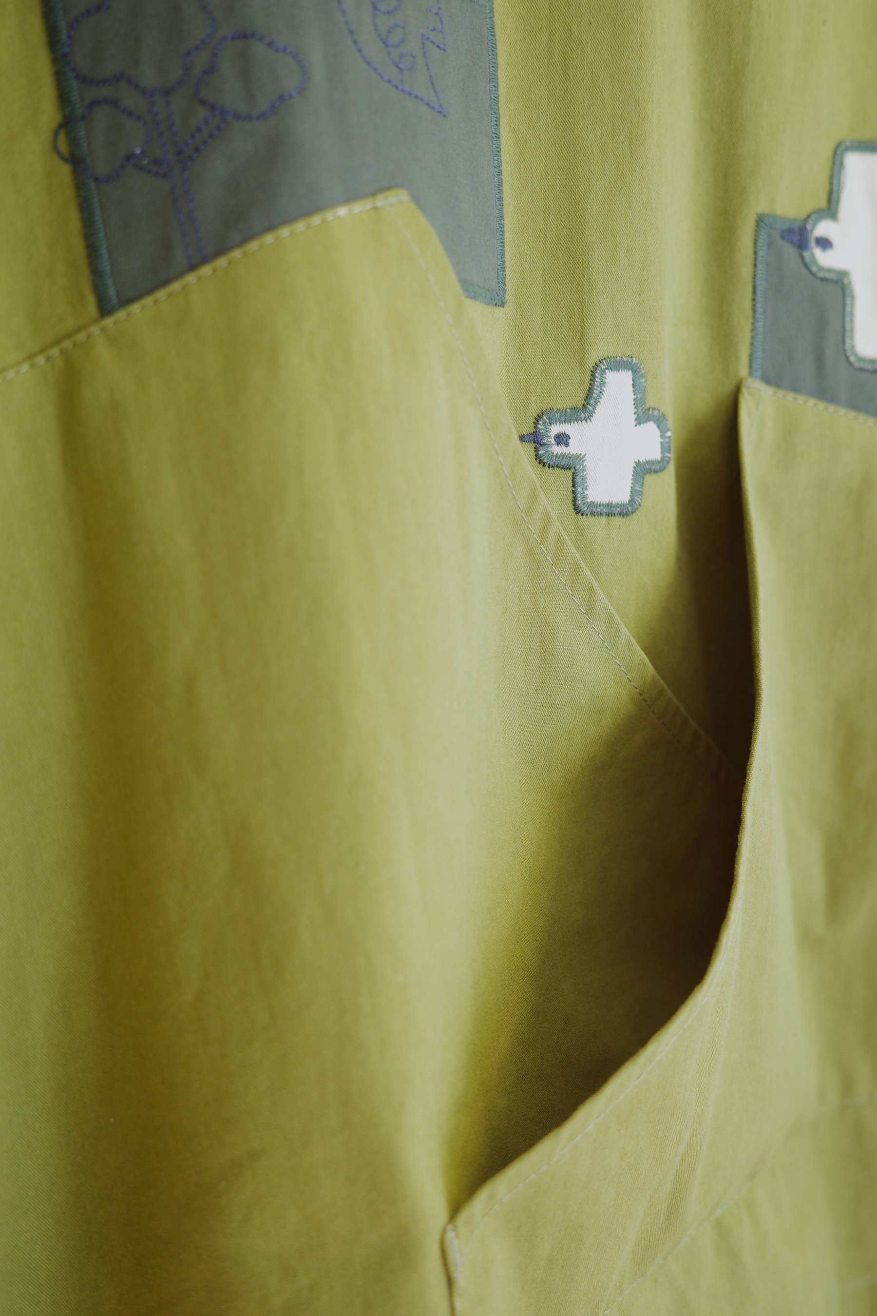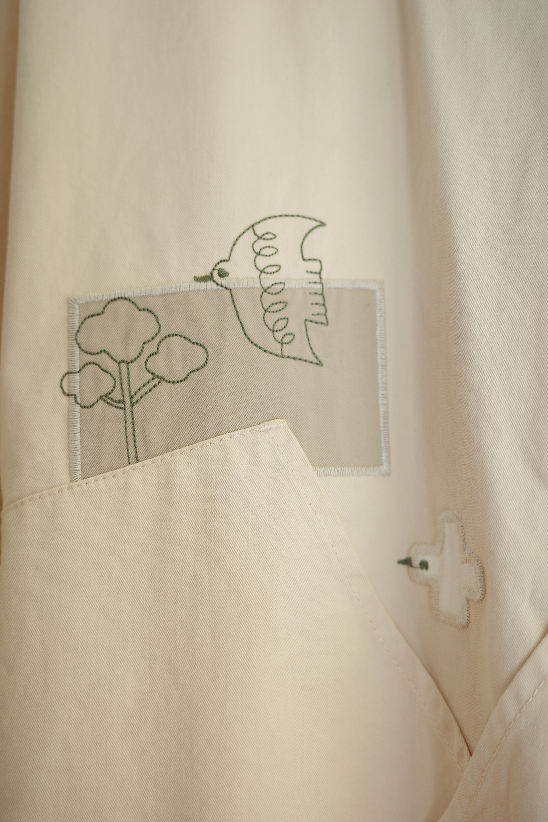小山口袋超可愛!!搭配精緻的飛鳥刺繡變成有趣的圖案。