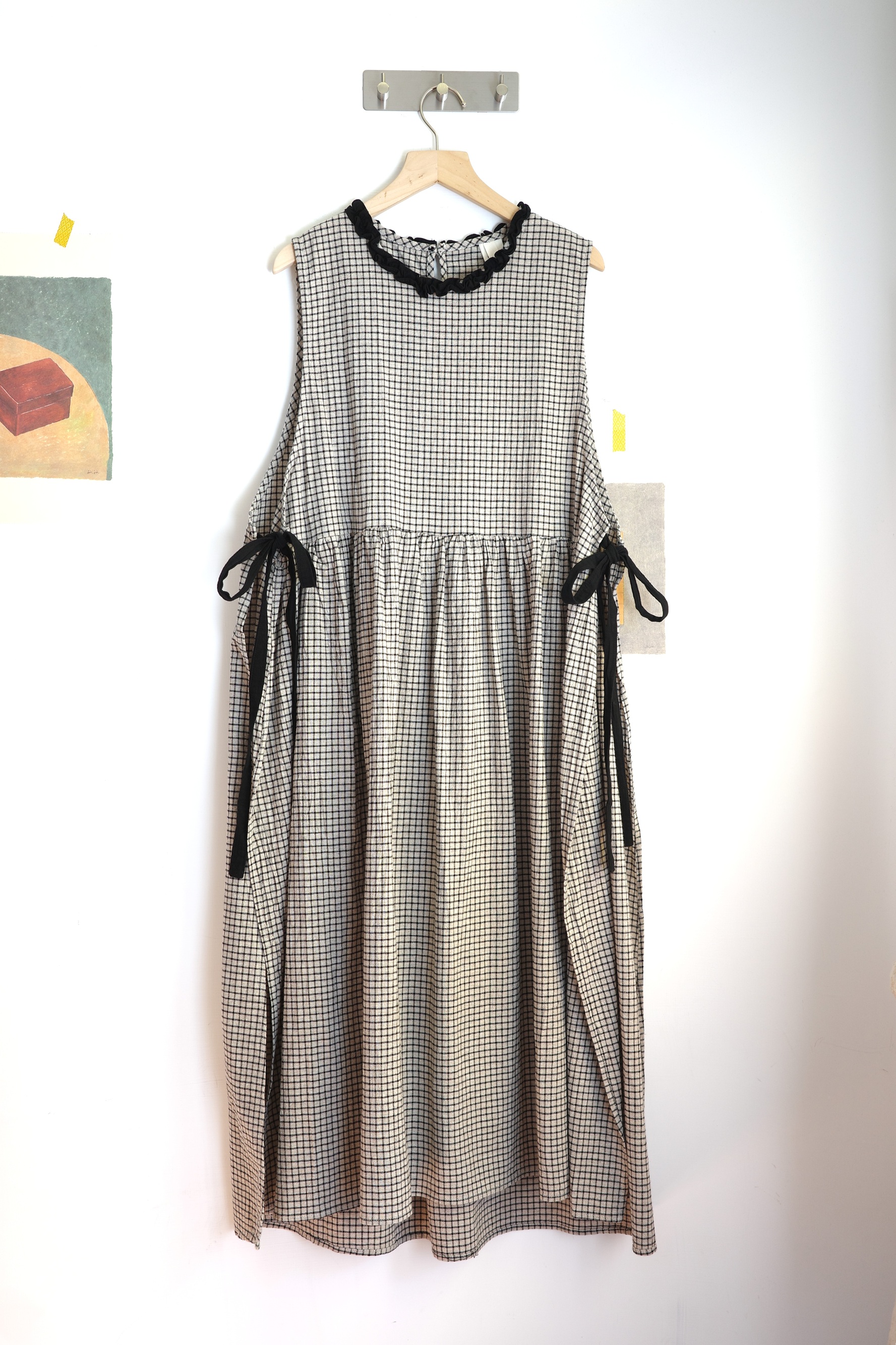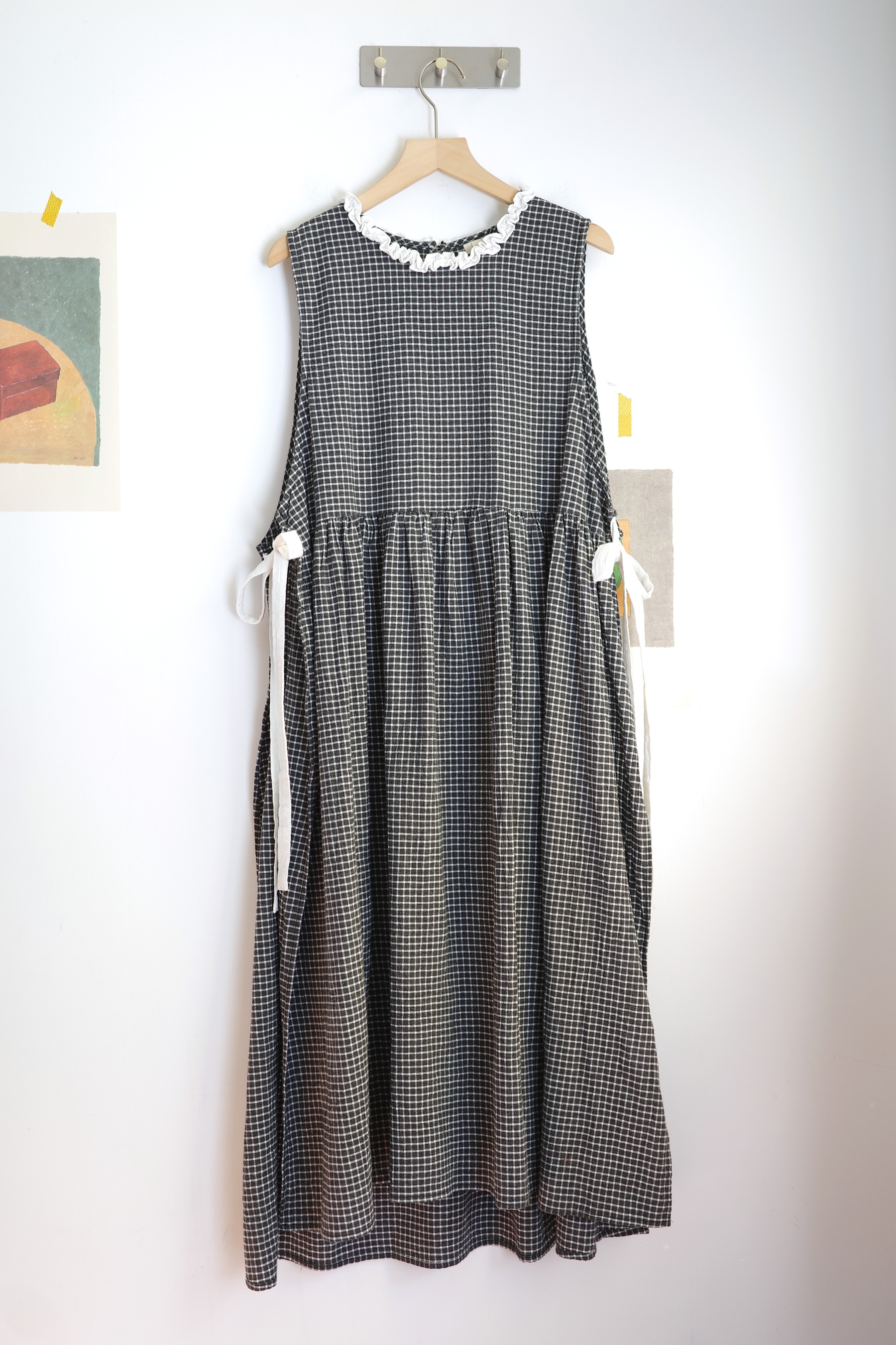𓏭木耳領邊圍裙式繫帶洋裝