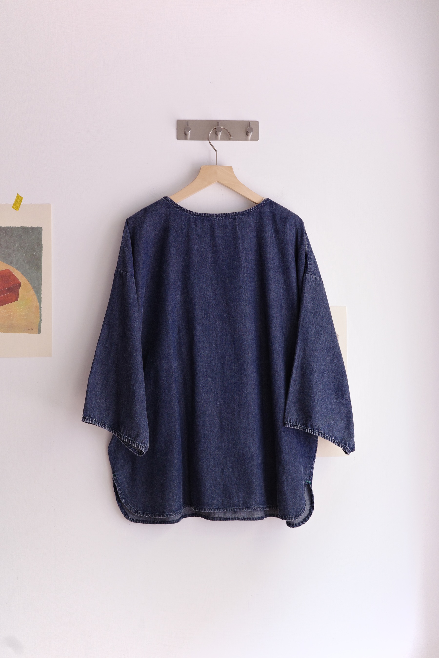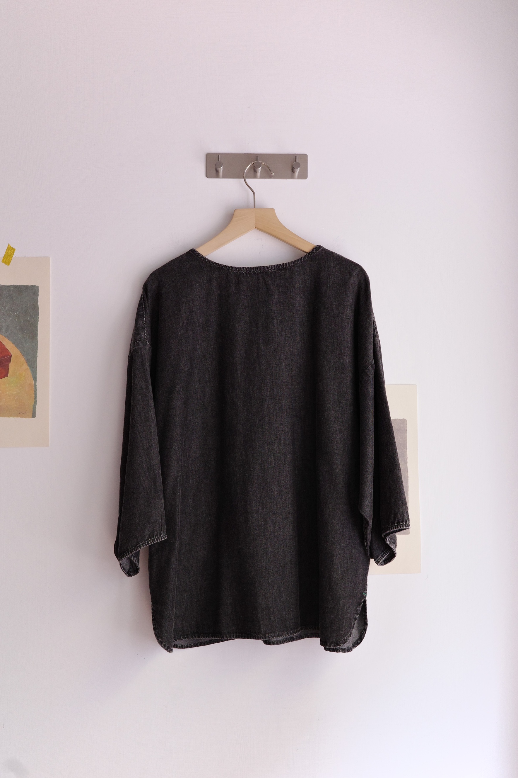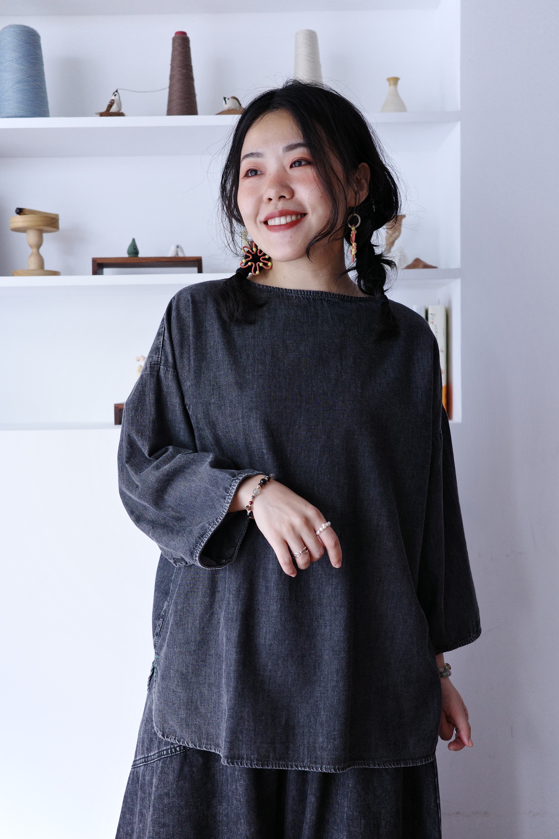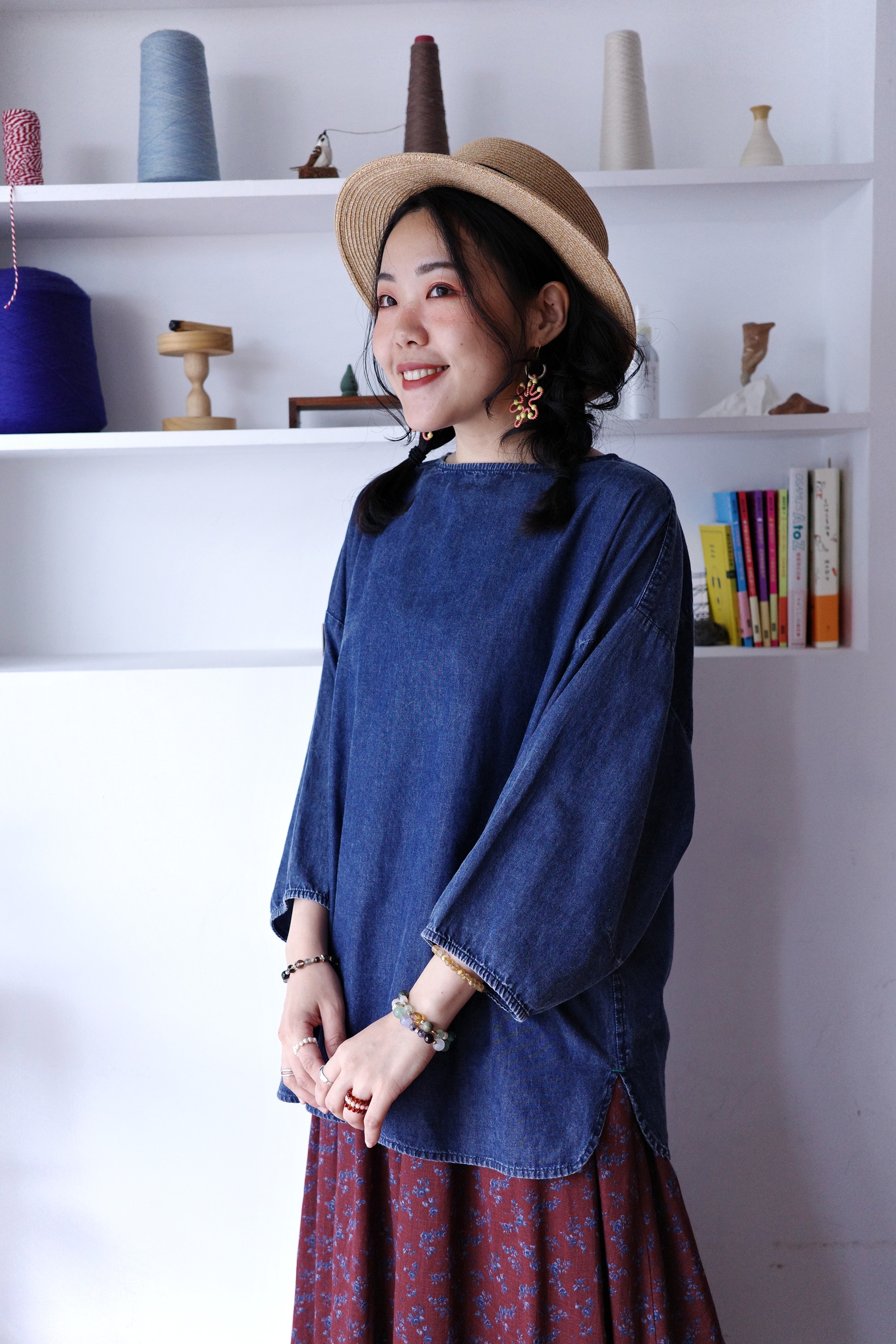 鬆身版型,下擺圓弧開衩,七分袖的率性休閒感,