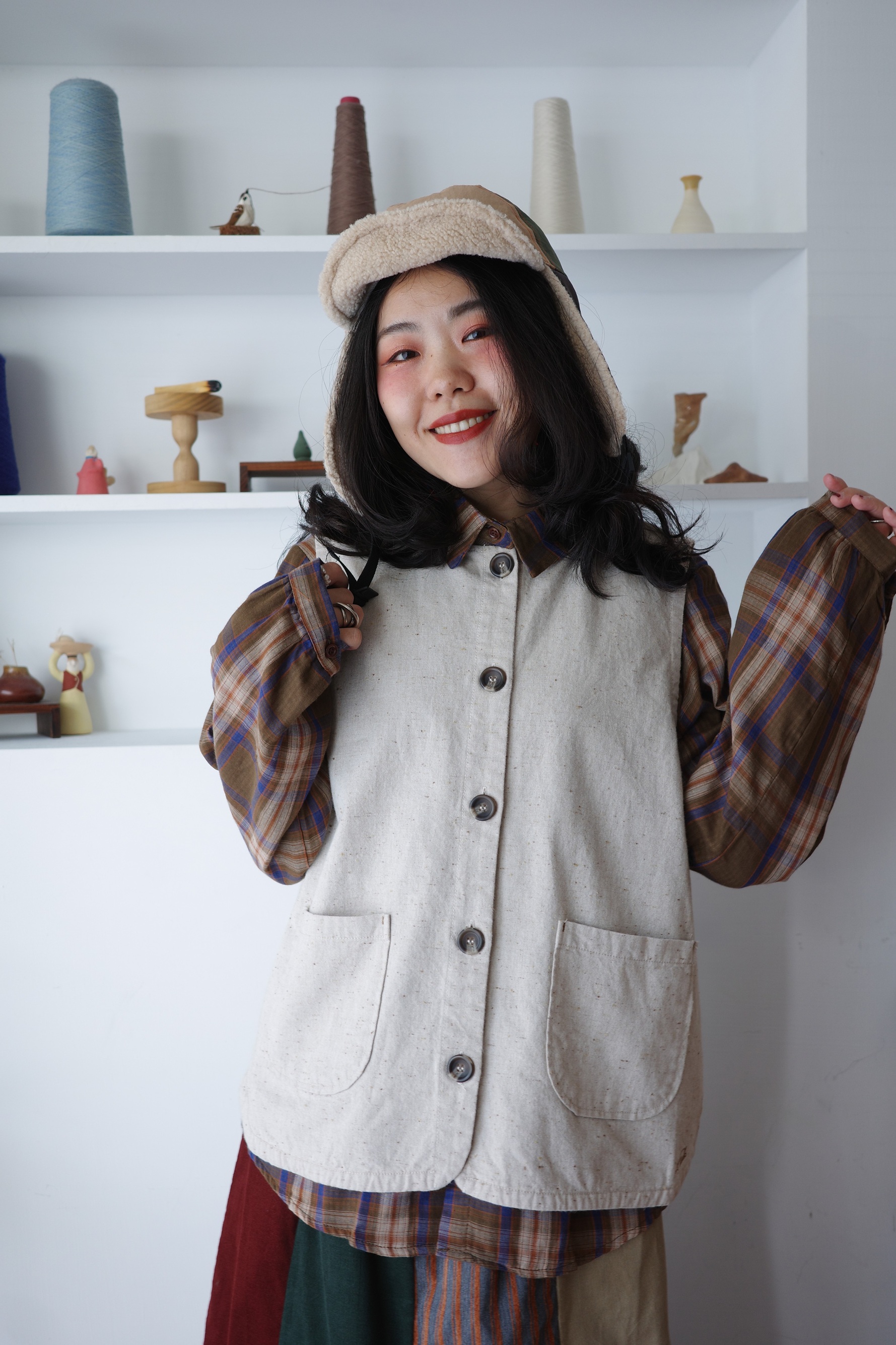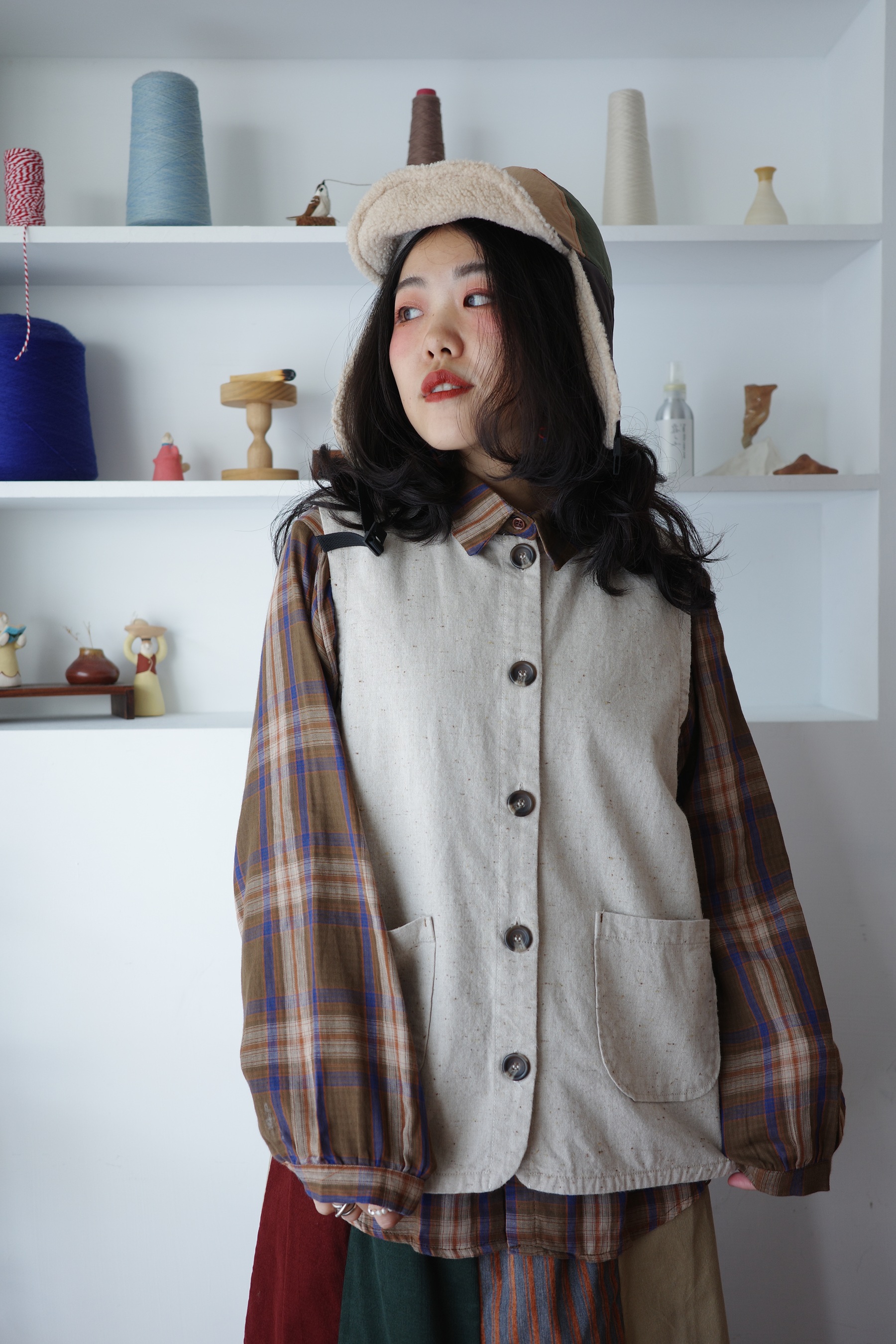 內外不同格紋,反折袖口也很好看。