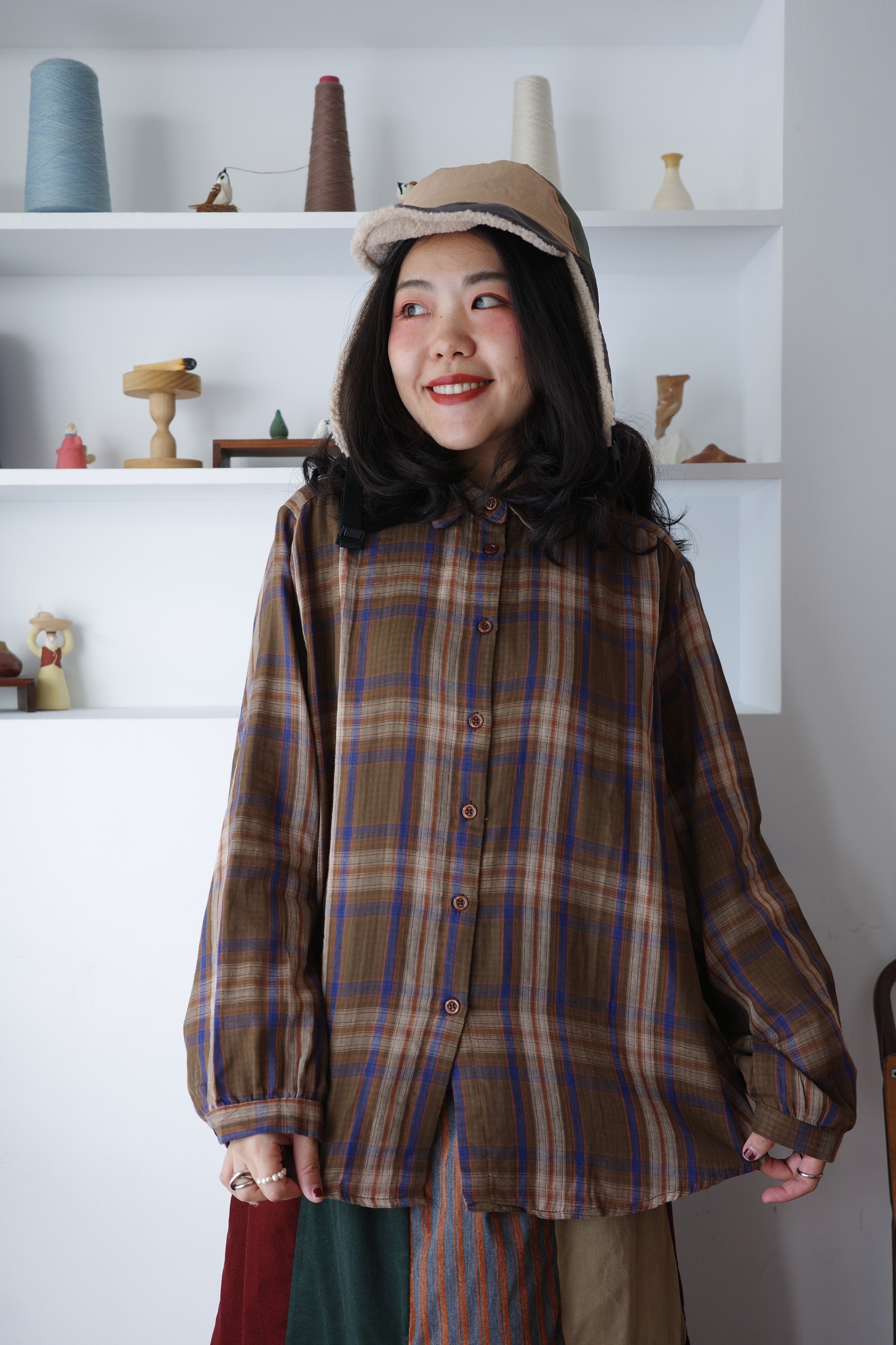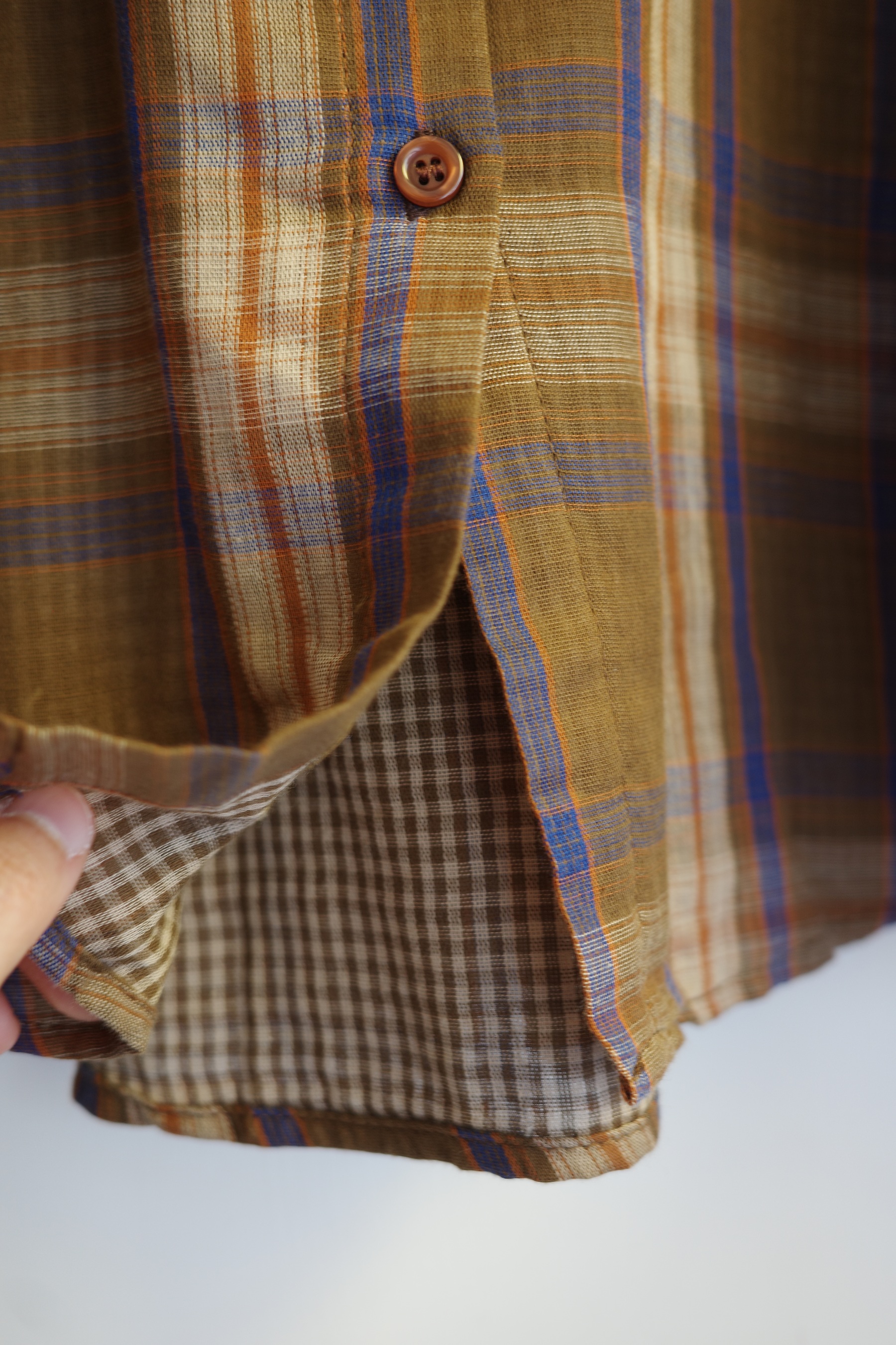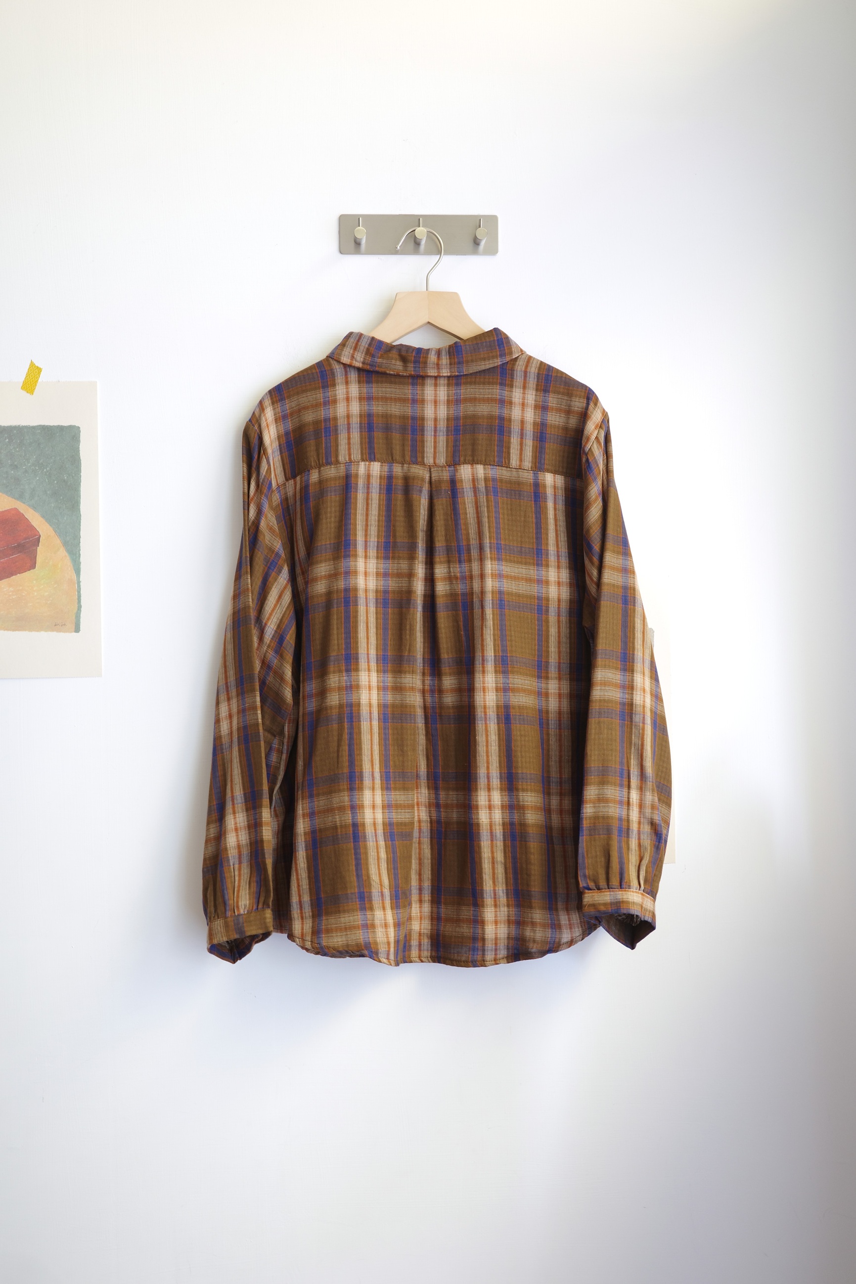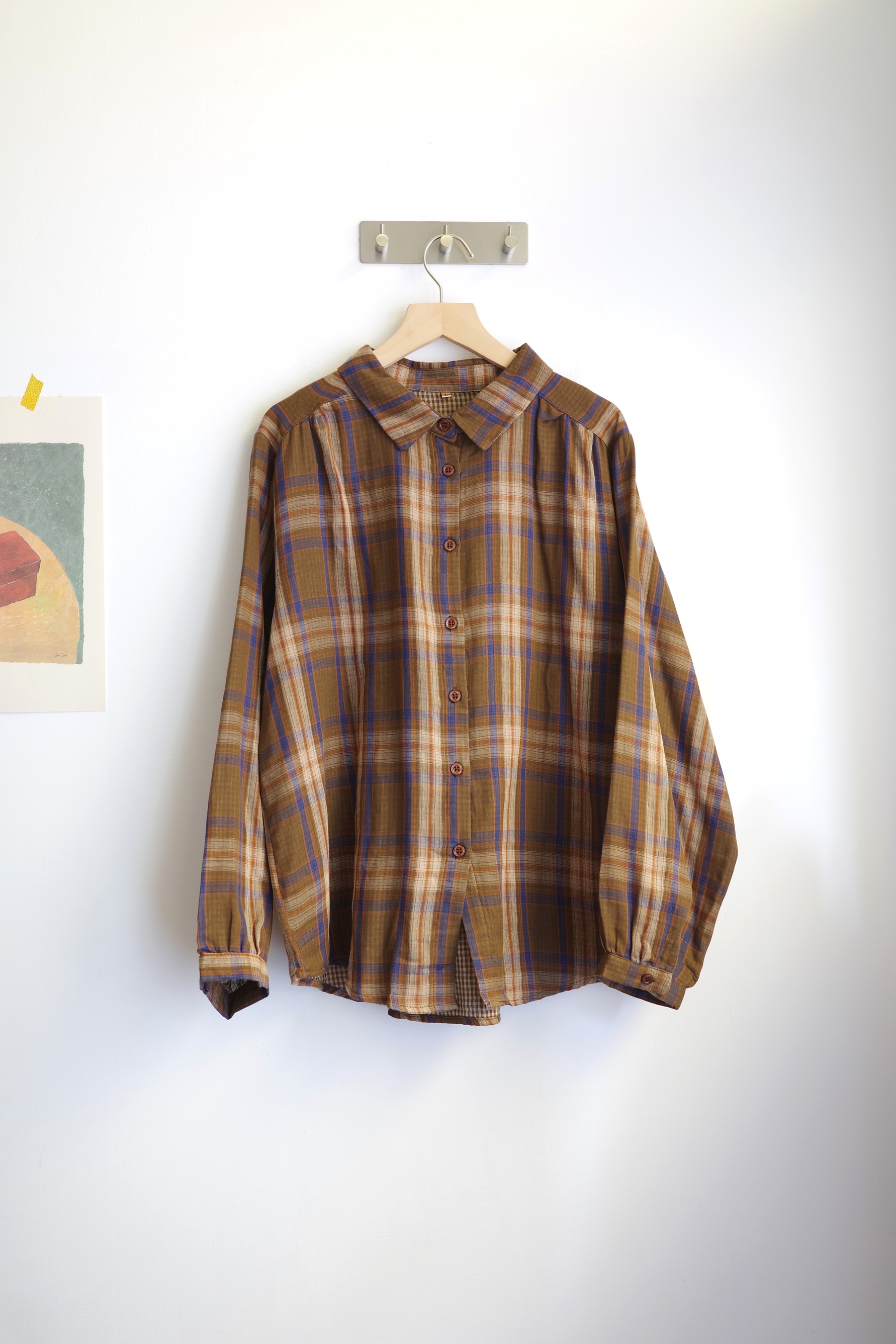 復古配色的二重紗格紋襯衫,