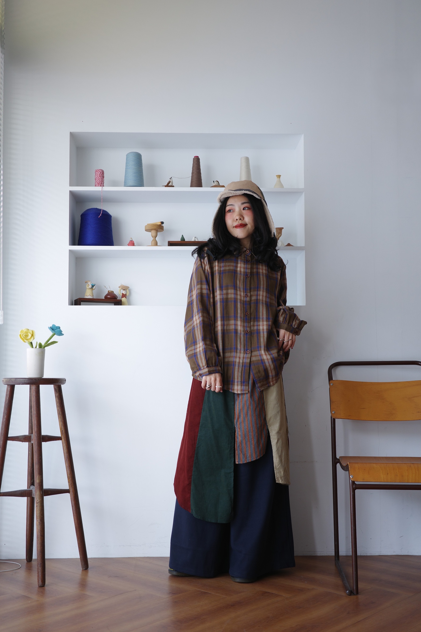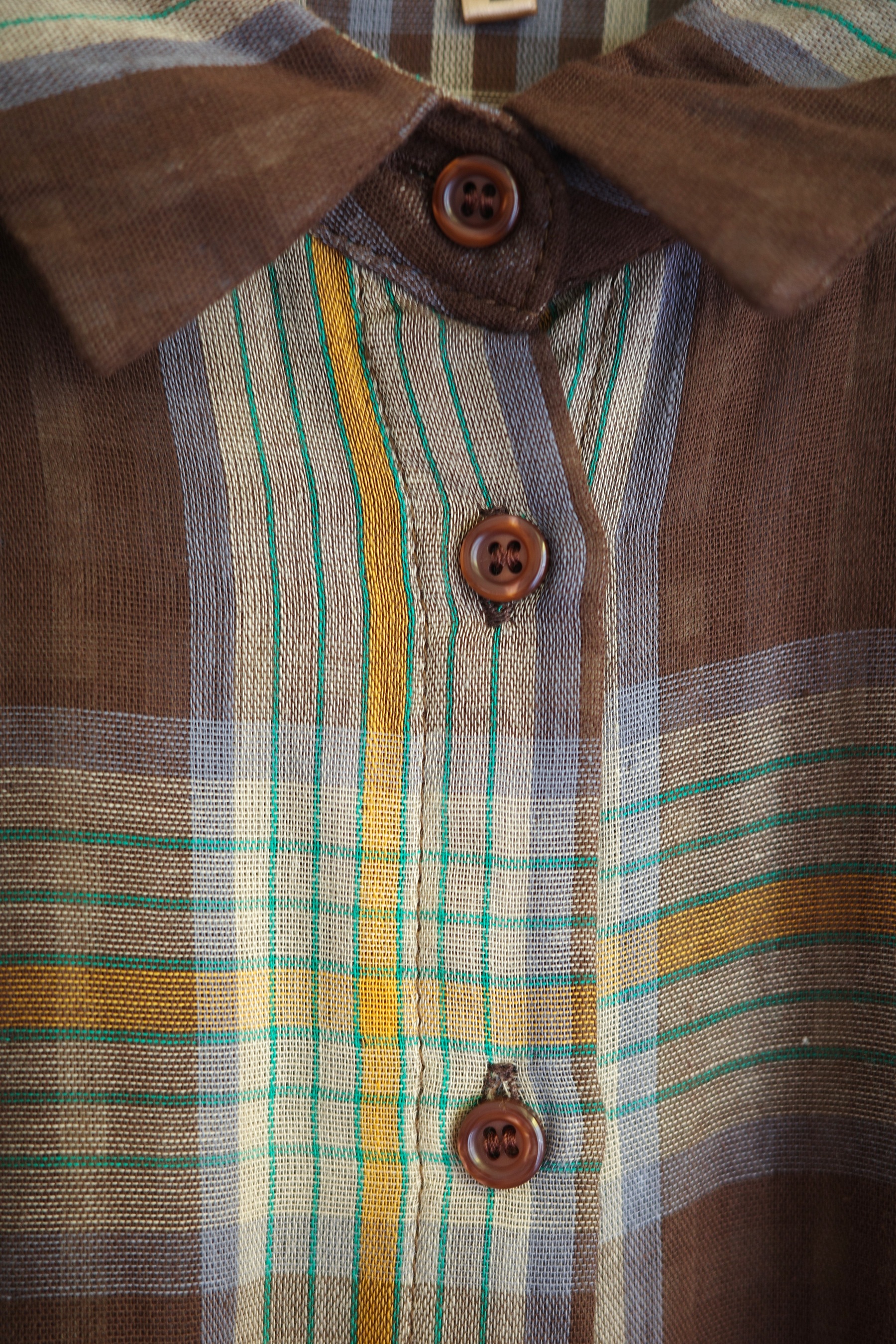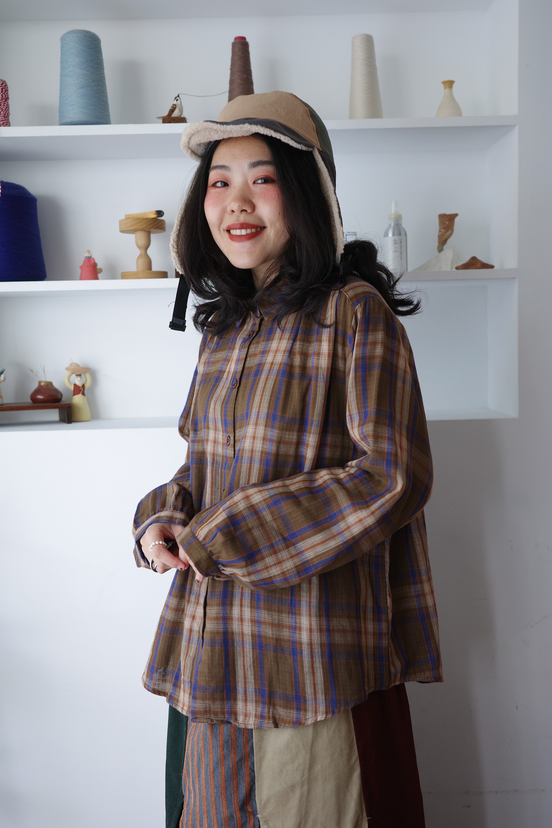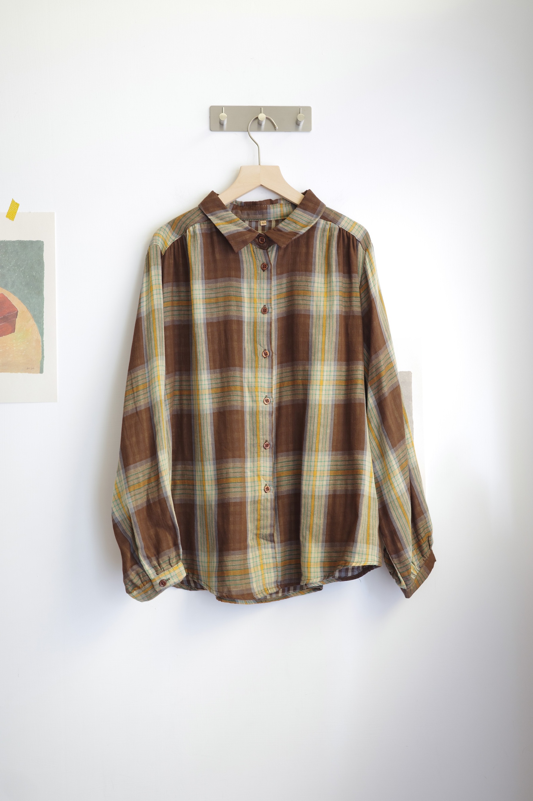 復古配色的二重紗格紋襯衫,