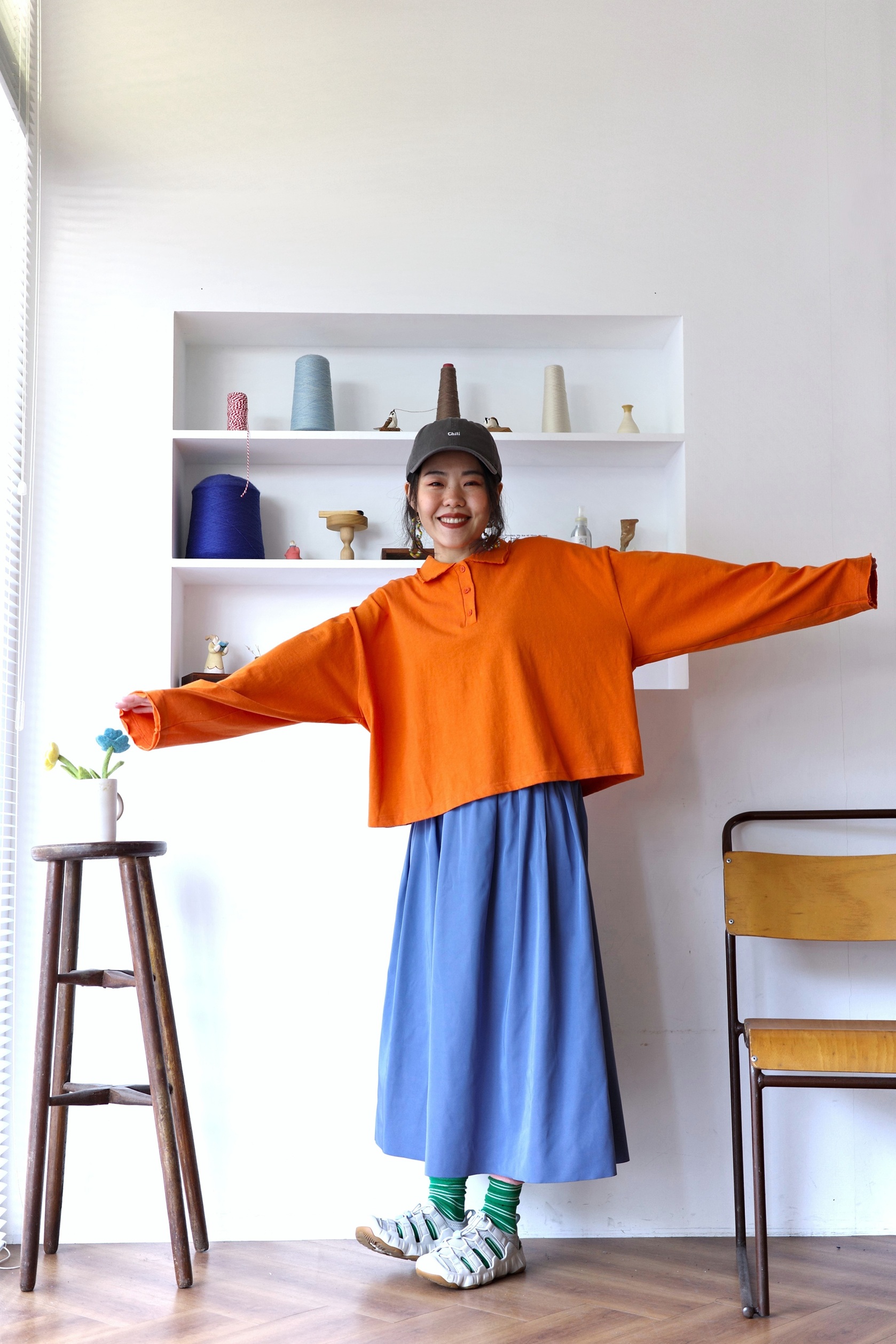 中短寬版剪裁可以拉長比例線條,搭配落地寬褲也很好看!!