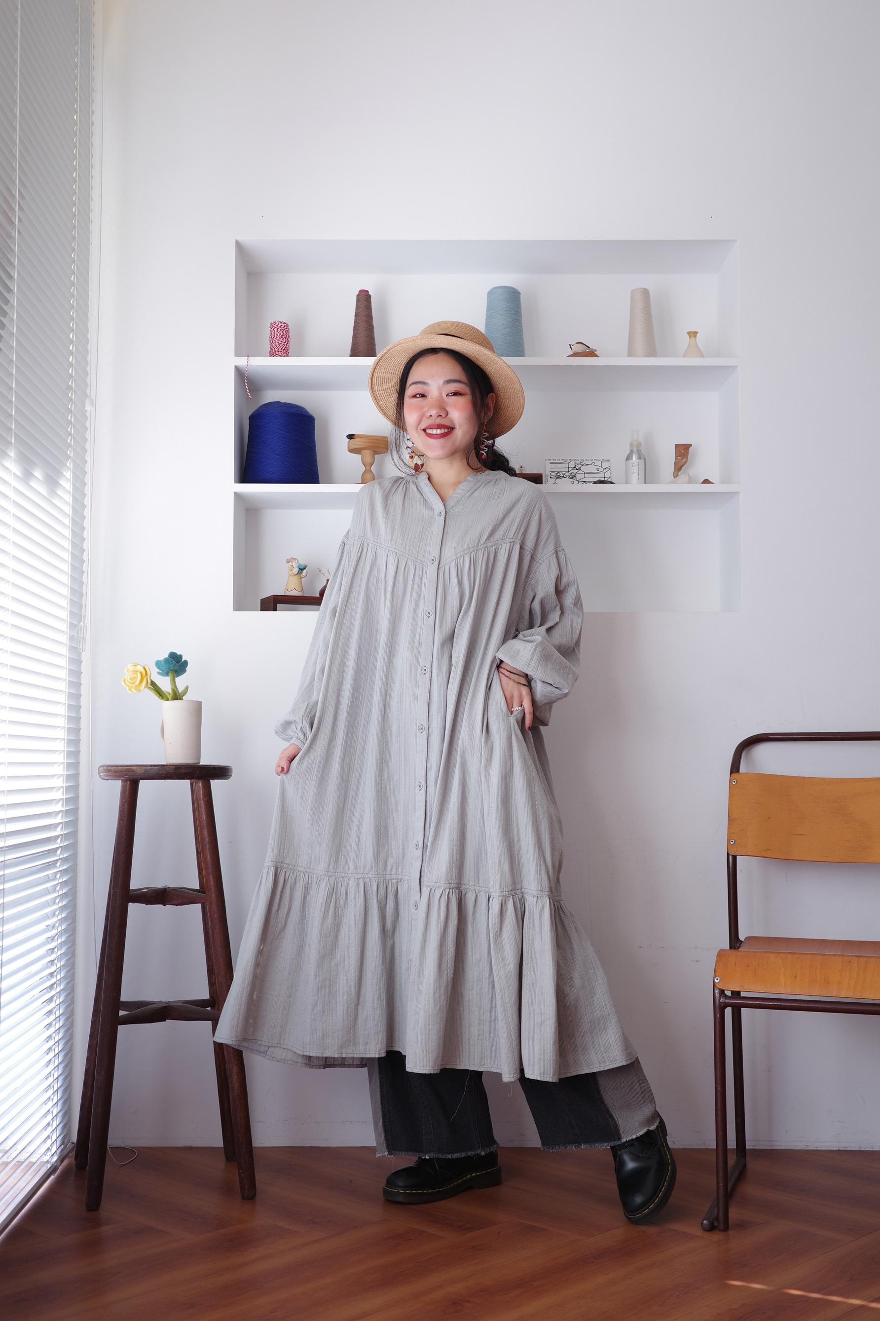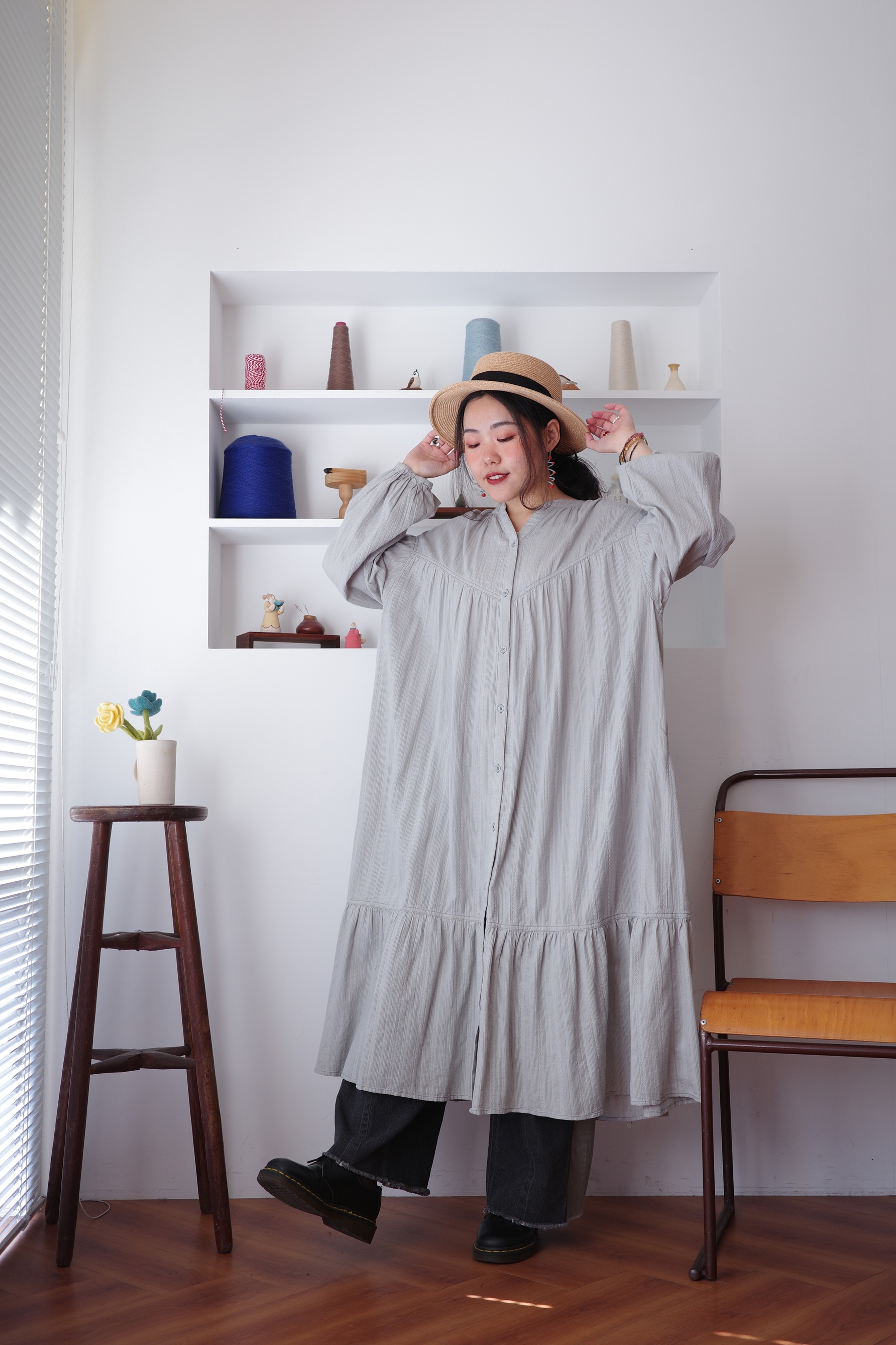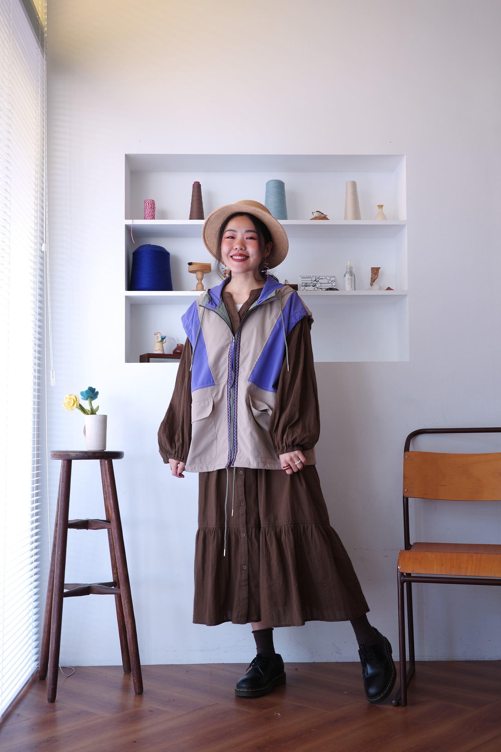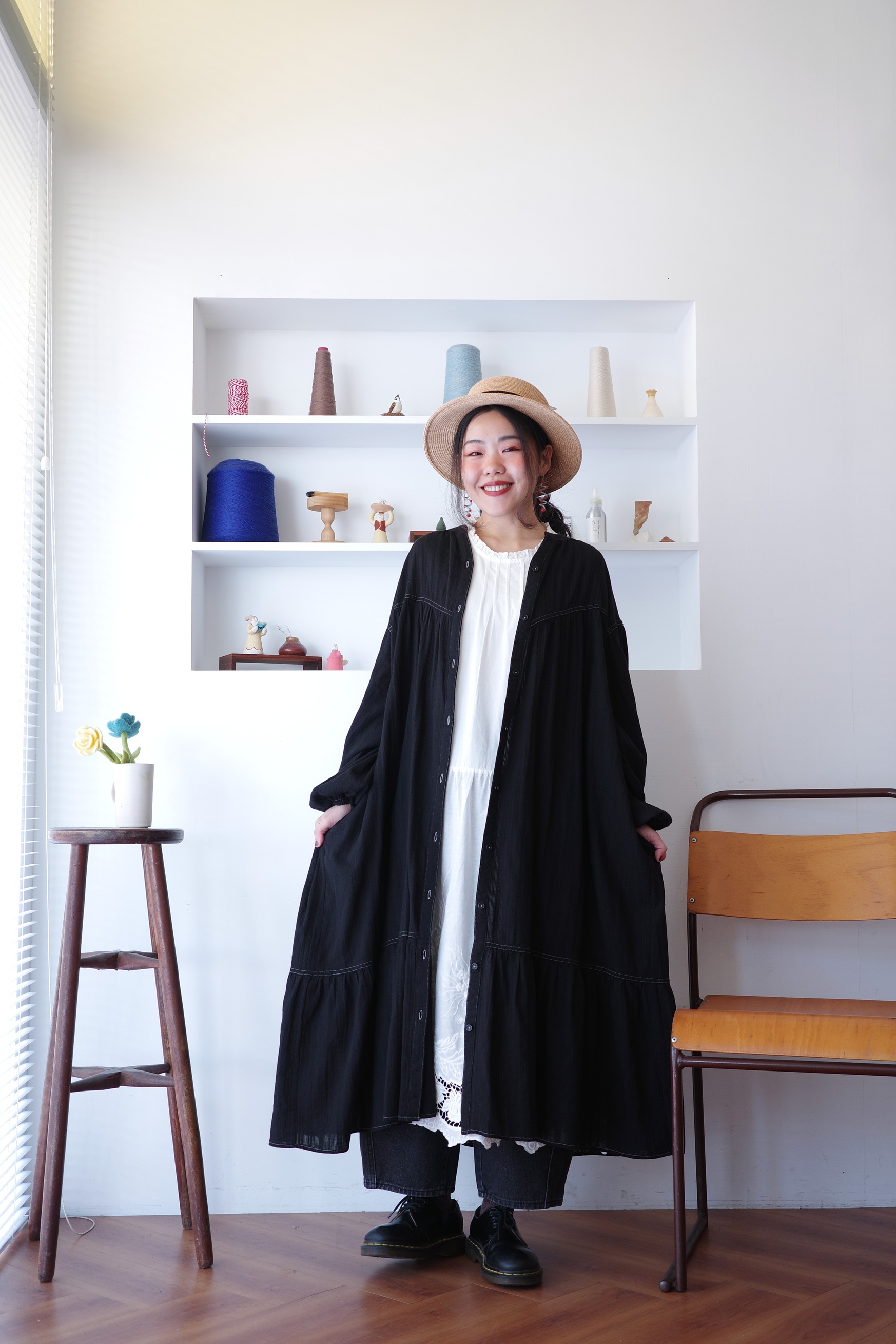 彈性袖口,可以全開釦當罩衫,兩側有口袋