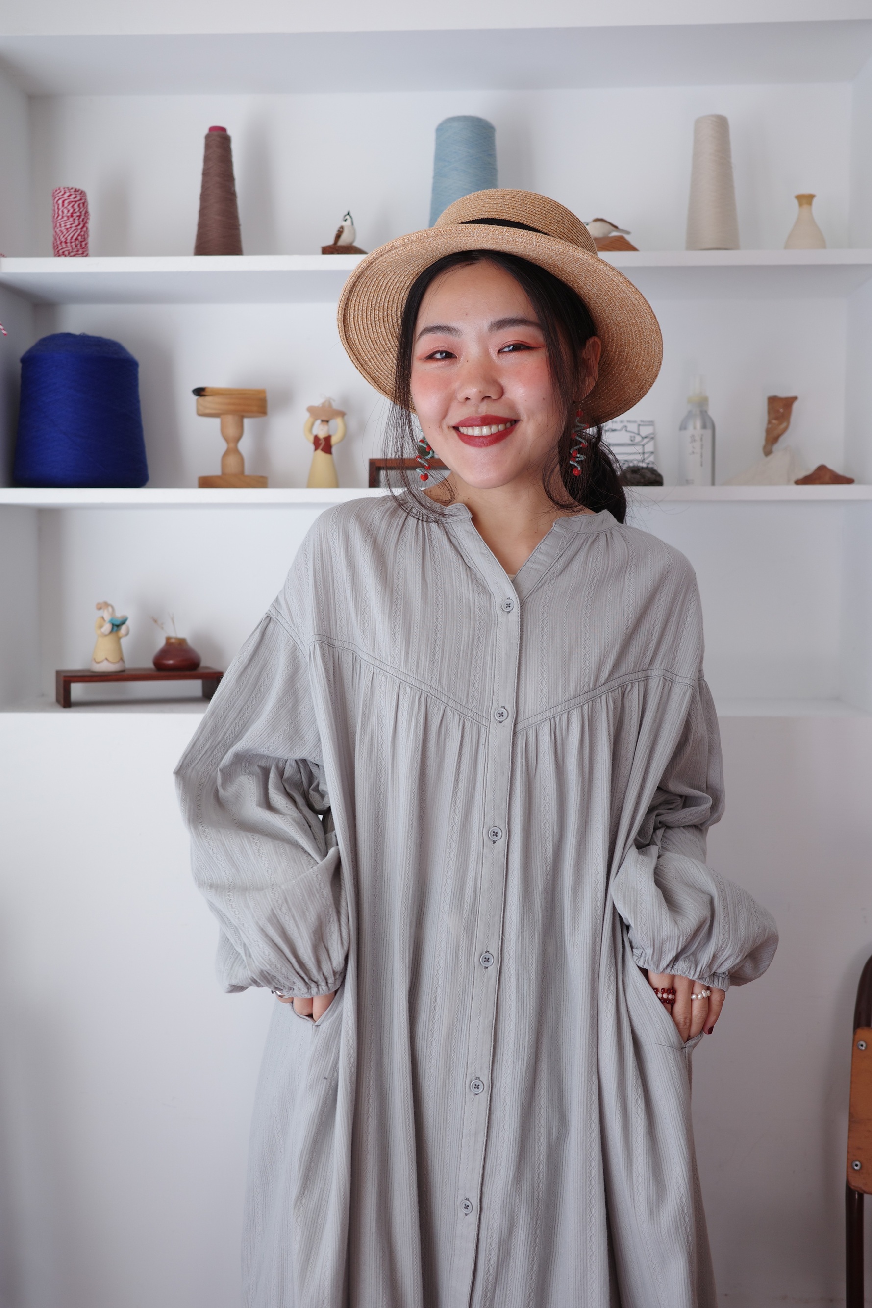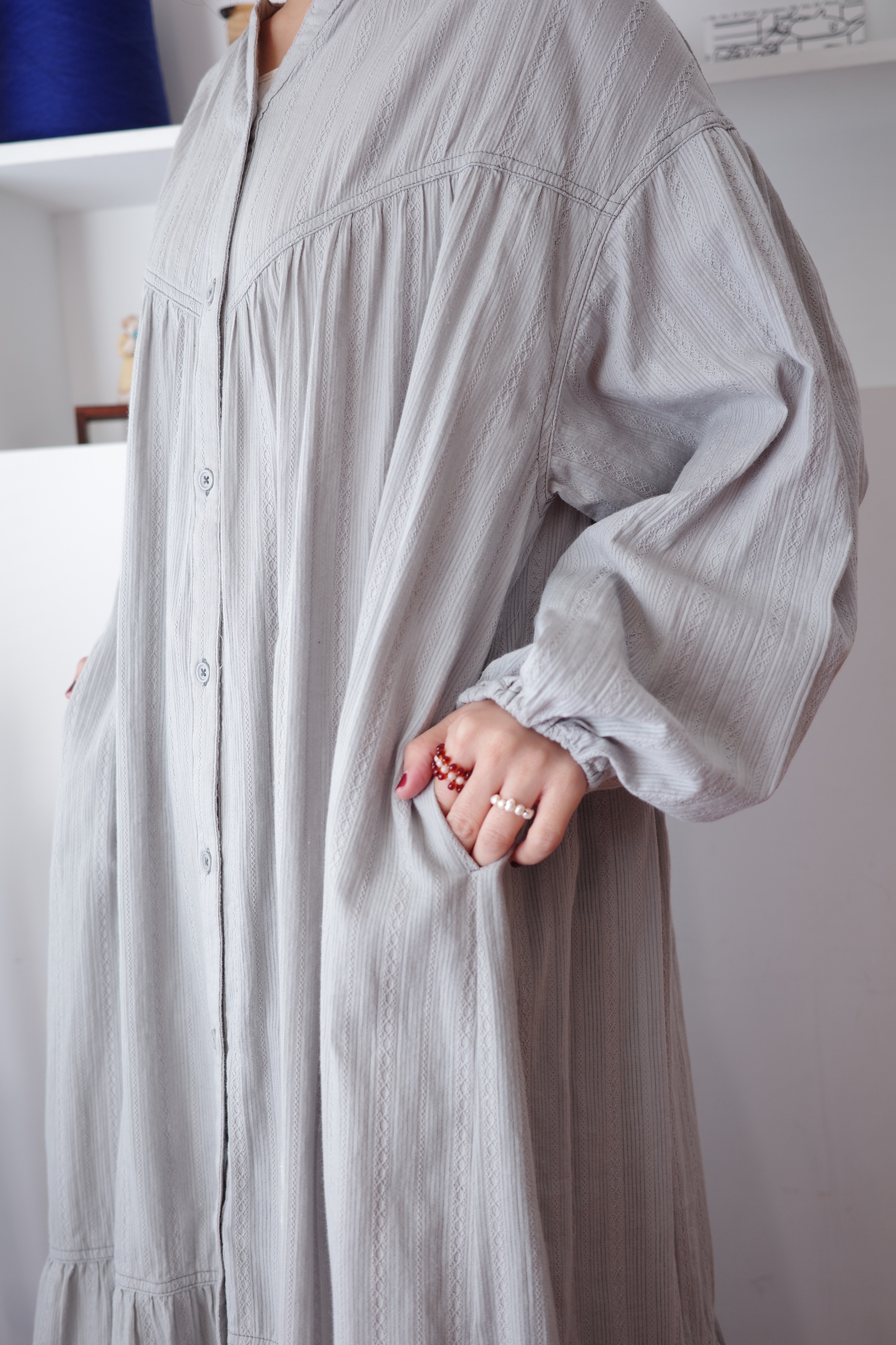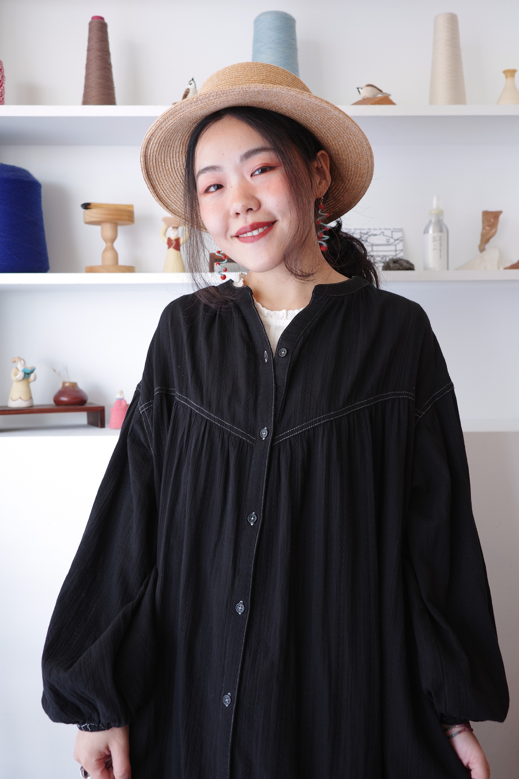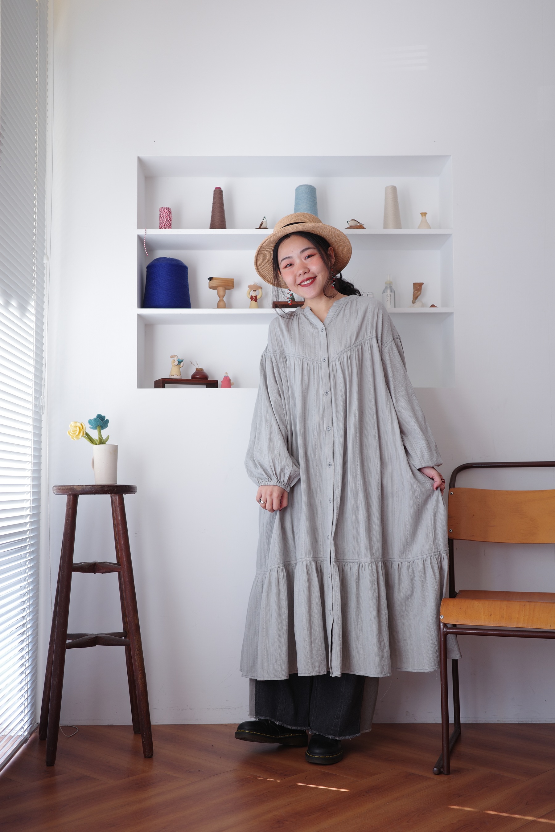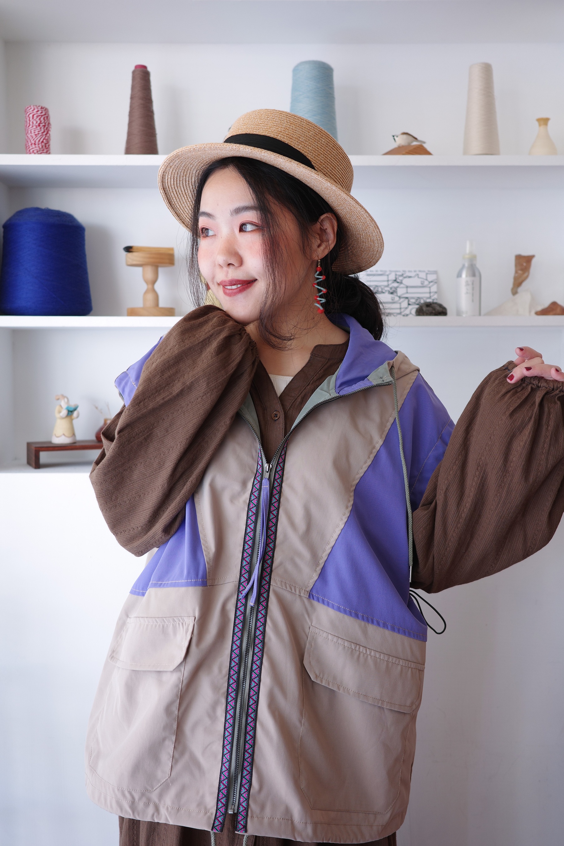 彈性袖口,可以全開釦當罩衫,兩側有口袋