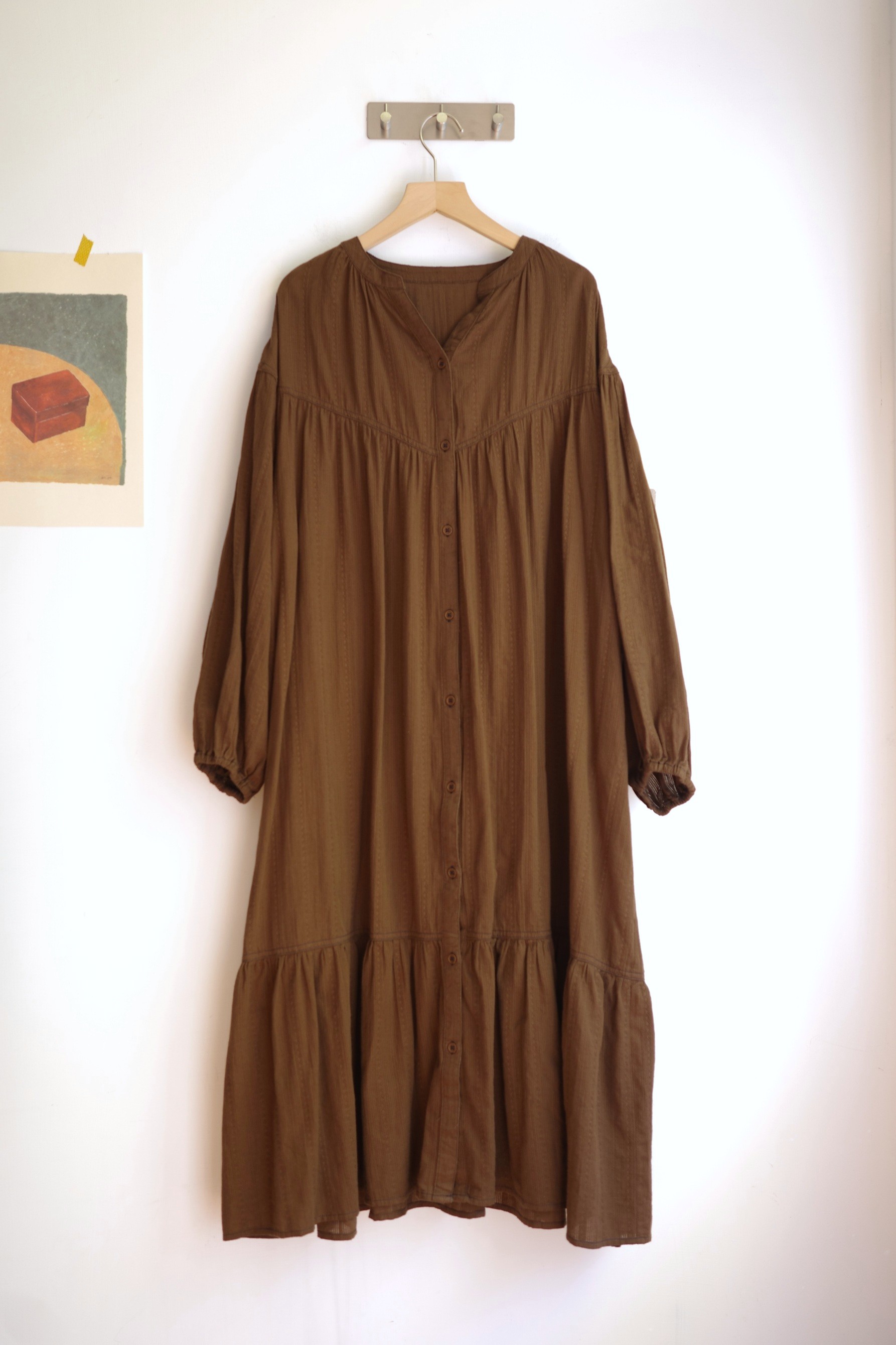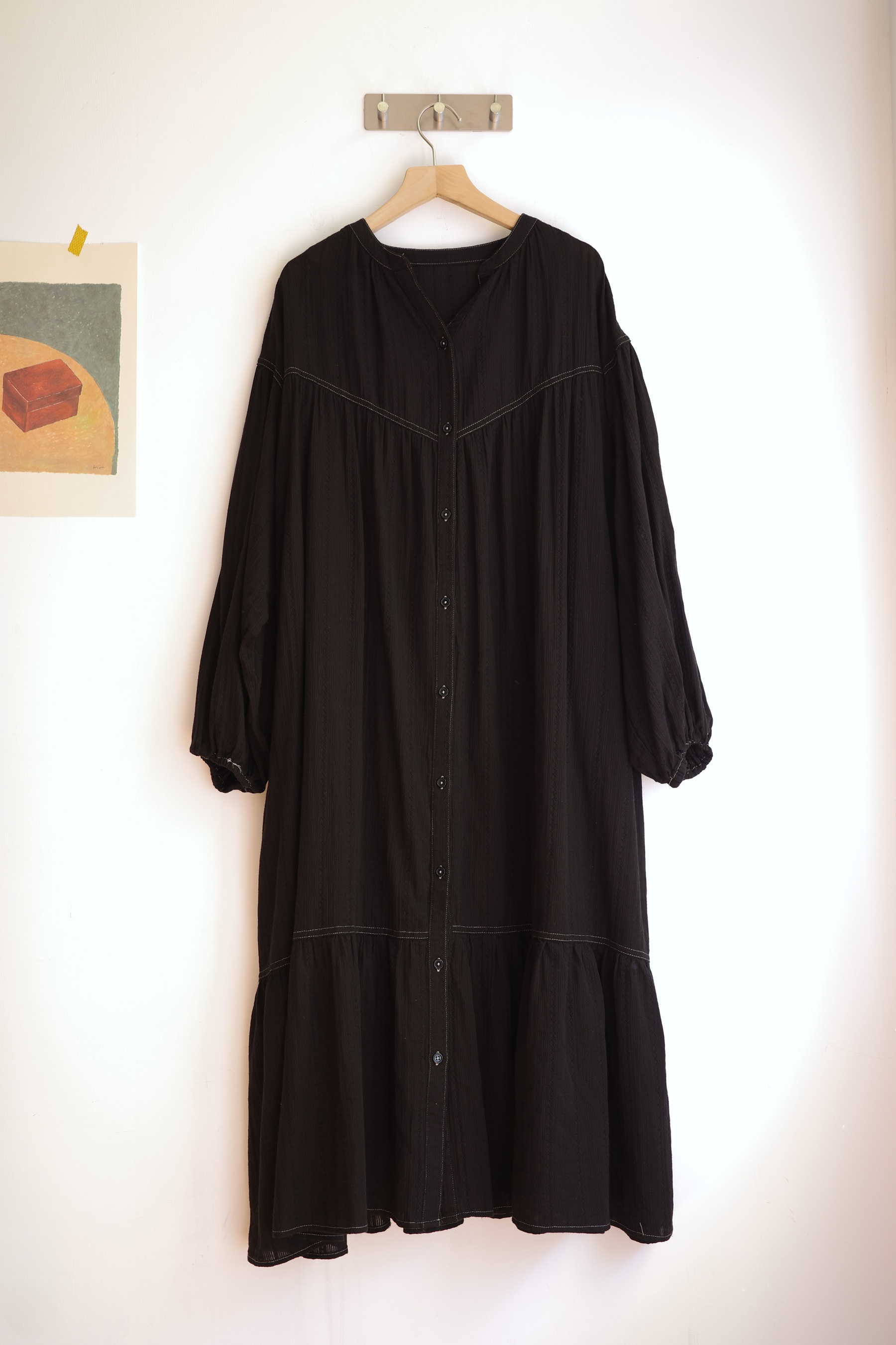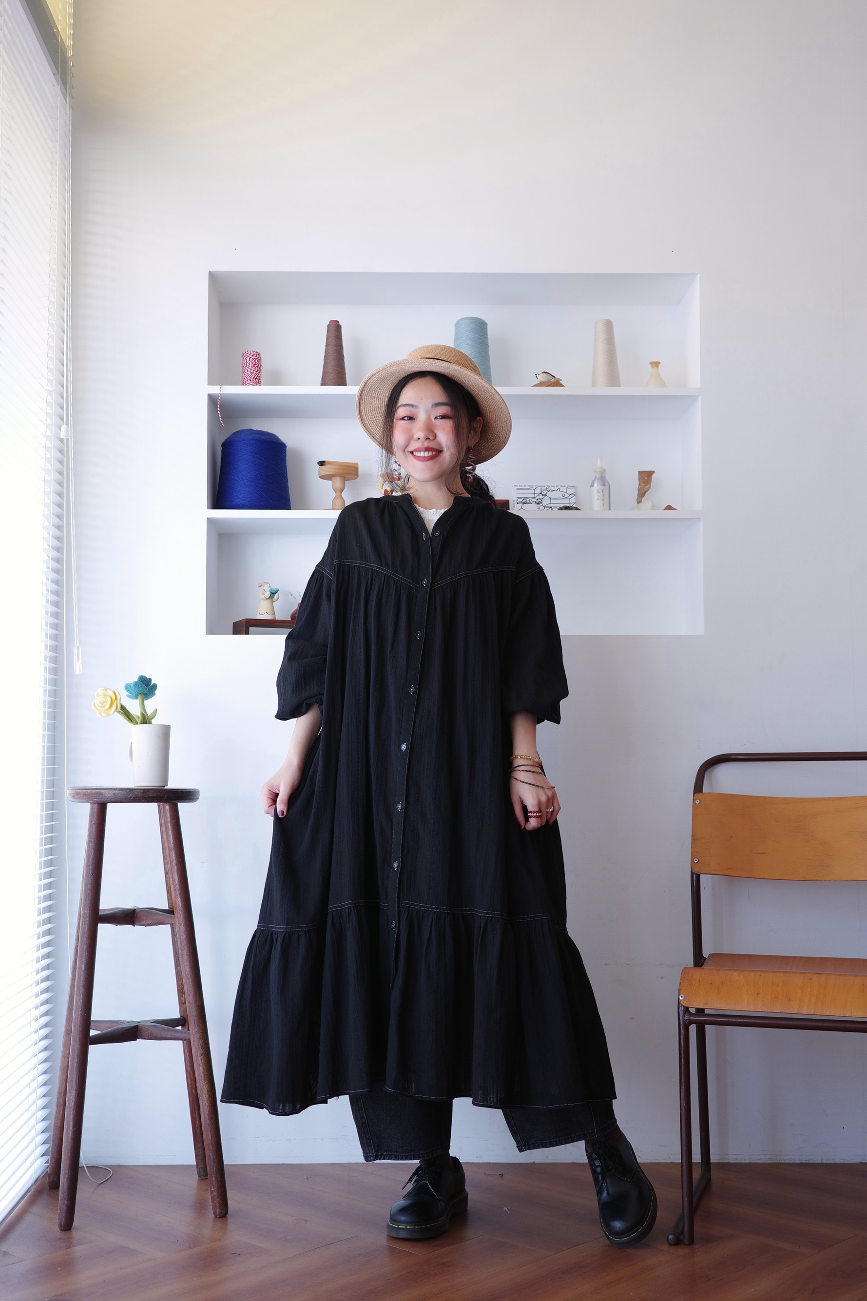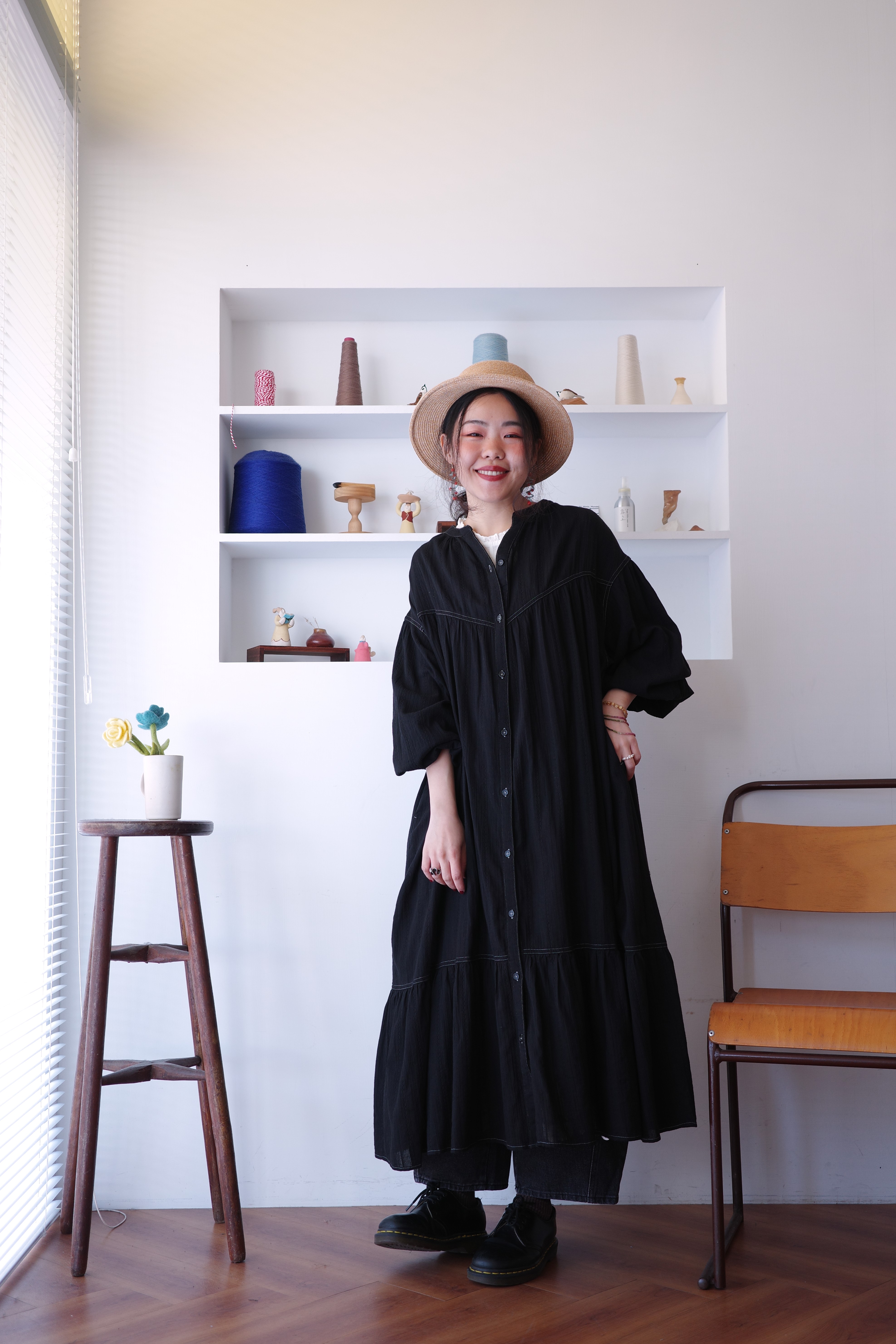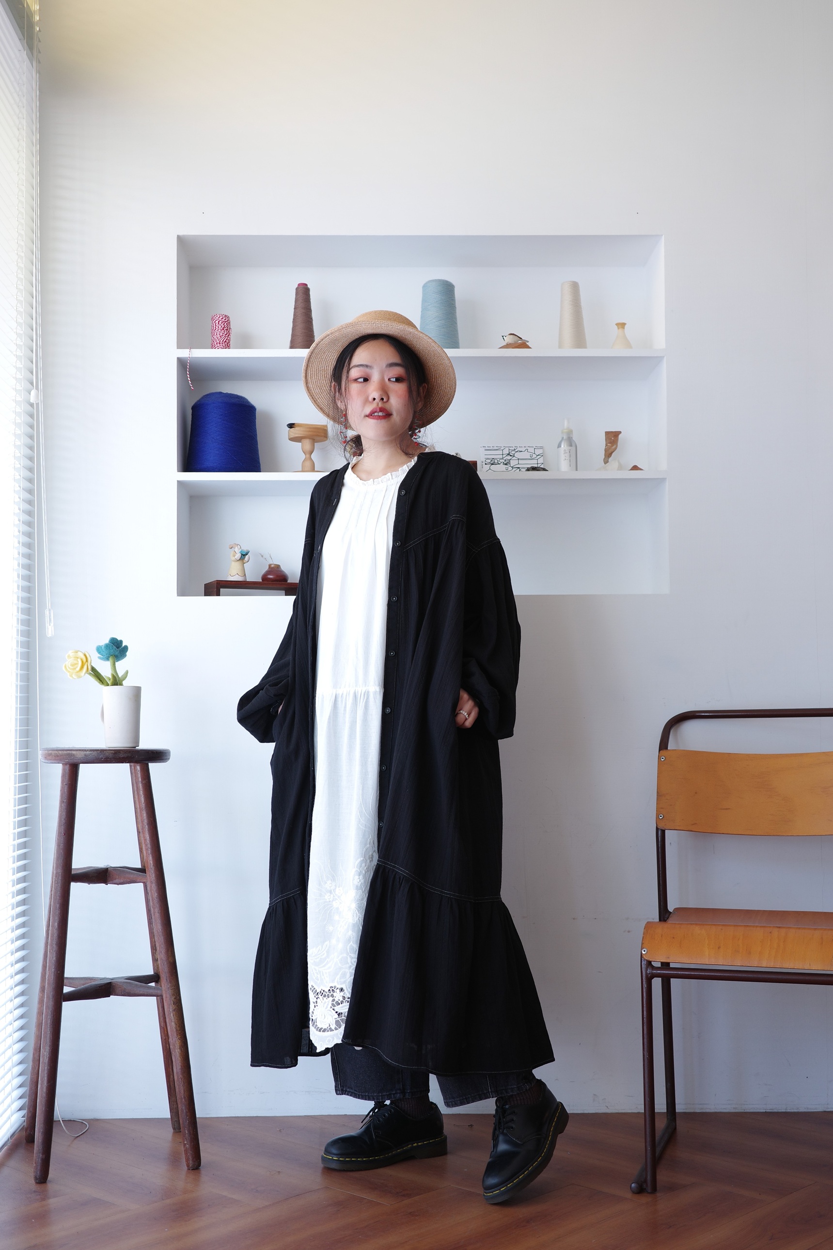 𓏭精緻緹花布料車線魚尾開襟洋裝