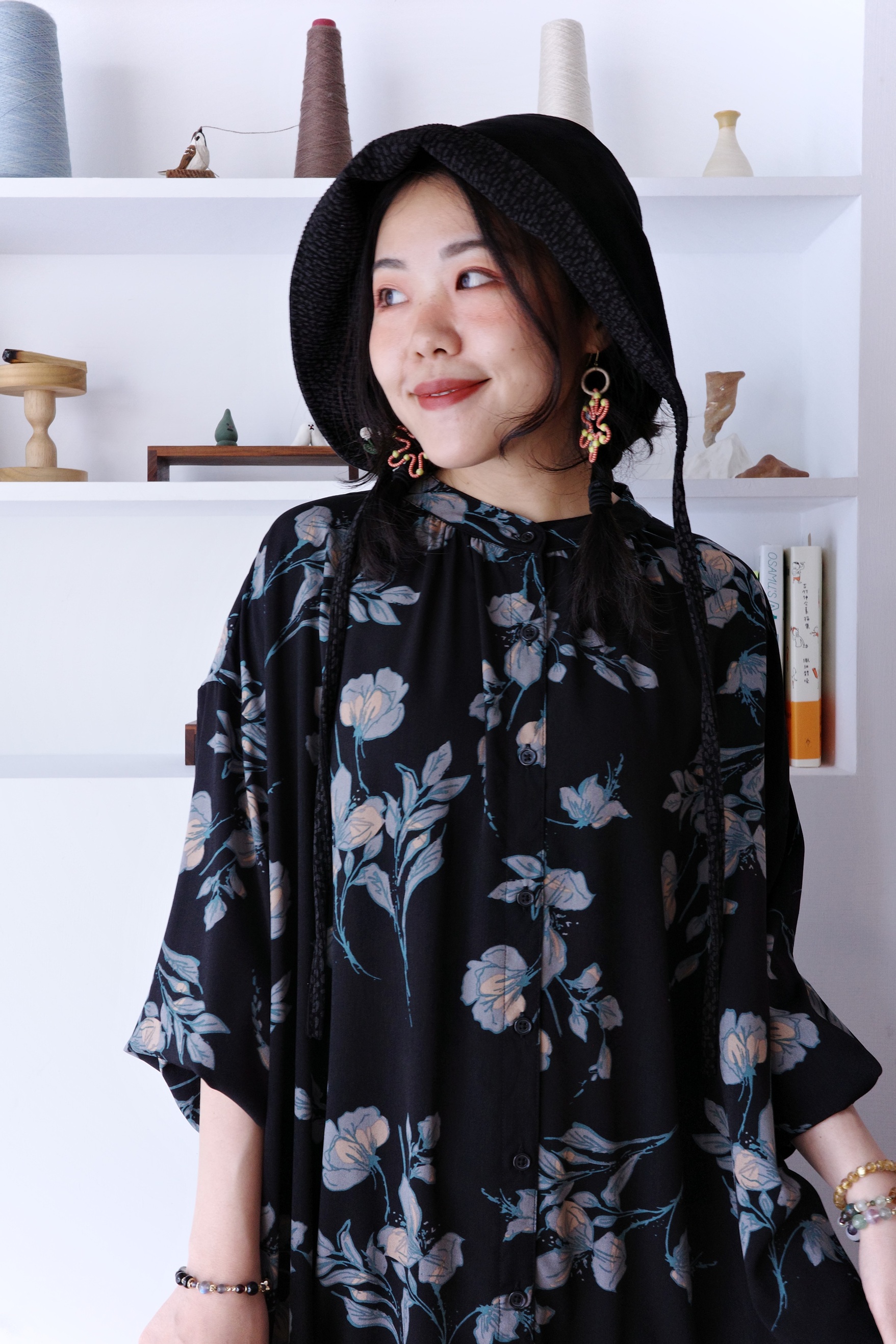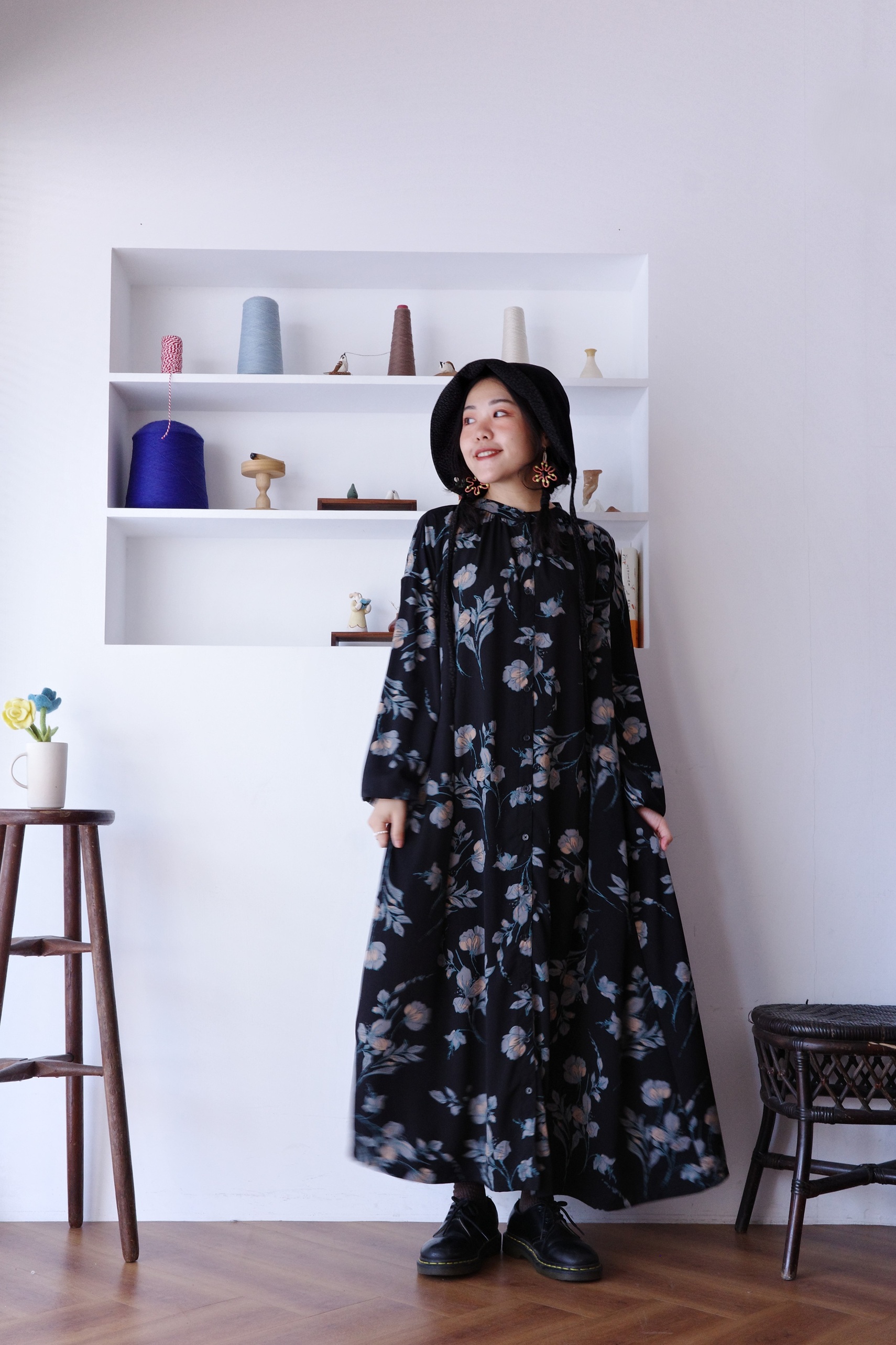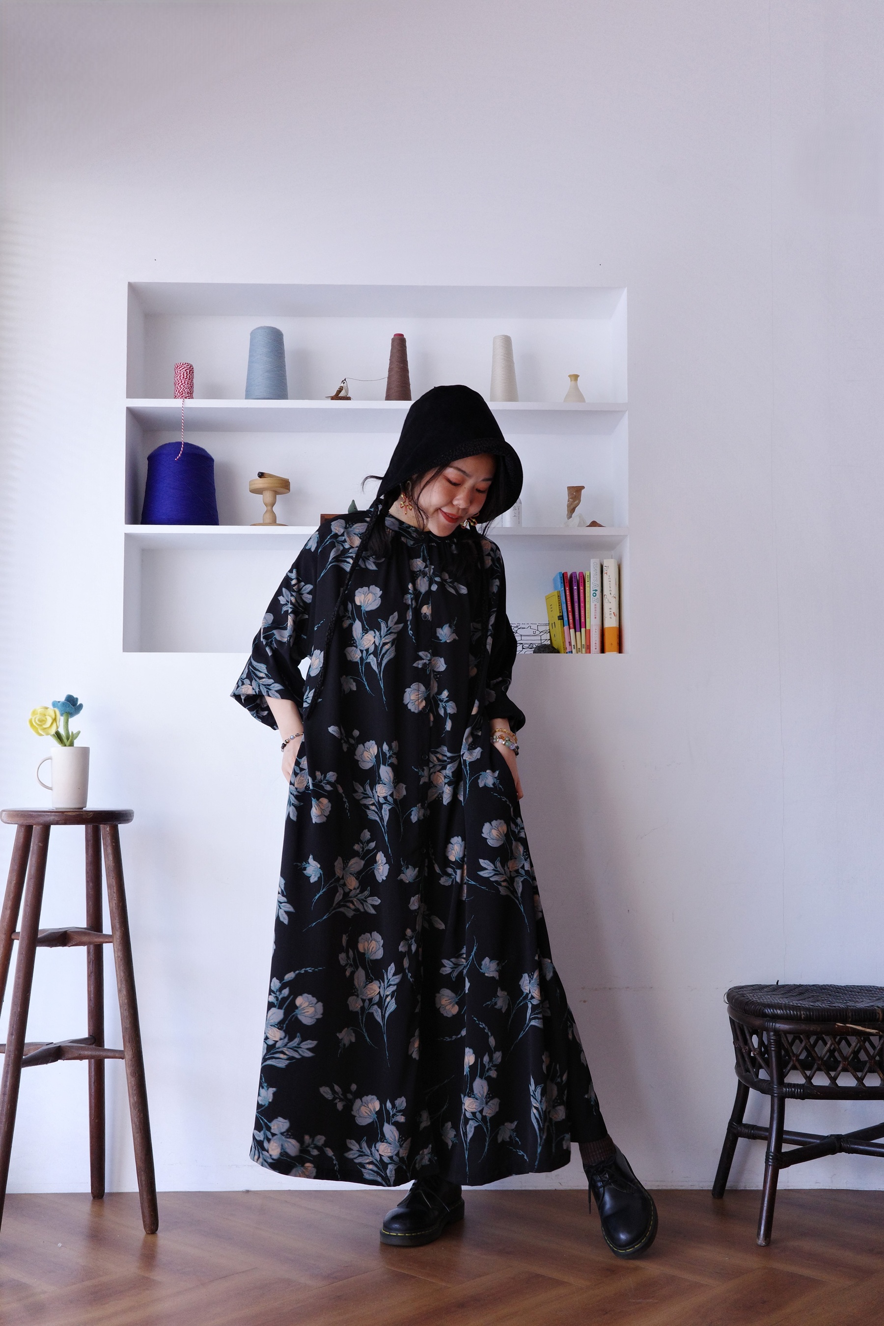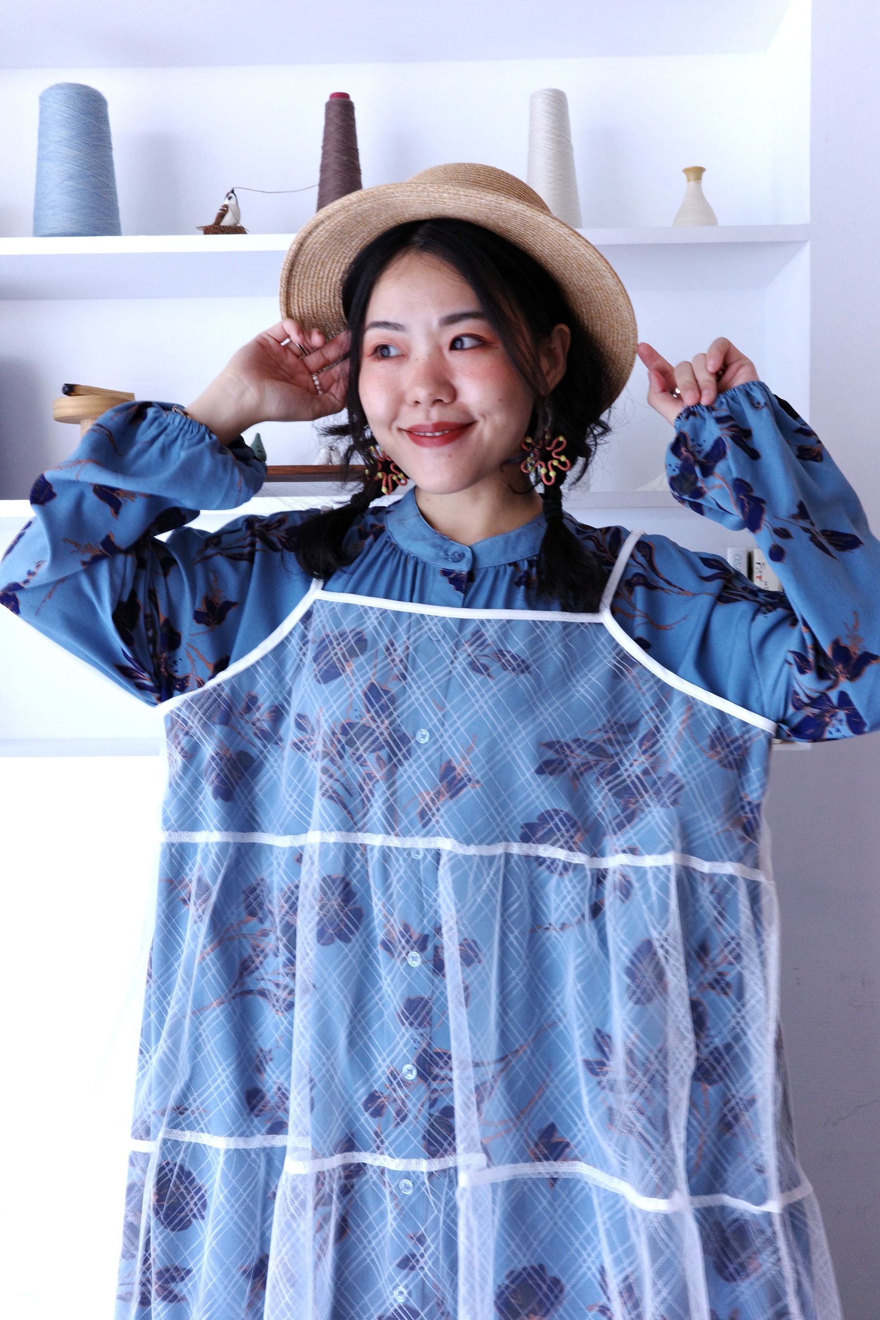 𓏭美!跳色描邊花柄雪紡開襟洋裝