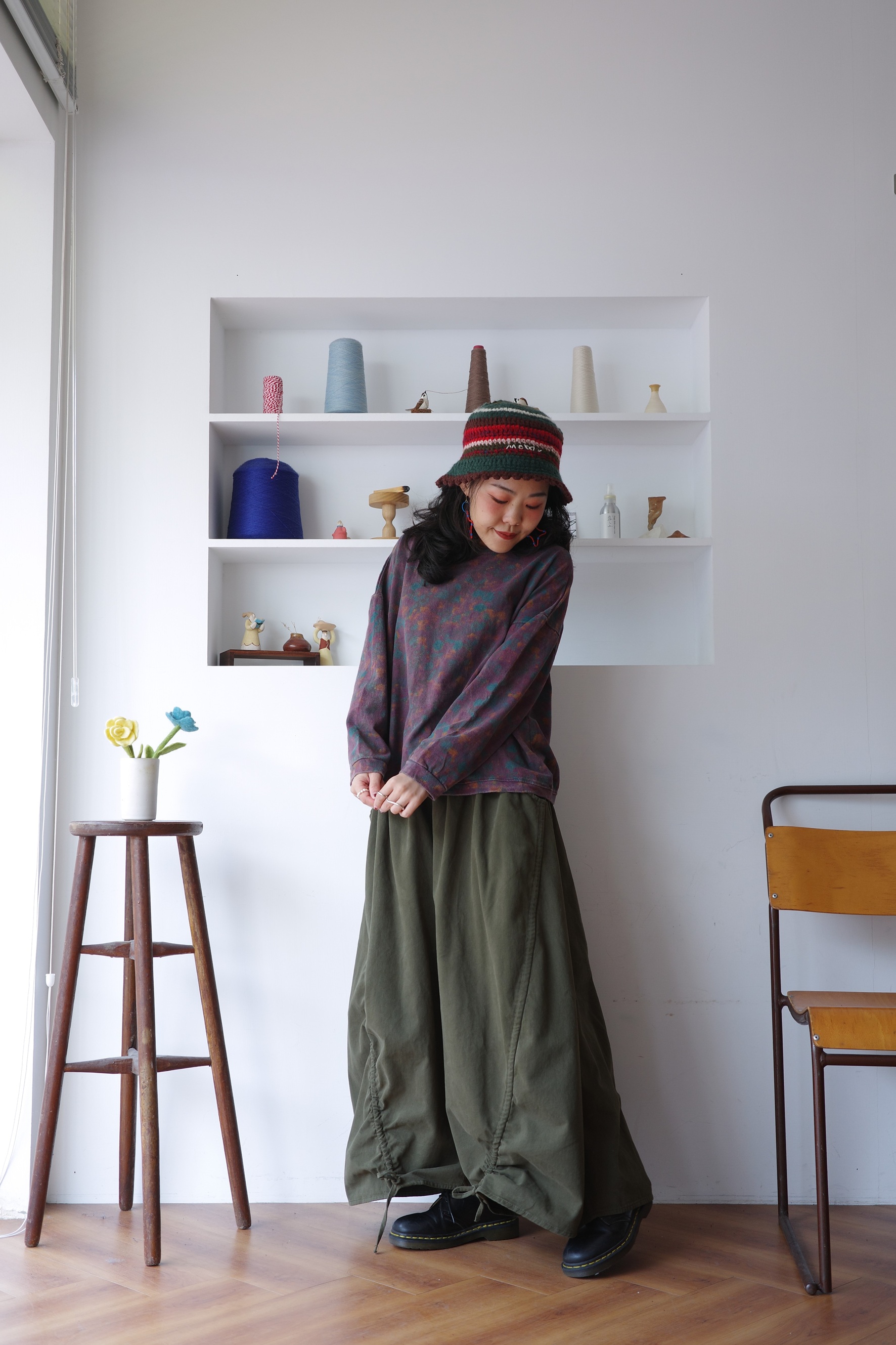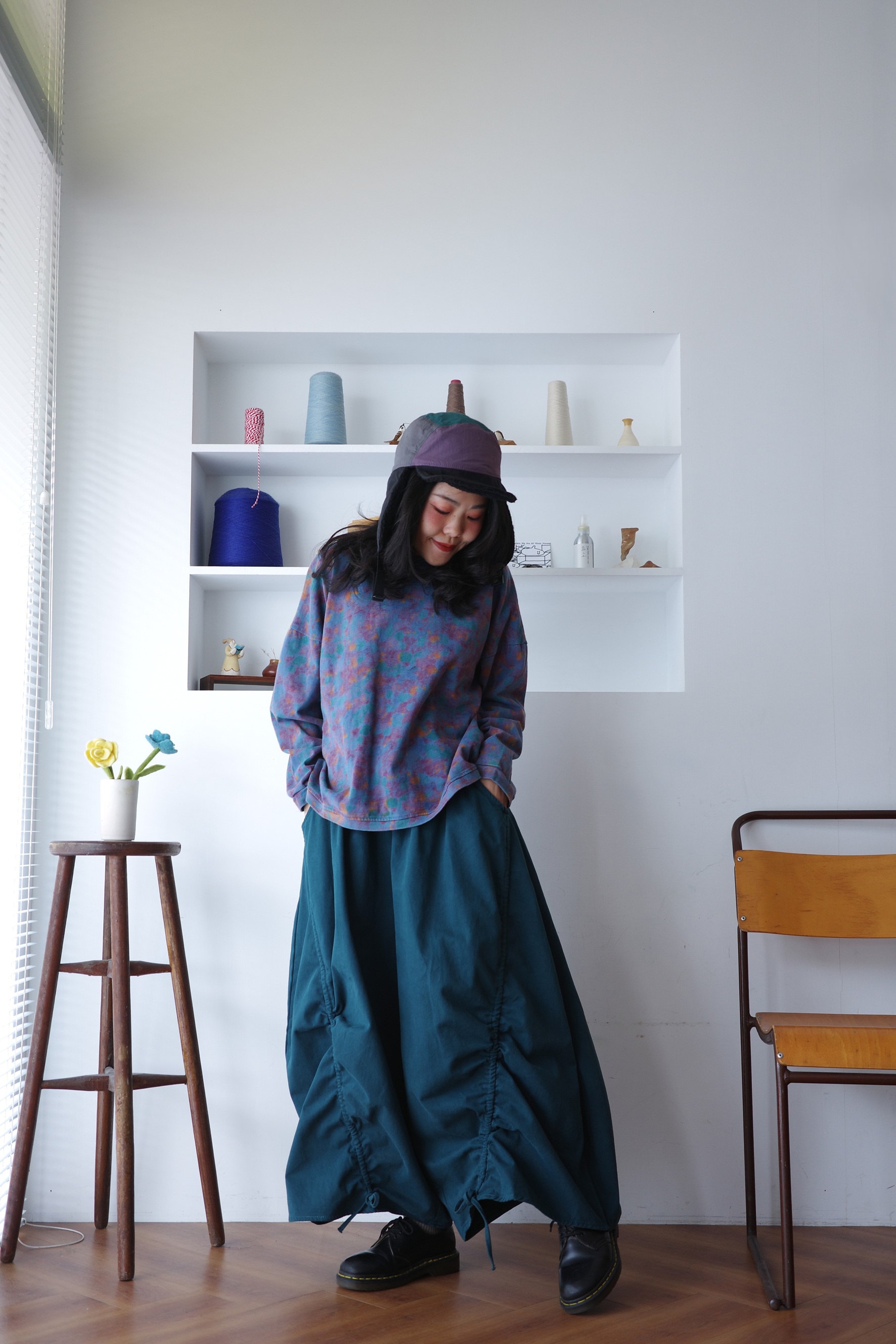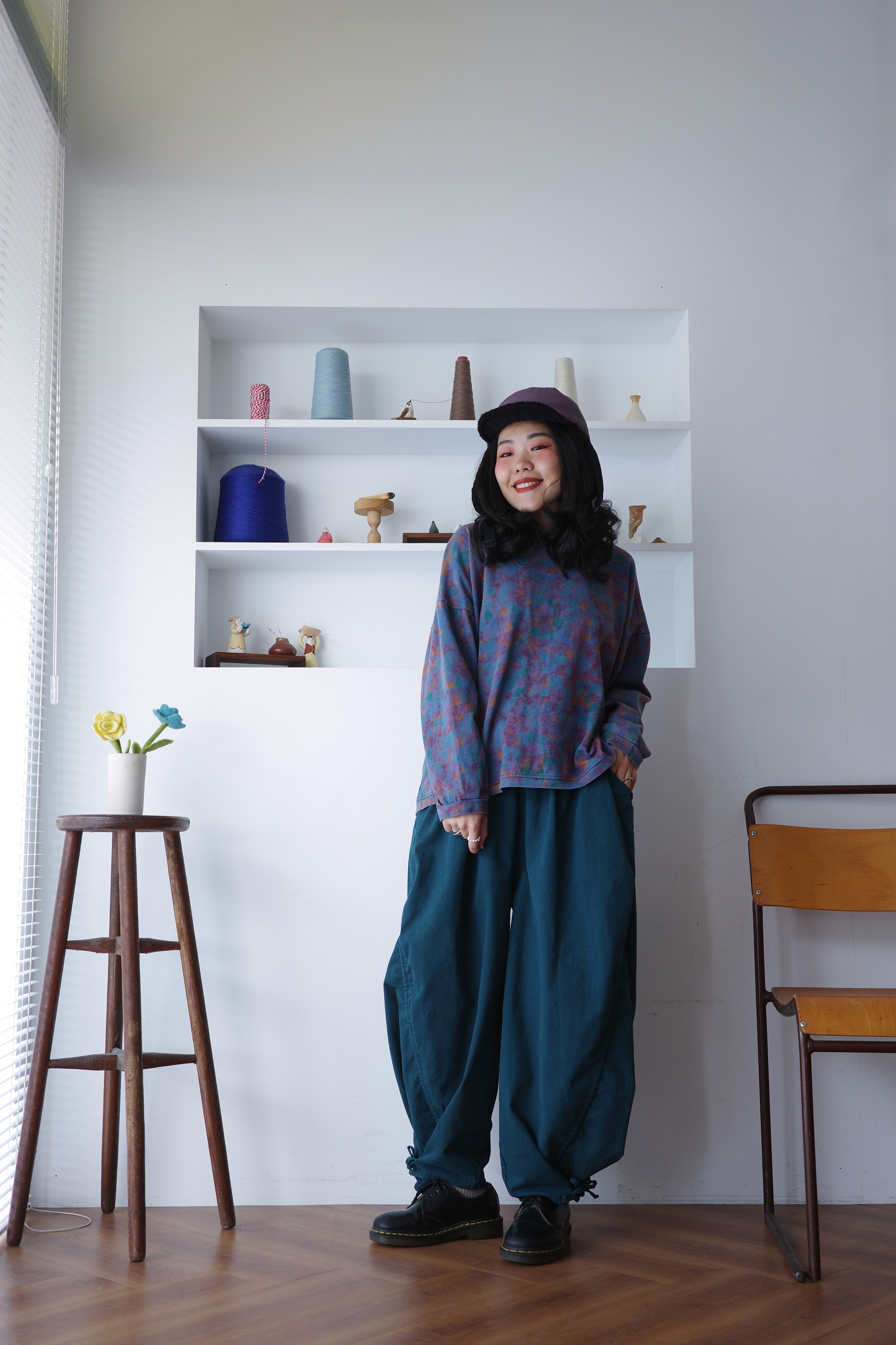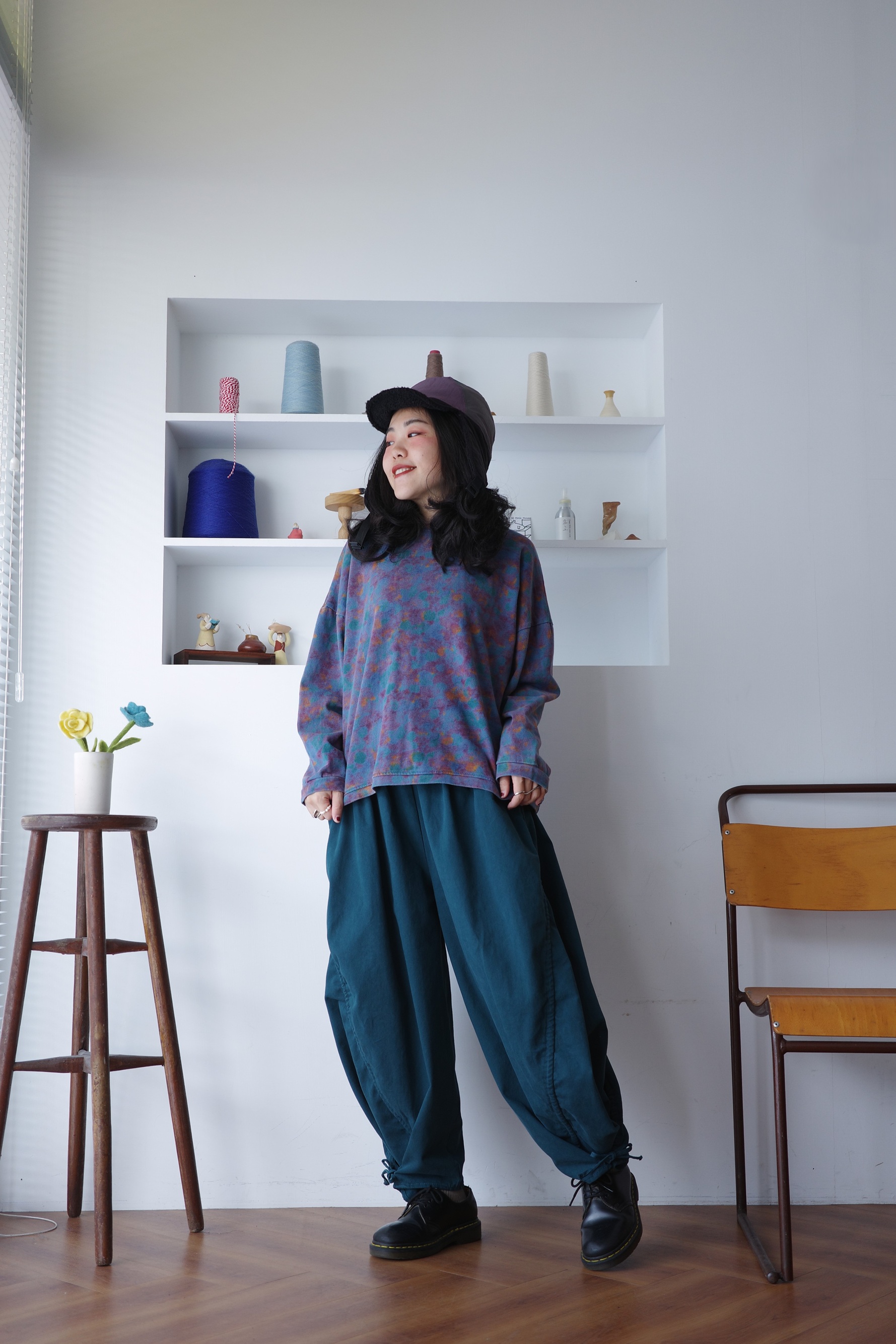 也可以把布料往上推出澎澎皺皺的空氣感,營造出像南瓜褲的感覺;