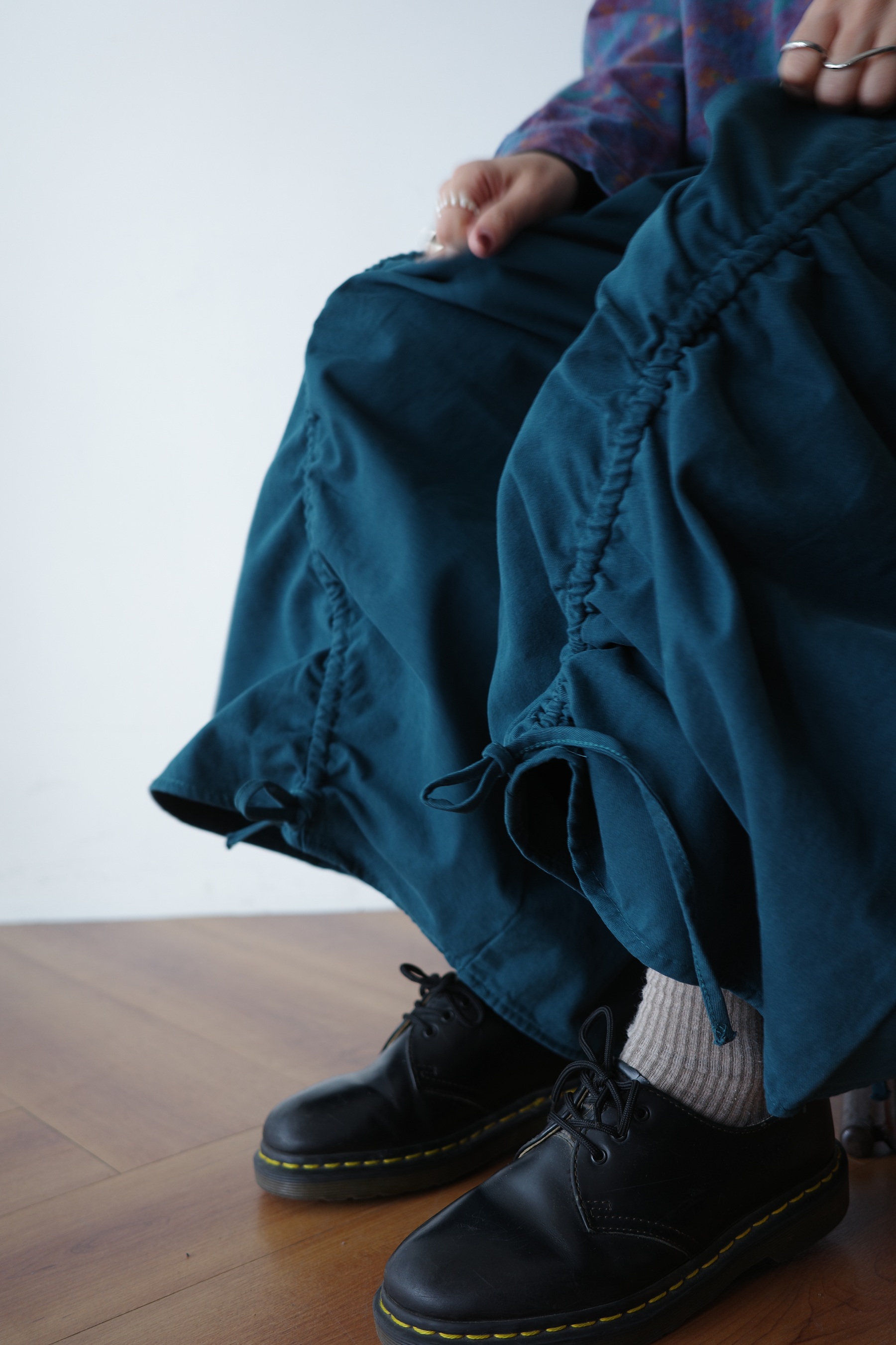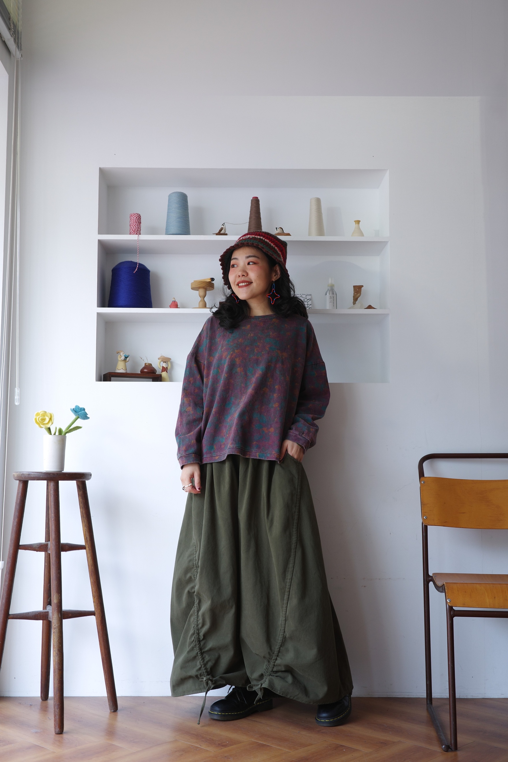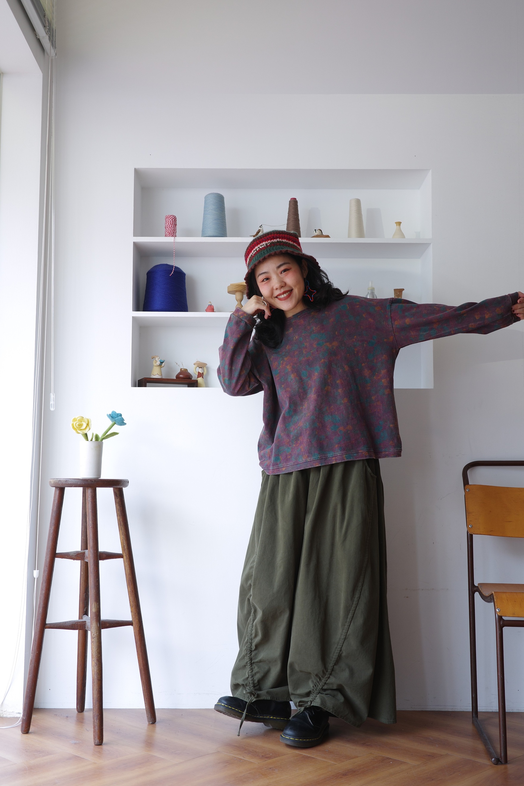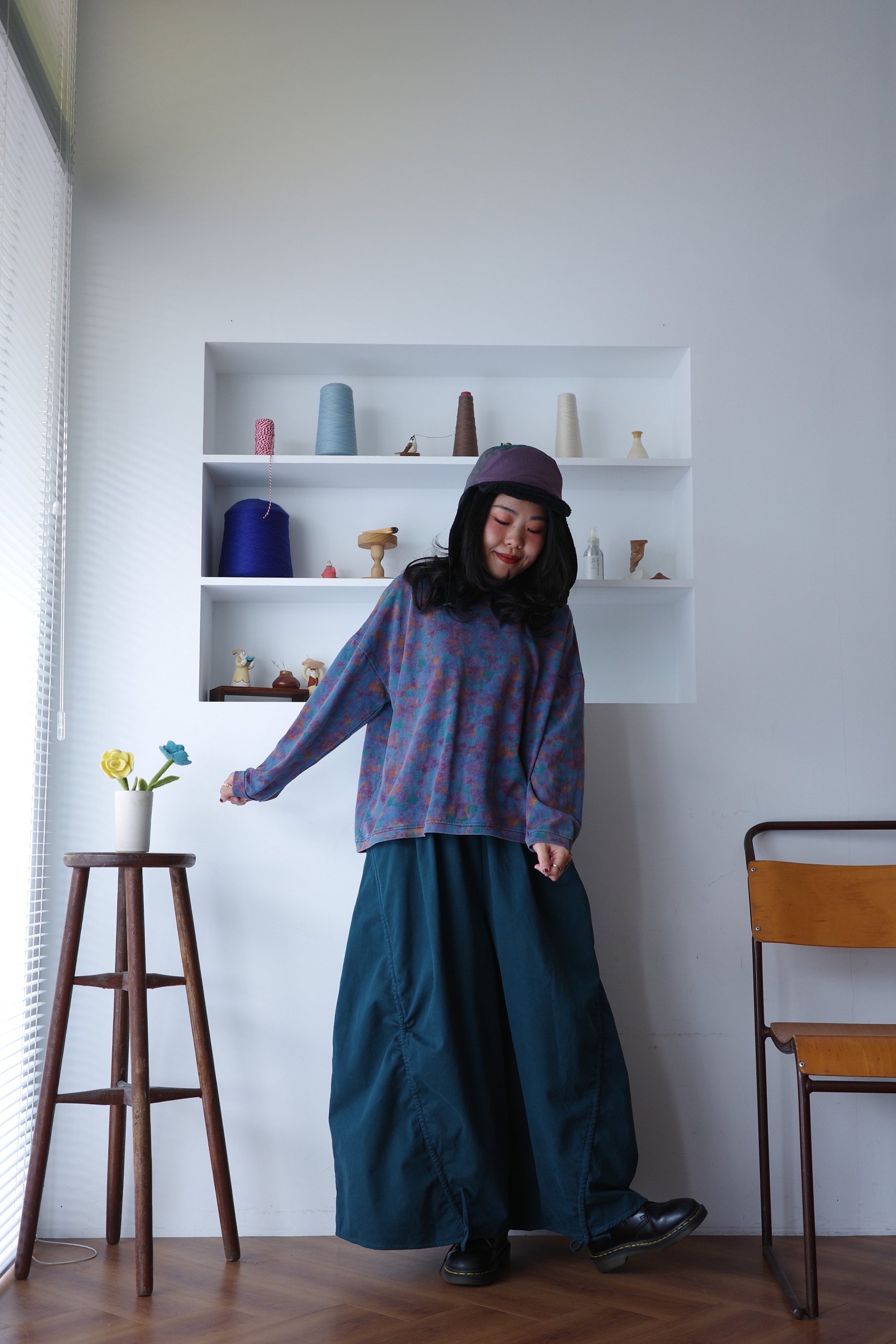 也可以把布料往上推出澎澎皺皺的空氣感,營造出像南瓜褲的感覺;
