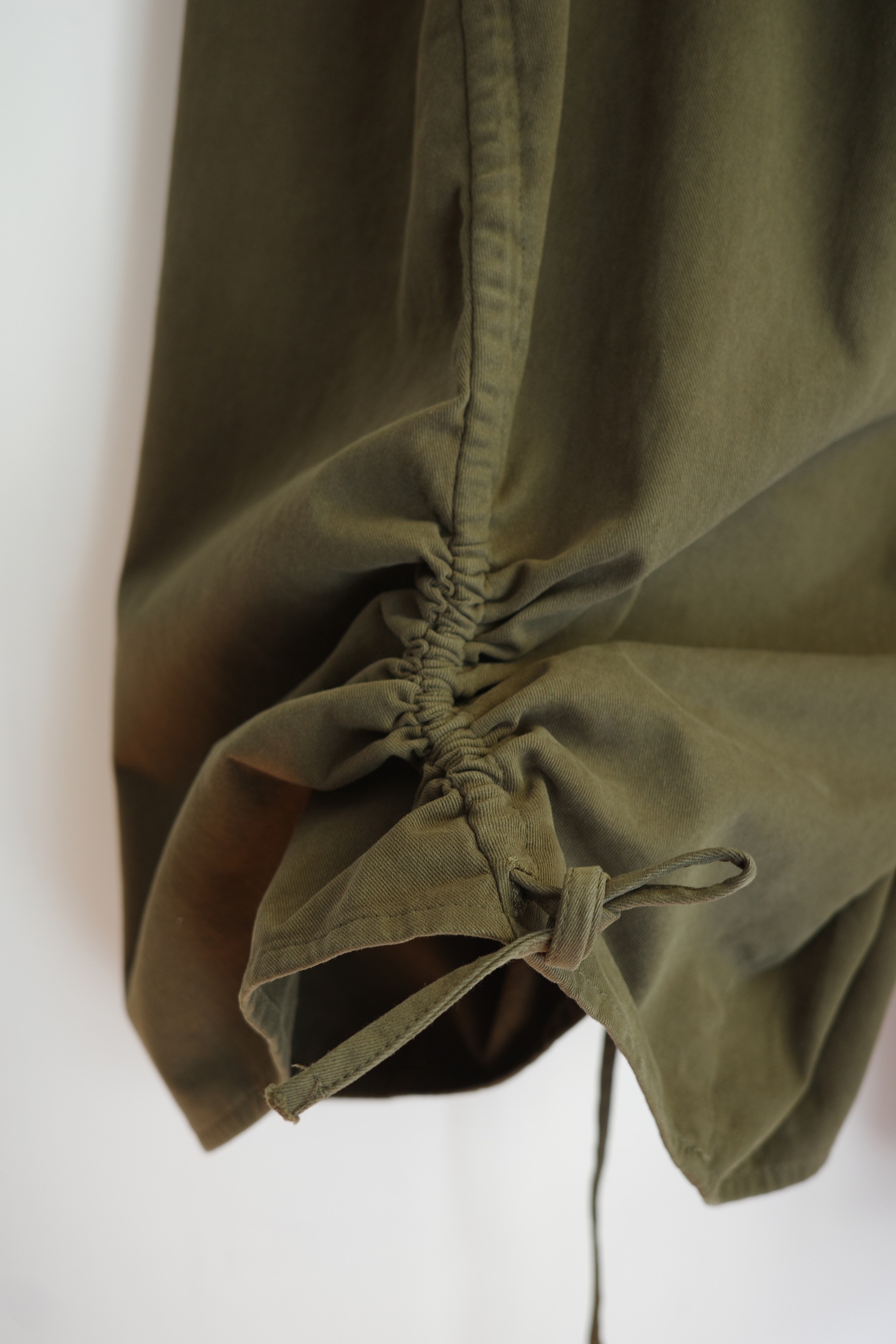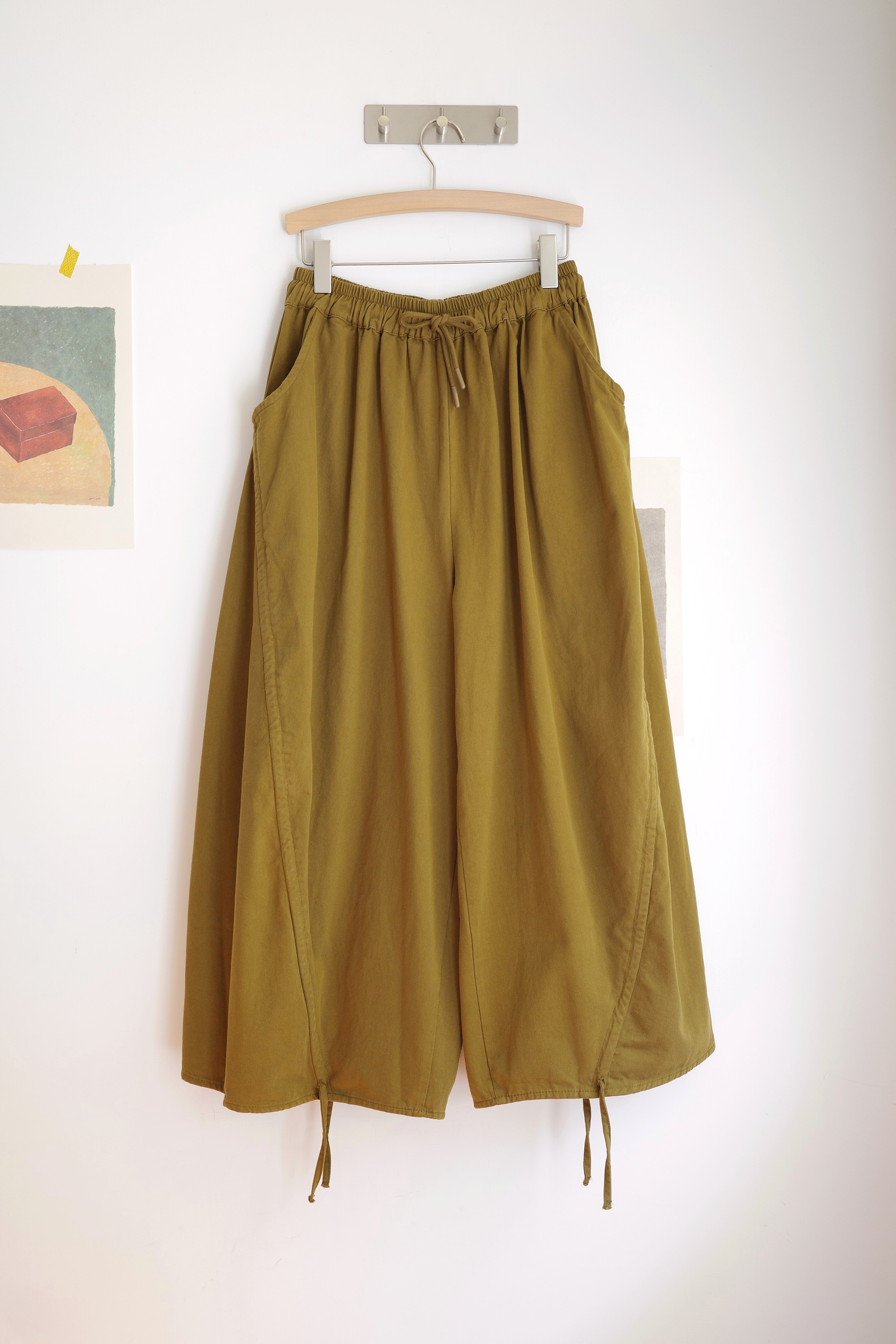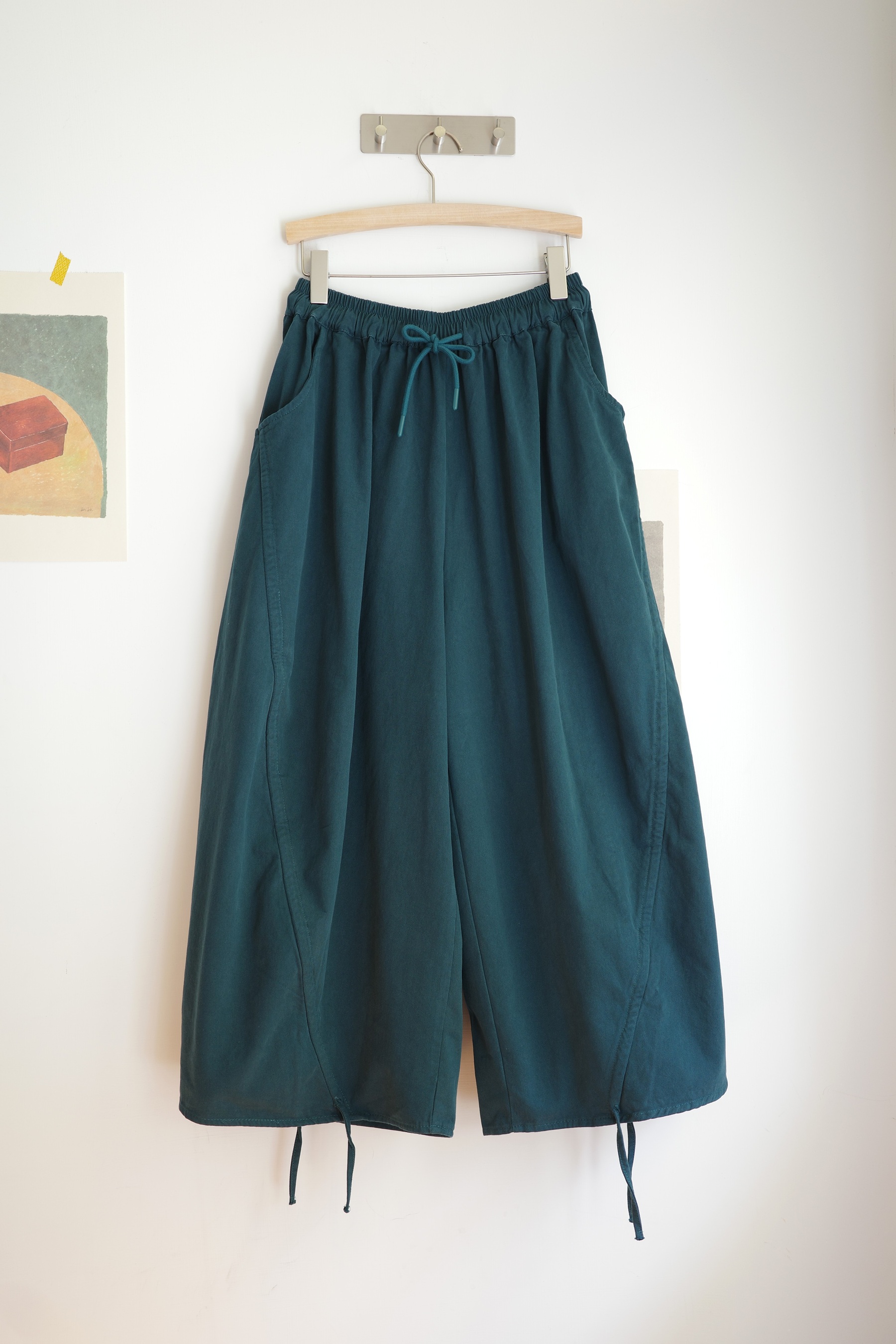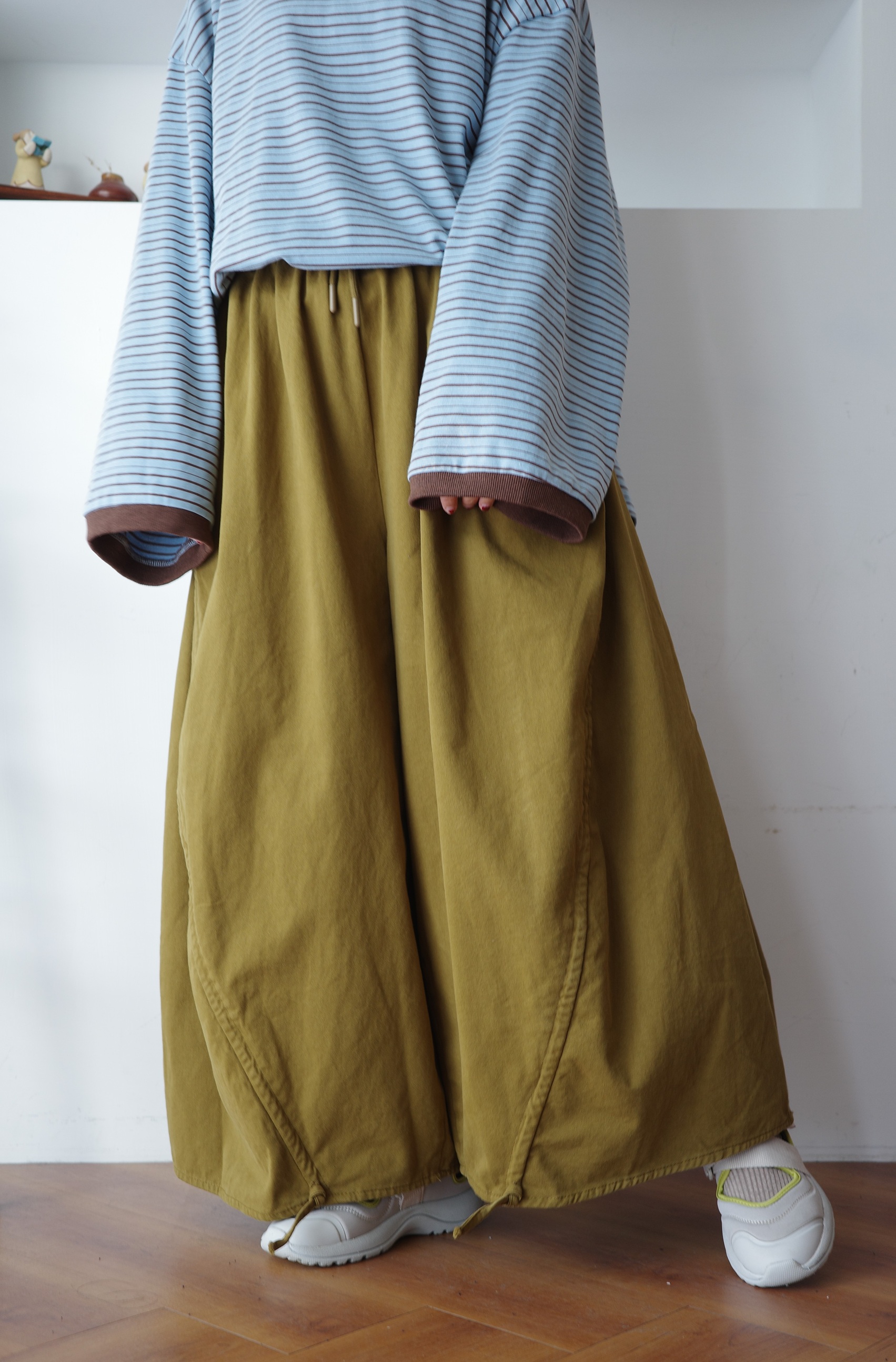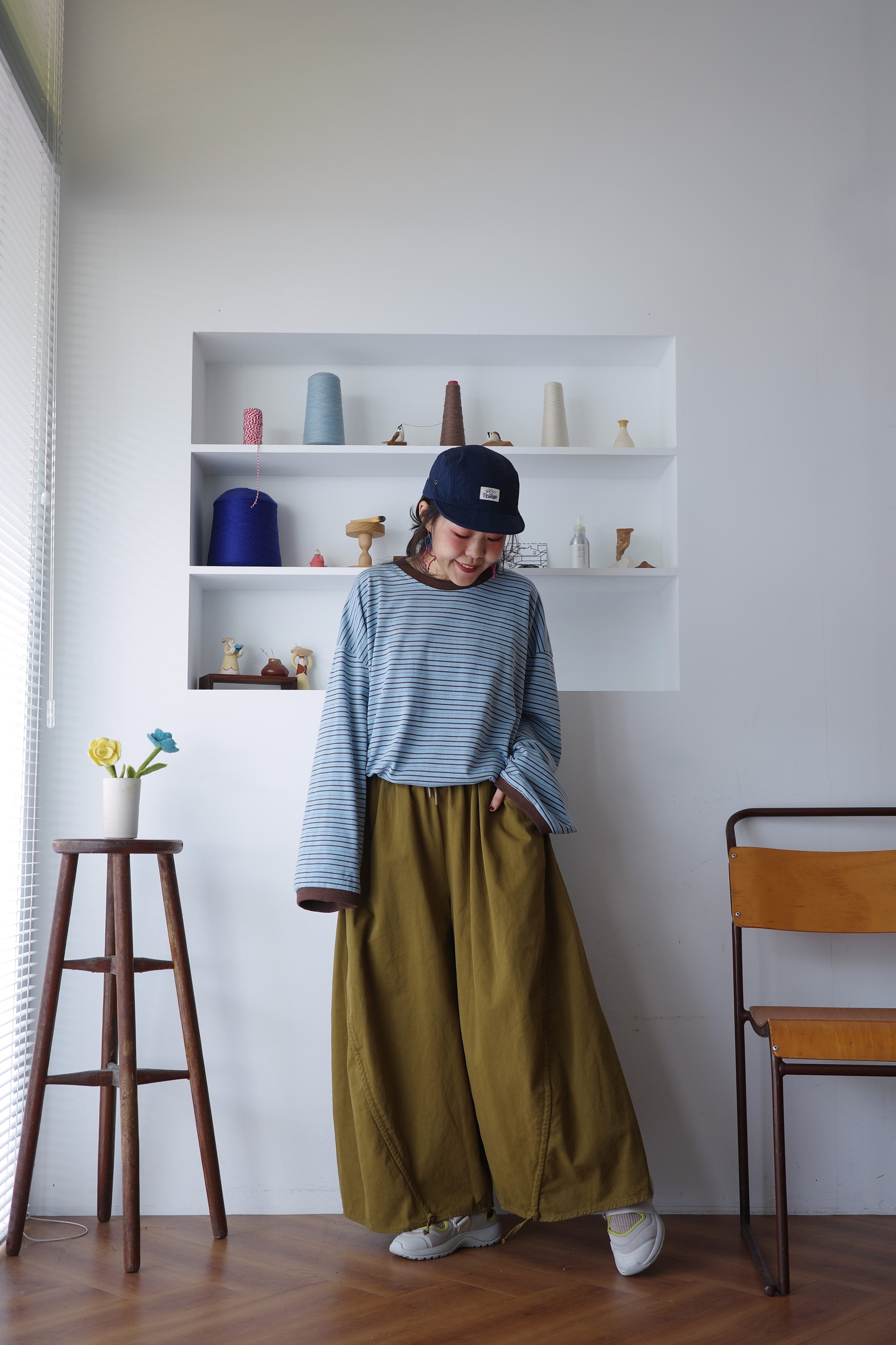 或是把前後的抽繩綁在一起,變成收口燈籠褲的版型!