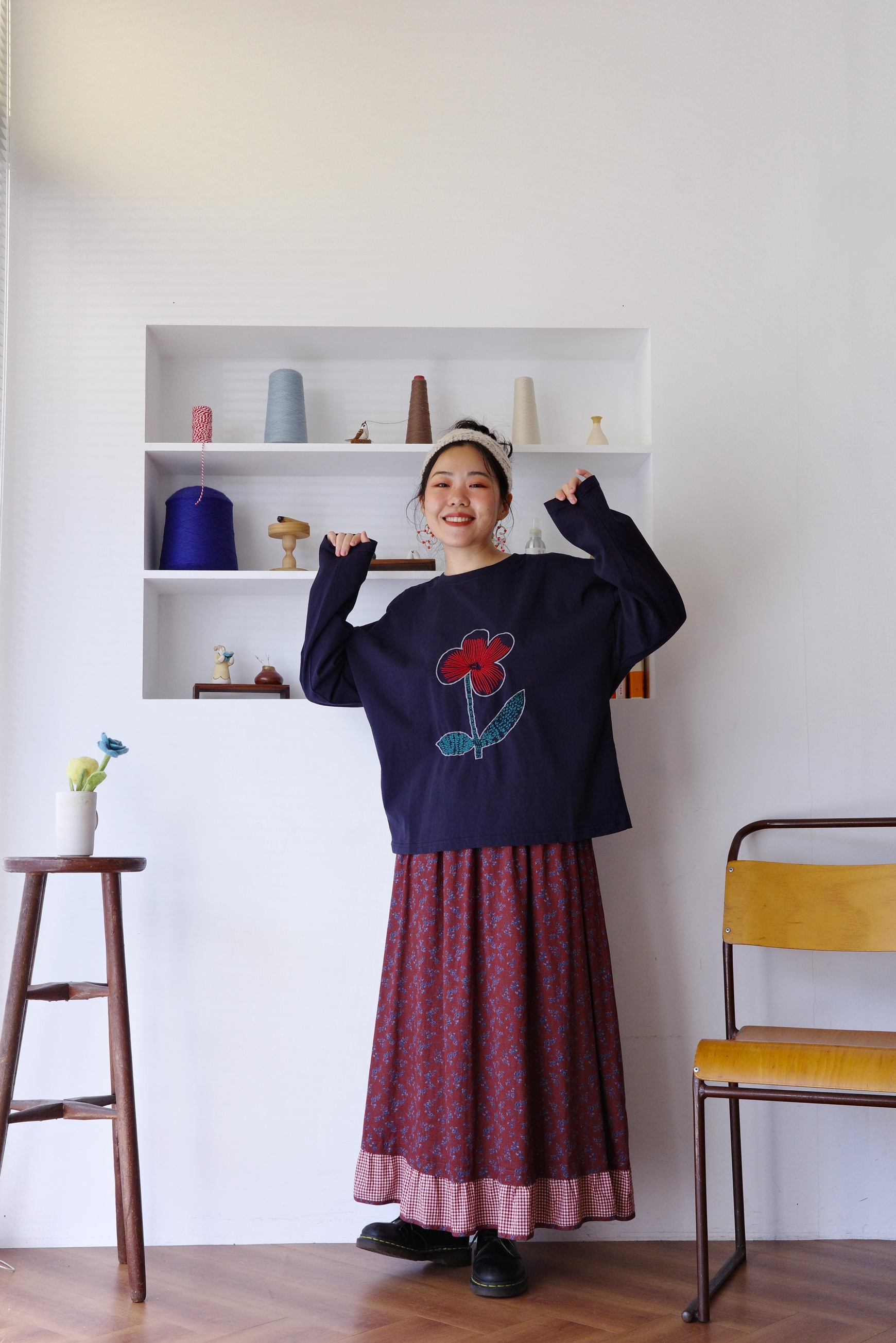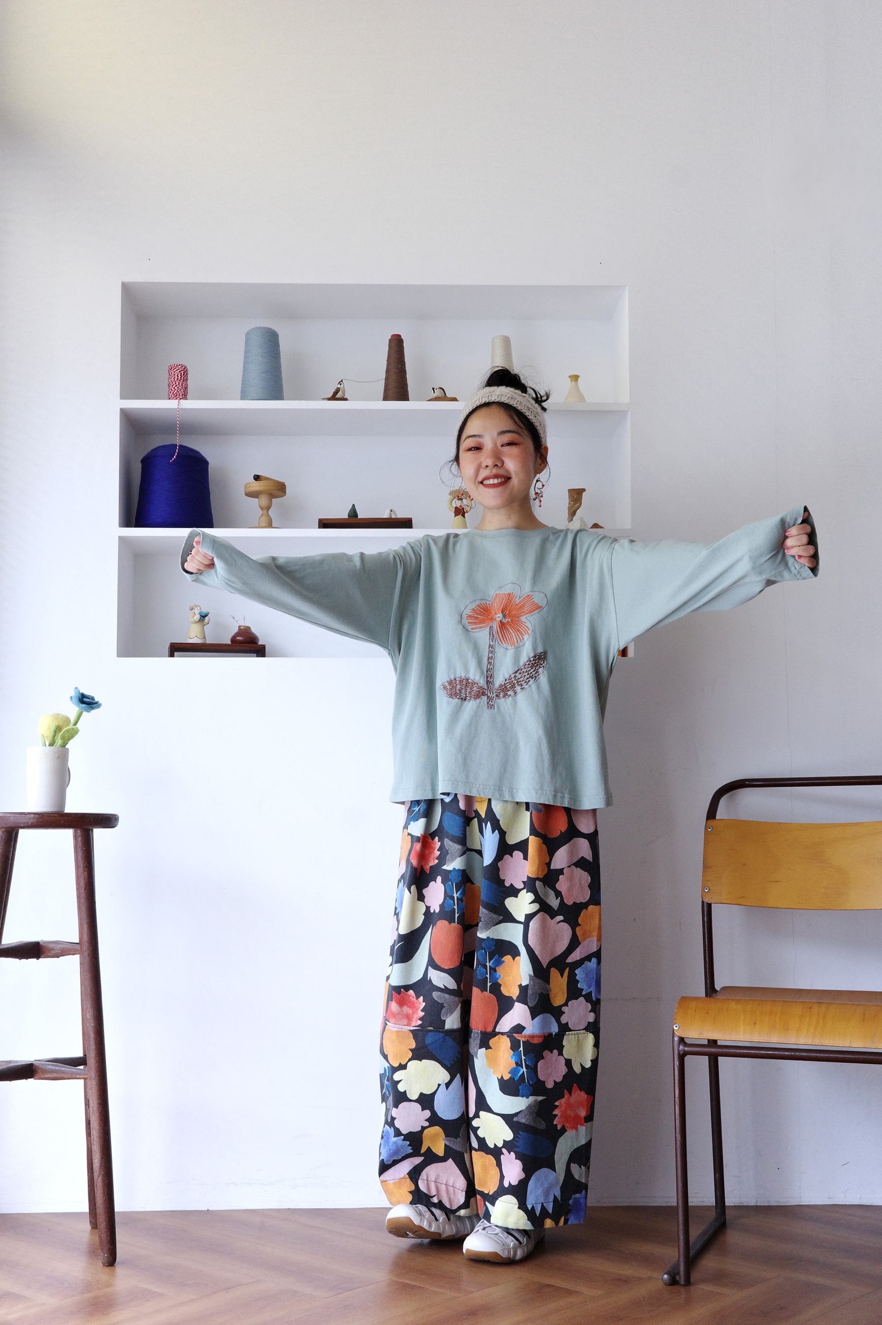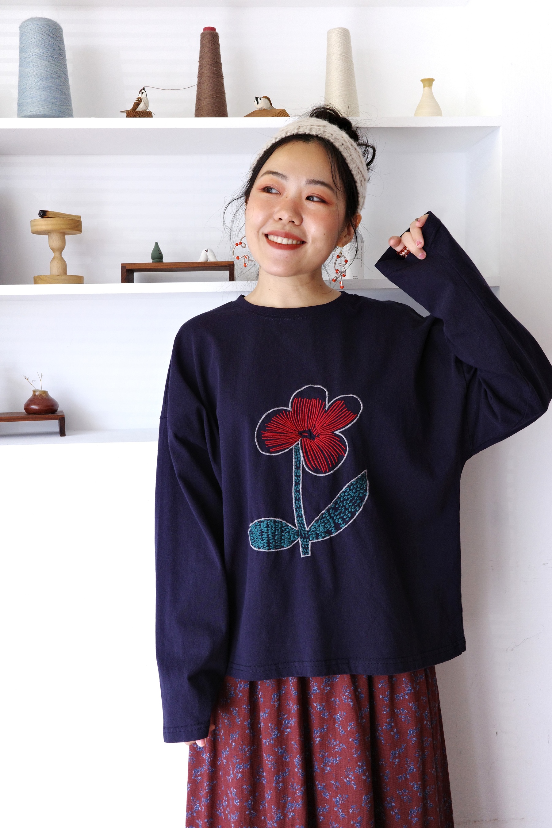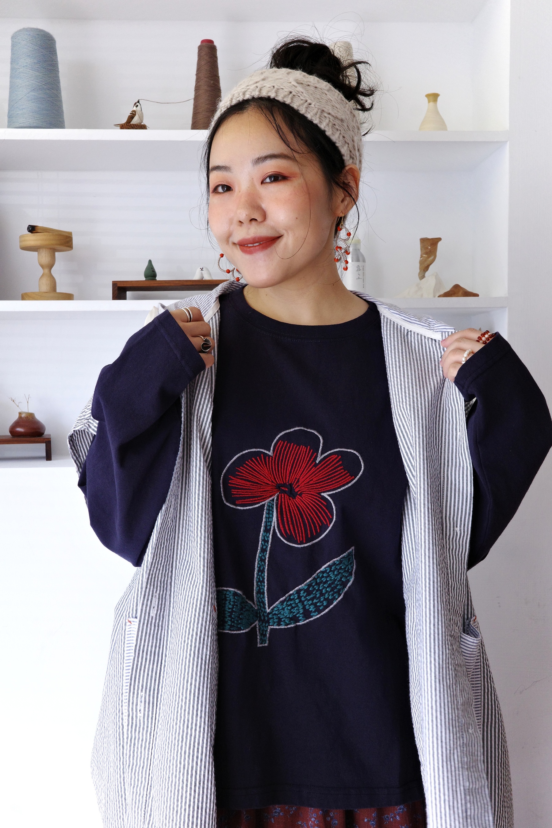 可愛又隨性的花花刺繡T,鬆身版型,布料舒適有自然挺度。