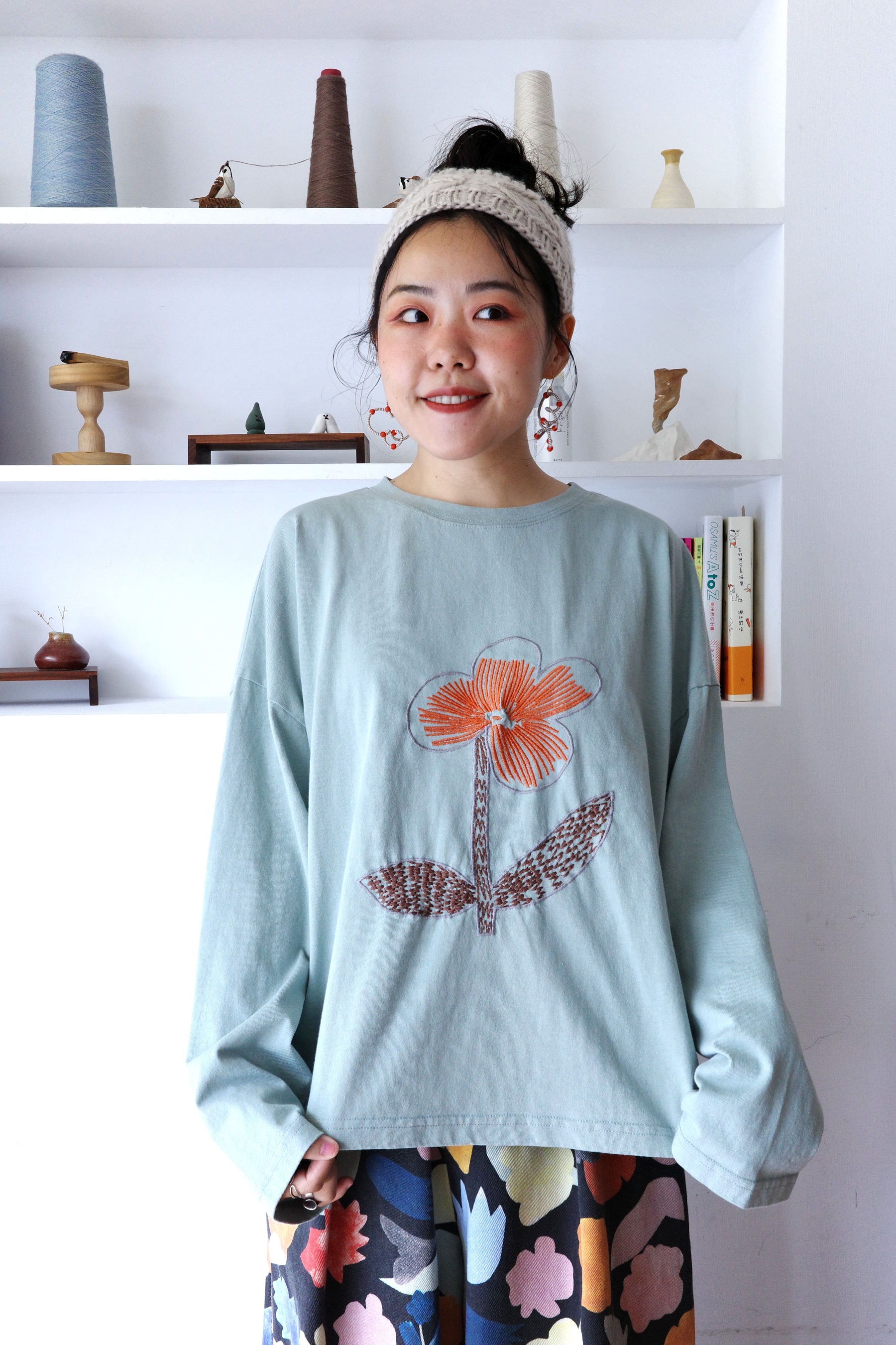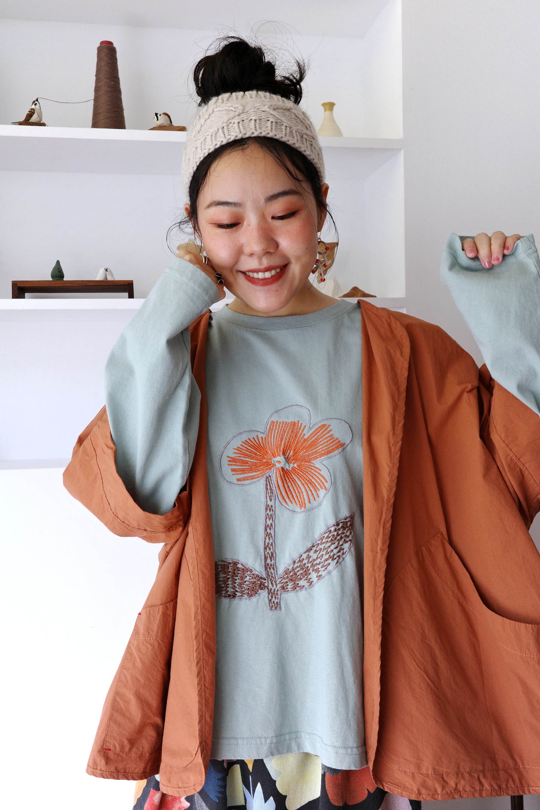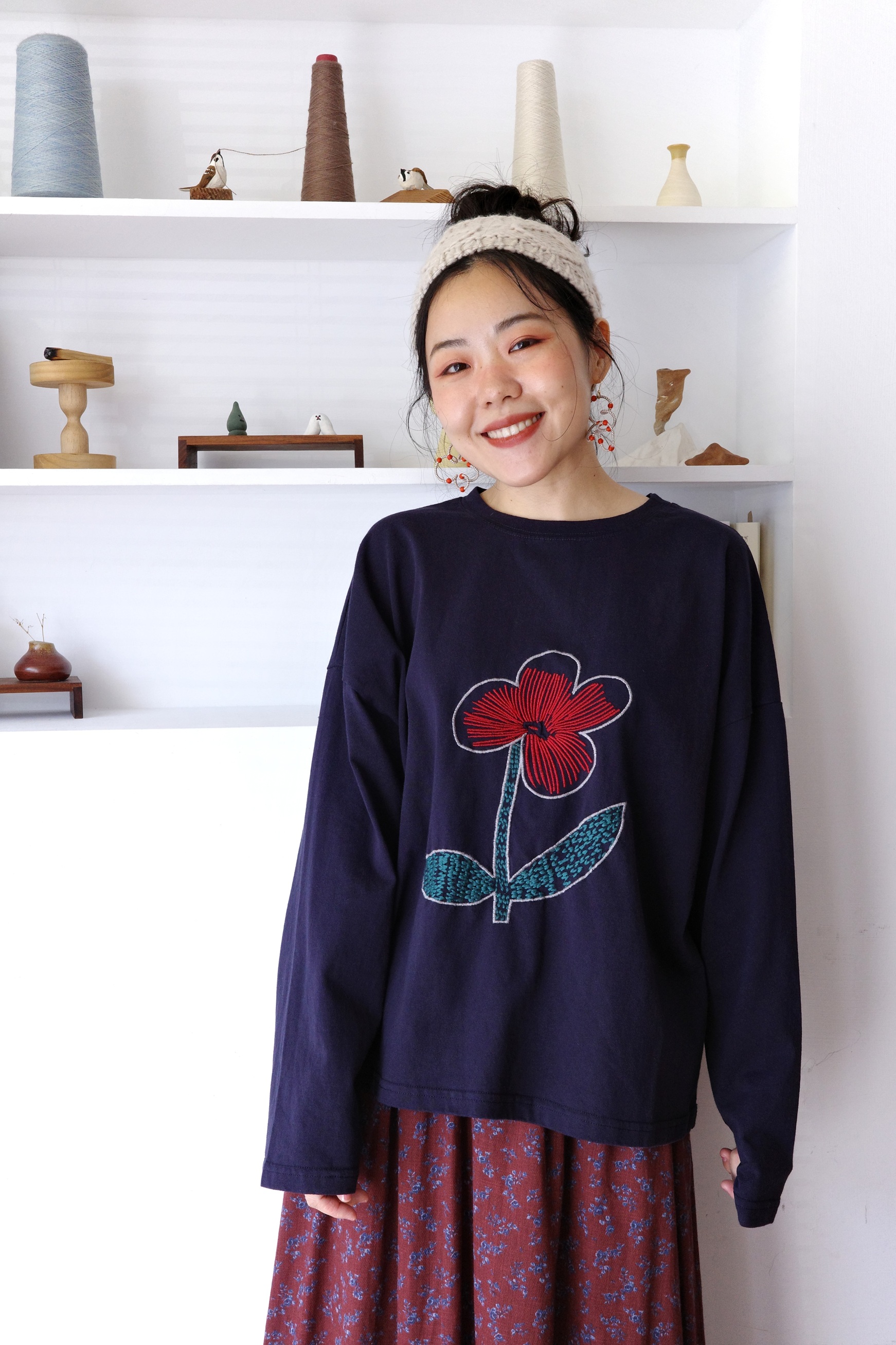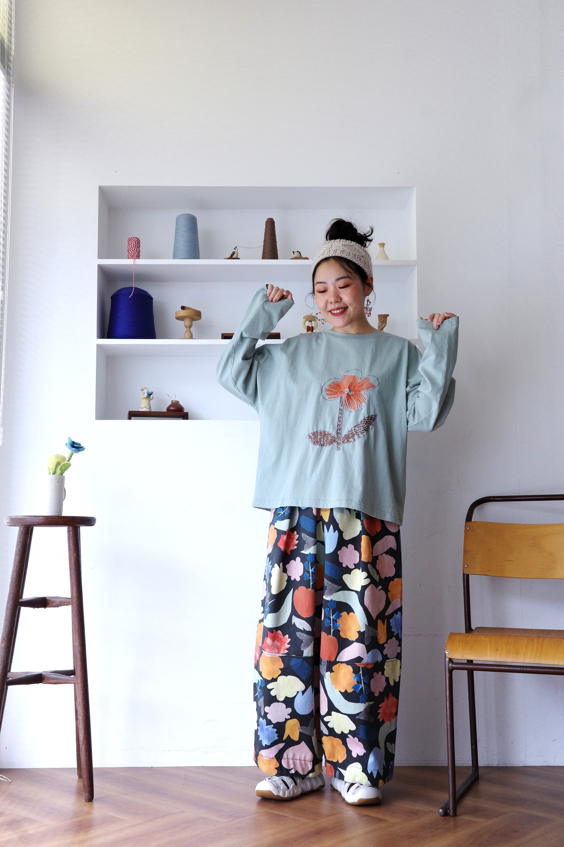 可愛又隨性的花花刺繡T,鬆身版型,布料舒適有自然挺度。
