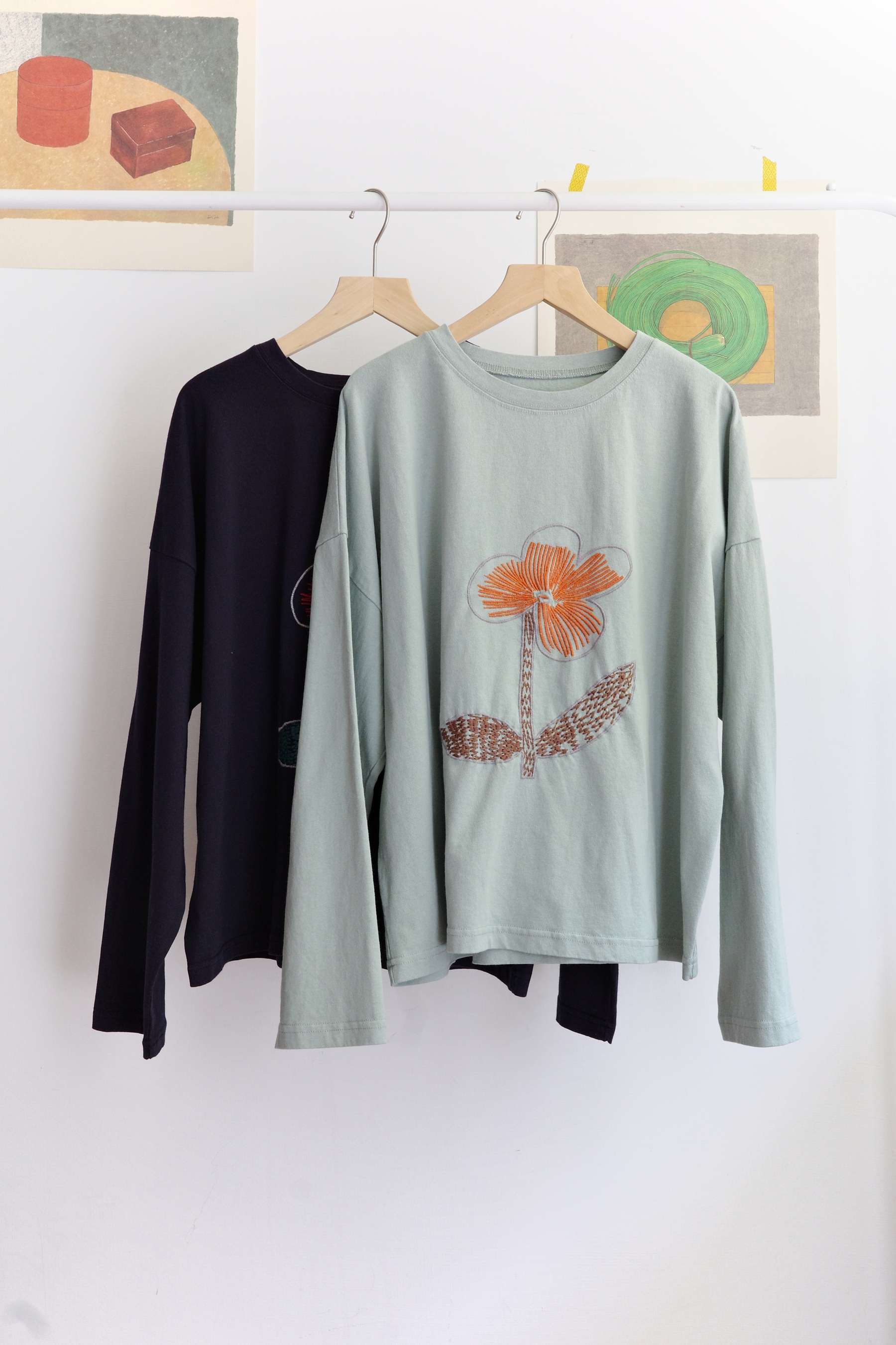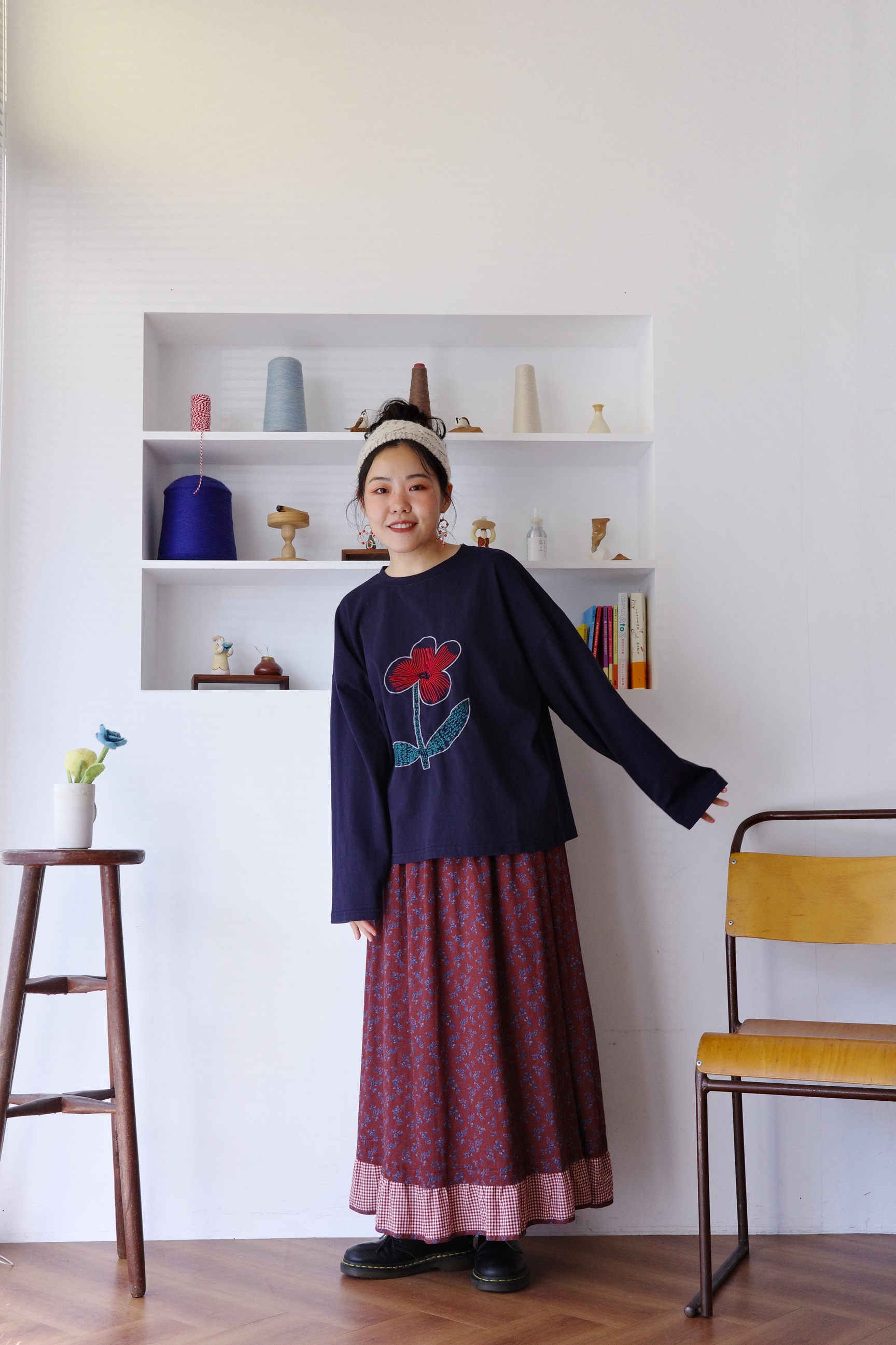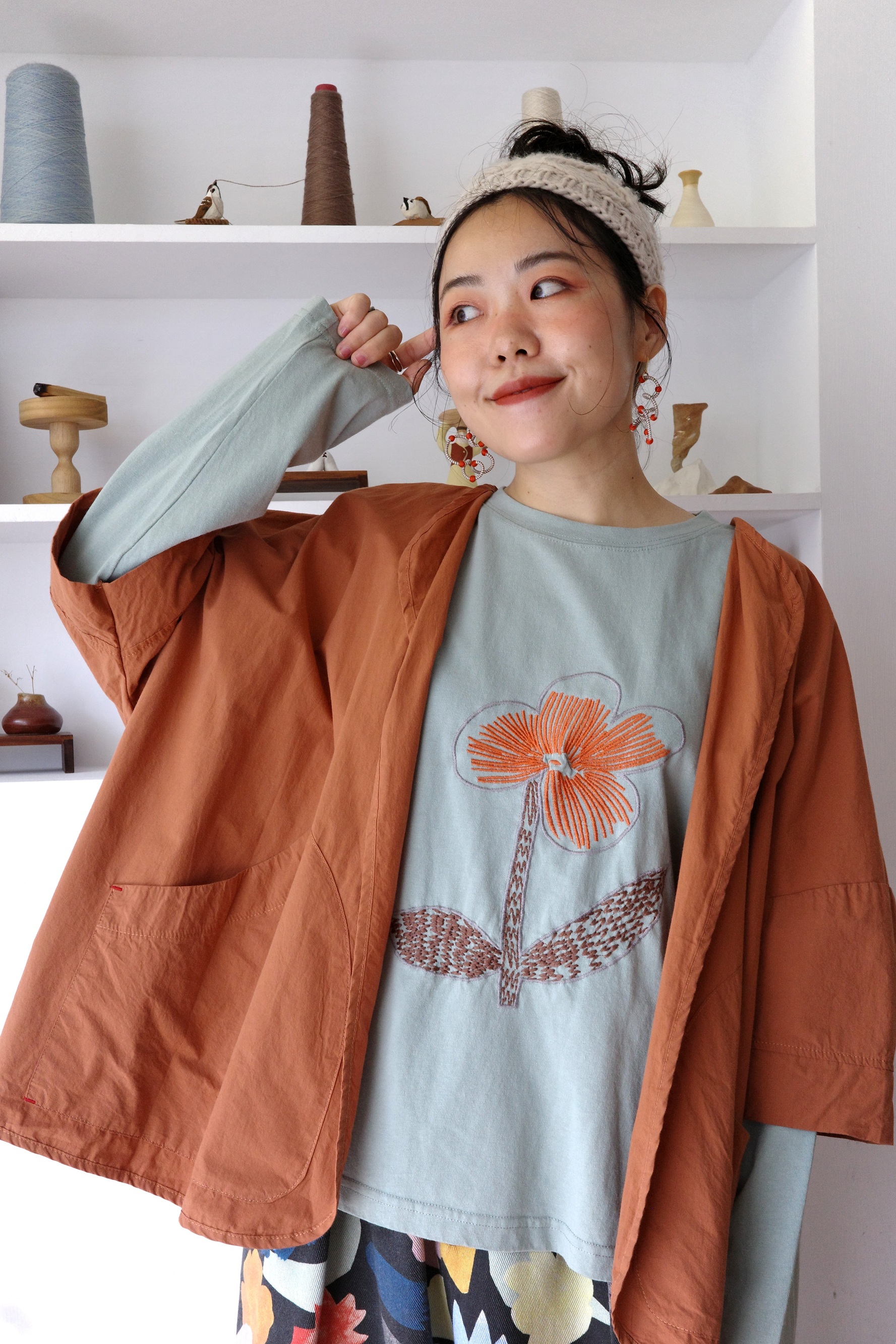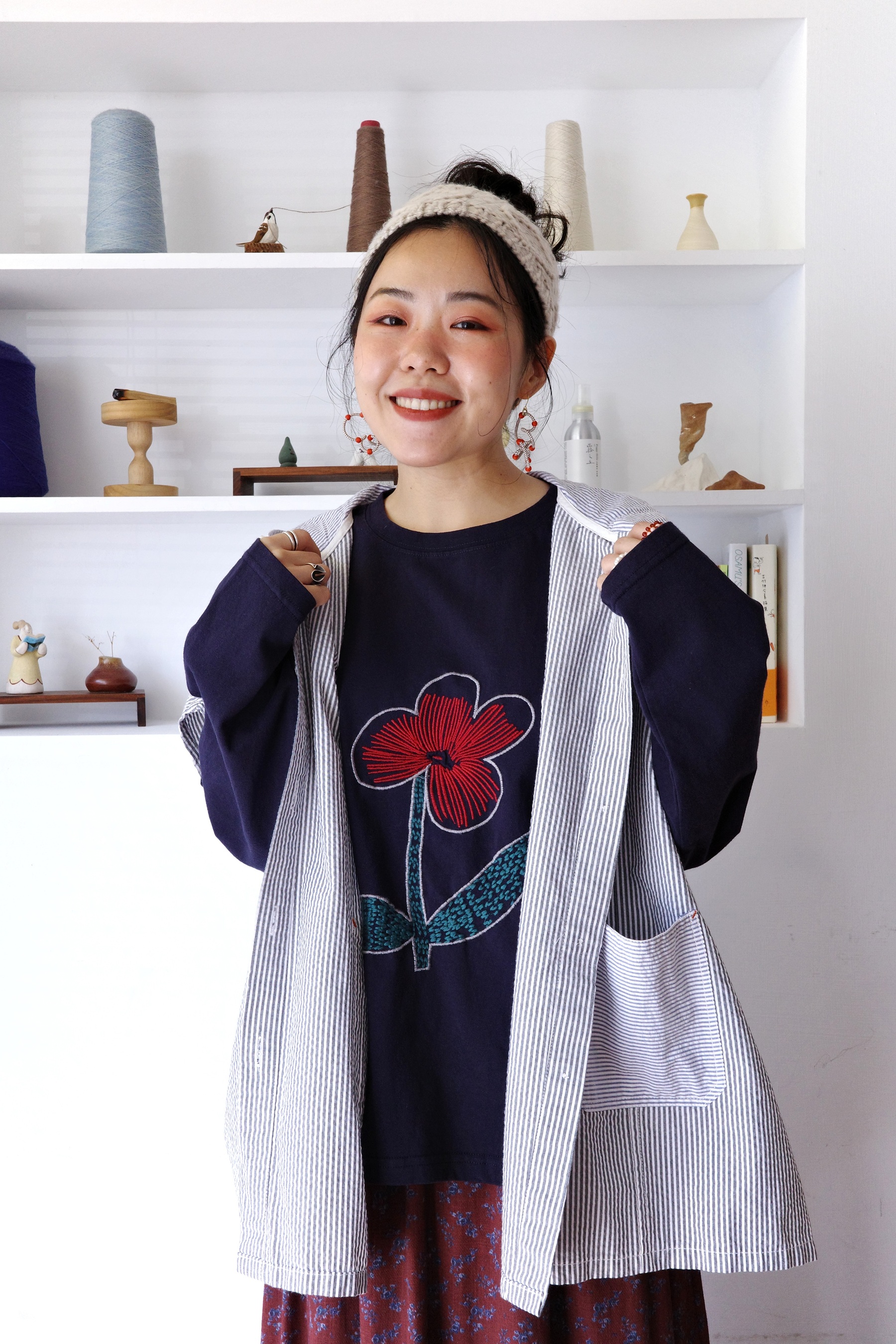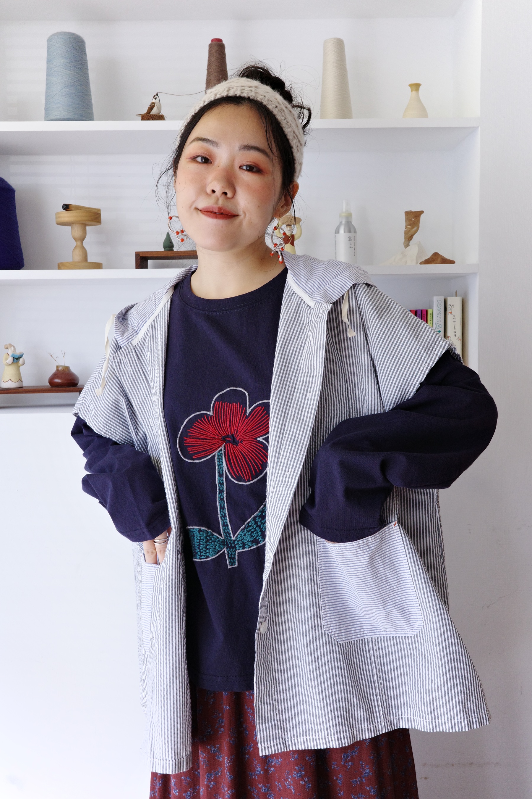 可愛又隨性的花花刺繡T,鬆身版型,布料舒適有自然挺度。