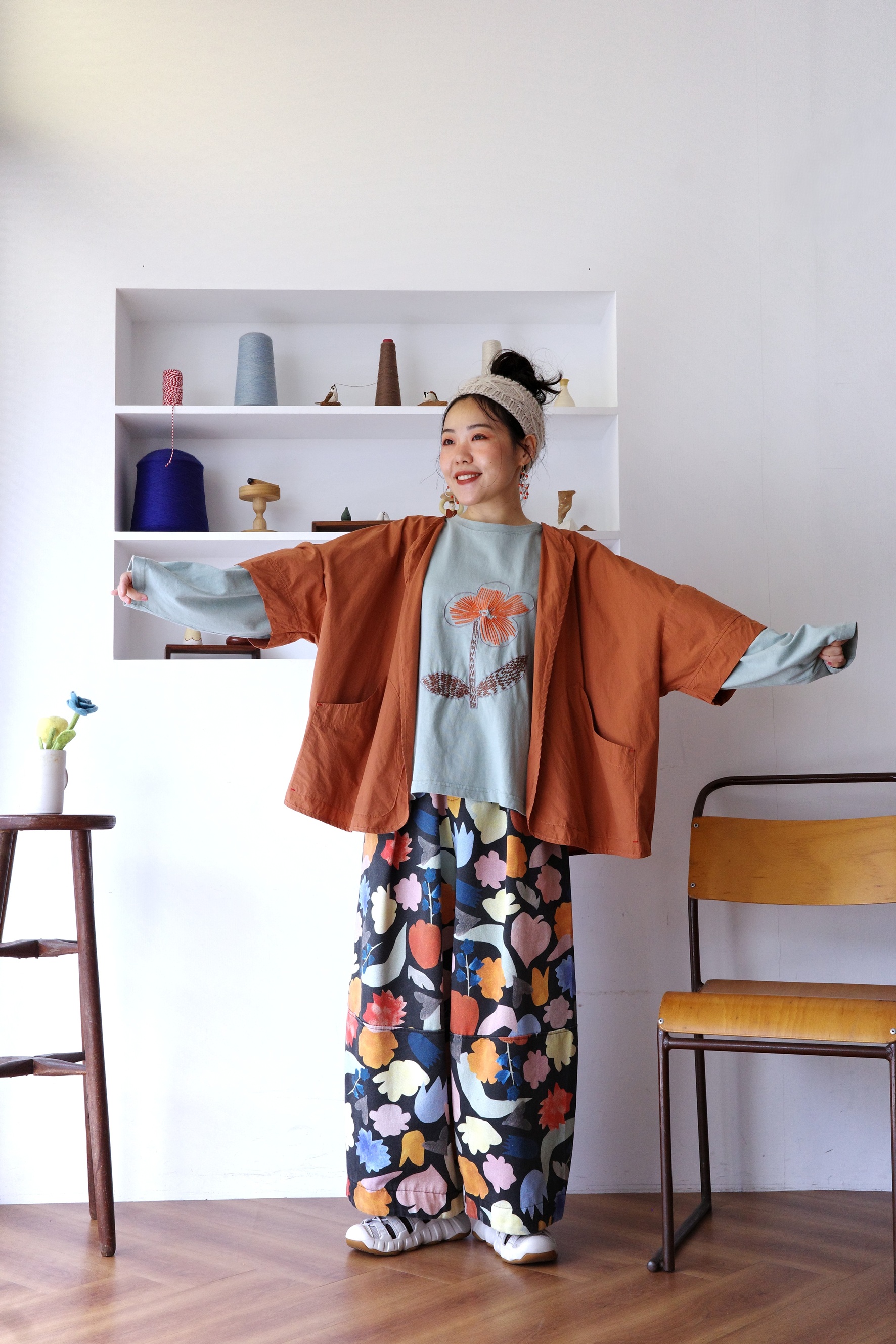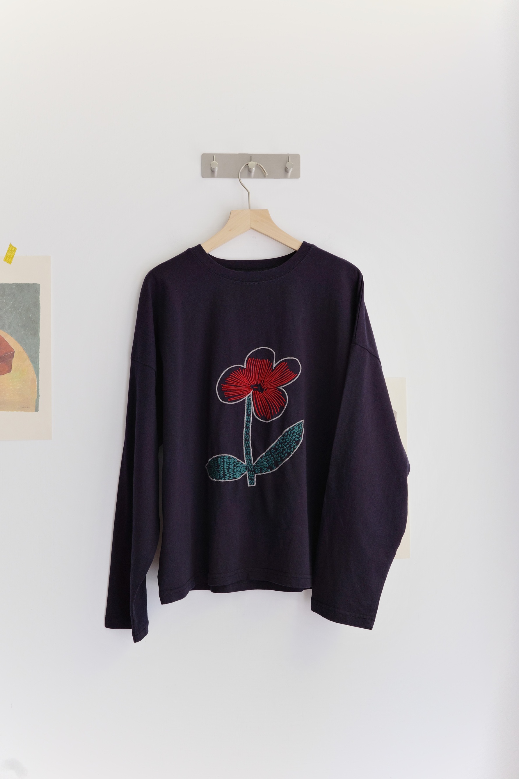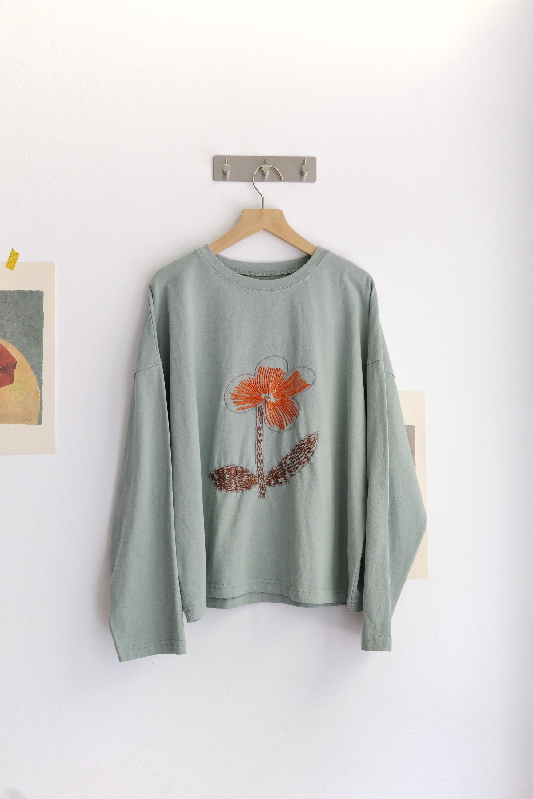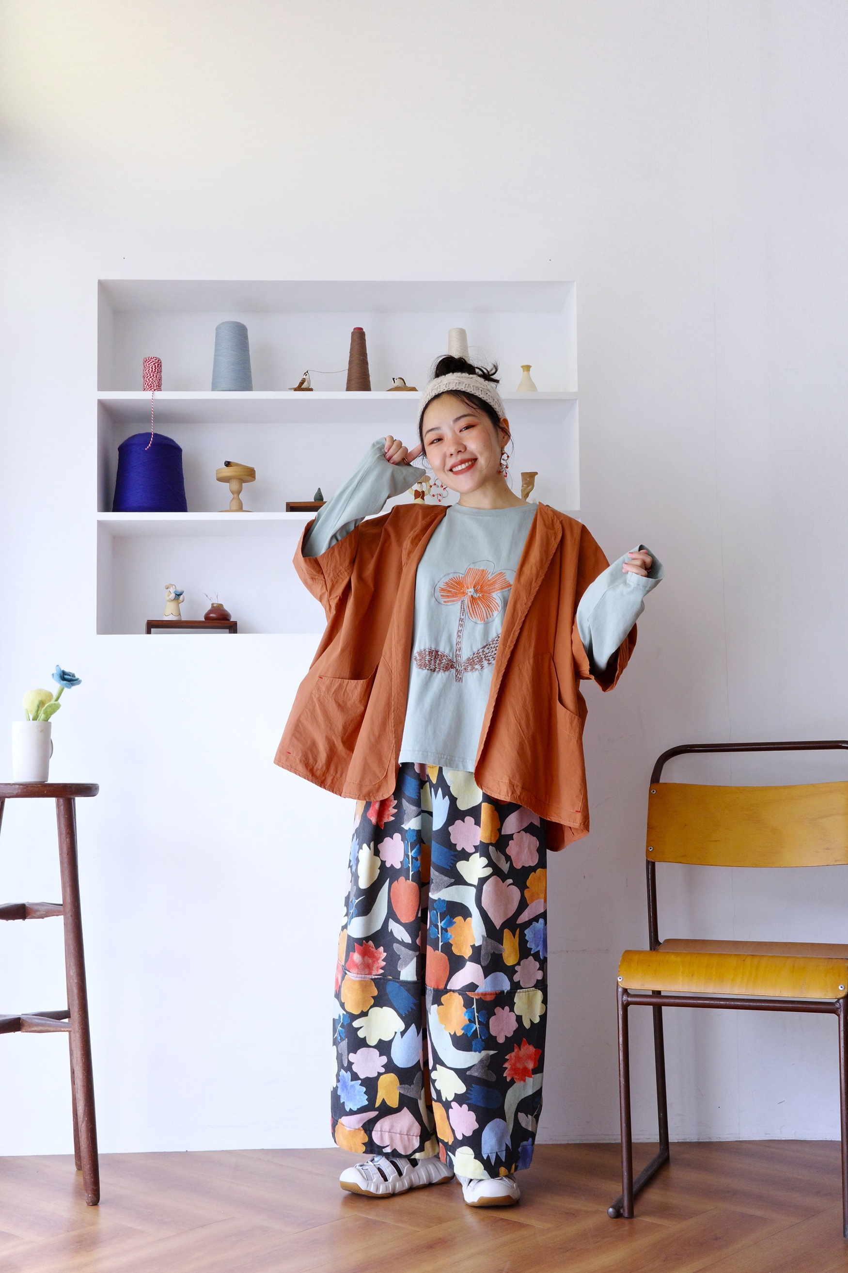 可愛又隨性的花花刺繡T,鬆身版型,布料舒適有自然挺度。