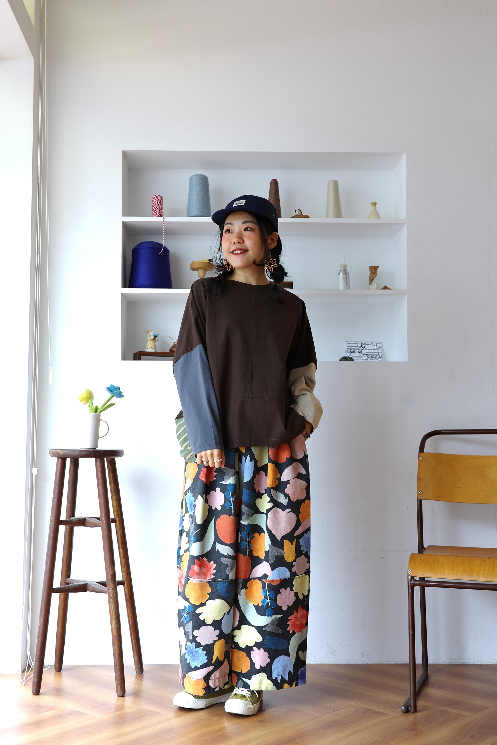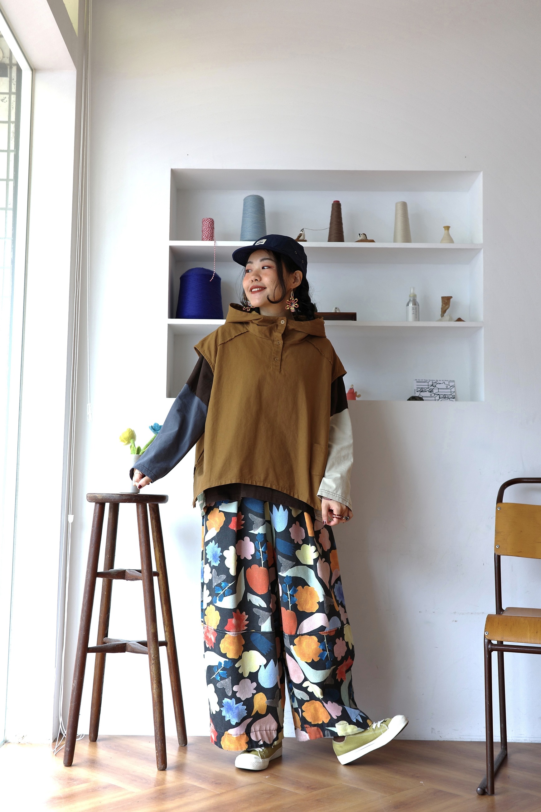 𓏭花花樹葉塗鴉印花修身繭形褲